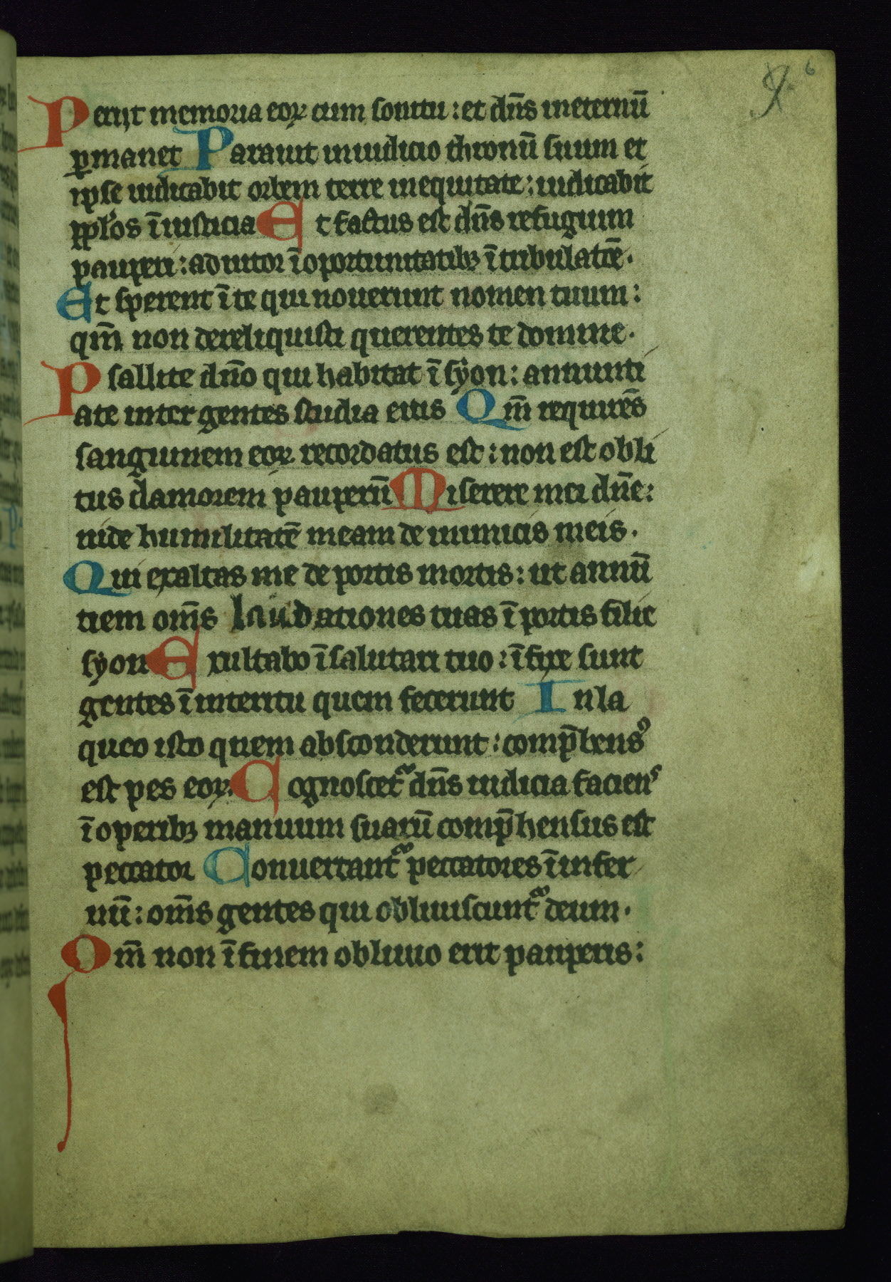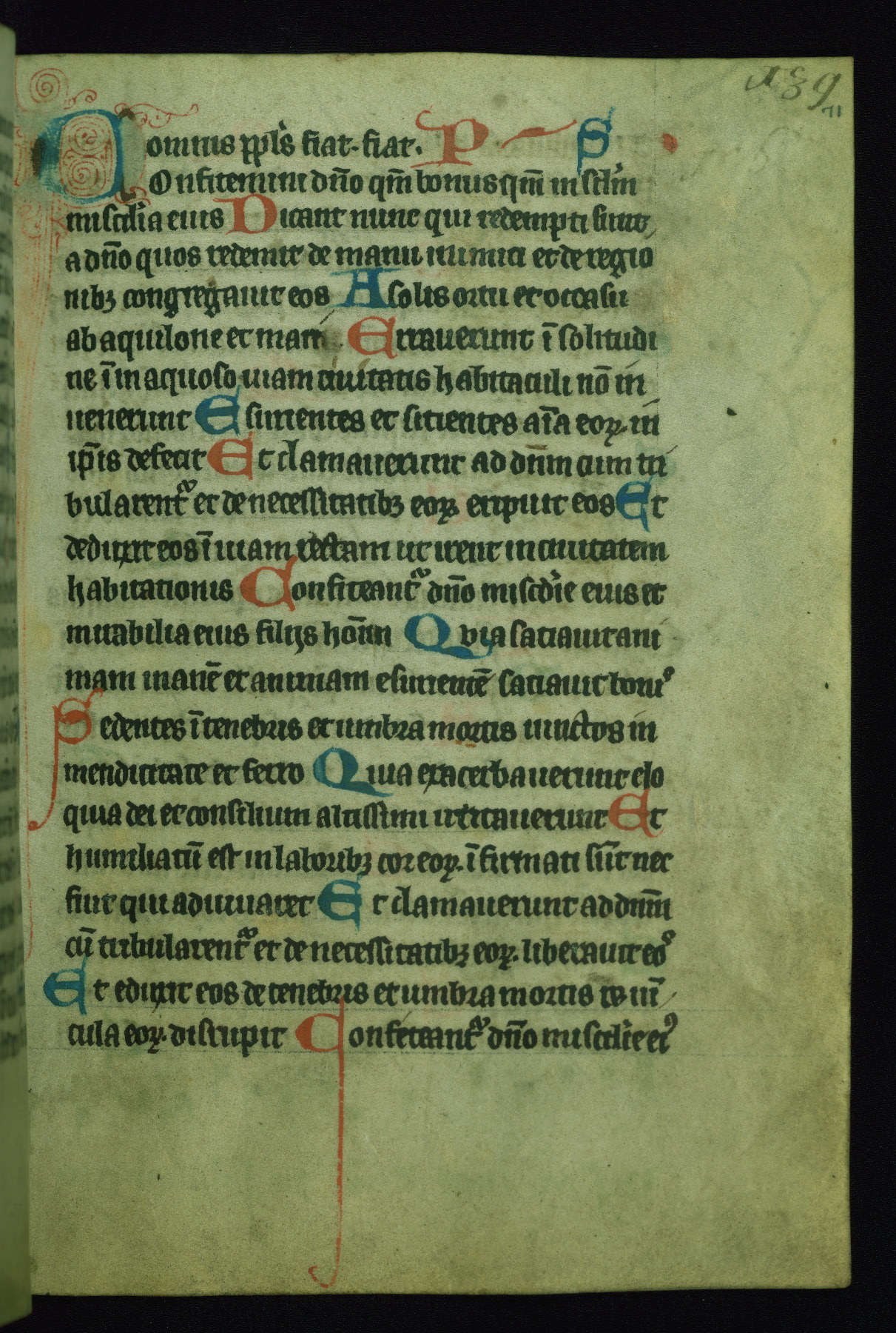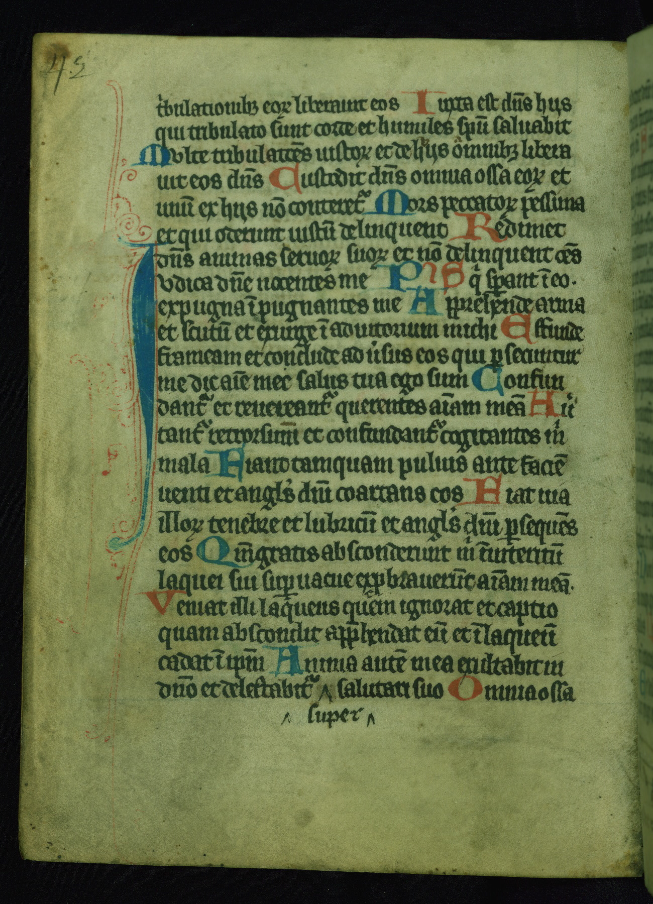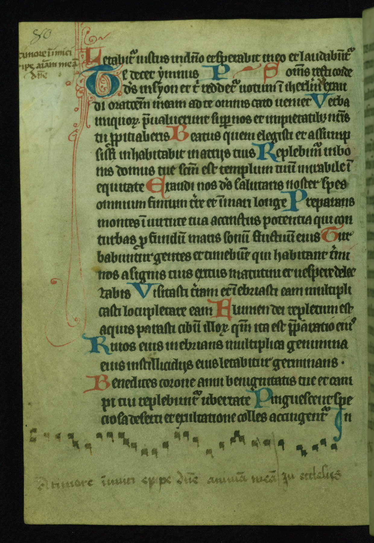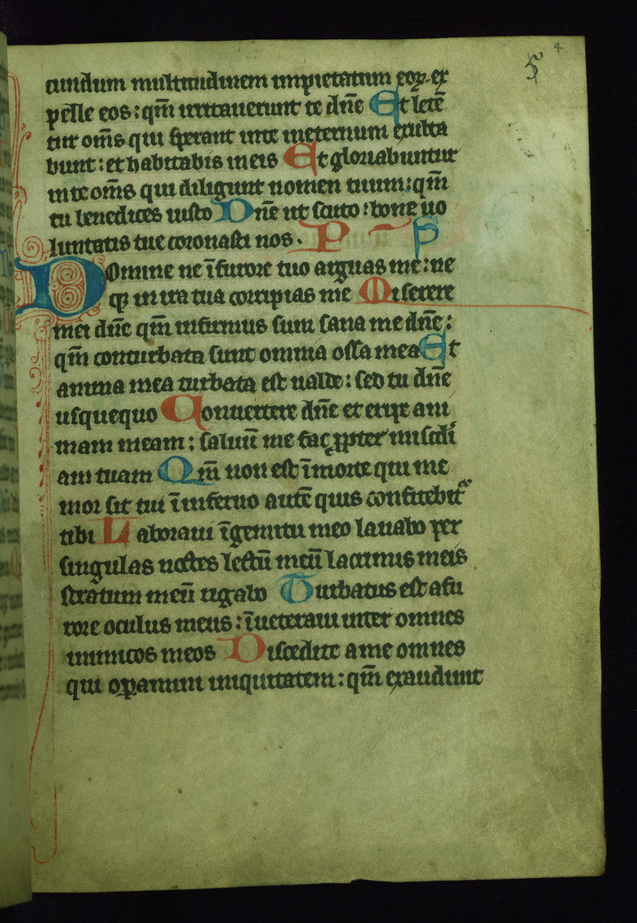 This Flemish Psalter was produced in the Hainaut region between 1265 and 1275. It was altered for Dominican use through the addition of antiphons in the margins in the late fifteenth century, at which point it was also rebound in its current inscribed leather binding. It was later among the books collected by Johann Anton Ramboux (1790-1866), a German painter and museum curator. The manuscript, which is illuminated throughout with twelve large historiated and inhabited initials, is a strong example of a group of manuscripts produced in the last quarter of the thirteenth century that combined the artistic styles of Hainaut and Liège, other examples including Paris, B.N. Lat. 1077, Biblioteca apostolica vaticana, BBR Ms. IV-1066, and Princeton University Art Museum 57.189.