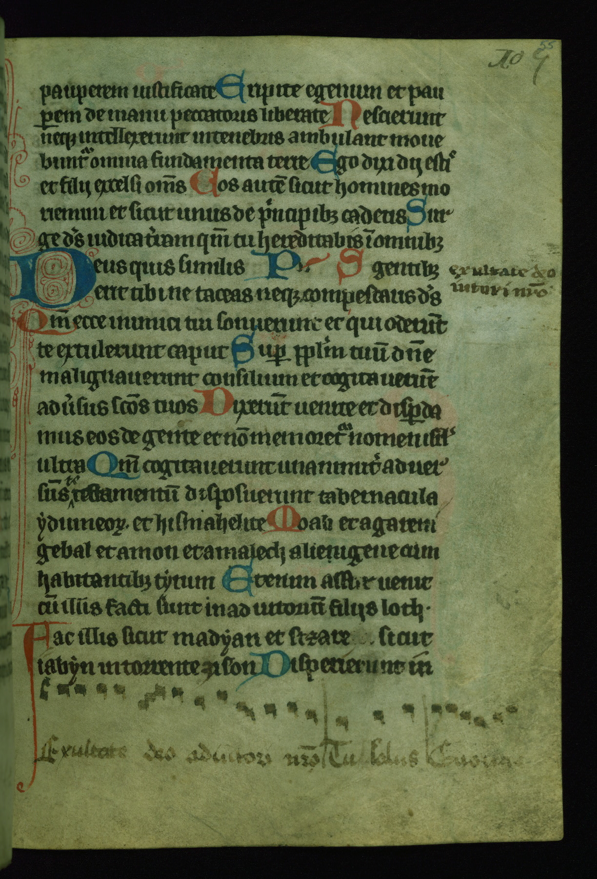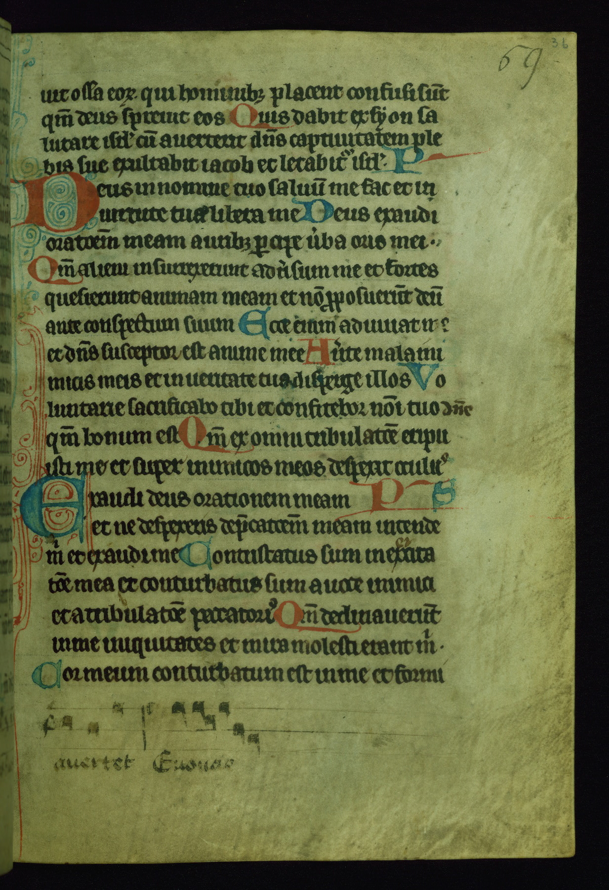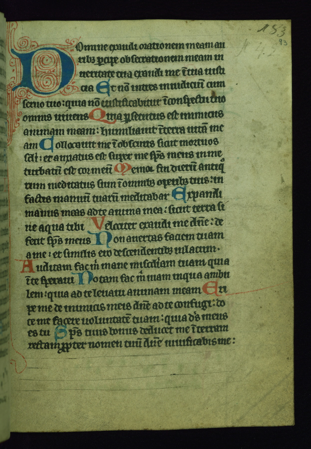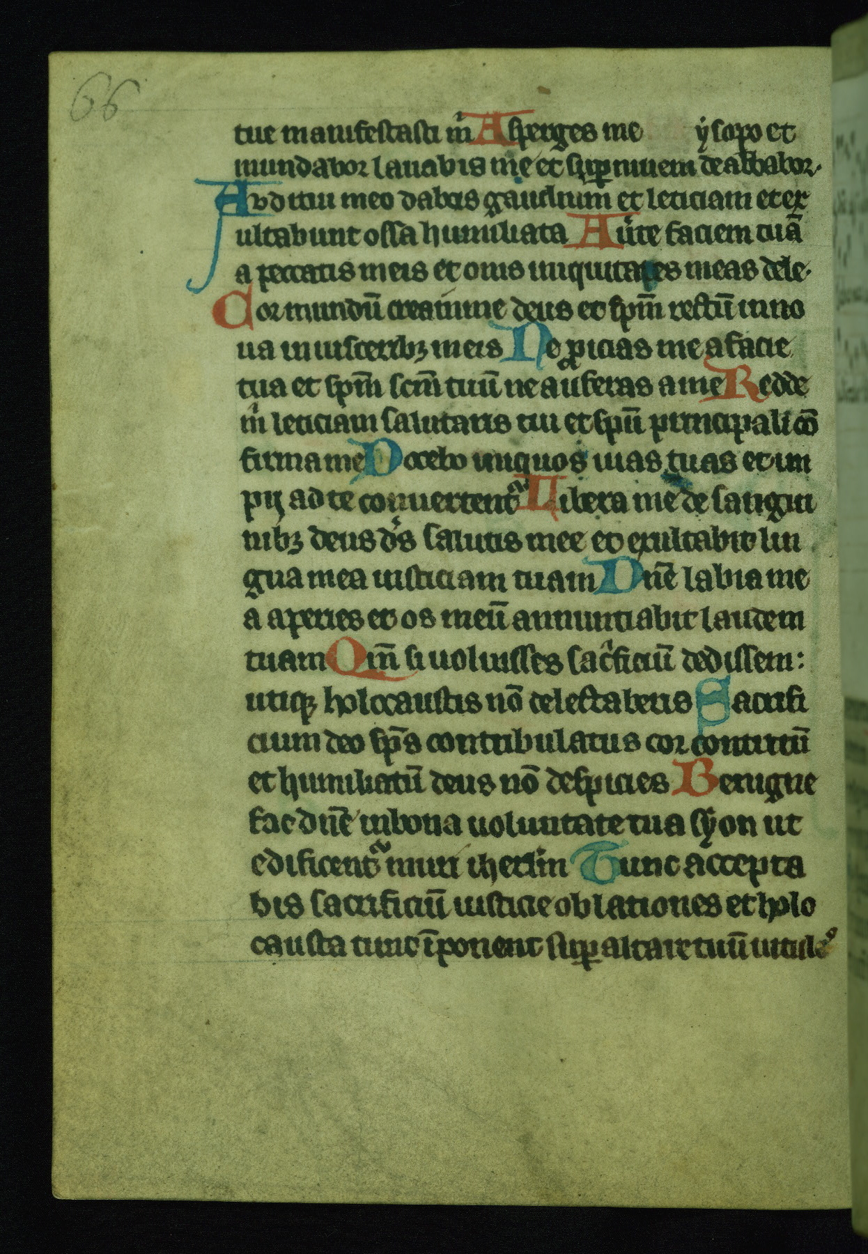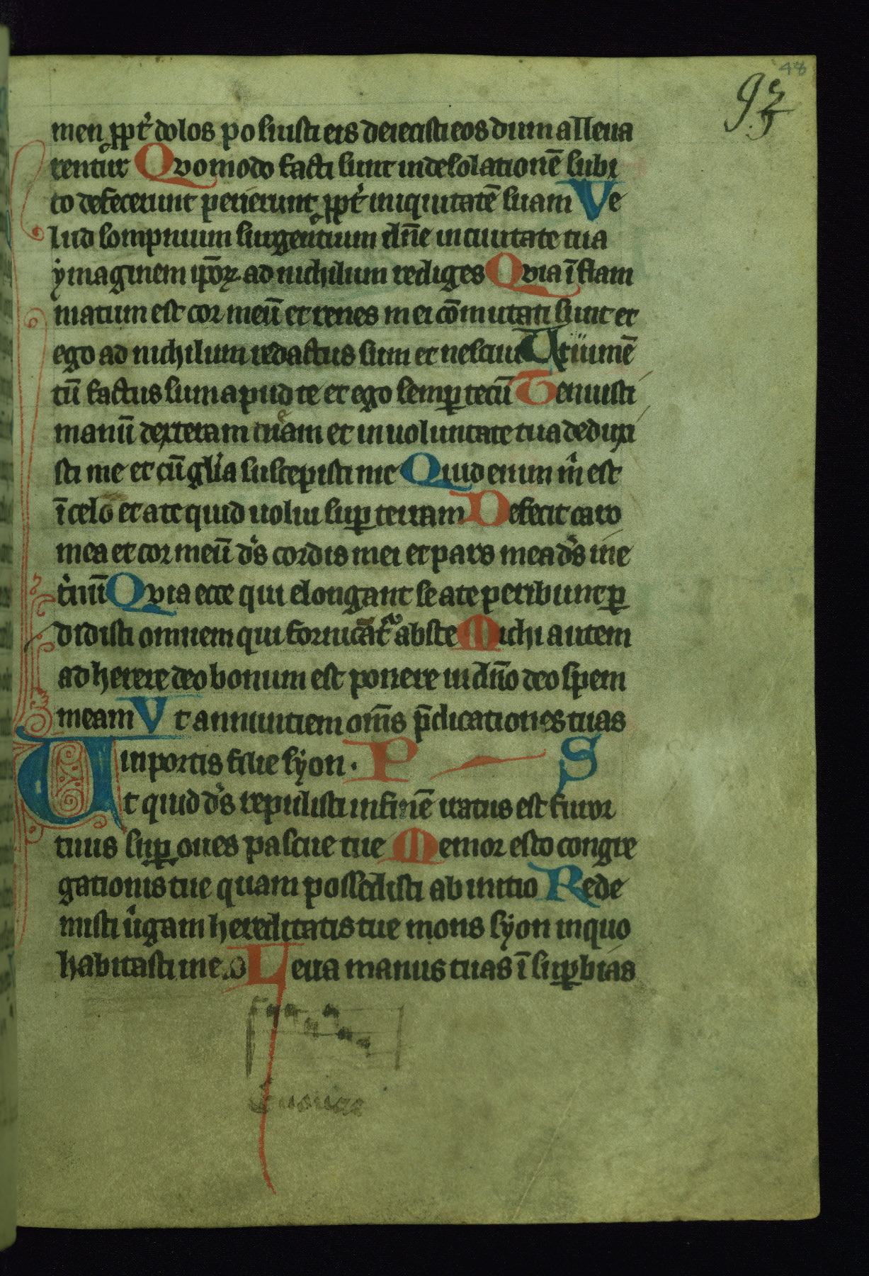 This Flemish Psalter was produced in the Hainaut region between 1265 and 1275. It was altered for Dominican use through the addition of antiphons in the margins in the late fifteenth century, at which point it was also rebound in its current inscribed leather binding. It was later among the books collected by Johann Anton Ramboux (1790-1866), a German painter and museum curator. The manuscript, which is illuminated throughout with twelve large historiated and inhabited initials, is a strong example of a group of manuscripts produced in the last quarter of the thirteenth century that combined the artistic styles of Hainaut and Liège, other examples including Paris, B.N. Lat. 1077, Biblioteca apostolica vaticana, BBR Ms. IV-1066, and Princeton University Art Museum 57.189.