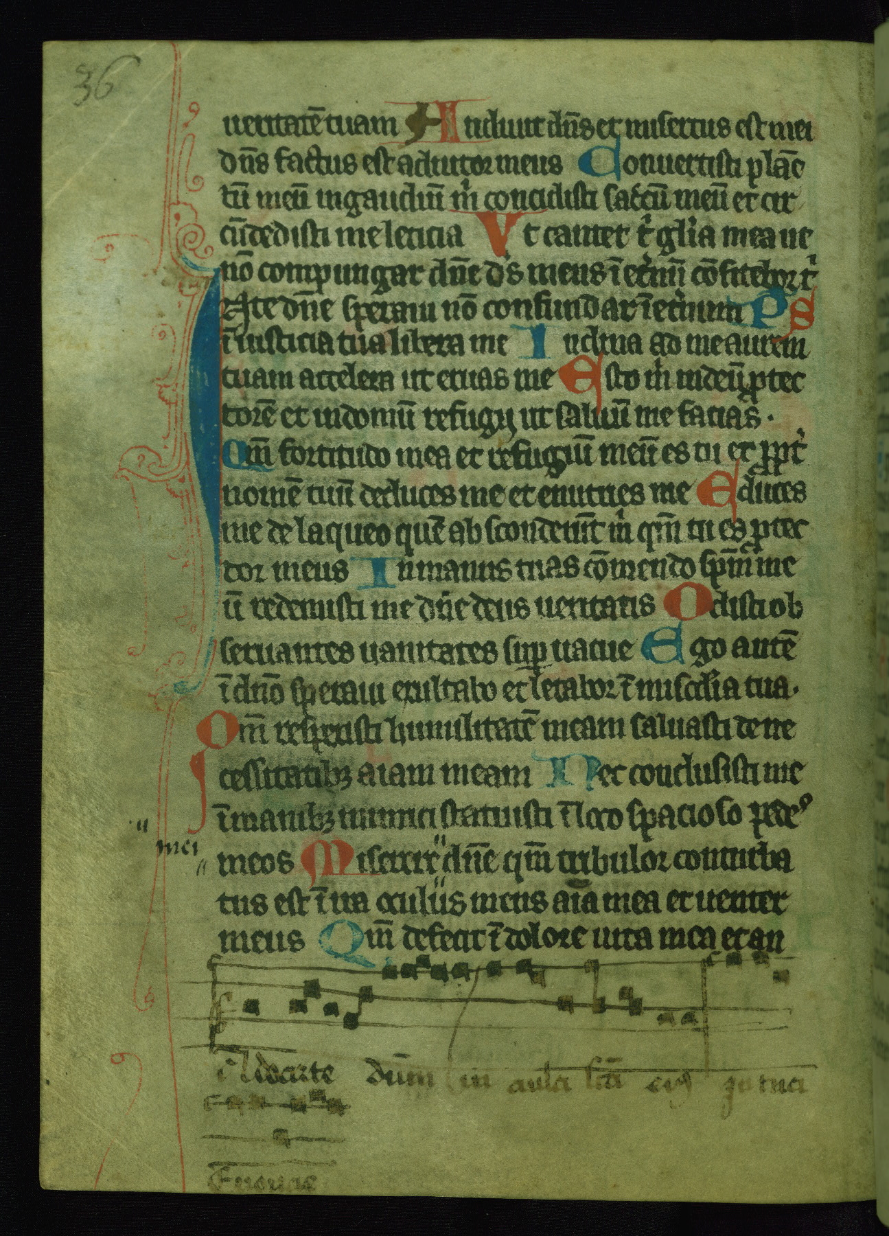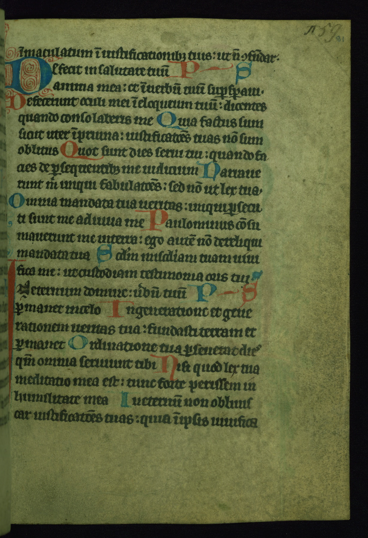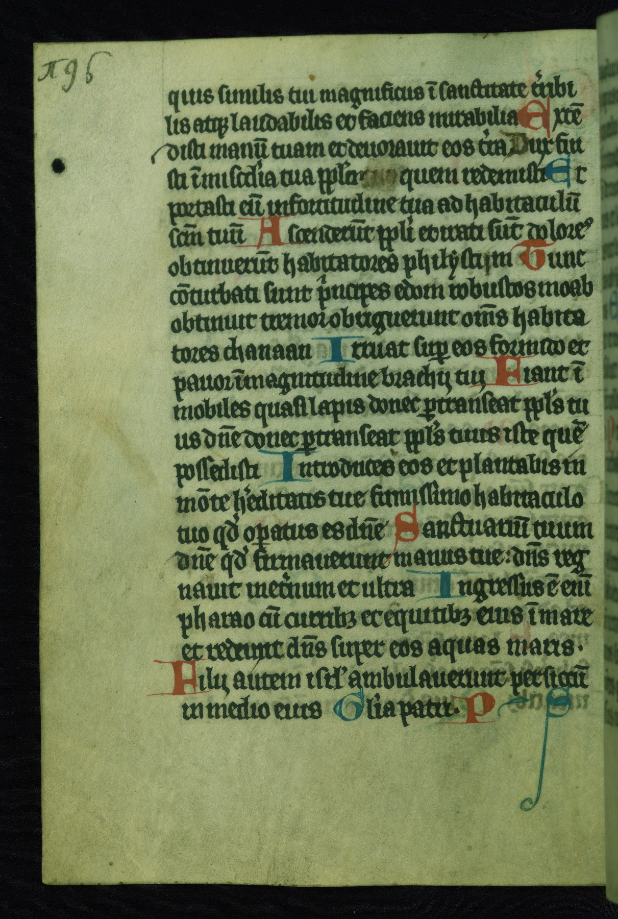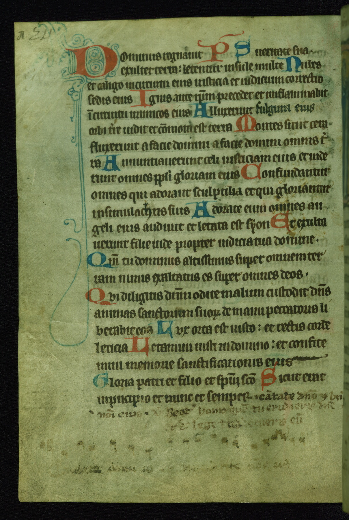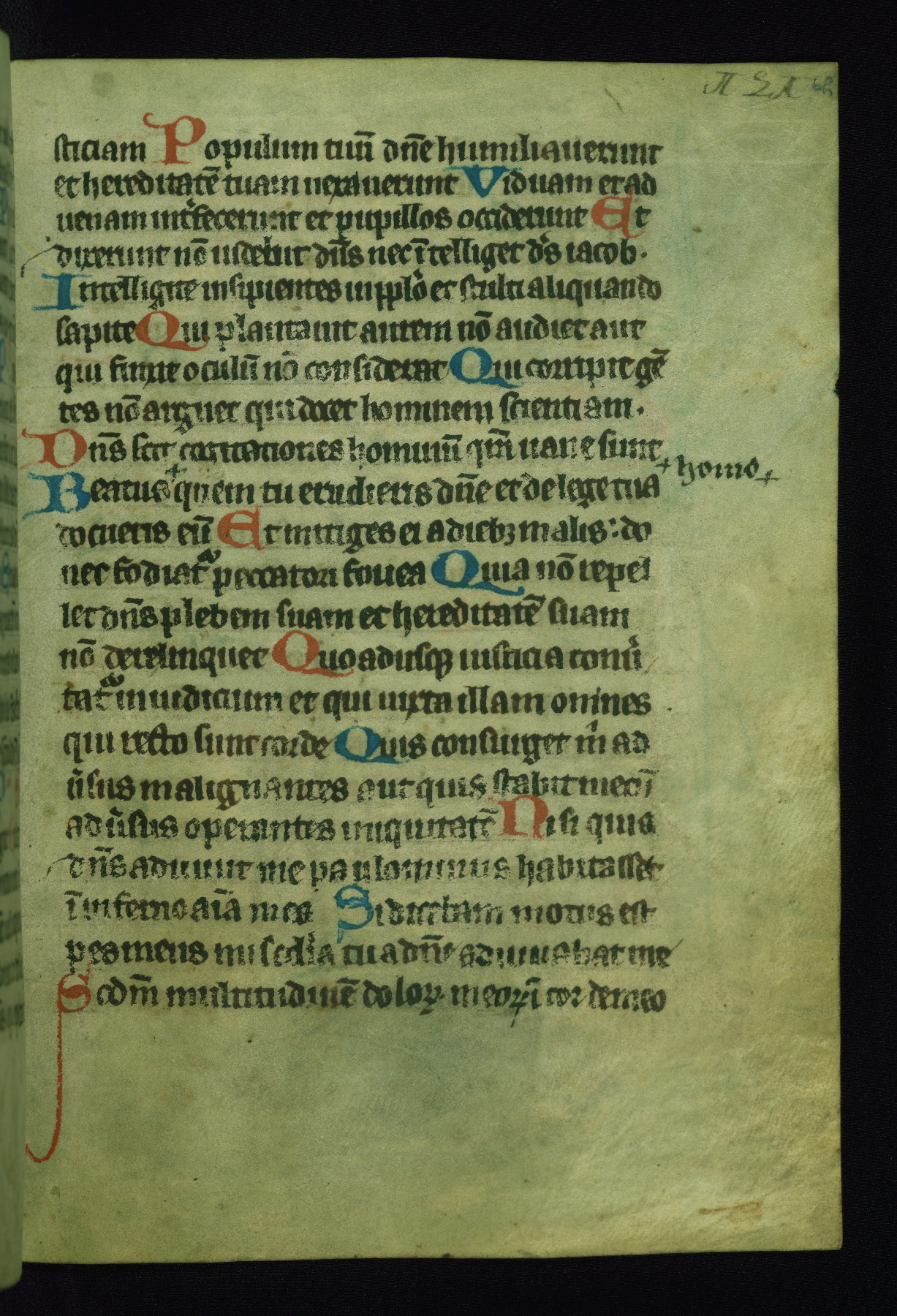 This Flemish Psalter was produced in the Hainaut region between 1265 and 1275. It was altered for Dominican use through the addition of antiphons in the margins in the late fifteenth century, at which point it was also rebound in its current inscribed leather binding. It was later among the books collected by Johann Anton Ramboux (1790-1866), a German painter and museum curator. The manuscript, which is illuminated throughout with twelve large historiated and inhabited initials, is a strong example of a group of manuscripts produced in the last quarter of the thirteenth century that combined the artistic styles of Hainaut and Liège, other examples including Paris, B.N. Lat. 1077, Biblioteca apostolica vaticana, BBR Ms. IV-1066, and Princeton University Art Museum 57.189.
