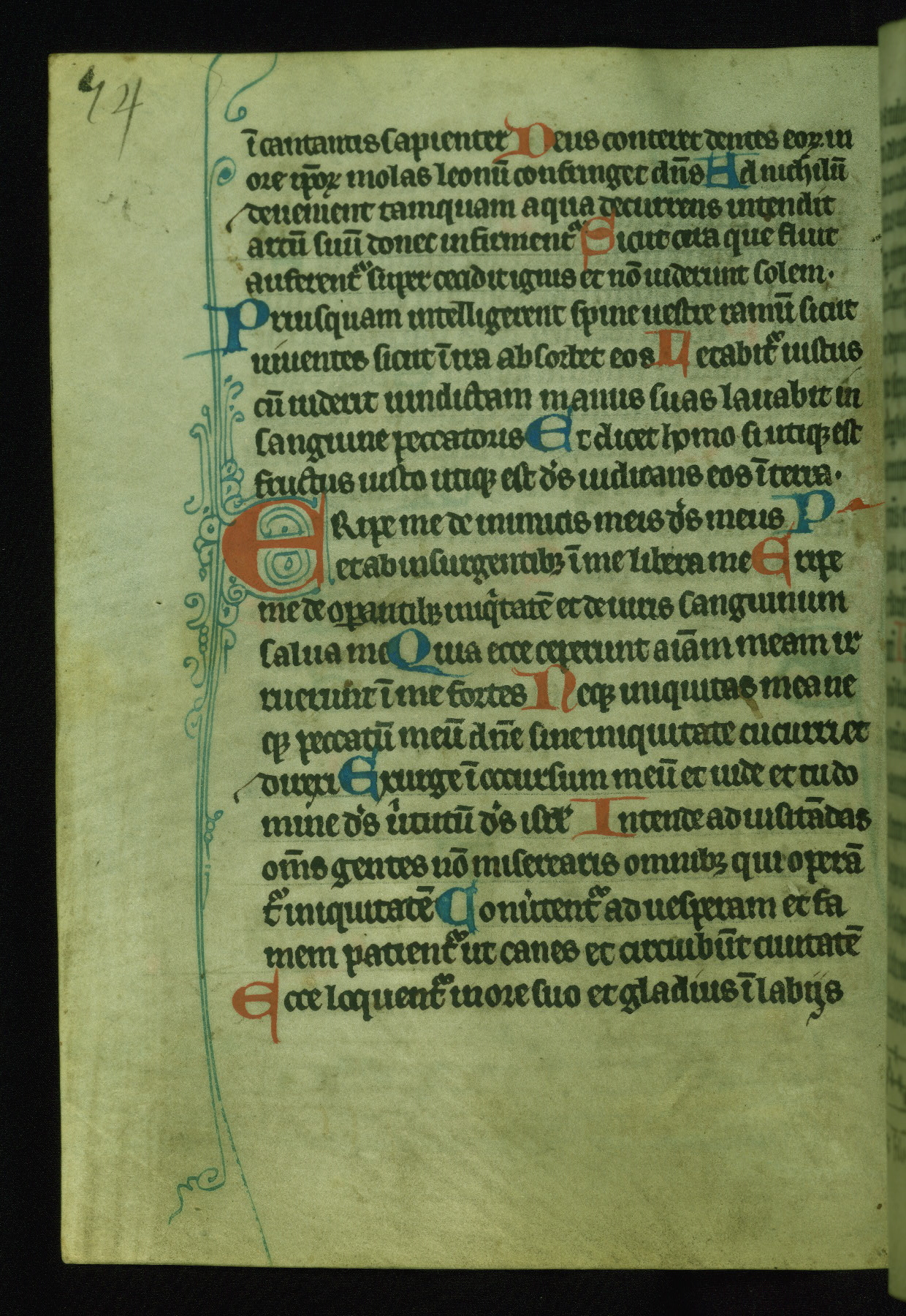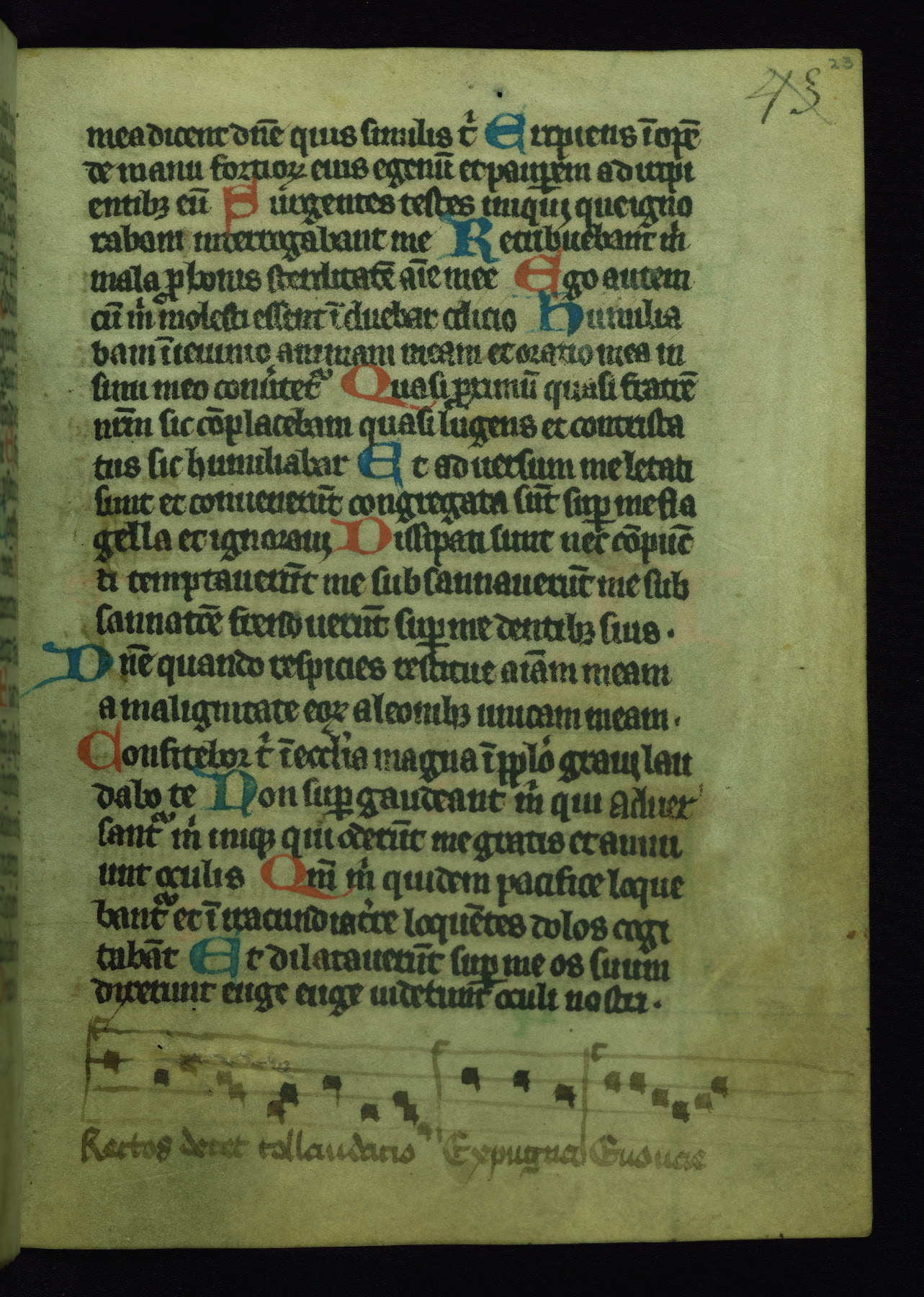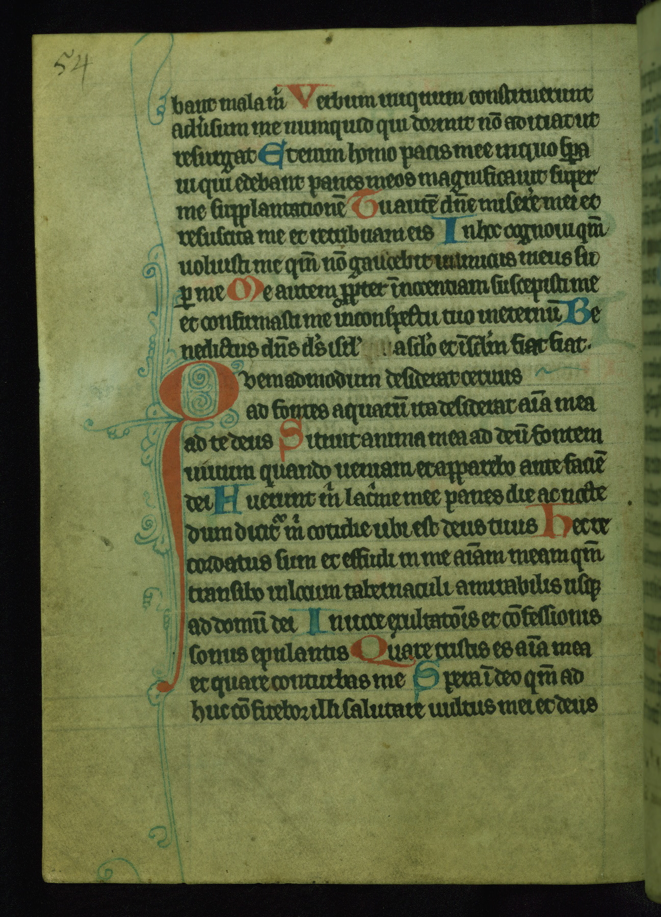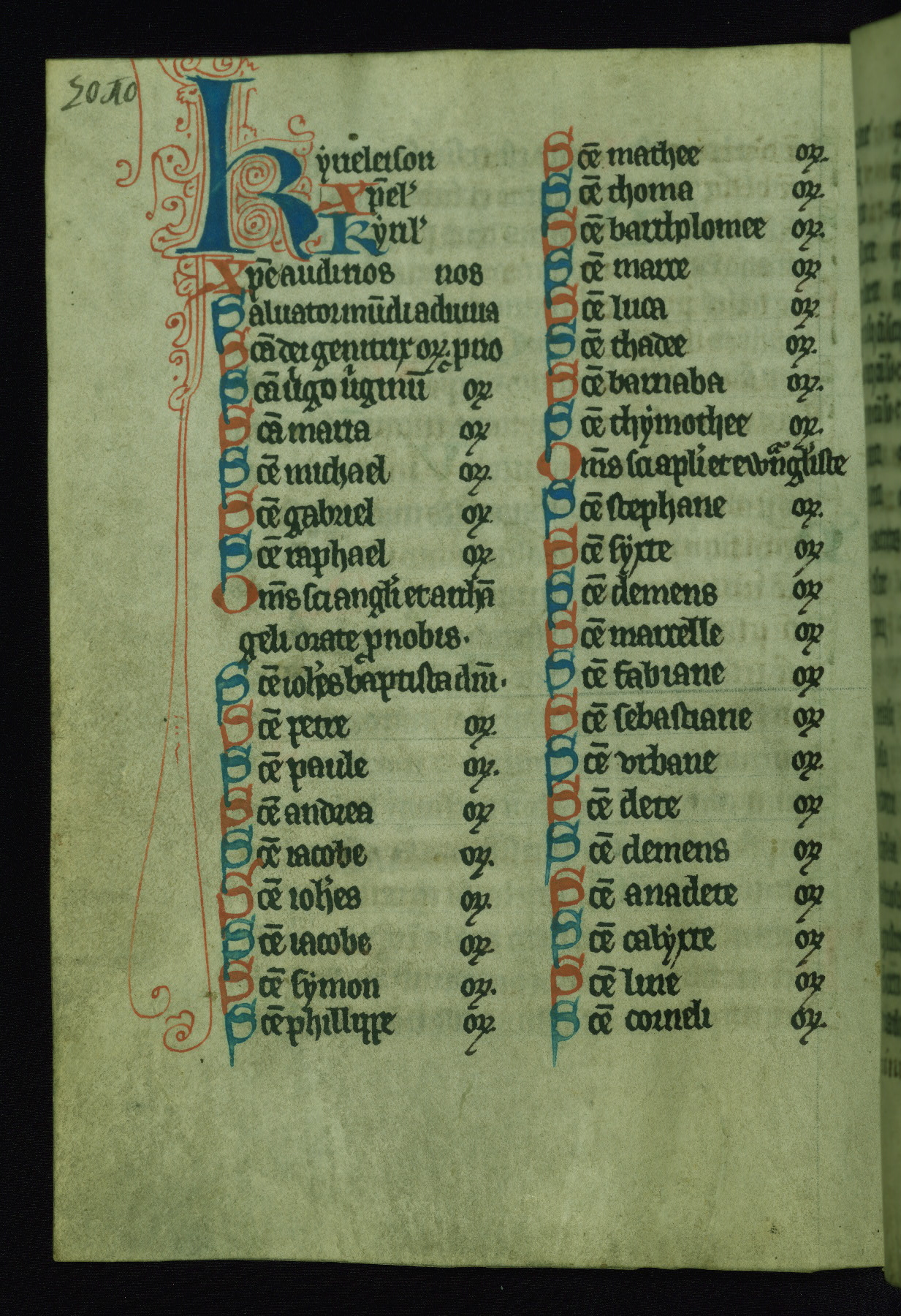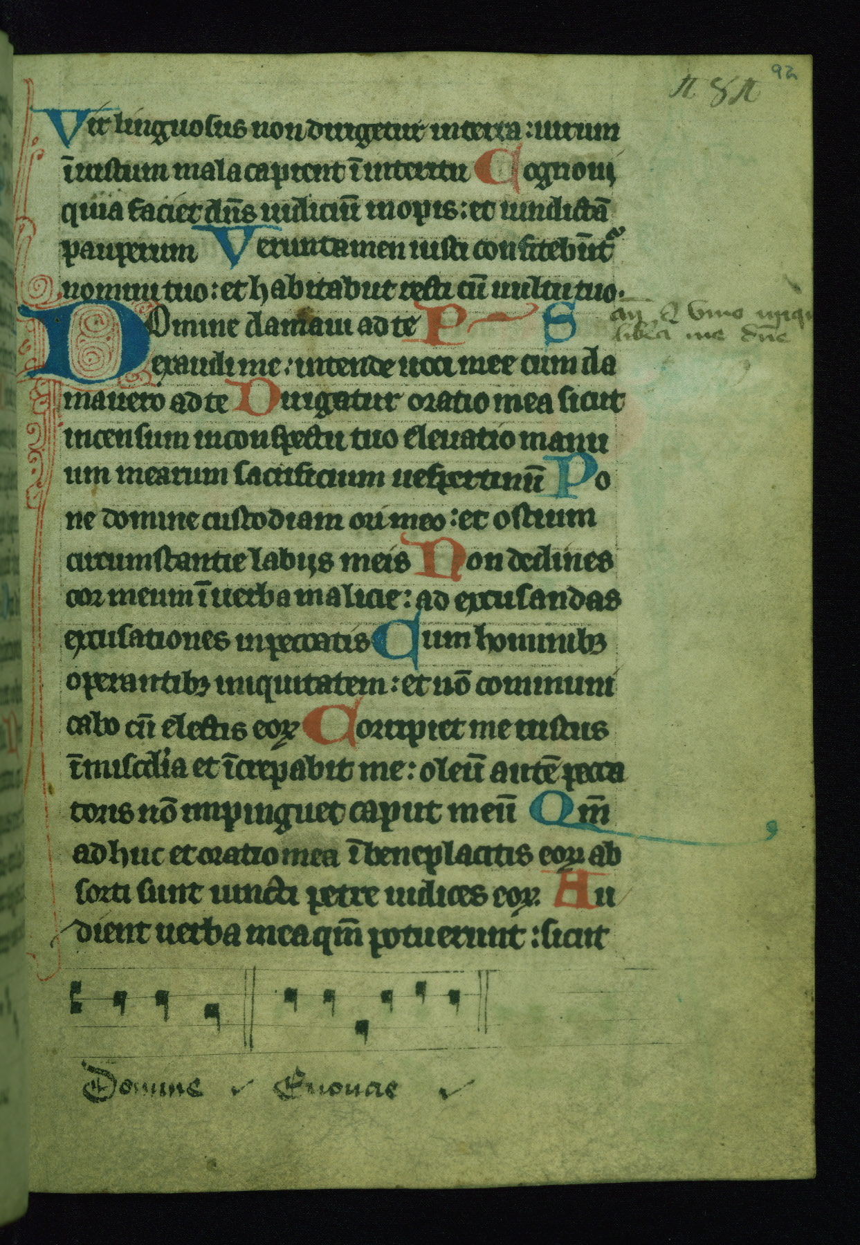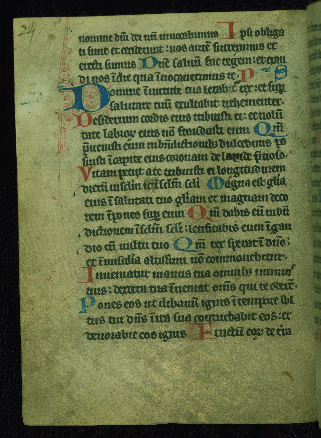 This Flemish Psalter was produced in the Hainaut region between 1265 and 1275. It was altered for Dominican use through the addition of antiphons in the margins in the late fifteenth century, at which point it was also rebound in its current inscribed leather binding. It was later among the books collected by Johann Anton Ramboux (1790-1866), a German painter and museum curator. The manuscript, which is illuminated throughout with twelve large historiated and inhabited initials, is a strong example of a group of manuscripts produced in the last quarter of the thirteenth century that combined the artistic styles of Hainaut and Liège, other examples including Paris, B.N. Lat. 1077, Biblioteca apostolica vaticana, BBR Ms. IV-1066, and Princeton University Art Museum 57.189.