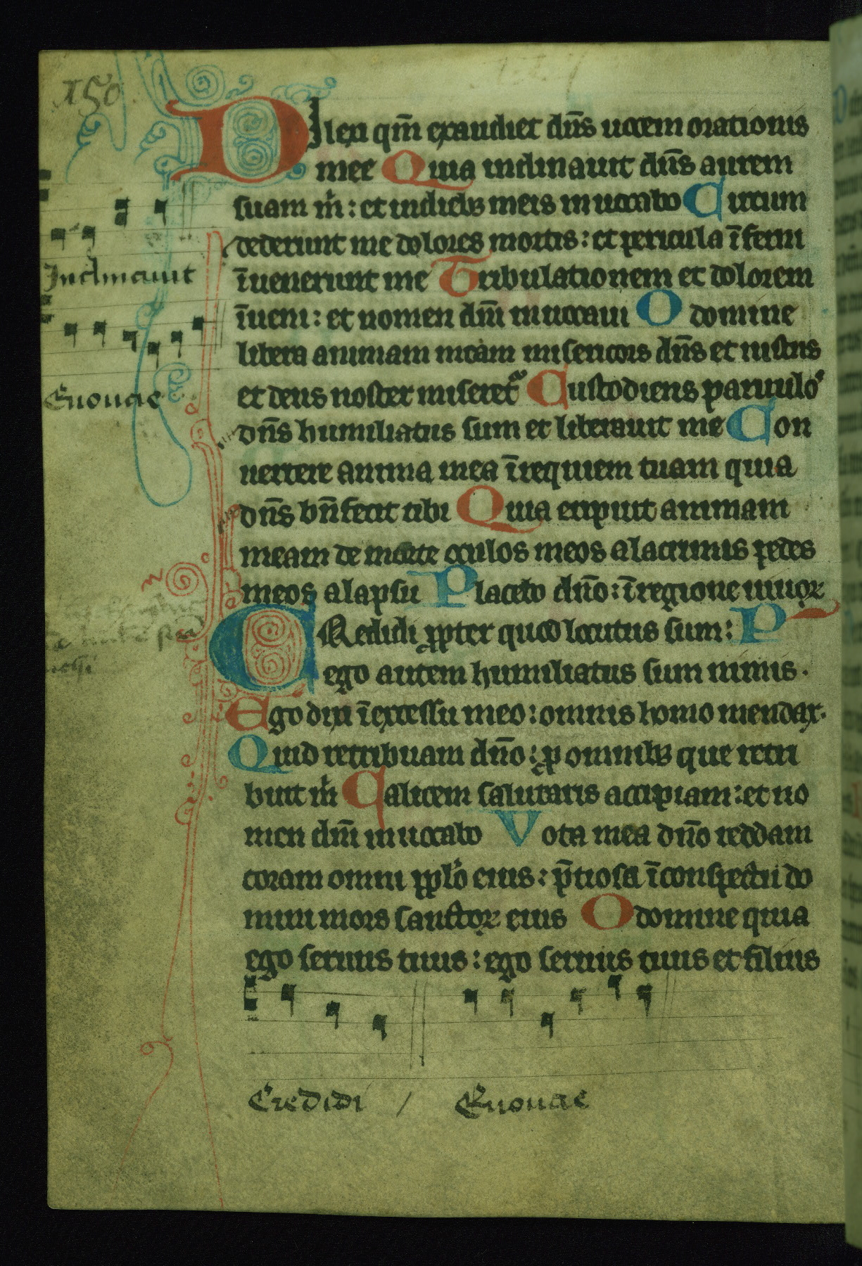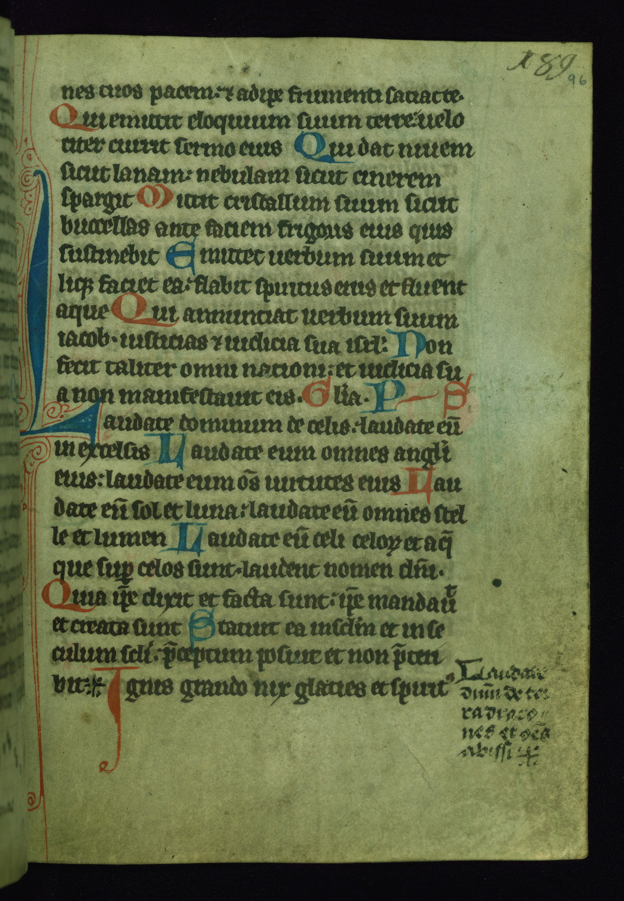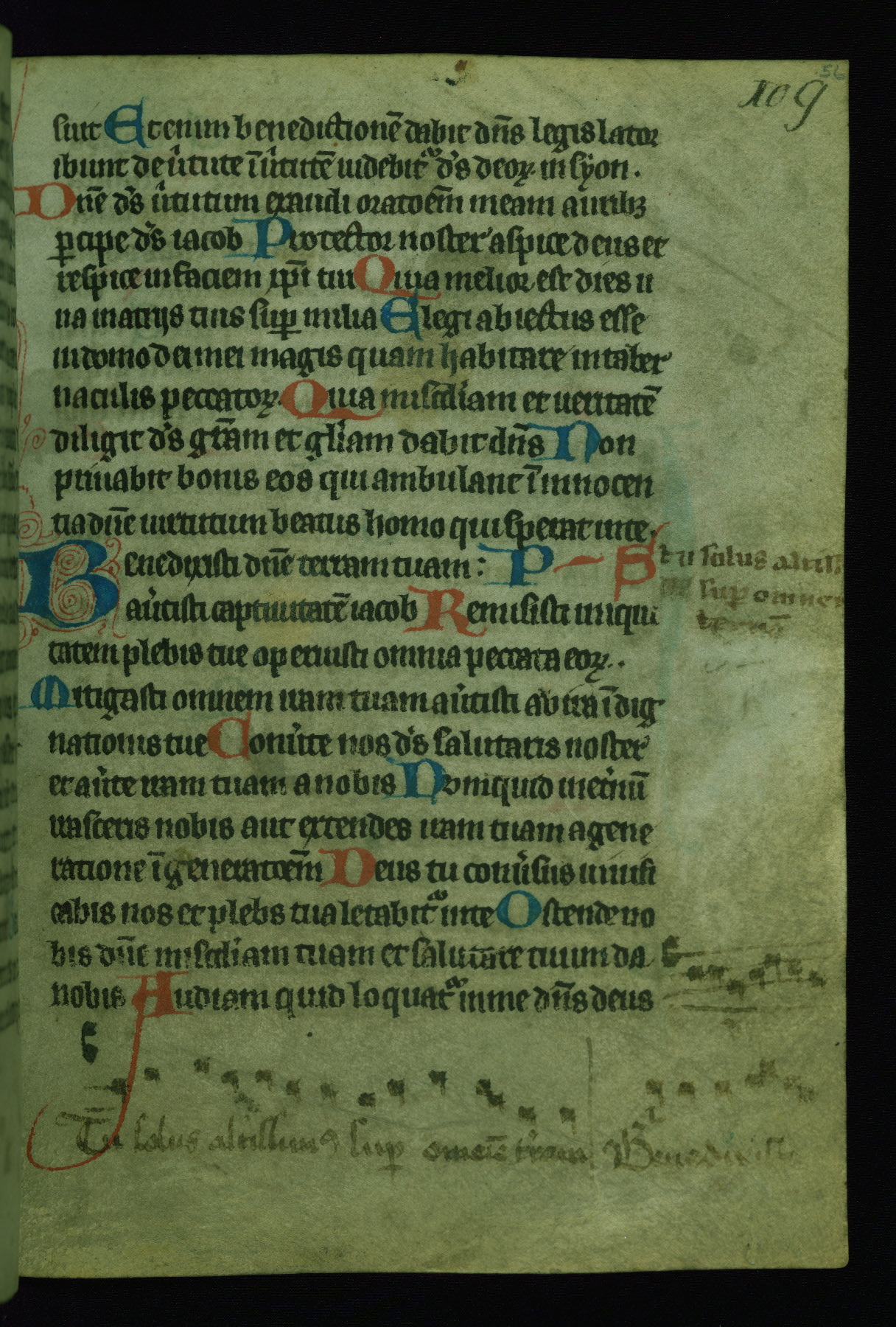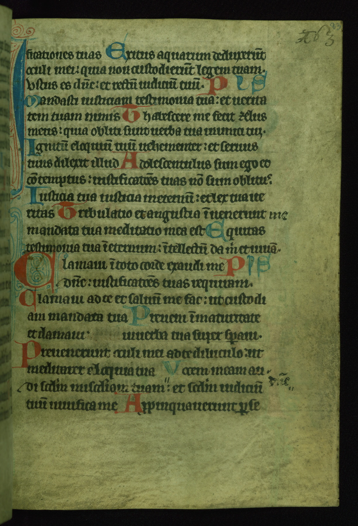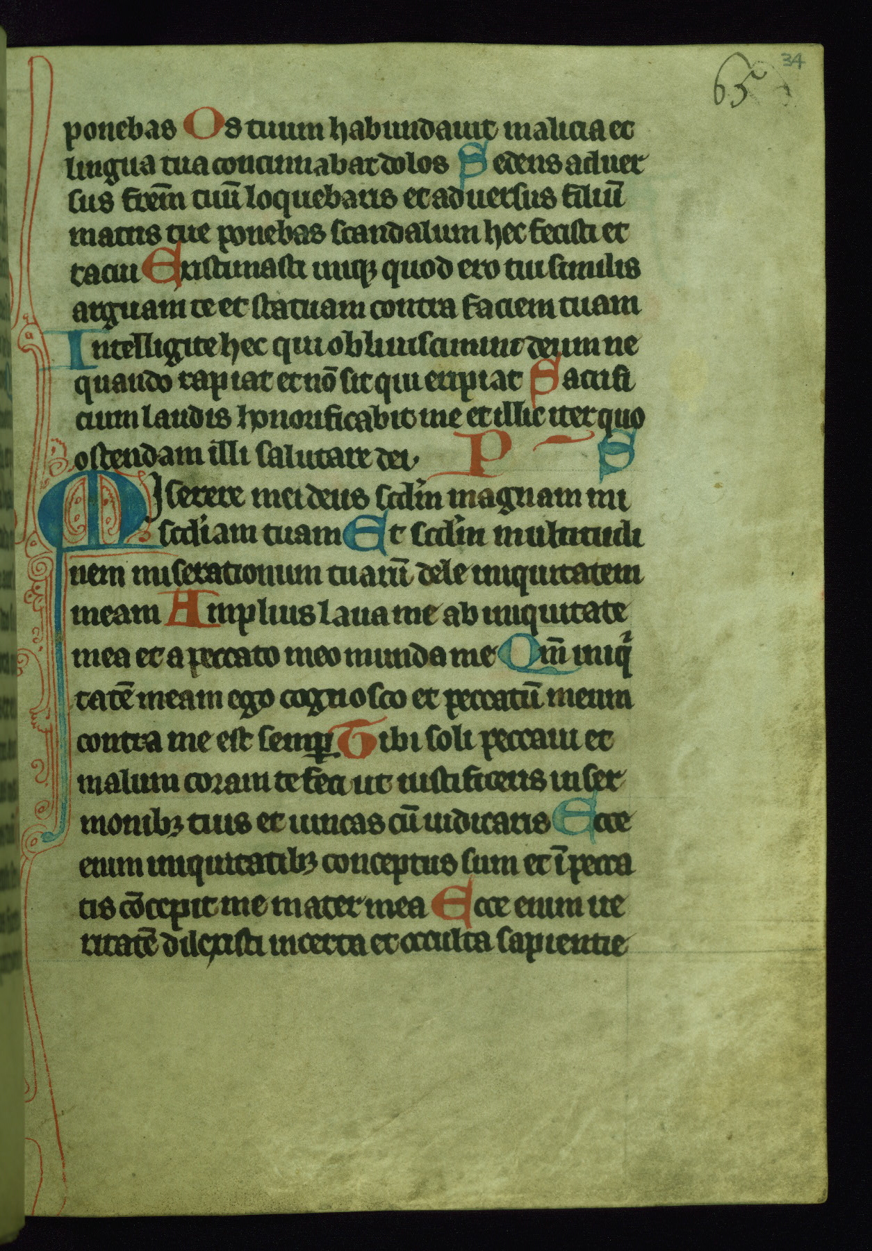 This Flemish Psalter was produced in the Hainaut region between 1265 and 1275. It was altered for Dominican use through the addition of antiphons in the margins in the late fifteenth century, at which point it was also rebound in its current inscribed leather binding. It was later among the books collected by Johann Anton Ramboux (1790-1866), a German painter and museum curator. The manuscript, which is illuminated throughout with twelve large historiated and inhabited initials, is a strong example of a group of manuscripts produced in the last quarter of the thirteenth century that combined the artistic styles of Hainaut and Liège, other examples including Paris, B.N. Lat. 1077, Biblioteca apostolica vaticana, BBR Ms. IV-1066, and Princeton University Art Museum 57.189.