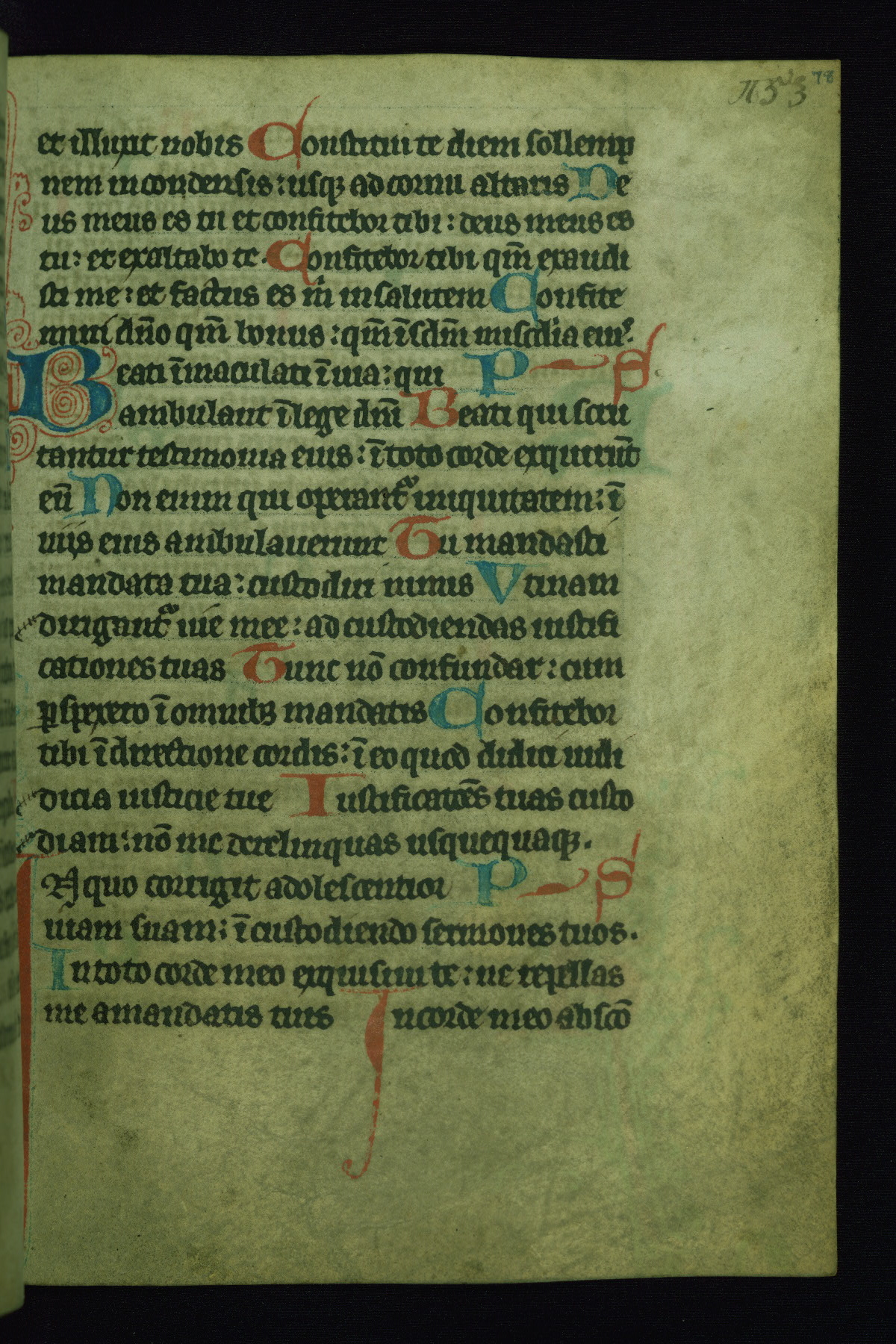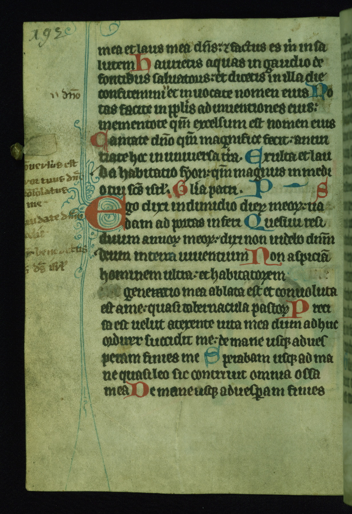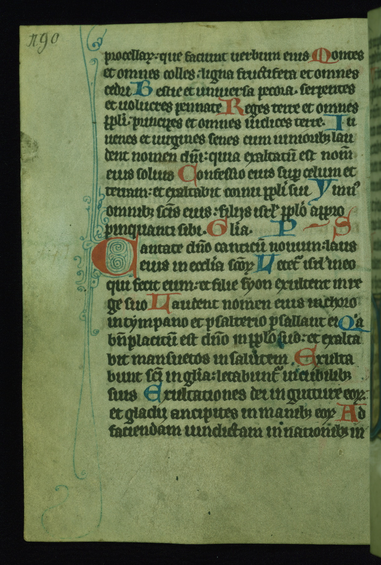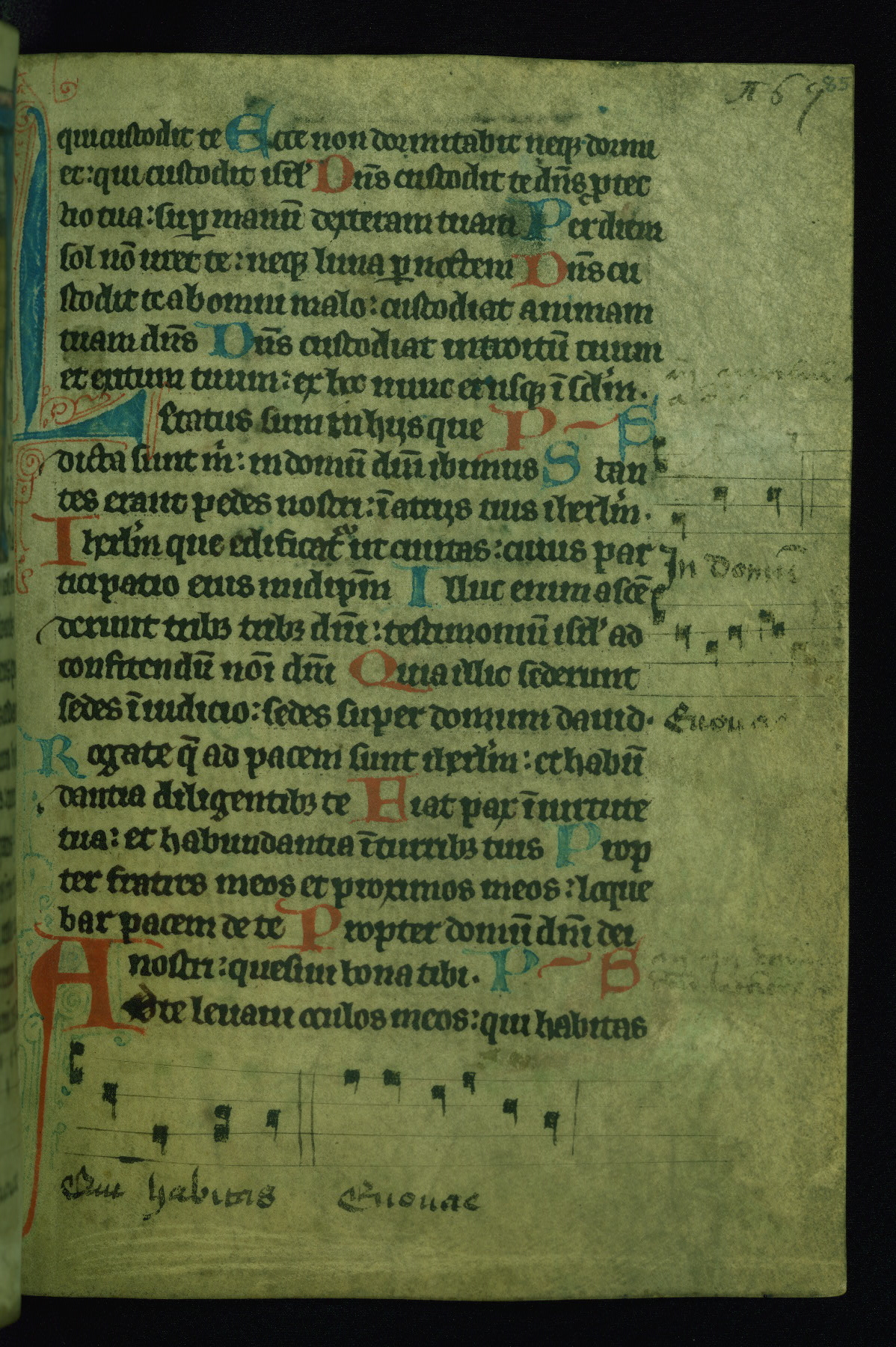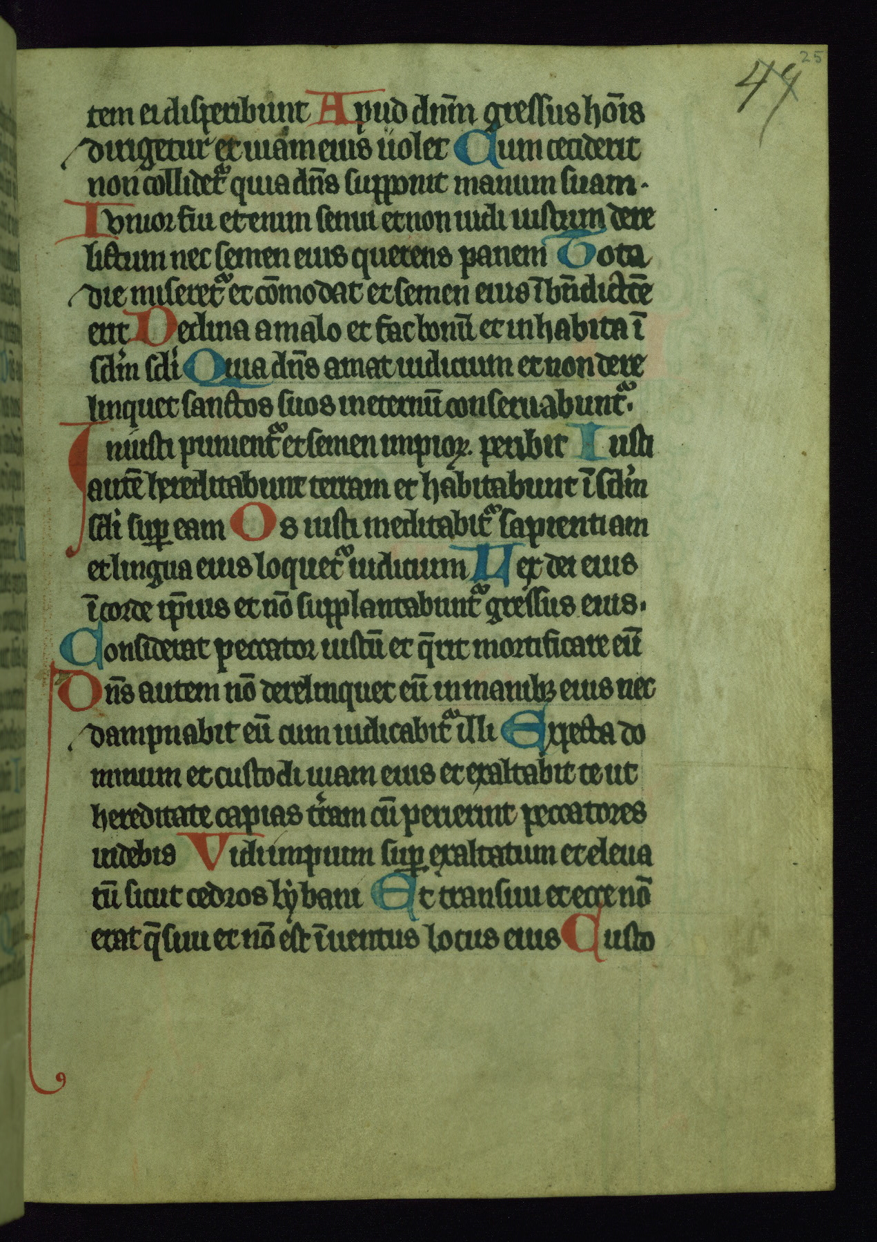 This Flemish Psalter was produced in the Hainaut region between 1265 and 1275. It was altered for Dominican use through the addition of antiphons in the margins in the late fifteenth century, at which point it was also rebound in its current inscribed leather binding. It was later among the books collected by Johann Anton Ramboux (1790-1866), a German painter and museum curator. The manuscript, which is illuminated throughout with twelve large historiated and inhabited initials, is a strong example of a group of manuscripts produced in the last quarter of the thirteenth century that combined the artistic styles of Hainaut and Liège, other examples including Paris, B.N. Lat. 1077, Biblioteca apostolica vaticana, BBR Ms. IV-1066, and Princeton University Art Museum 57.189.