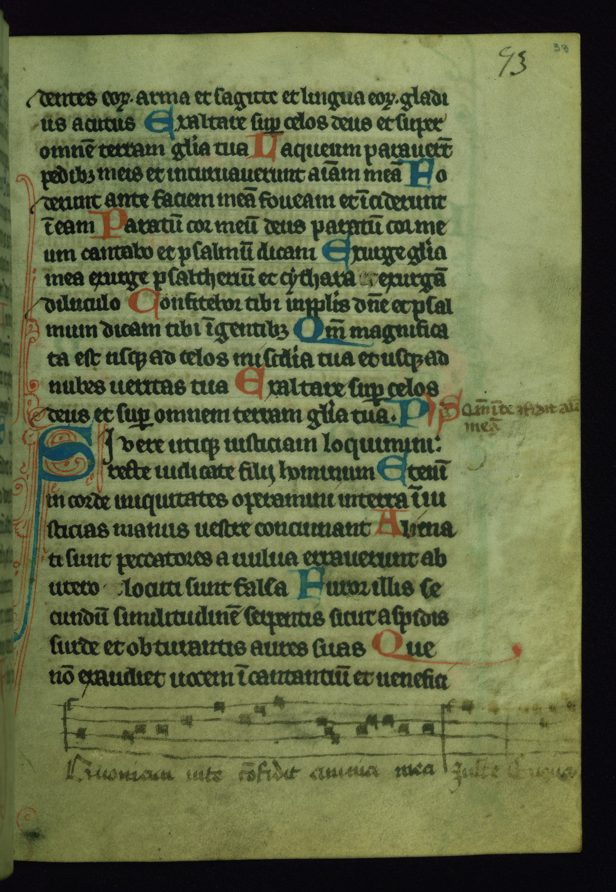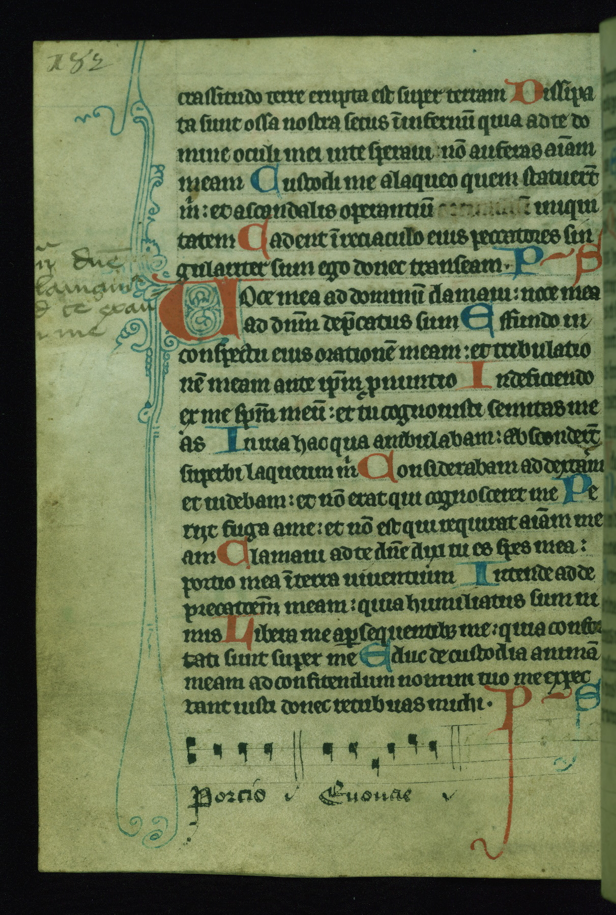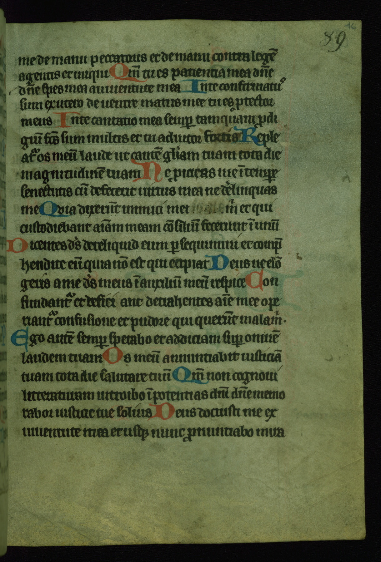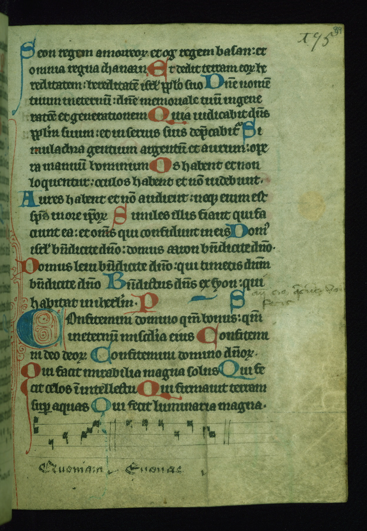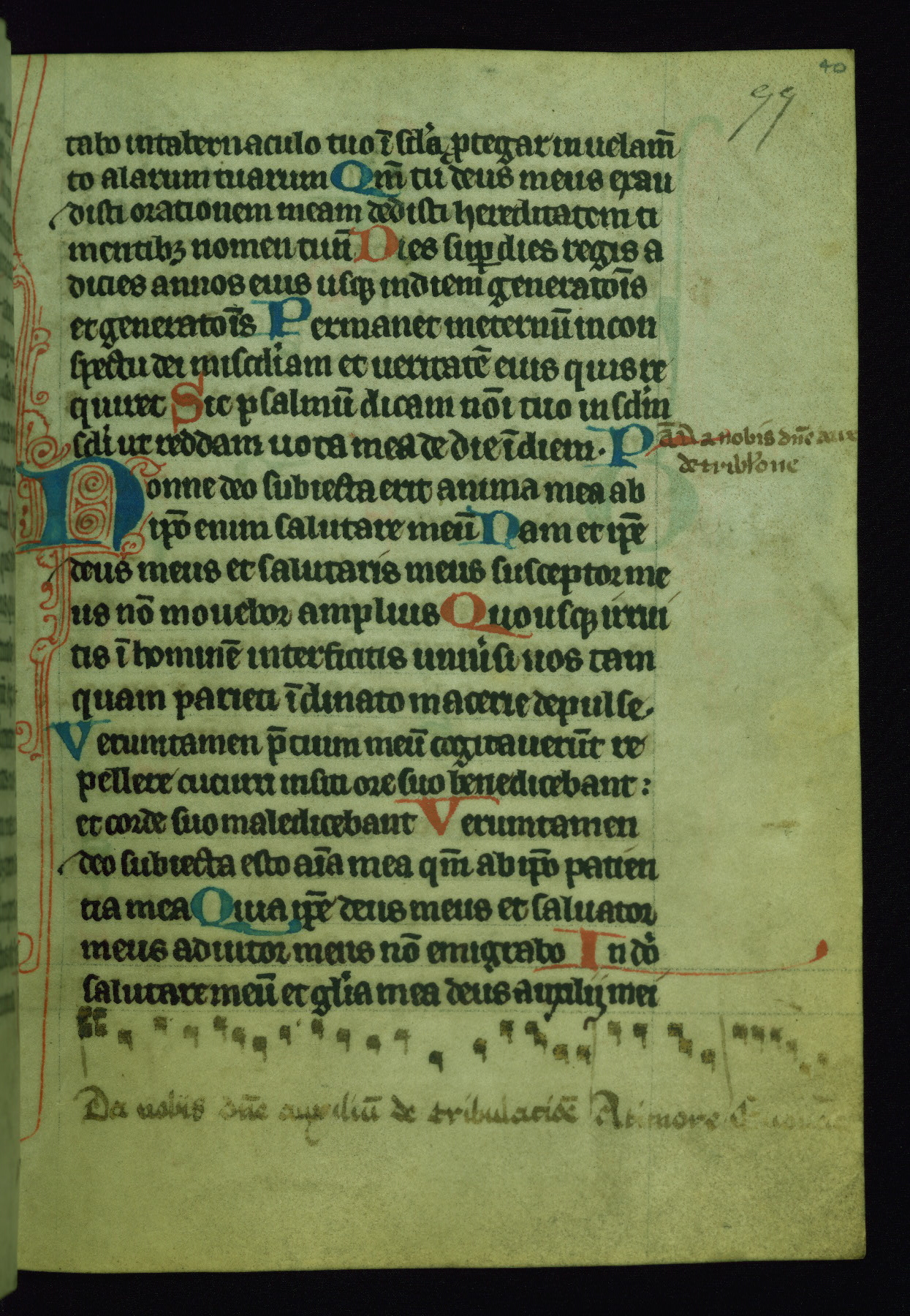 This Flemish Psalter was produced in the Hainaut region between 1265 and 1275. It was altered for Dominican use through the addition of antiphons in the margins in the late fifteenth century, at which point it was also rebound in its current inscribed leather binding. It was later among the books collected by Johann Anton Ramboux (1790-1866), a German painter and museum curator. The manuscript, which is illuminated throughout with twelve large historiated and inhabited initials, is a strong example of a group of manuscripts produced in the last quarter of the thirteenth century that combined the artistic styles of Hainaut and Liège, other examples including Paris, B.N. Lat. 1077, Biblioteca apostolica vaticana, BBR Ms. IV-1066, and Princeton University Art Museum 57.189.