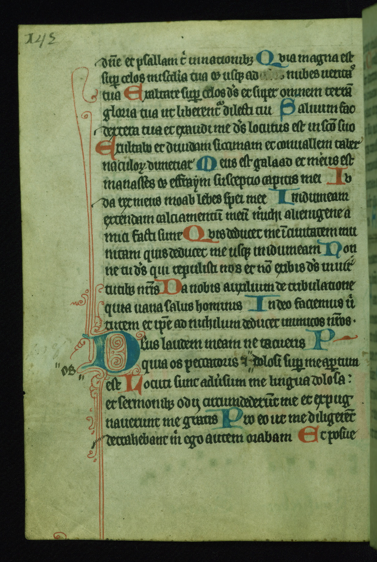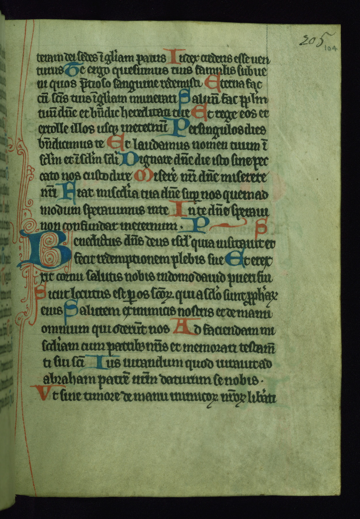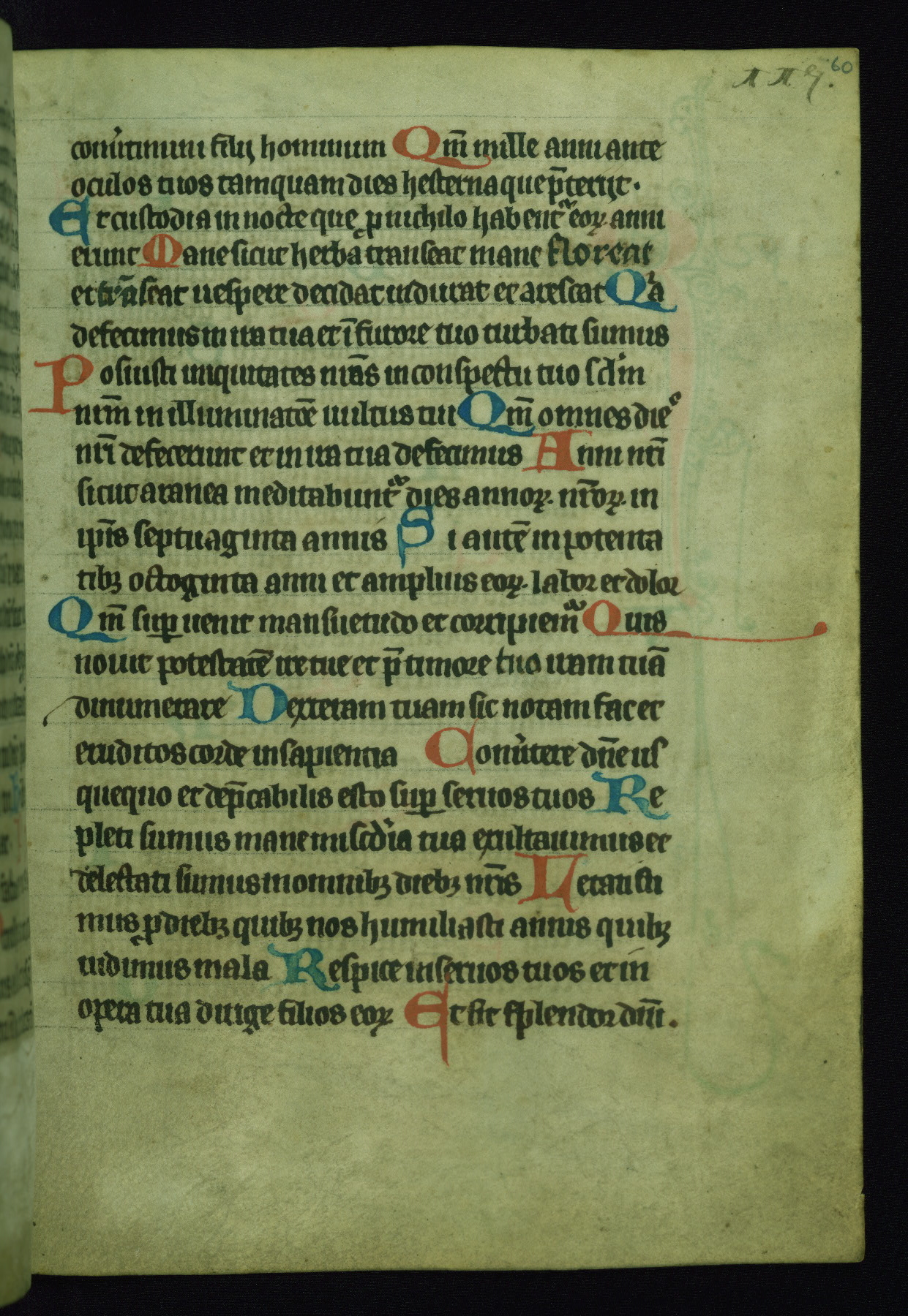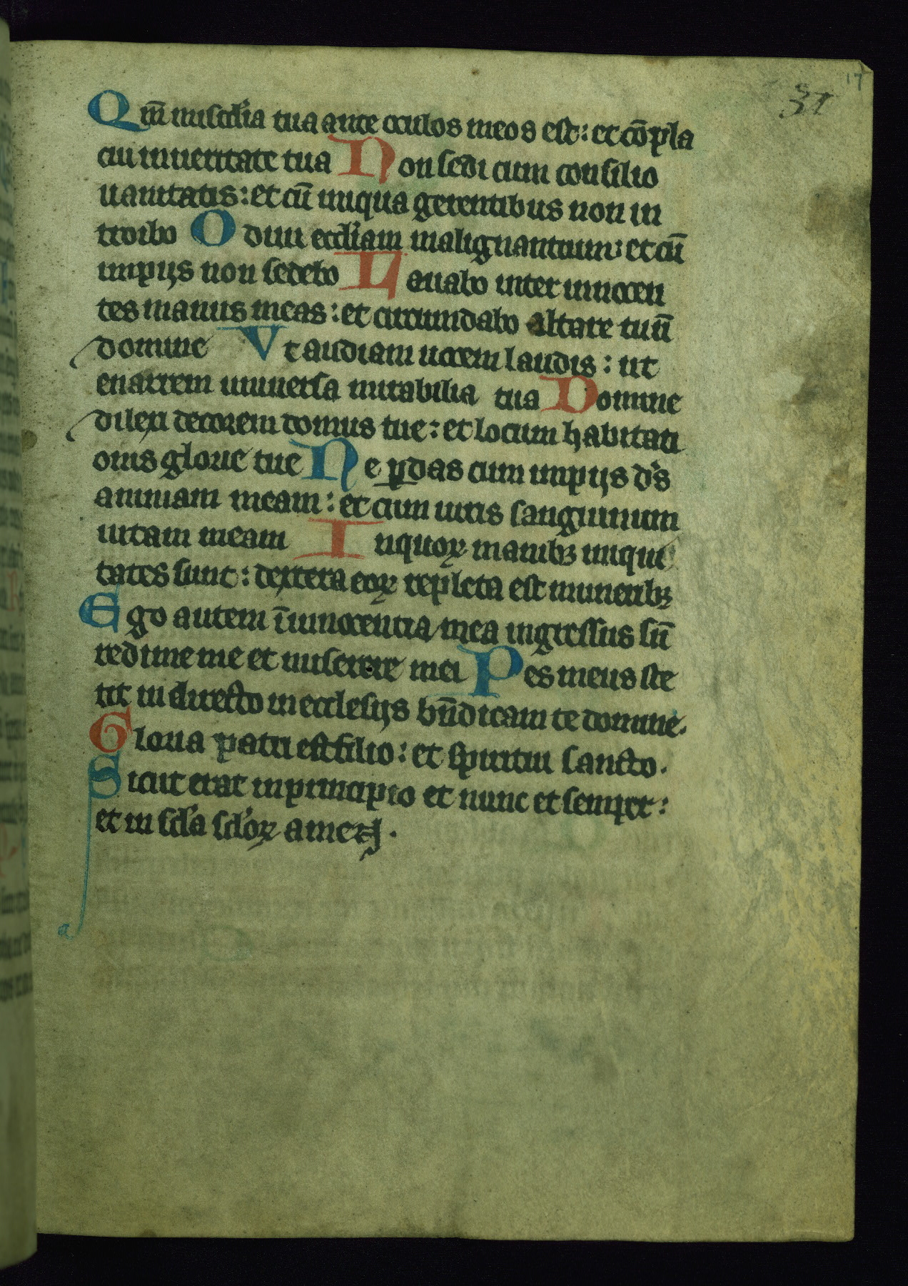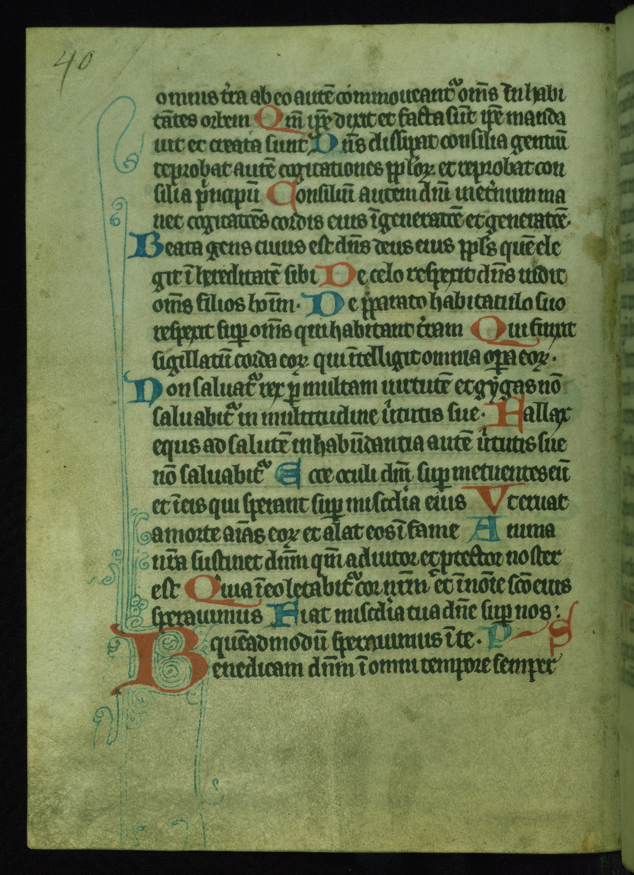 This Flemish Psalter was produced in the Hainaut region between 1265 and 1275. It was altered for Dominican use through the addition of antiphons in the margins in the late fifteenth century, at which point it was also rebound in its current inscribed leather binding. It was later among the books collected by Johann Anton Ramboux (1790-1866), a German painter and museum curator. The manuscript, which is illuminated throughout with twelve large historiated and inhabited initials, is a strong example of a group of manuscripts produced in the last quarter of the thirteenth century that combined the artistic styles of Hainaut and Liège, other examples including Paris, B.N. Lat. 1077, Biblioteca apostolica vaticana, BBR Ms. IV-1066, and Princeton University Art Museum 57.189.