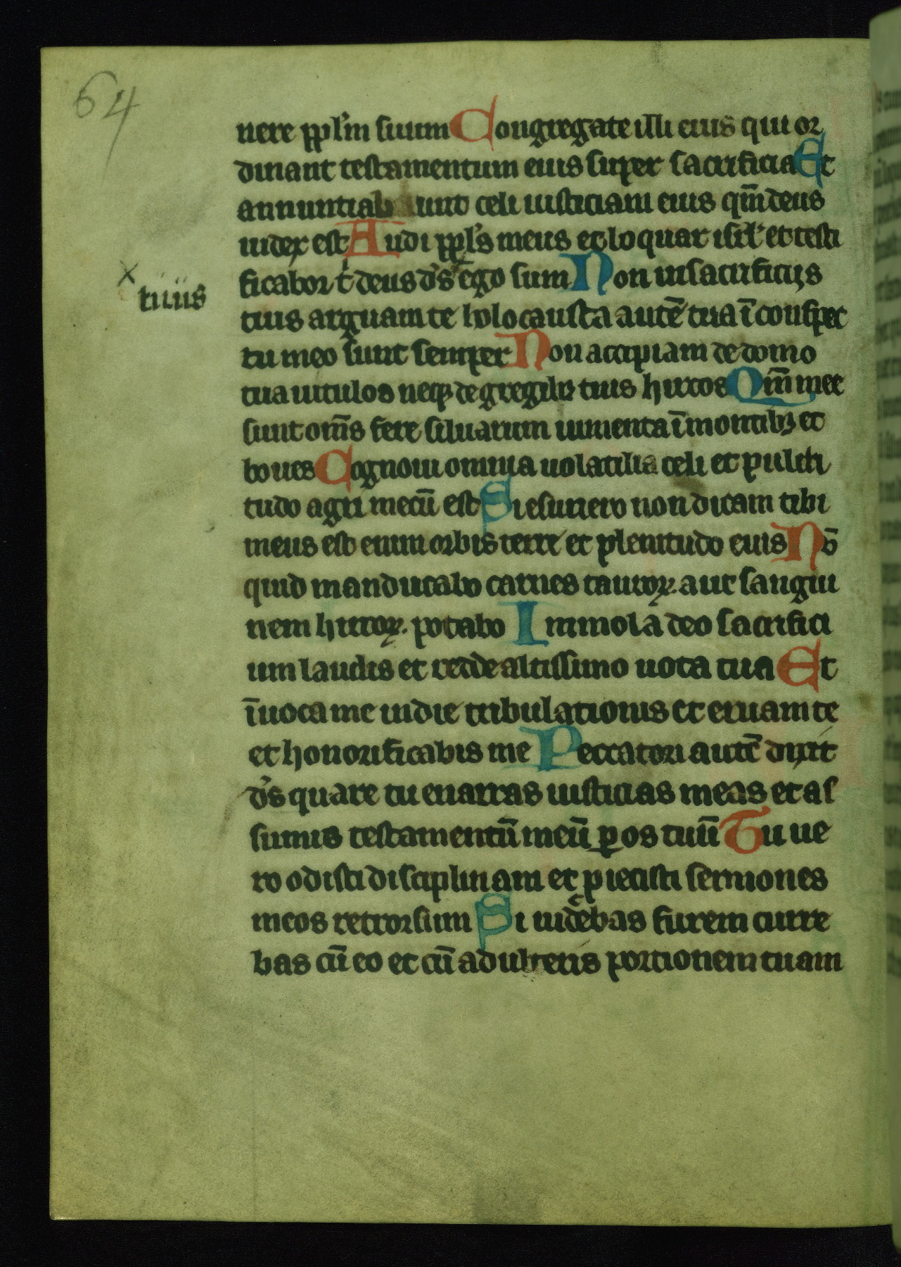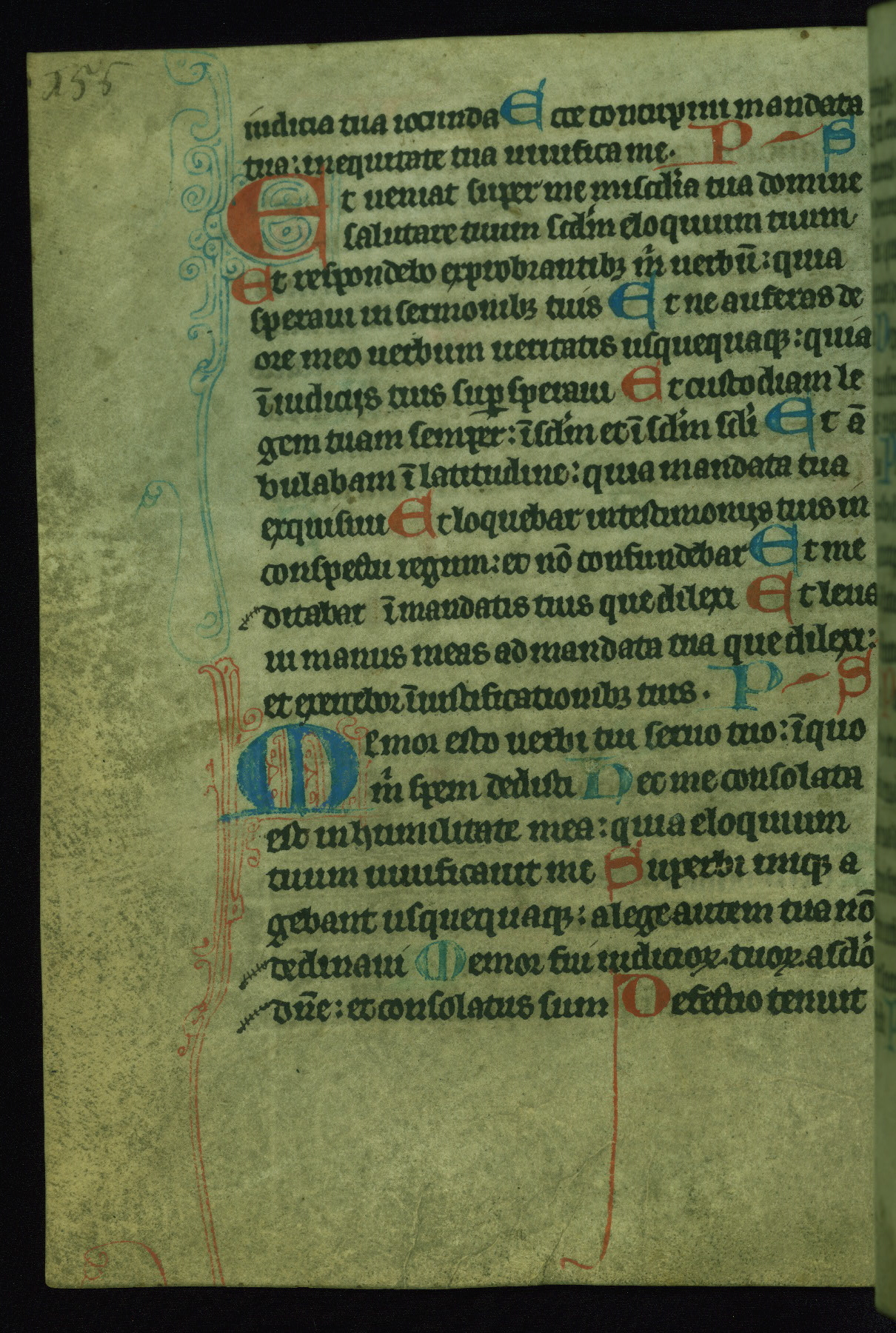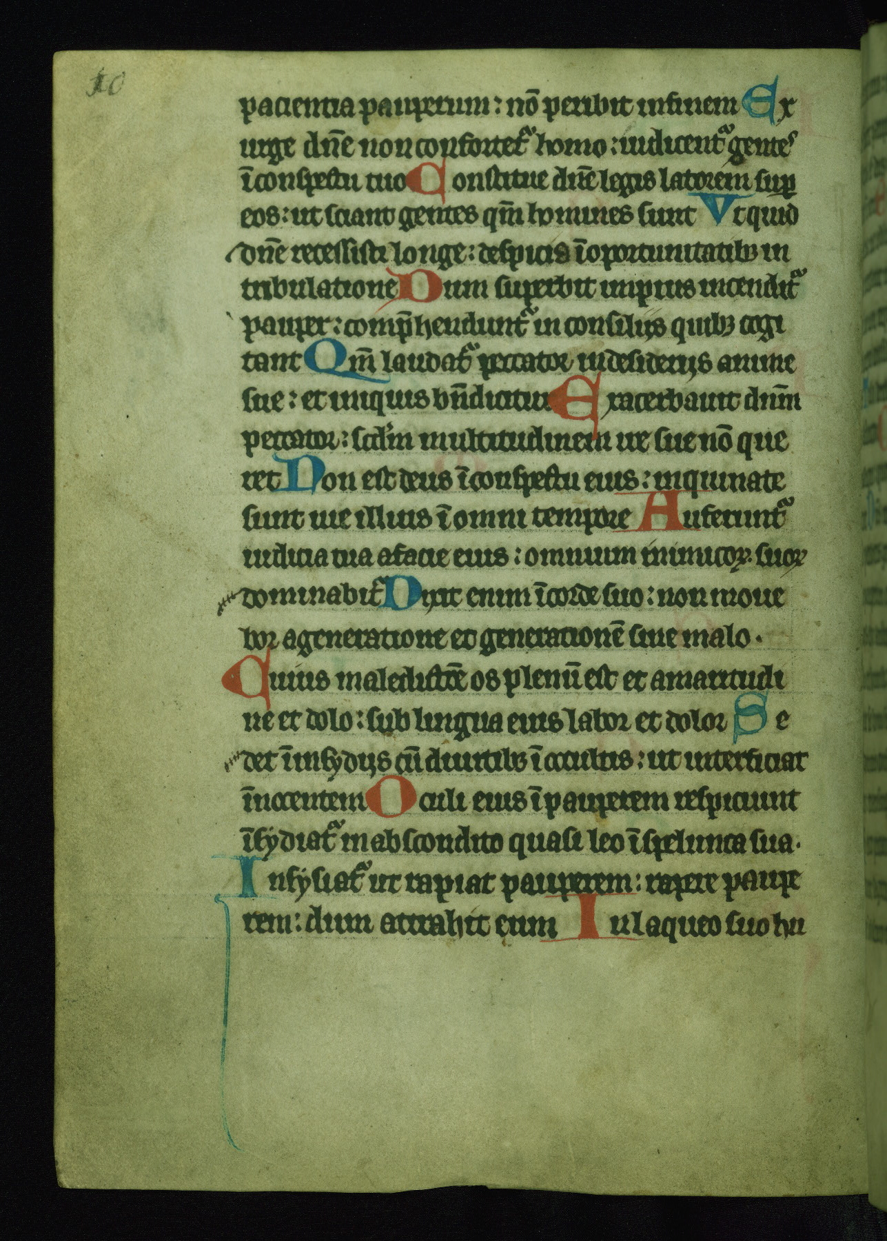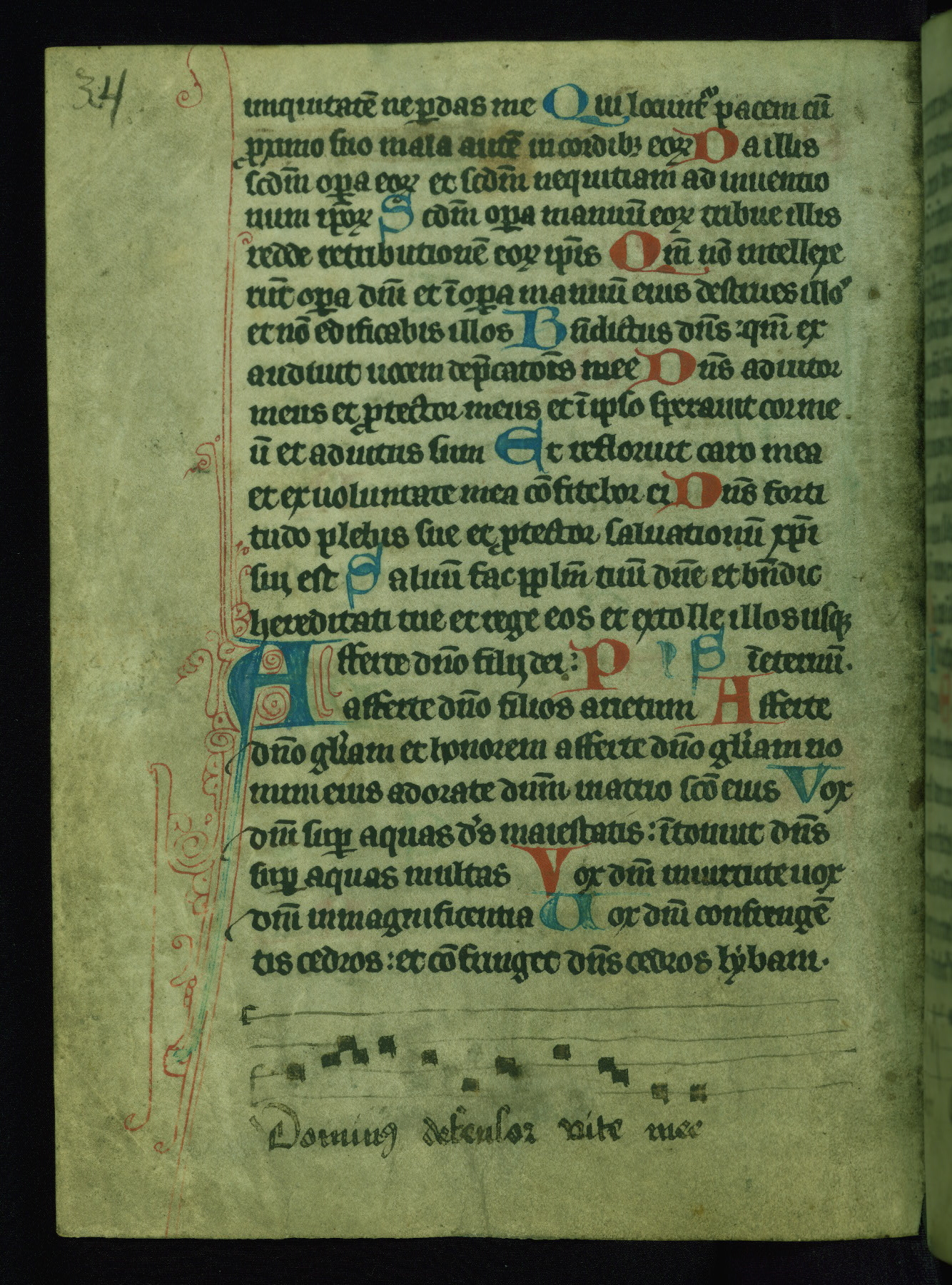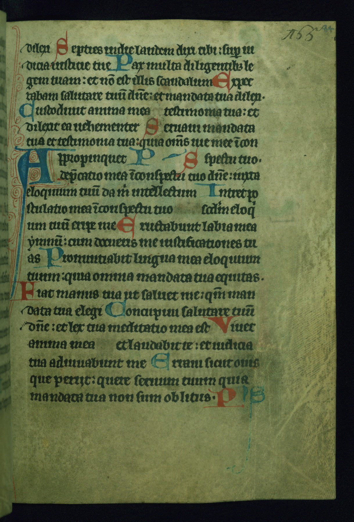 This Flemish Psalter was produced in the Hainaut region between 1265 and 1275. It was altered for Dominican use through the addition of antiphons in the margins in the late fifteenth century, at which point it was also rebound in its current inscribed leather binding. It was later among the books collected by Johann Anton Ramboux (1790-1866), a German painter and museum curator. The manuscript, which is illuminated throughout with twelve large historiated and inhabited initials, is a strong example of a group of manuscripts produced in the last quarter of the thirteenth century that combined the artistic styles of Hainaut and Liège, other examples including Paris, B.N. Lat. 1077, Biblioteca apostolica vaticana, BBR Ms. IV-1066, and Princeton University Art Museum 57.189.