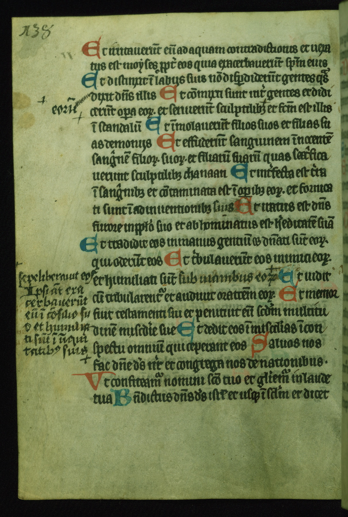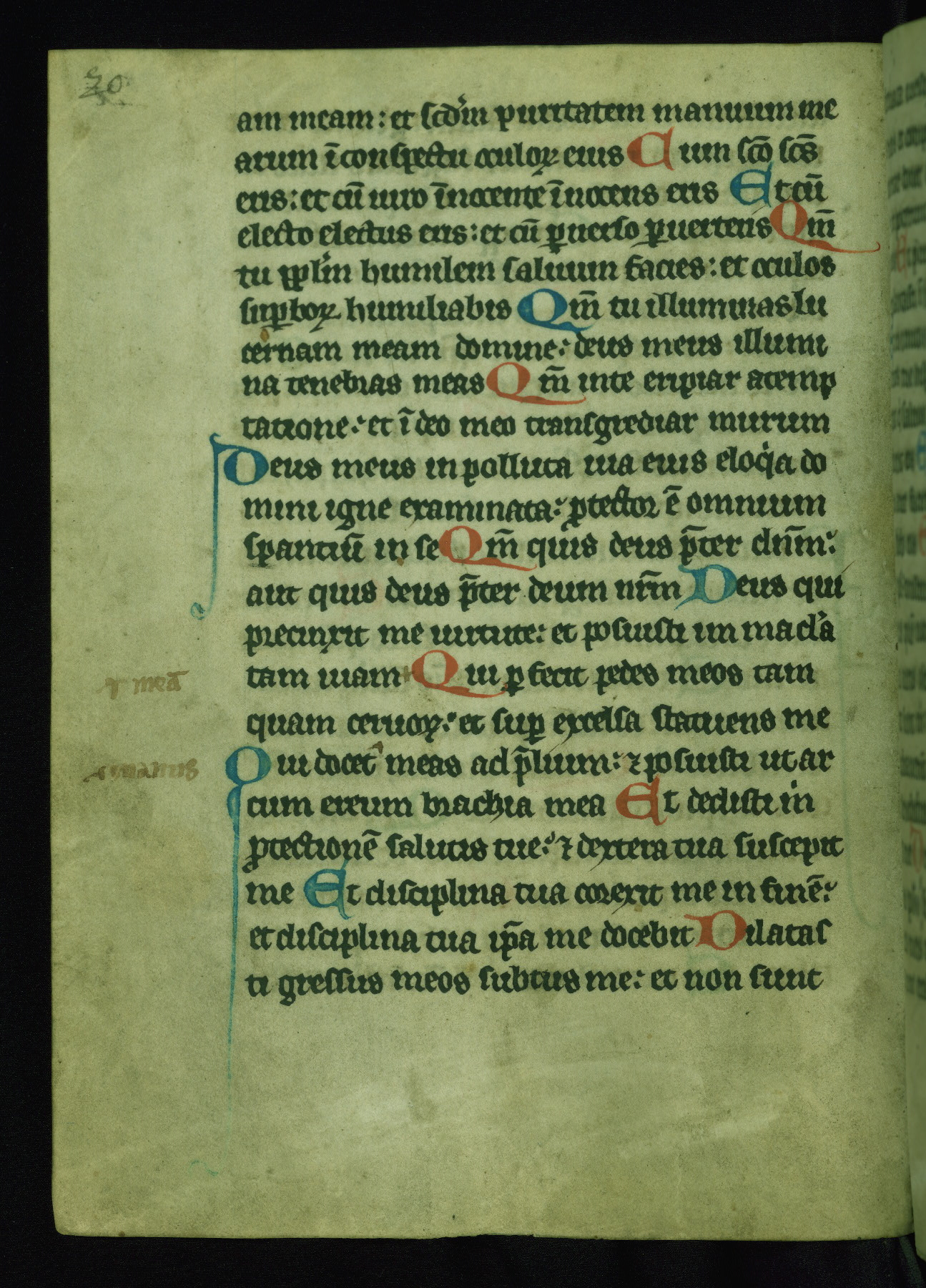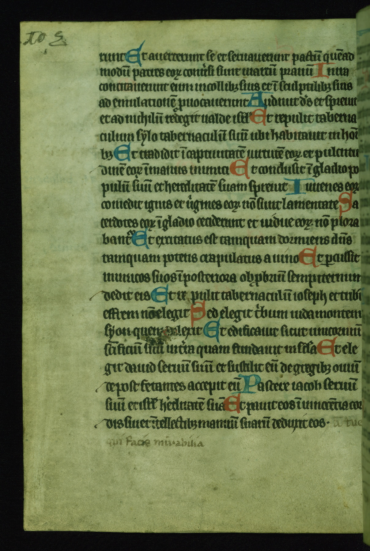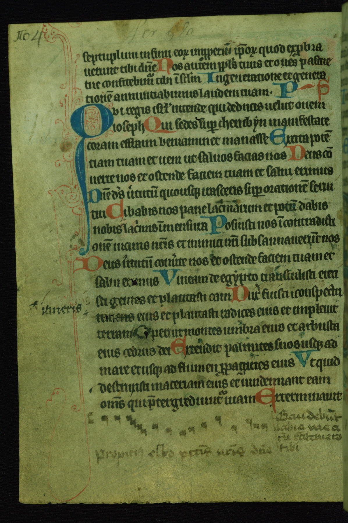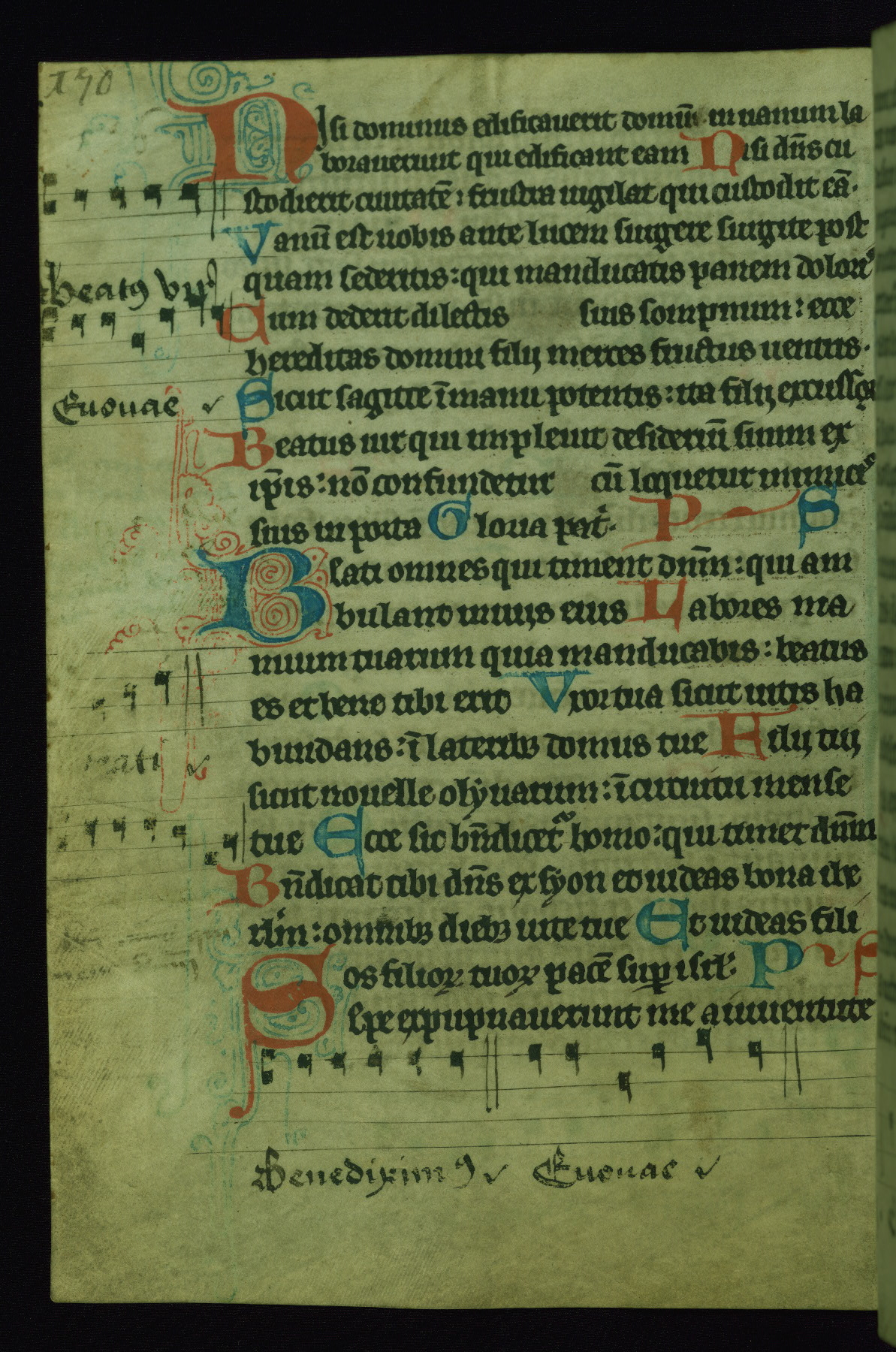 This Flemish Psalter was produced in the Hainaut region between 1265 and 1275. It was altered for Dominican use through the addition of antiphons in the margins in the late fifteenth century, at which point it was also rebound in its current inscribed leather binding. It was later among the books collected by Johann Anton Ramboux (1790-1866), a German painter and museum curator. The manuscript, which is illuminated throughout with twelve large historiated and inhabited initials, is a strong example of a group of manuscripts produced in the last quarter of the thirteenth century that combined the artistic styles of Hainaut and Liège, other examples including Paris, B.N. Lat. 1077, Biblioteca apostolica vaticana, BBR Ms. IV-1066, and Princeton University Art Museum 57.189.
