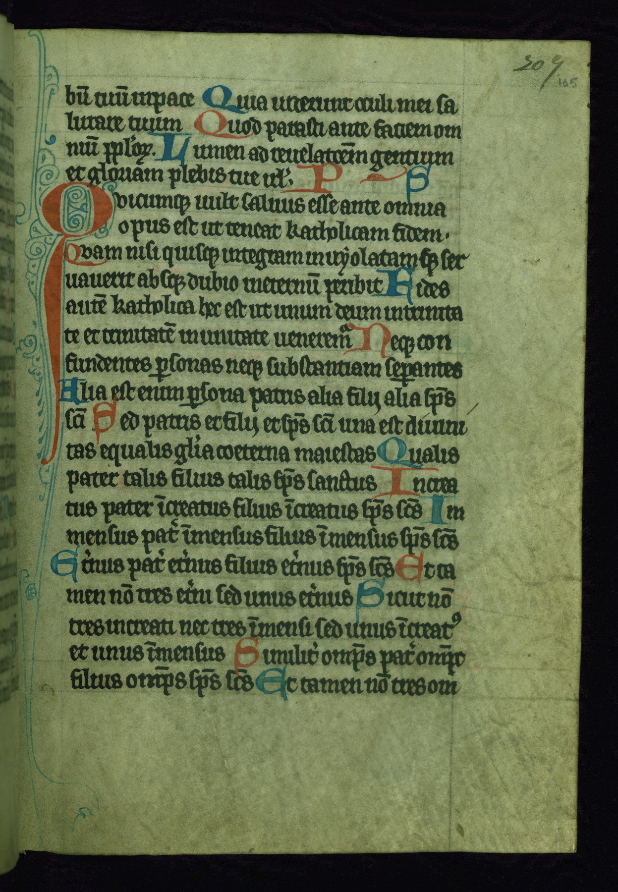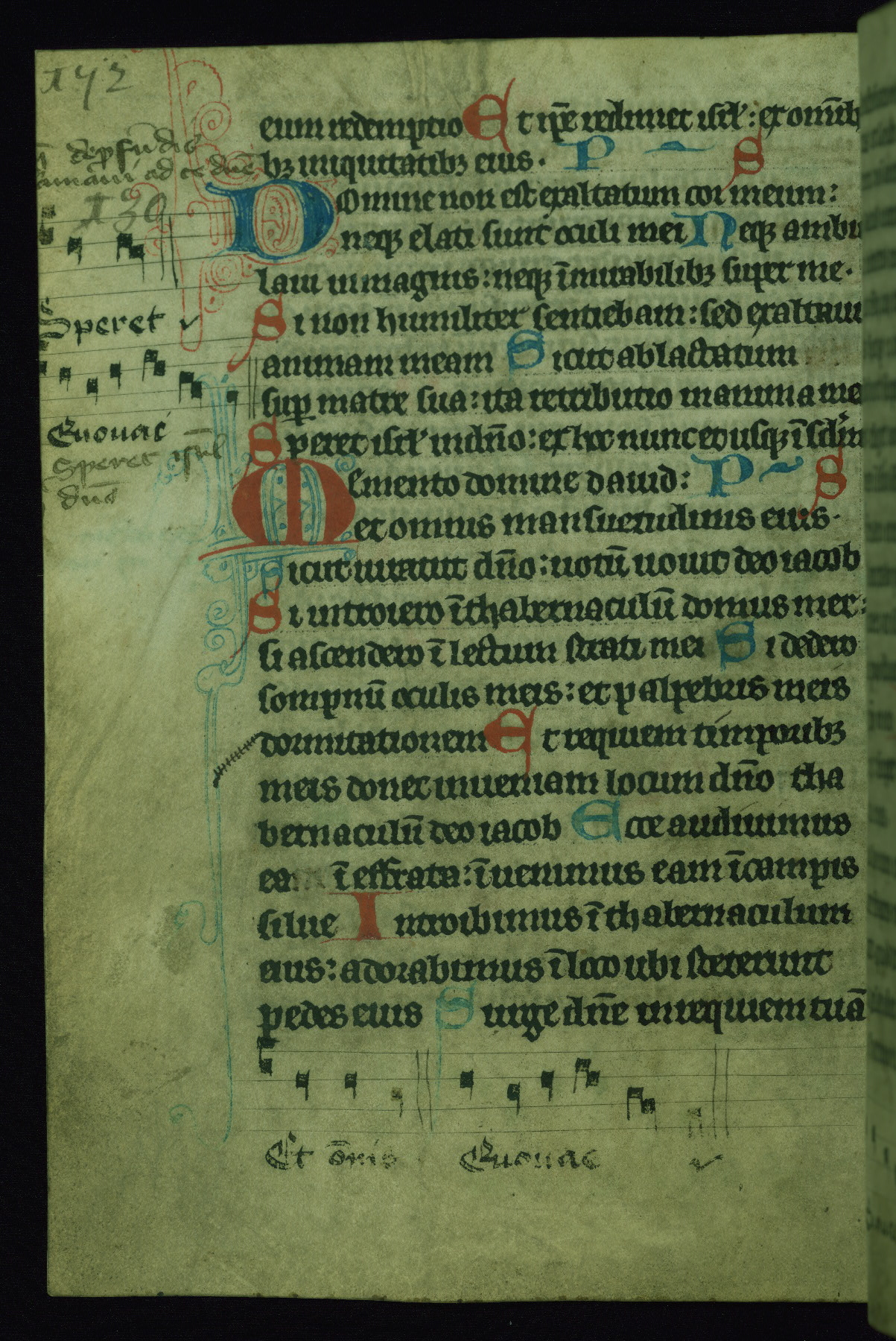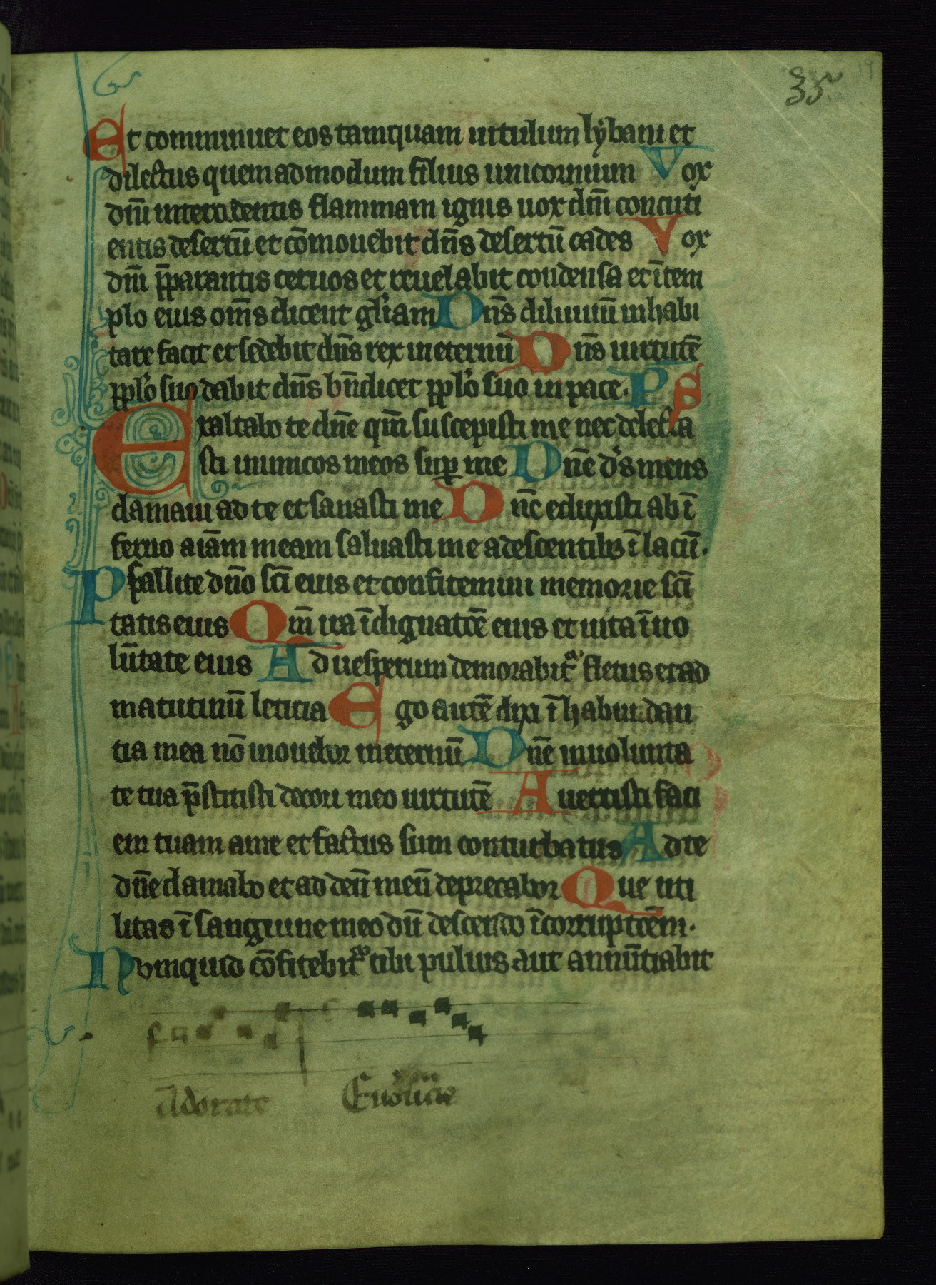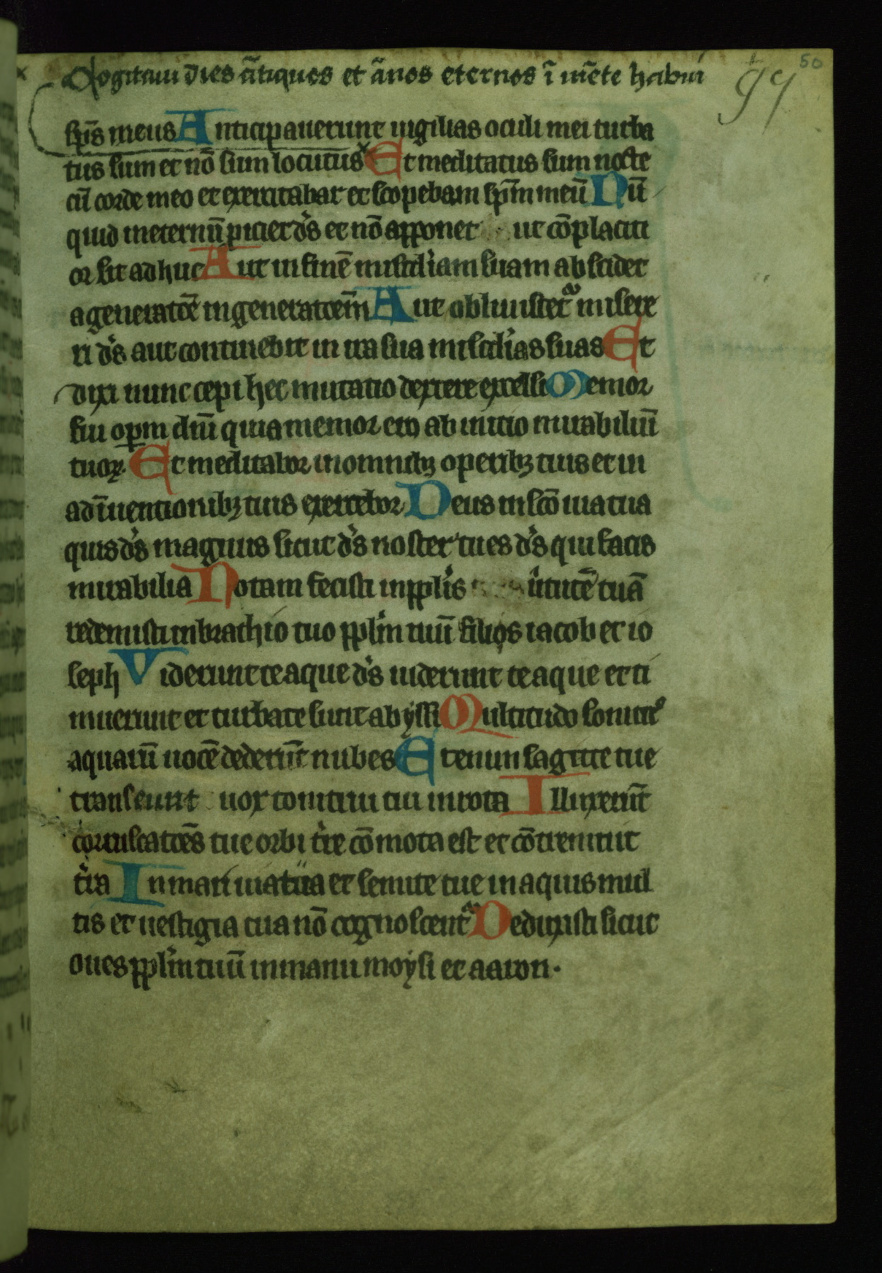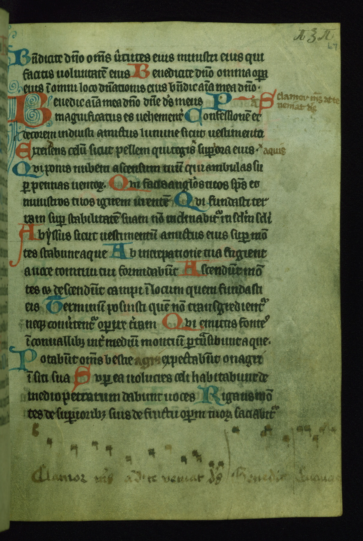 This Flemish Psalter was produced in the Hainaut region between 1265 and 1275. It was altered for Dominican use through the addition of antiphons in the margins in the late fifteenth century, at which point it was also rebound in its current inscribed leather binding. It was later among the books collected by Johann Anton Ramboux (1790-1866), a German painter and museum curator. The manuscript, which is illuminated throughout with twelve large historiated and inhabited initials, is a strong example of a group of manuscripts produced in the last quarter of the thirteenth century that combined the artistic styles of Hainaut and Liège, other examples including Paris, B.N. Lat. 1077, Biblioteca apostolica vaticana, BBR Ms. IV-1066, and Princeton University Art Museum 57.189.