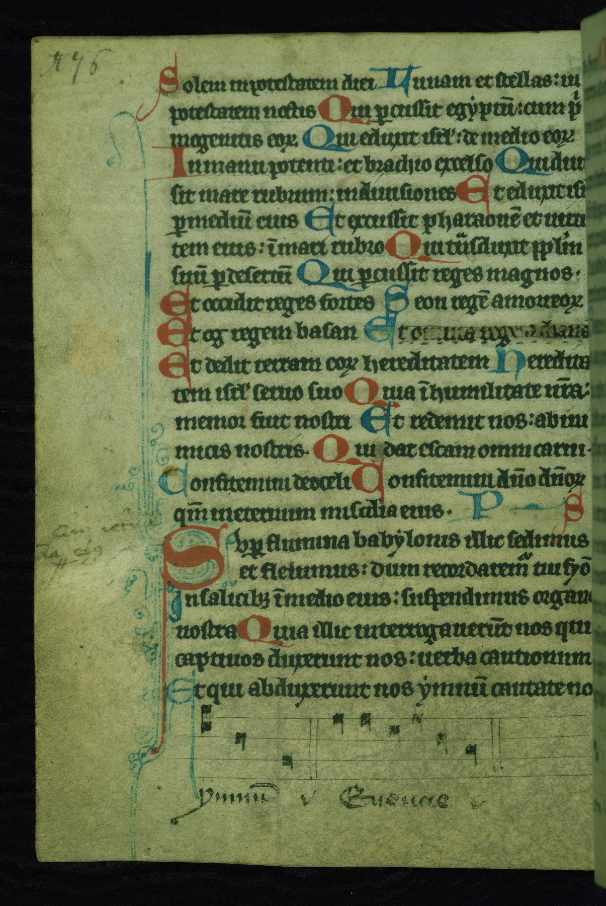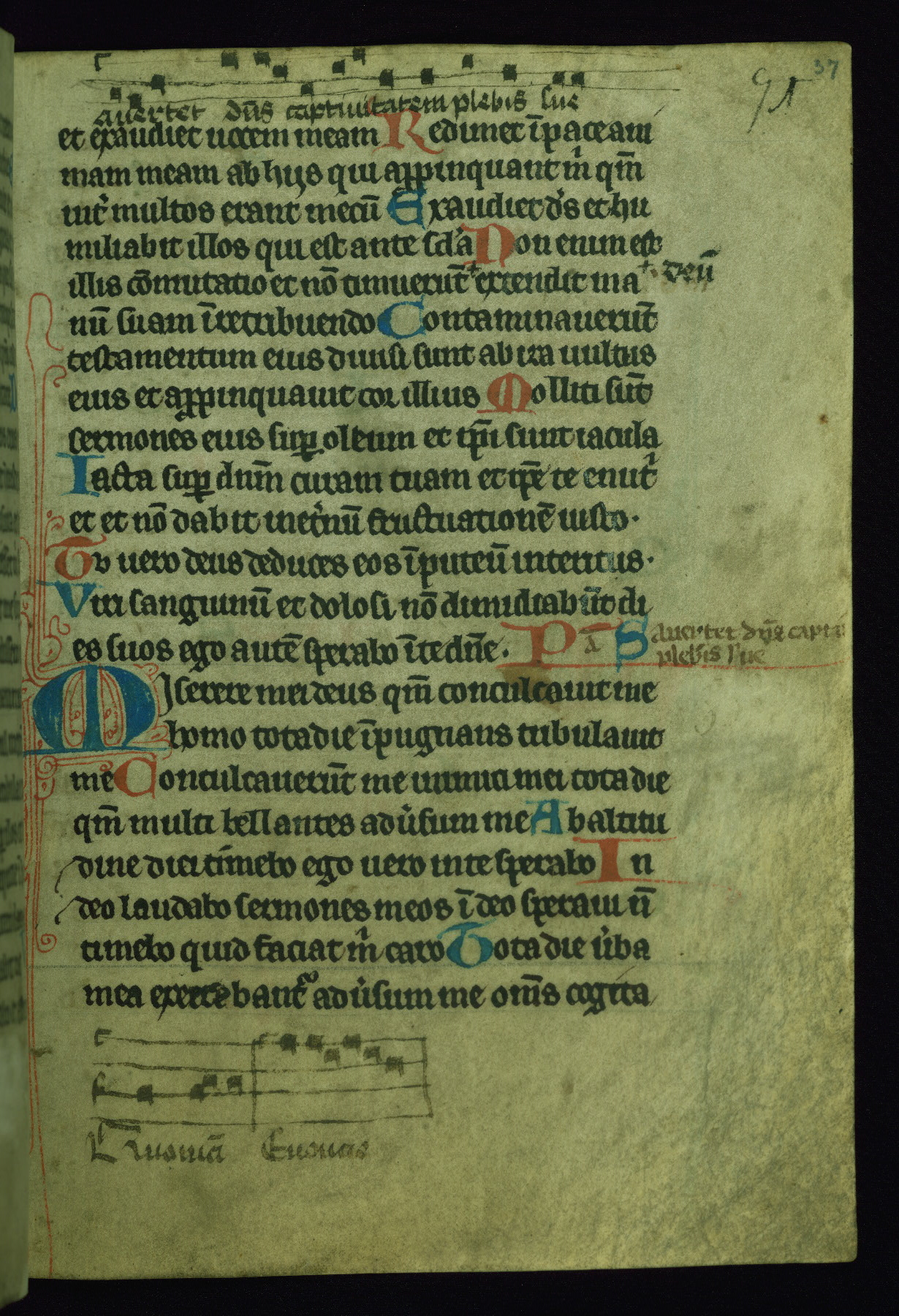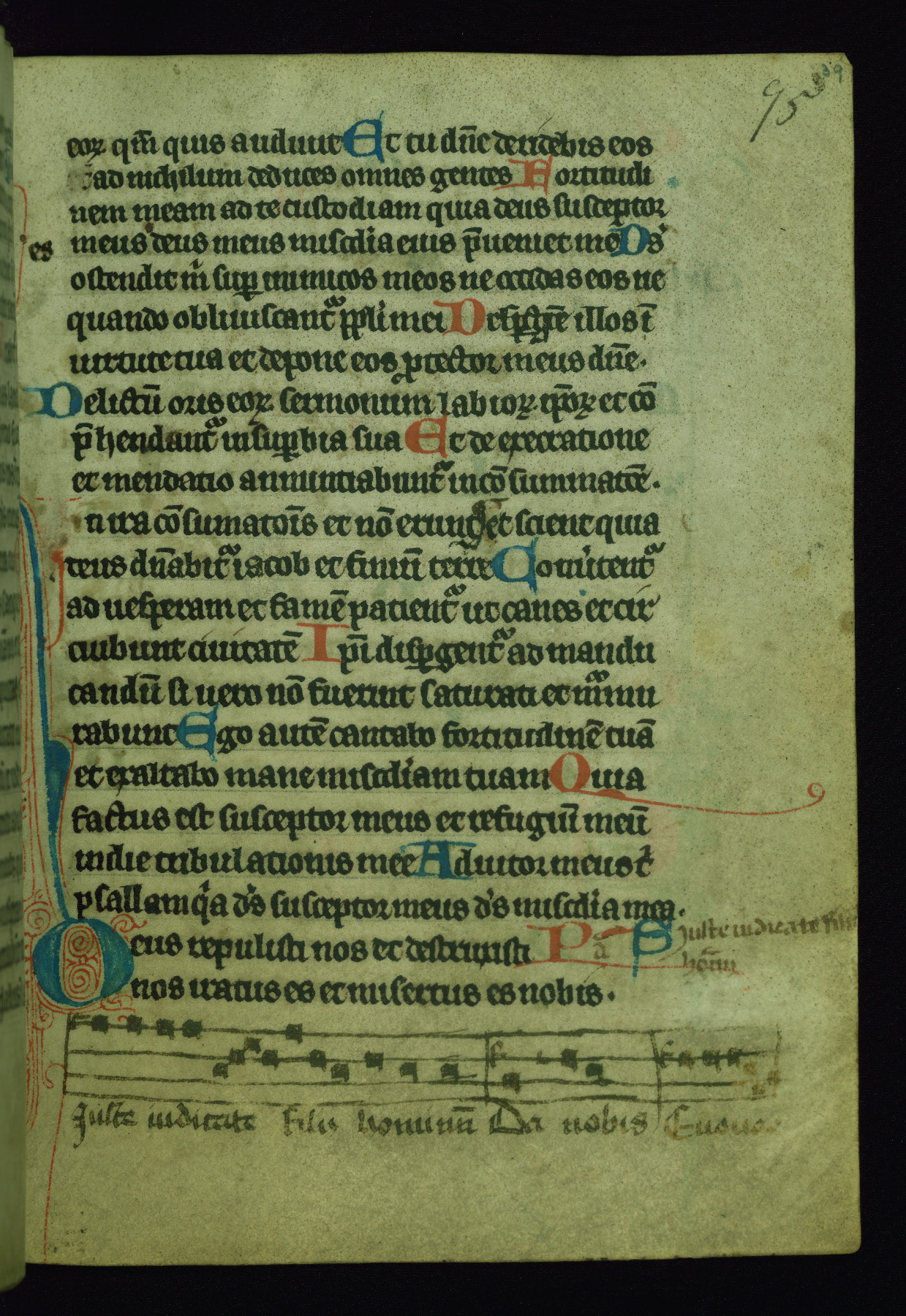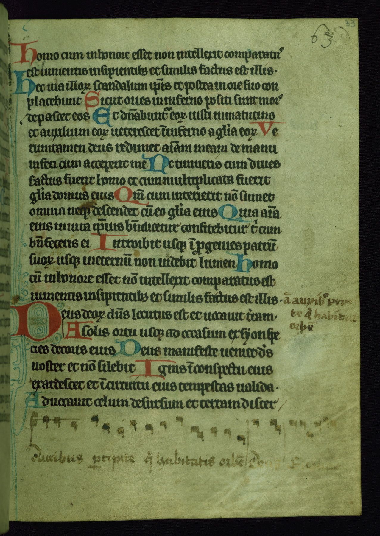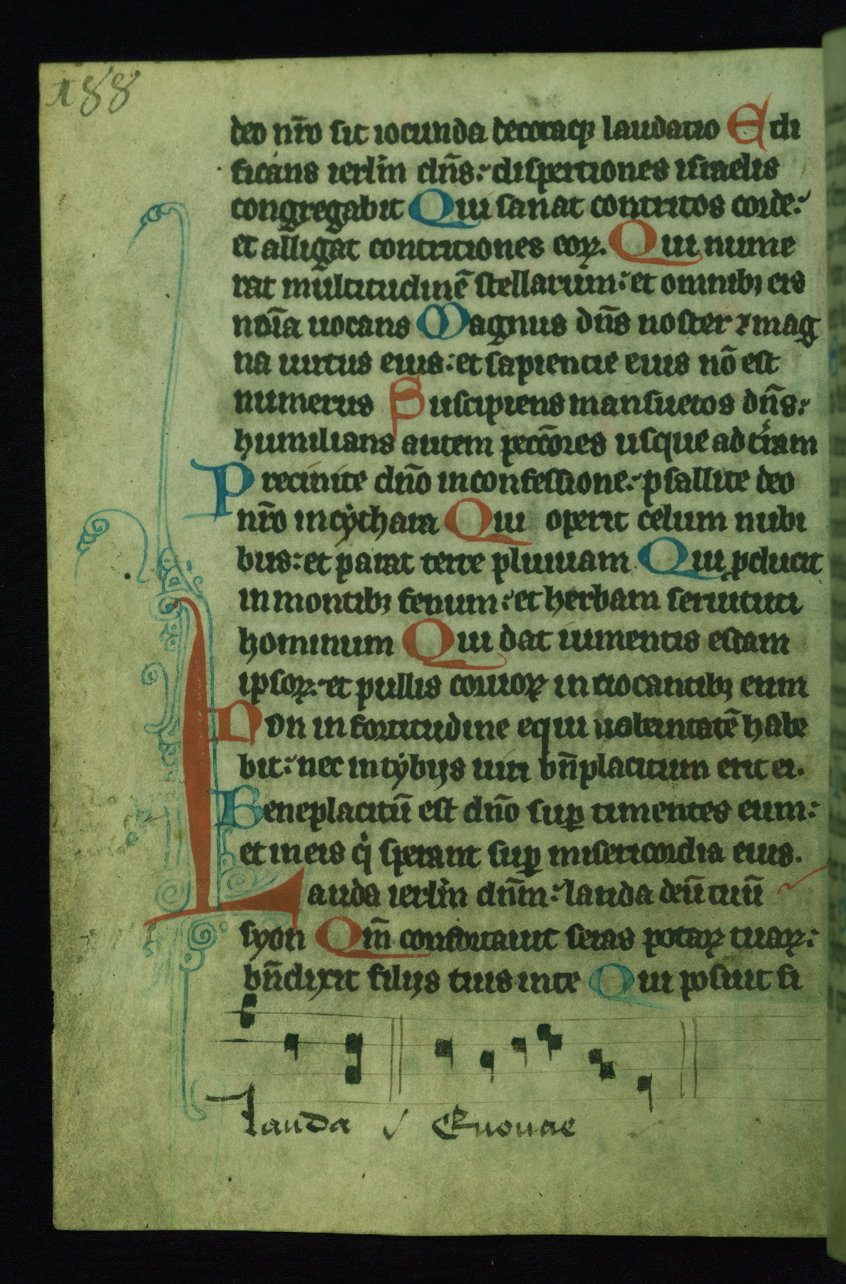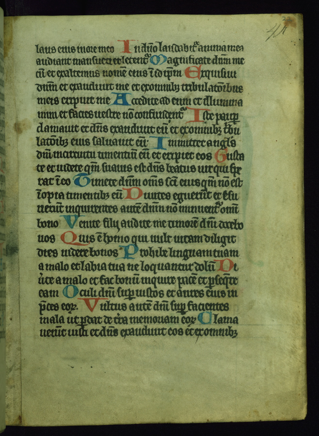 This Flemish Psalter was produced in the Hainaut region between 1265 and 1275. It was altered for Dominican use through the addition of antiphons in the margins in the late fifteenth century, at which point it was also rebound in its current inscribed leather binding. It was later among the books collected by Johann Anton Ramboux (1790-1866), a German painter and museum curator. The manuscript, which is illuminated throughout with twelve large historiated and inhabited initials, is a strong example of a group of manuscripts produced in the last quarter of the thirteenth century that combined the artistic styles of Hainaut and Liège, other examples including Paris, B.N. Lat. 1077, Biblioteca apostolica vaticana, BBR Ms. IV-1066, and Princeton University Art Museum 57.189.