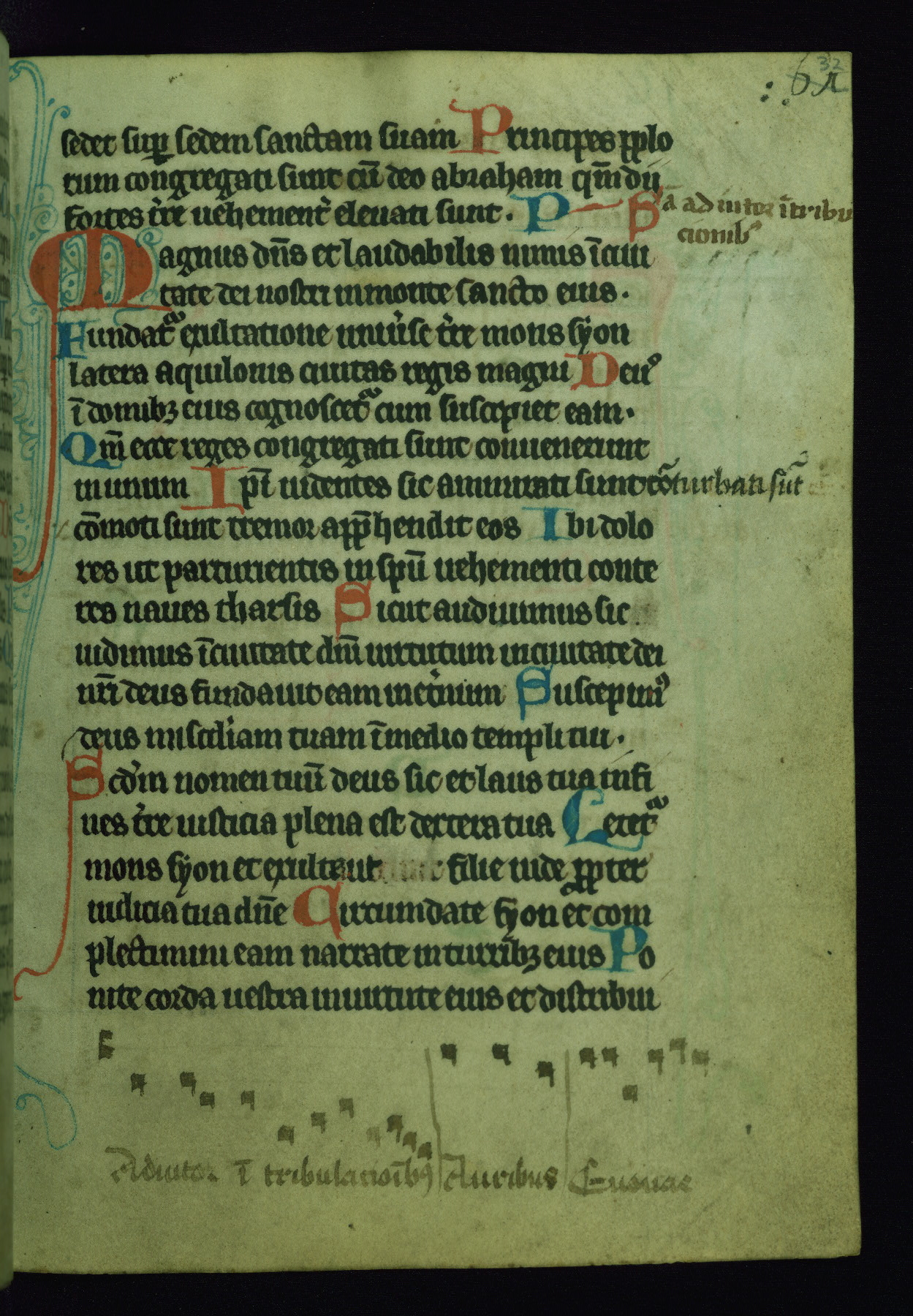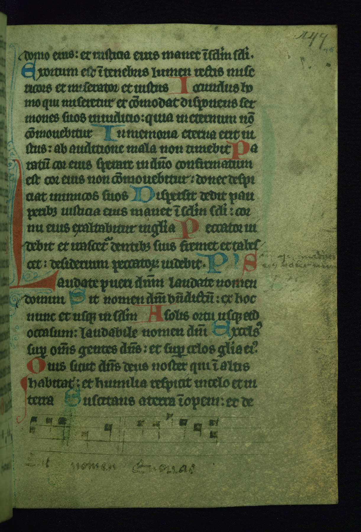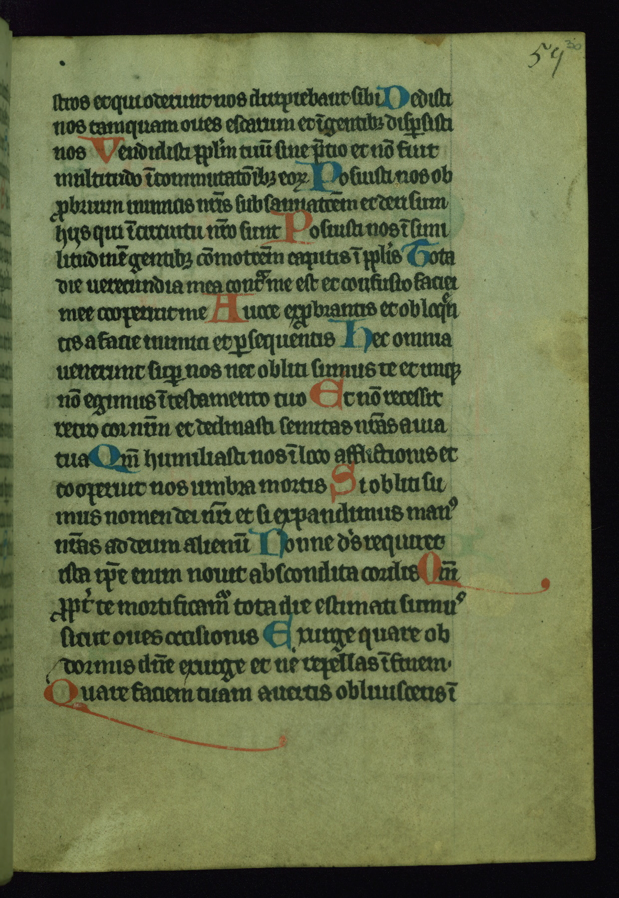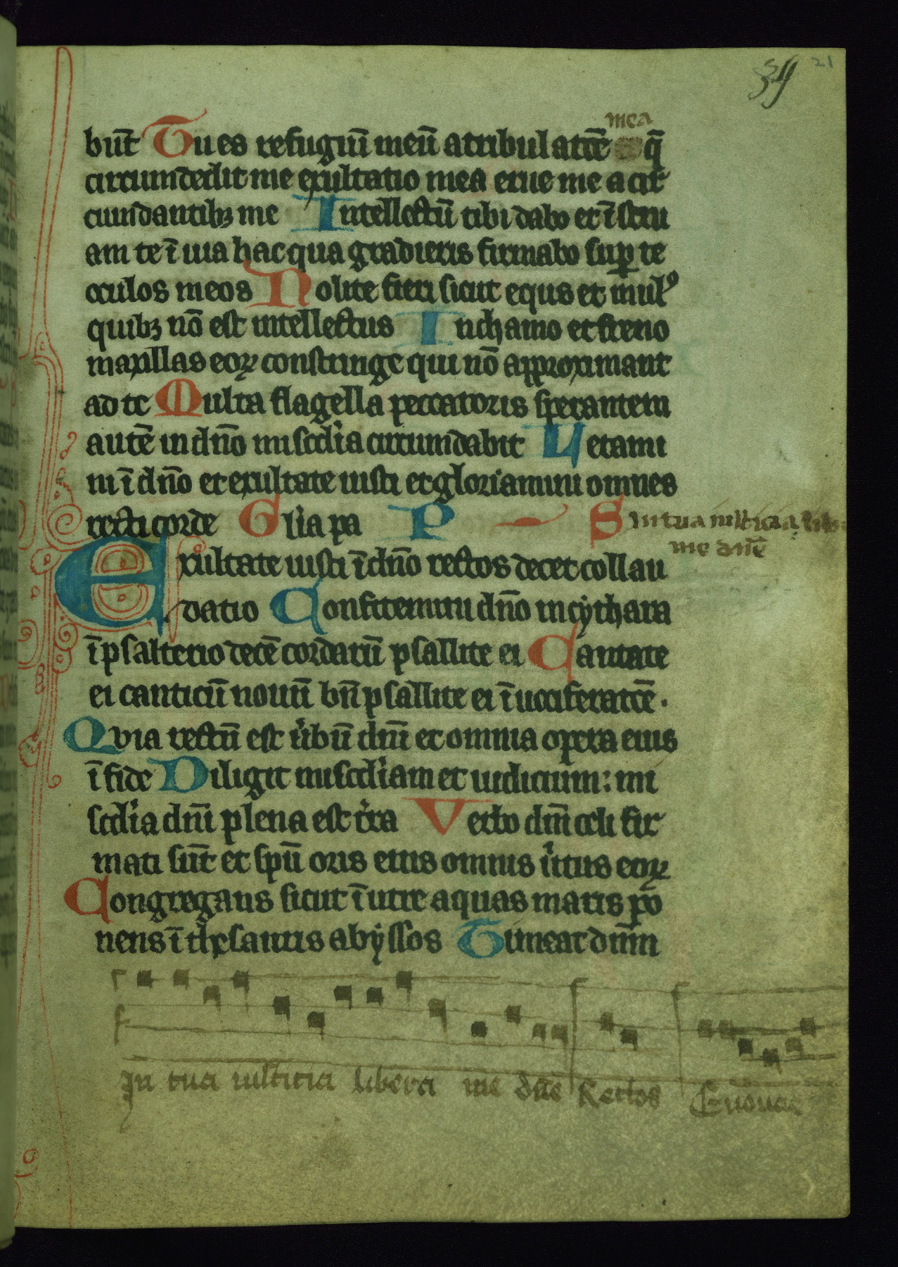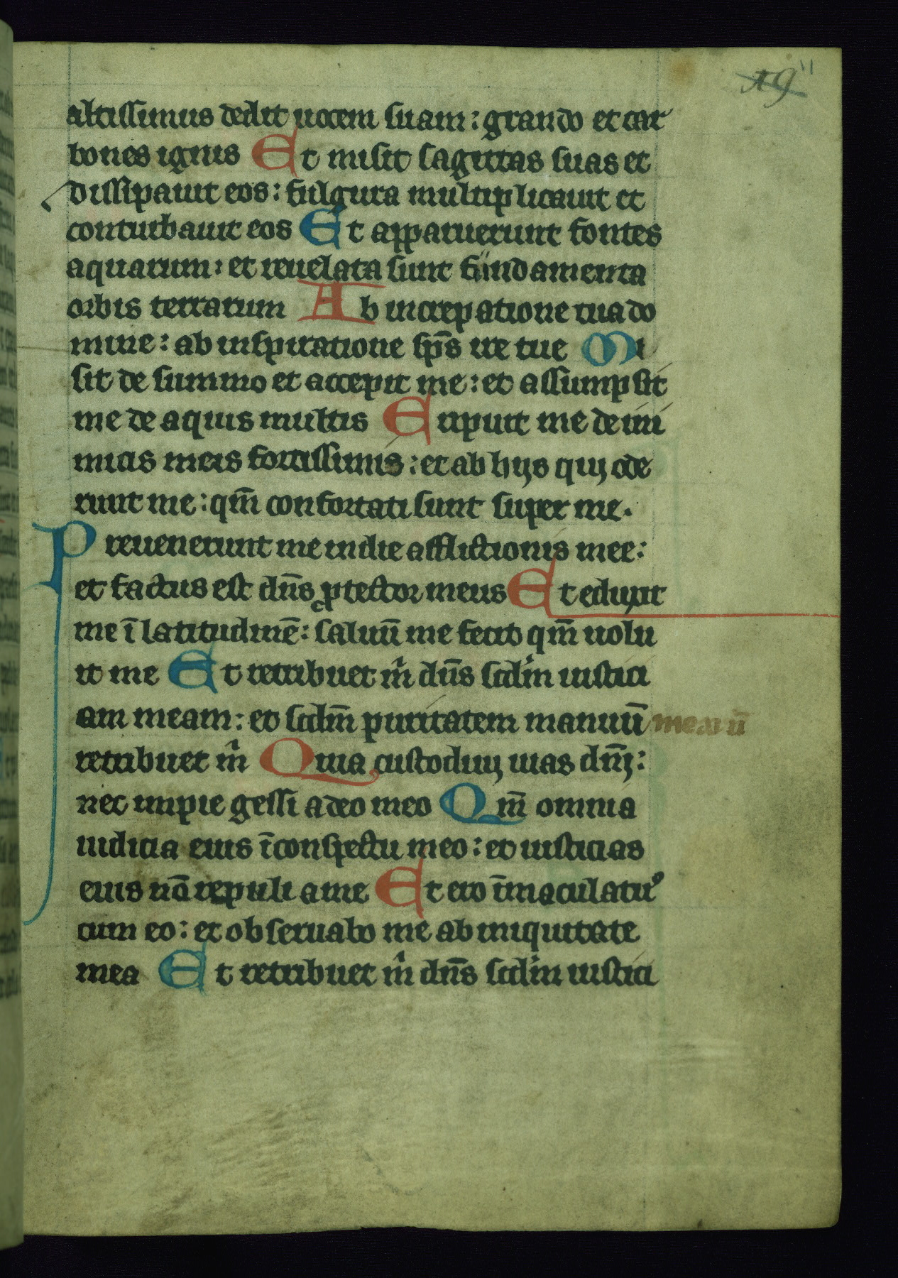 This Flemish Psalter was produced in the Hainaut region between 1265 and 1275. It was altered for Dominican use through the addition of antiphons in the margins in the late fifteenth century, at which point it was also rebound in its current inscribed leather binding. It was later among the books collected by Johann Anton Ramboux (1790-1866), a German painter and museum curator. The manuscript, which is illuminated throughout with twelve large historiated and inhabited initials, is a strong example of a group of manuscripts produced in the last quarter of the thirteenth century that combined the artistic styles of Hainaut and Liège, other examples including Paris, B.N. Lat. 1077, Biblioteca apostolica vaticana, BBR Ms. IV-1066, and Princeton University Art Museum 57.189.