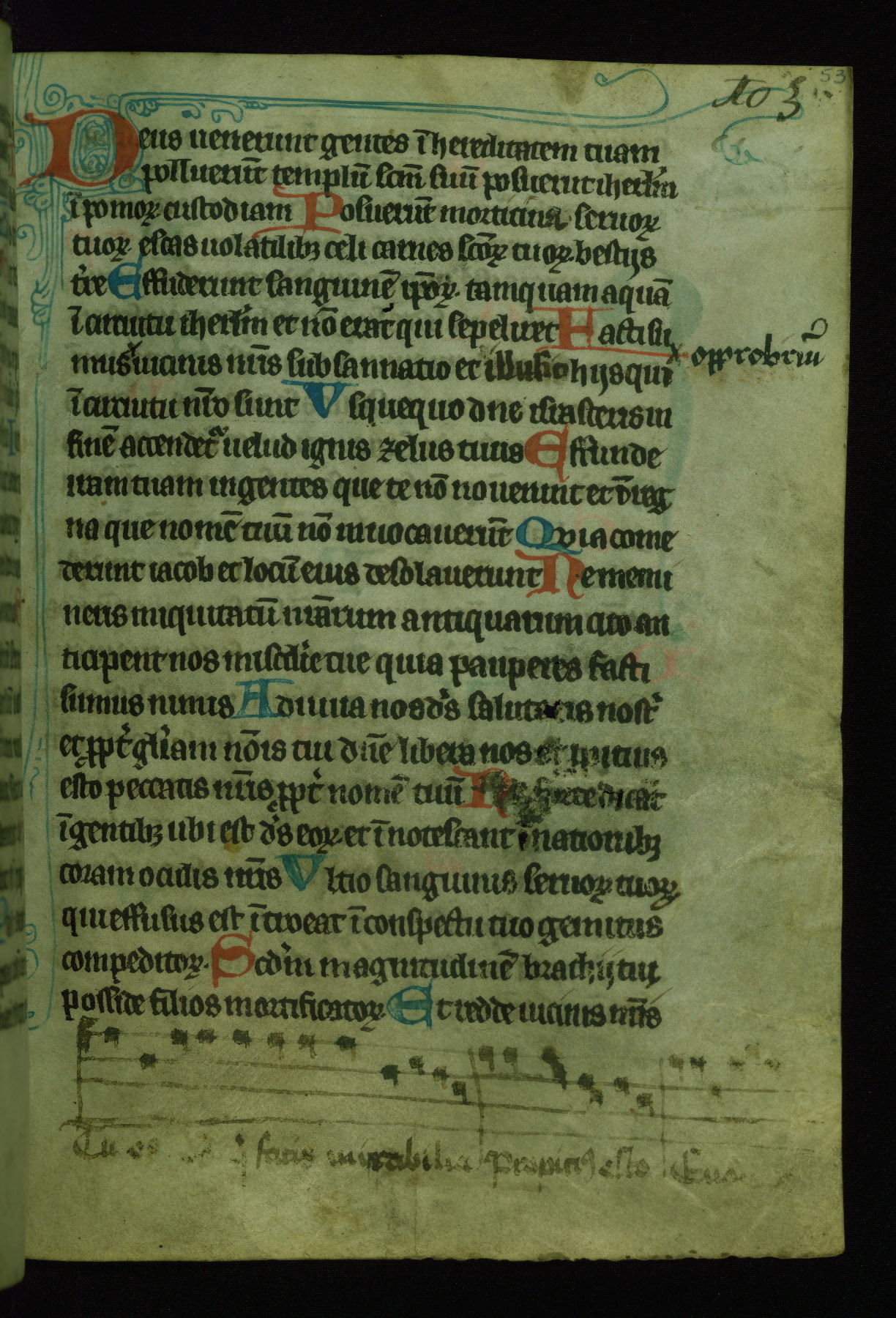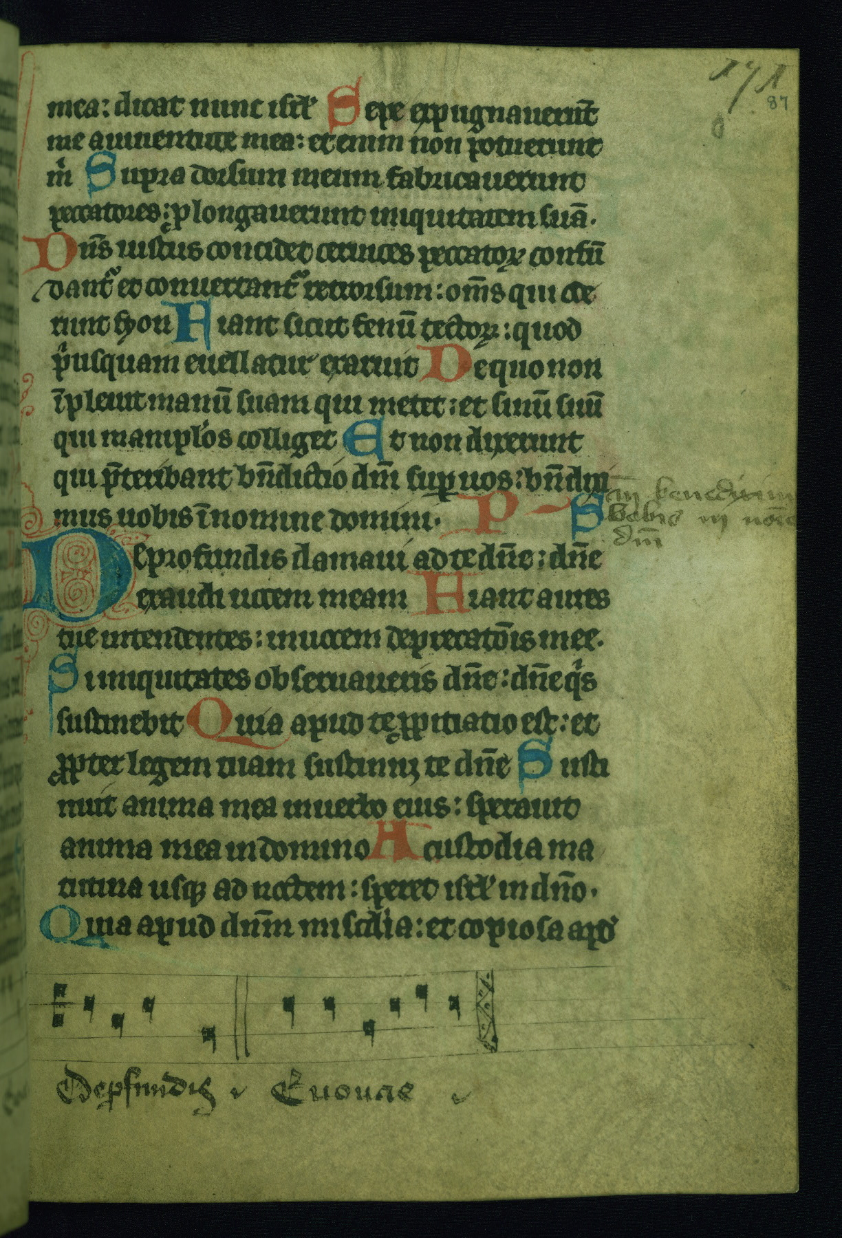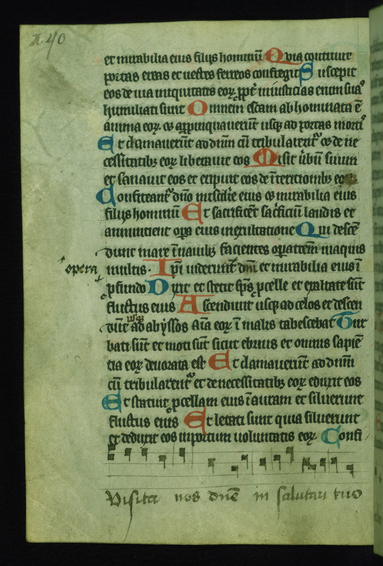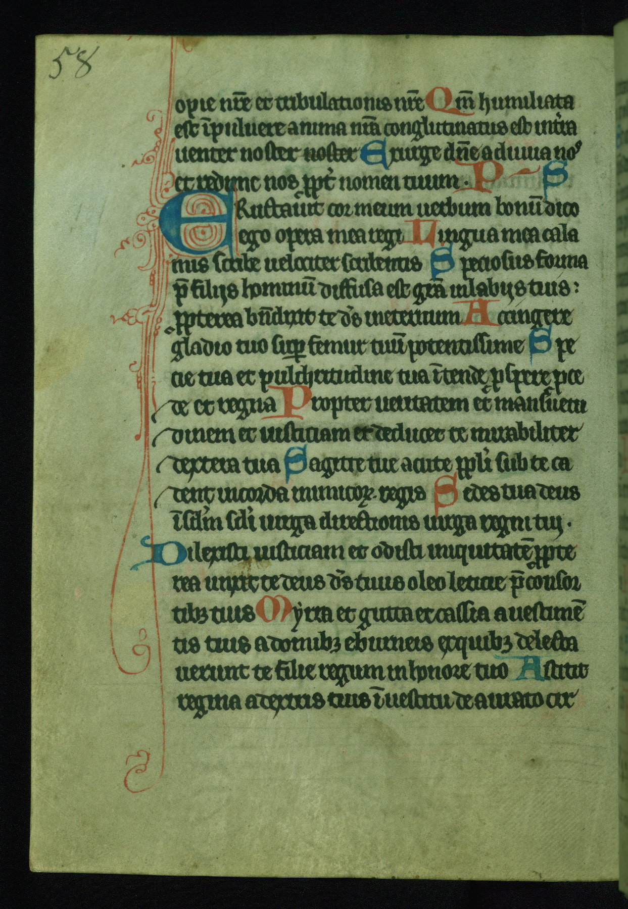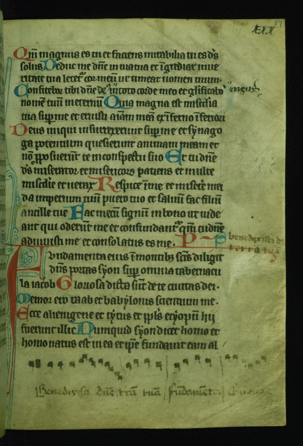 This Flemish Psalter was produced in the Hainaut region between 1265 and 1275. It was altered for Dominican use through the addition of antiphons in the margins in the late fifteenth century, at which point it was also rebound in its current inscribed leather binding. It was later among the books collected by Johann Anton Ramboux (1790-1866), a German painter and museum curator. The manuscript, which is illuminated throughout with twelve large historiated and inhabited initials, is a strong example of a group of manuscripts produced in the last quarter of the thirteenth century that combined the artistic styles of Hainaut and Liège, other examples including Paris, B.N. Lat. 1077, Biblioteca apostolica vaticana, BBR Ms. IV-1066, and Princeton University Art Museum 57.189.