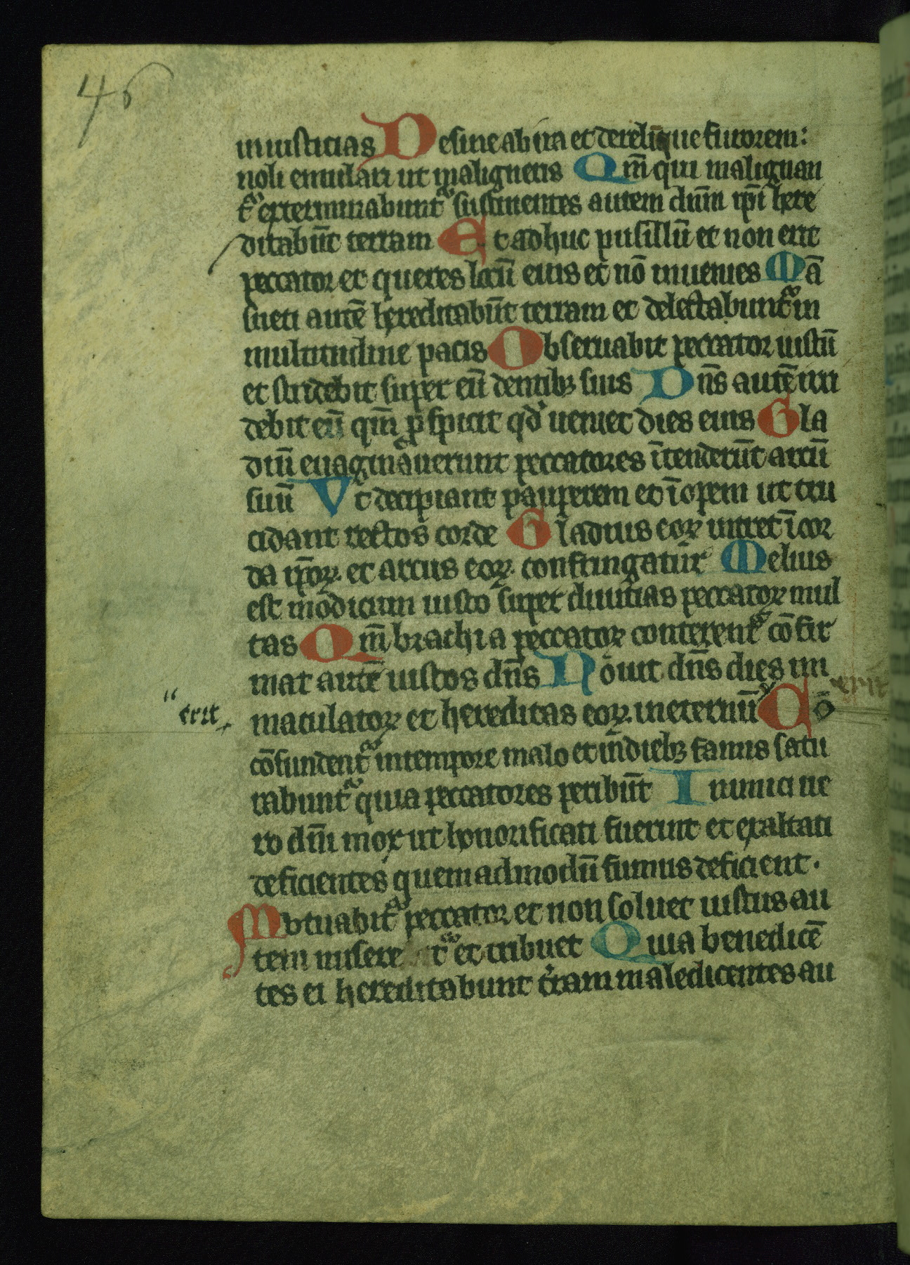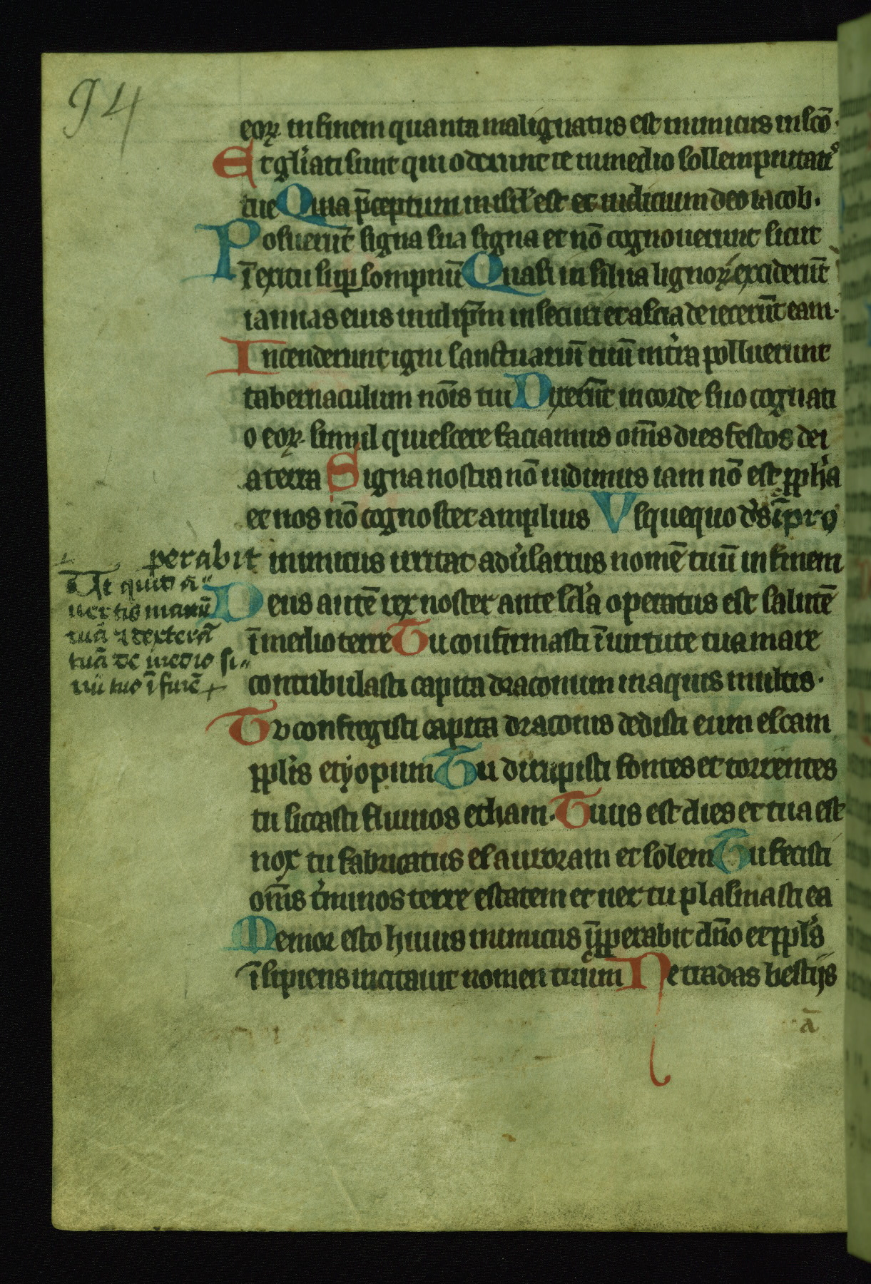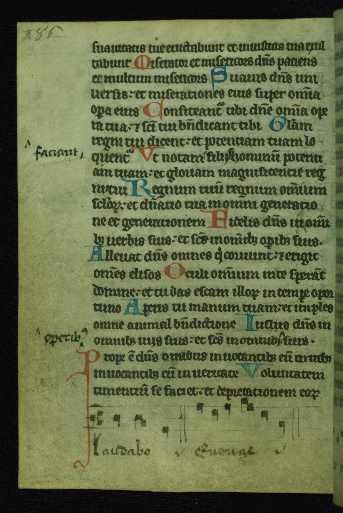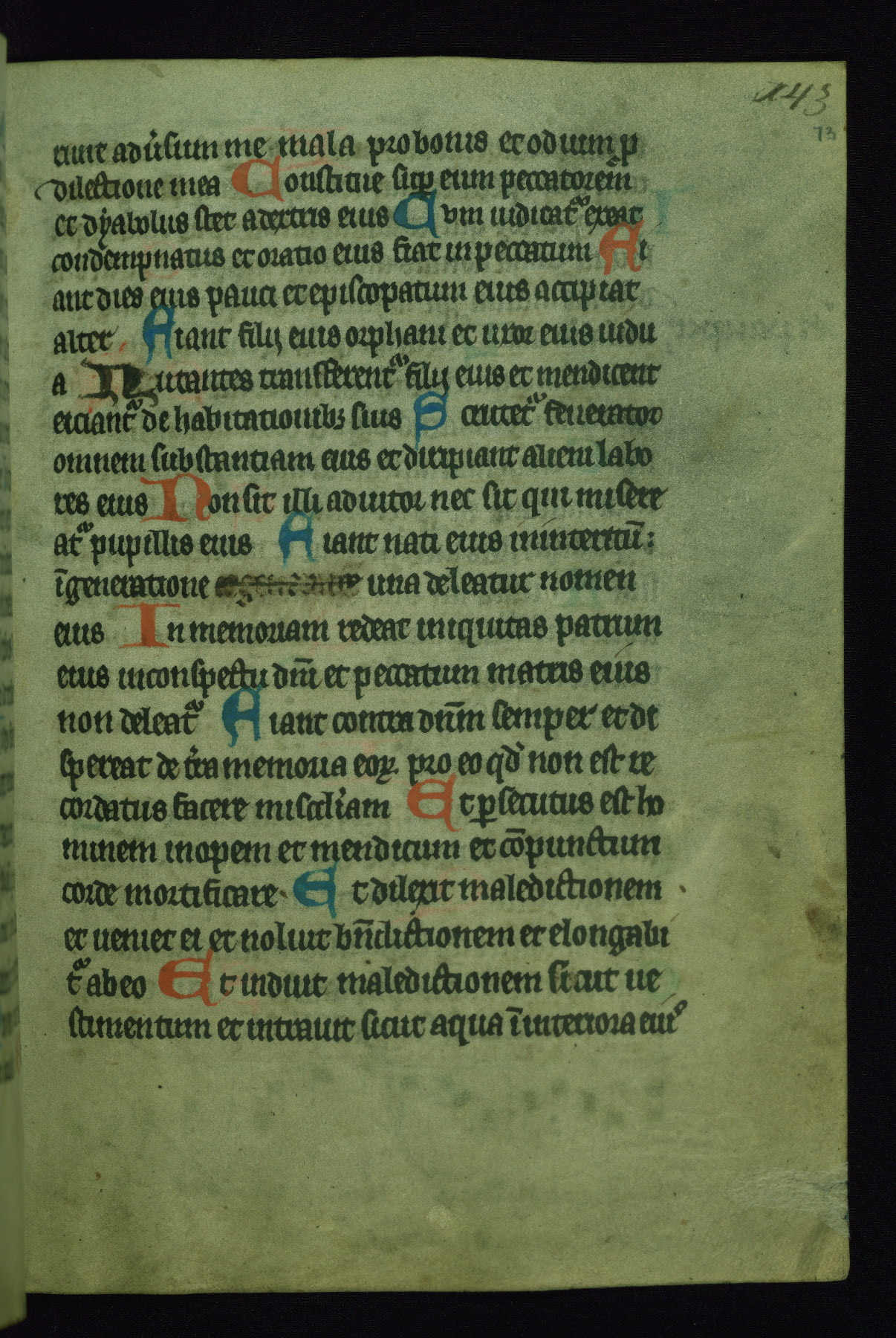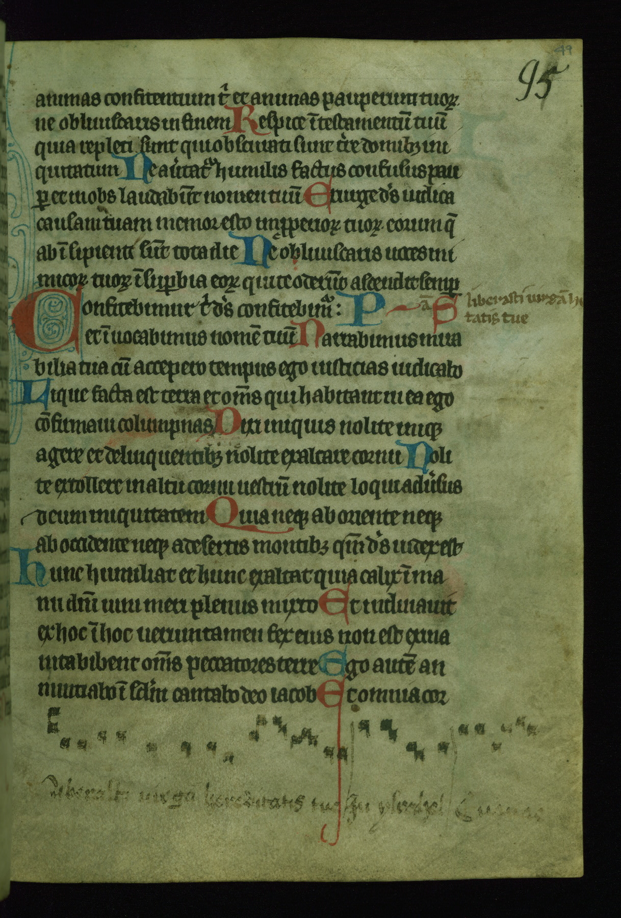 This Flemish Psalter was produced in the Hainaut region between 1265 and 1275. It was altered for Dominican use through the addition of antiphons in the margins in the late fifteenth century, at which point it was also rebound in its current inscribed leather binding. It was later among the books collected by Johann Anton Ramboux (1790-1866), a German painter and museum curator. The manuscript, which is illuminated throughout with twelve large historiated and inhabited initials, is a strong example of a group of manuscripts produced in the last quarter of the thirteenth century that combined the artistic styles of Hainaut and Liège, other examples including Paris, B.N. Lat. 1077, Biblioteca apostolica vaticana, BBR Ms. IV-1066, and Princeton University Art Museum 57.189.