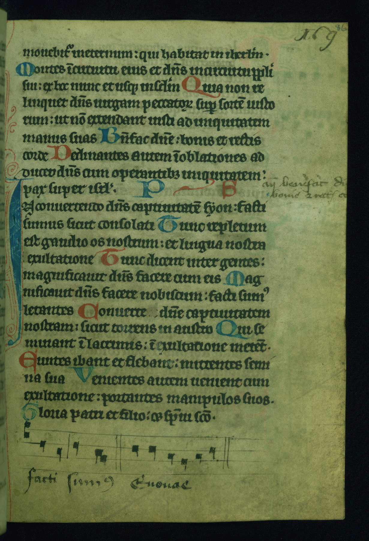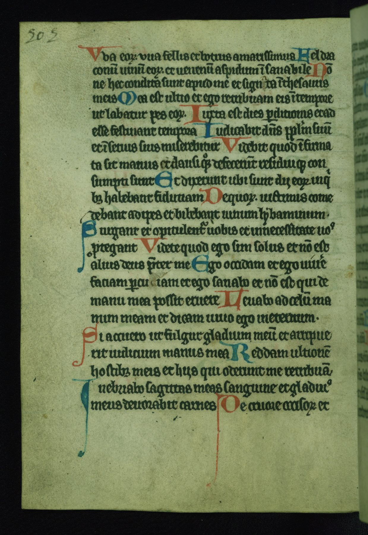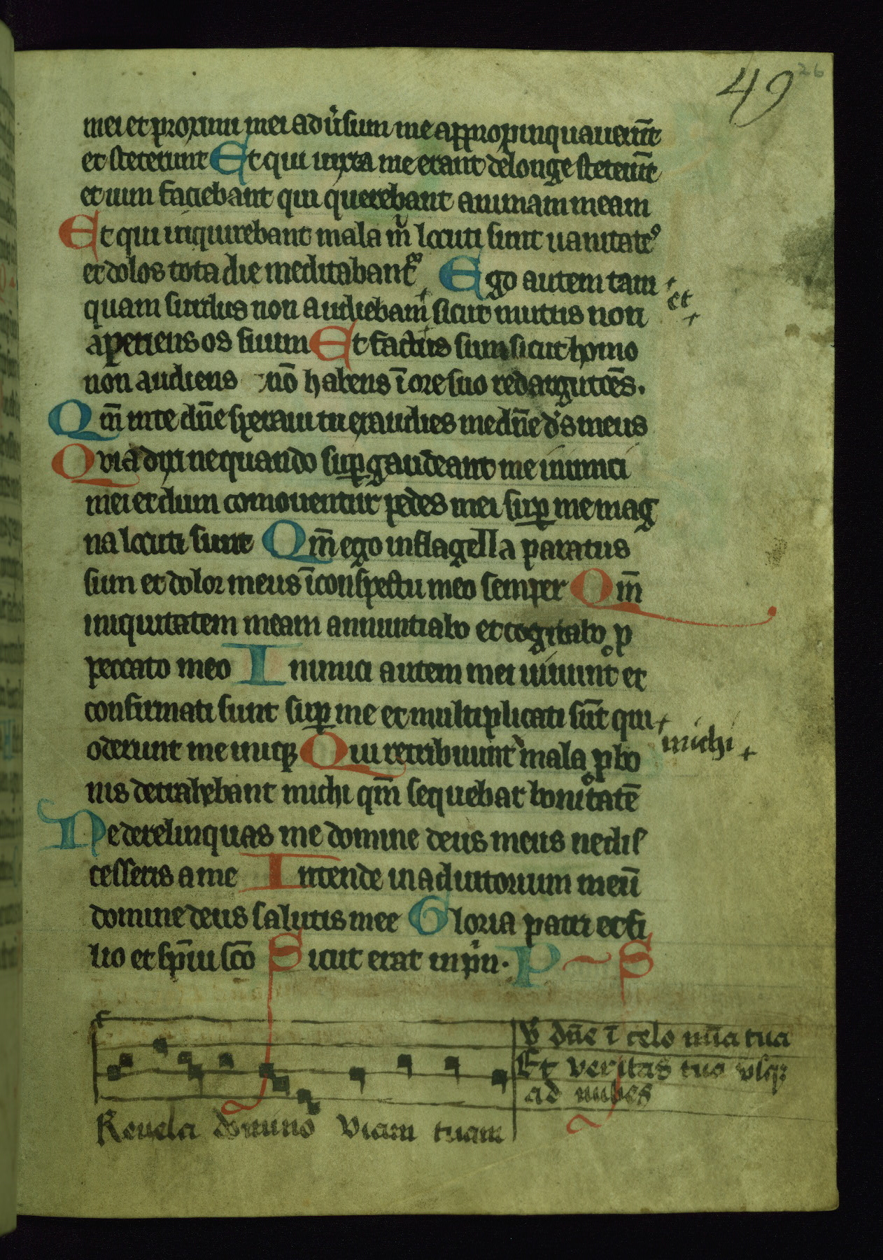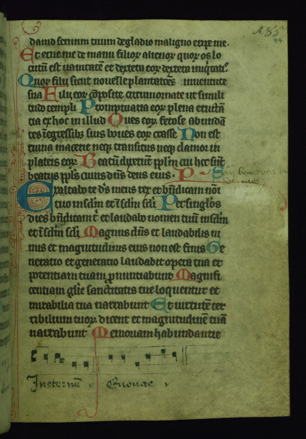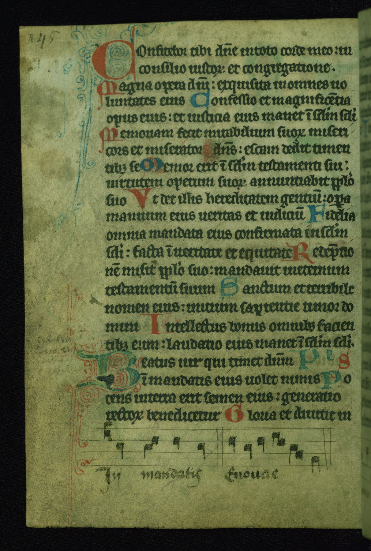 This Flemish Psalter was produced in the Hainaut region between 1265 and 1275. It was altered for Dominican use through the addition of antiphons in the margins in the late fifteenth century, at which point it was also rebound in its current inscribed leather binding. It was later among the books collected by Johann Anton Ramboux (1790-1866), a German painter and museum curator. The manuscript, which is illuminated throughout with twelve large historiated and inhabited initials, is a strong example of a group of manuscripts produced in the last quarter of the thirteenth century that combined the artistic styles of Hainaut and Liège, other examples including Paris, B.N. Lat. 1077, Biblioteca apostolica vaticana, BBR Ms. IV-1066, and Princeton University Art Museum 57.189.