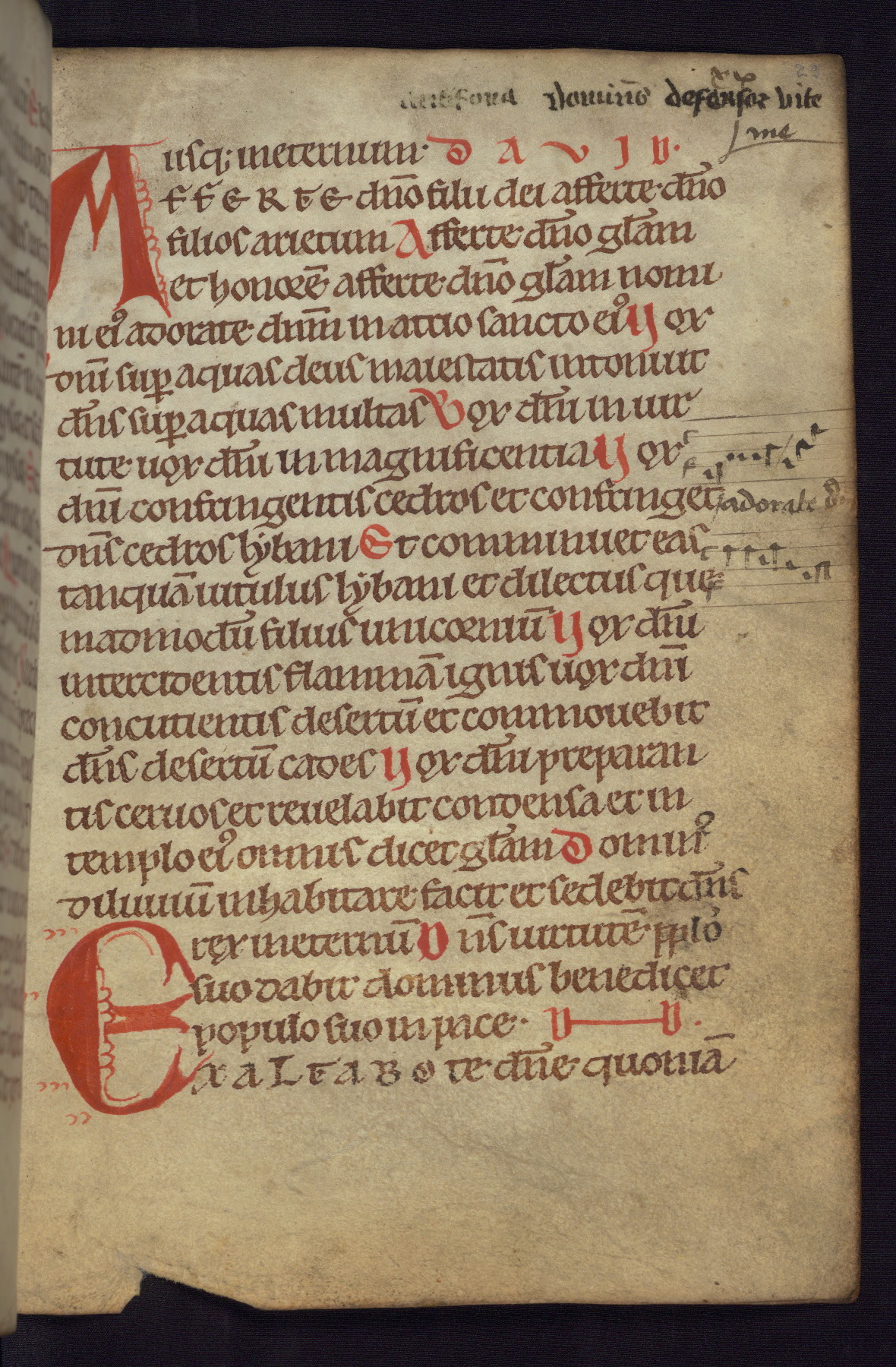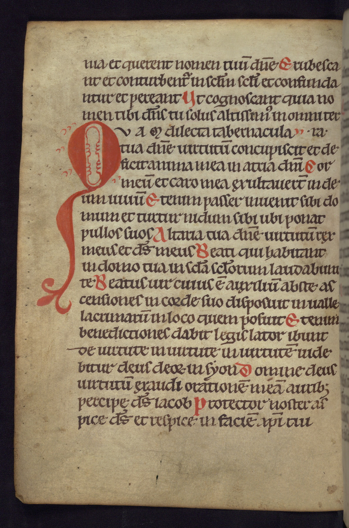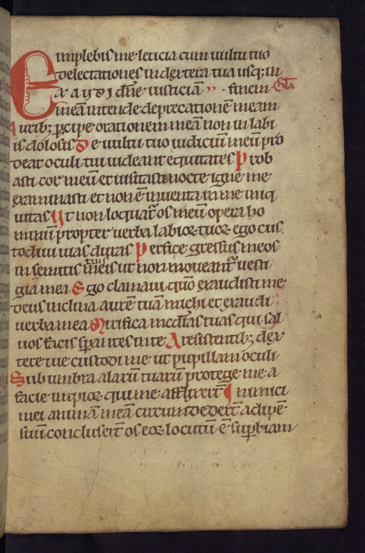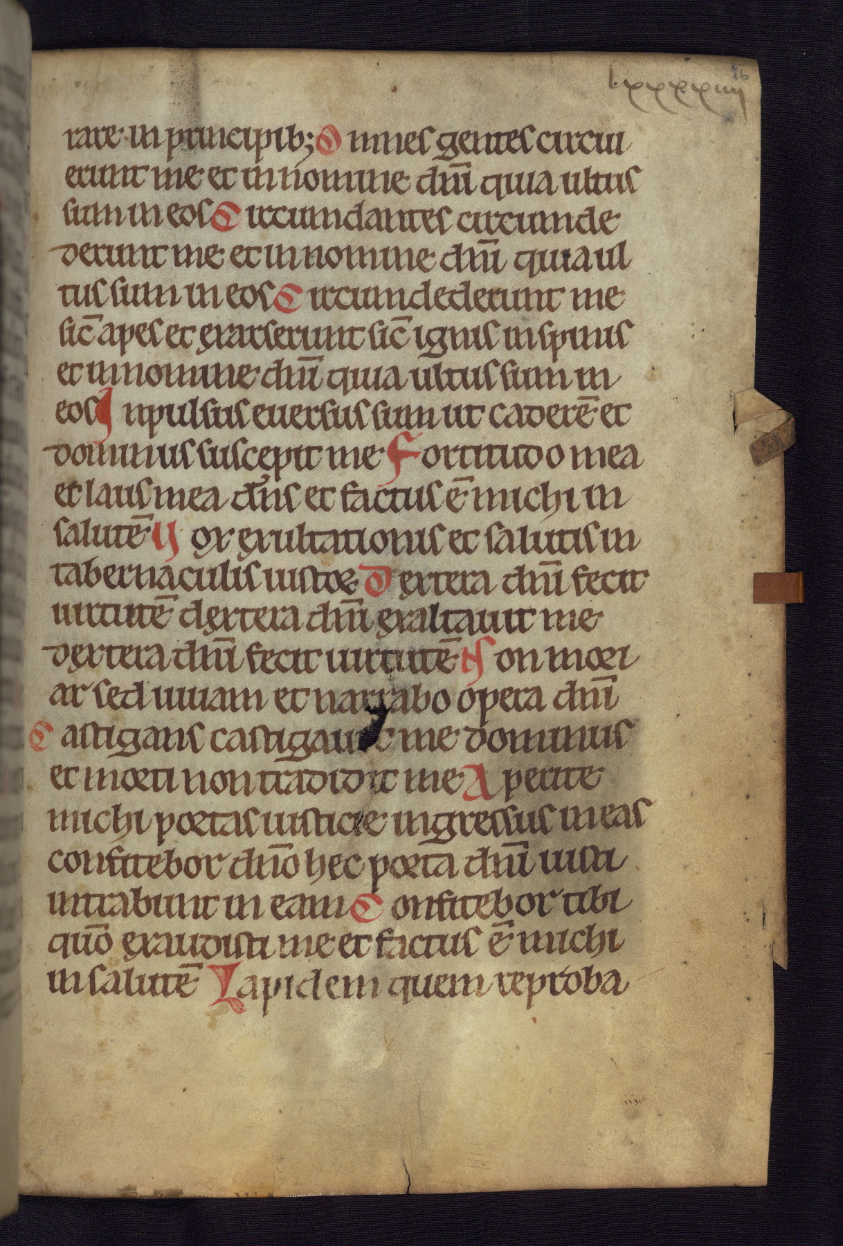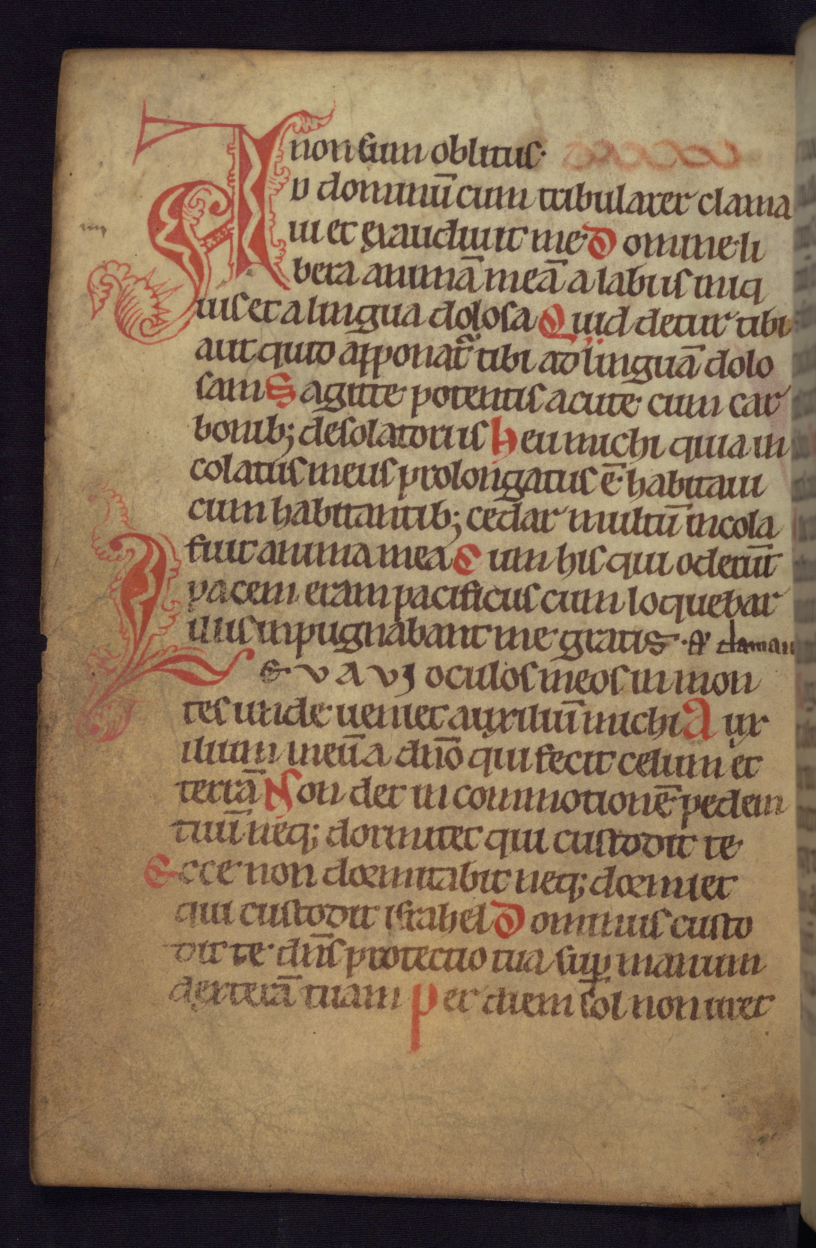 This Latin psalter was made in the second half of the thirteenth century for use in the Diocese of Constance, Germany. By the fourteenth century, it was owned by the Church of St. Mary of Strasbourg, from which it gets its name. The long life and enthusiastic use of the manuscript is attested by a multitude of added inscriptions, prayers, and antiphons with neumes, most dating to the fifteenth or sixteenth century. An early system of bookmarking is also evident; strips of parchment have been cut in some of the margins and folded through a slit in the leaf, creating tabs that would have helped the reader navigate through the text. Illumination also served this function, for while a short cycle of images from the life of Christ introduces the manuscript, the rest of the illuminations--large decorated initials as well as smaller ones in silver and gold--mark the important psalms for the reader. The style of illumination found here is closely related to two other psalters from Constance: Sigmaringen, Royal State Archives Ms. 11 and Hessische Landesbibliothek Fulda Ms. Aa 82.