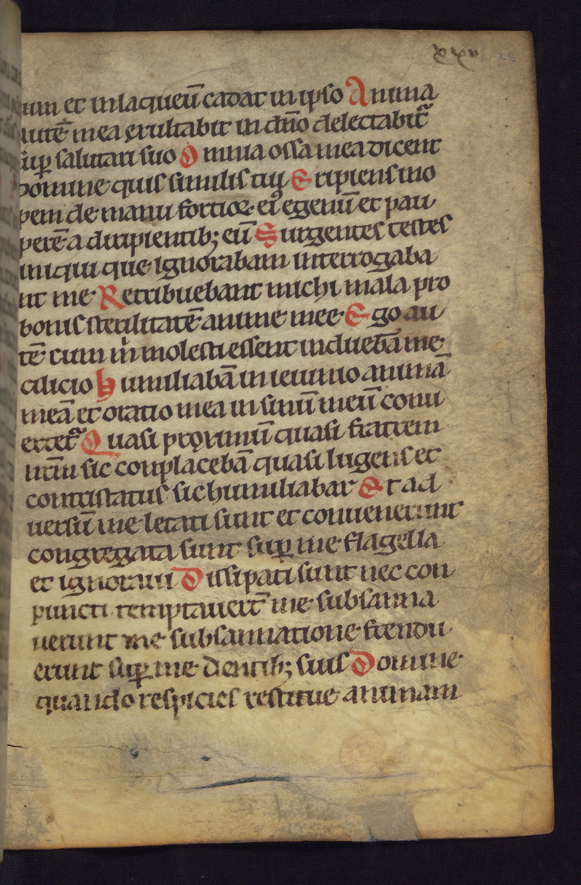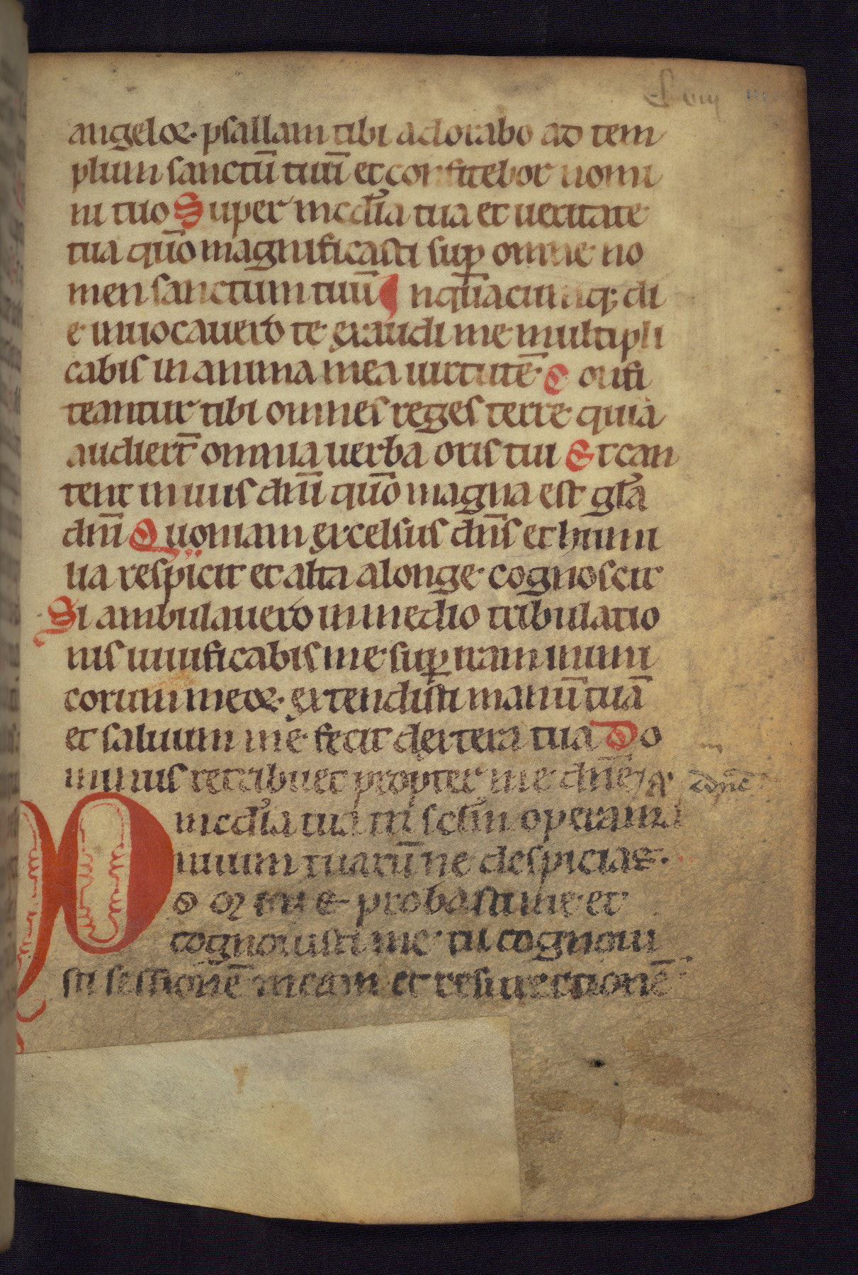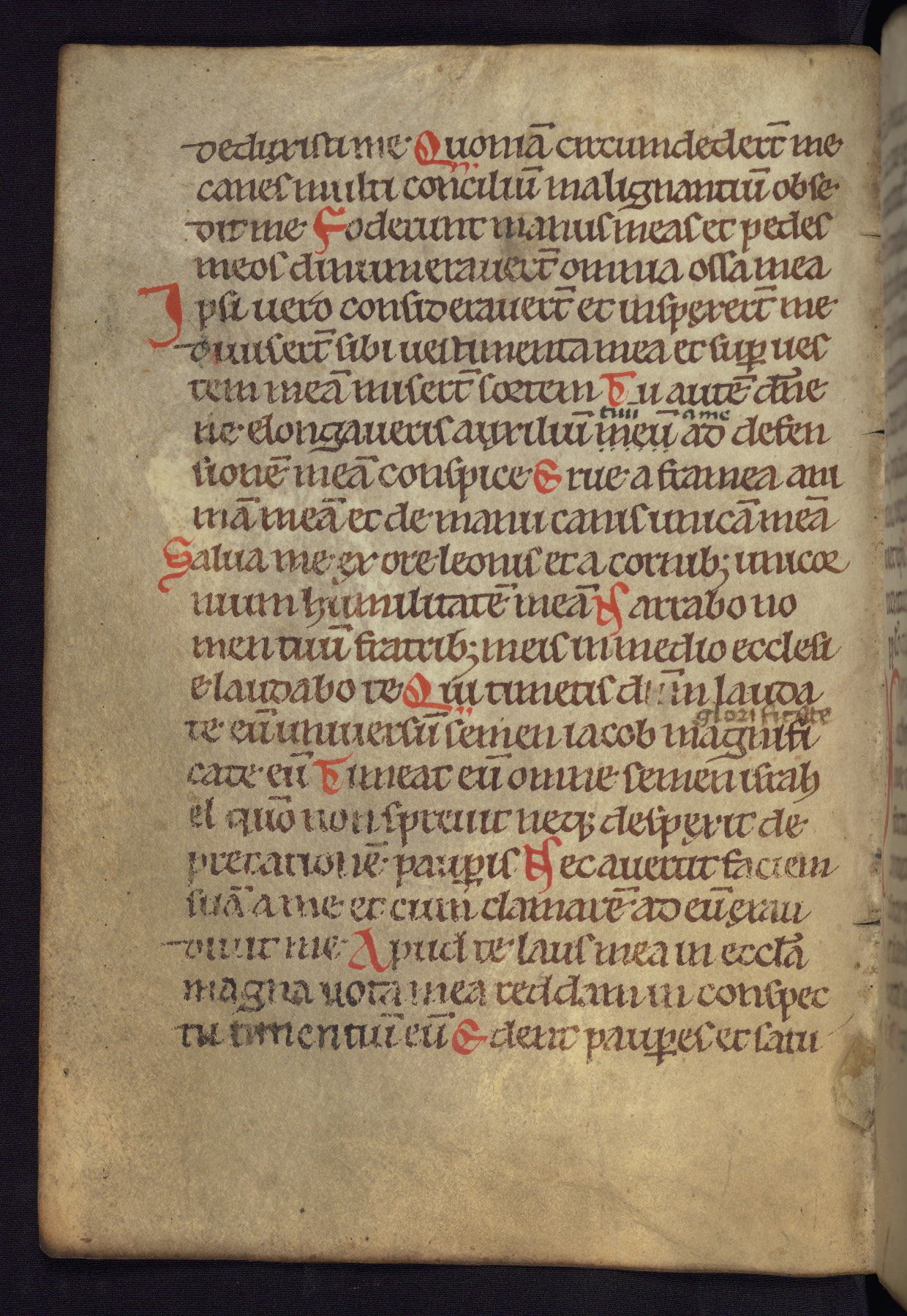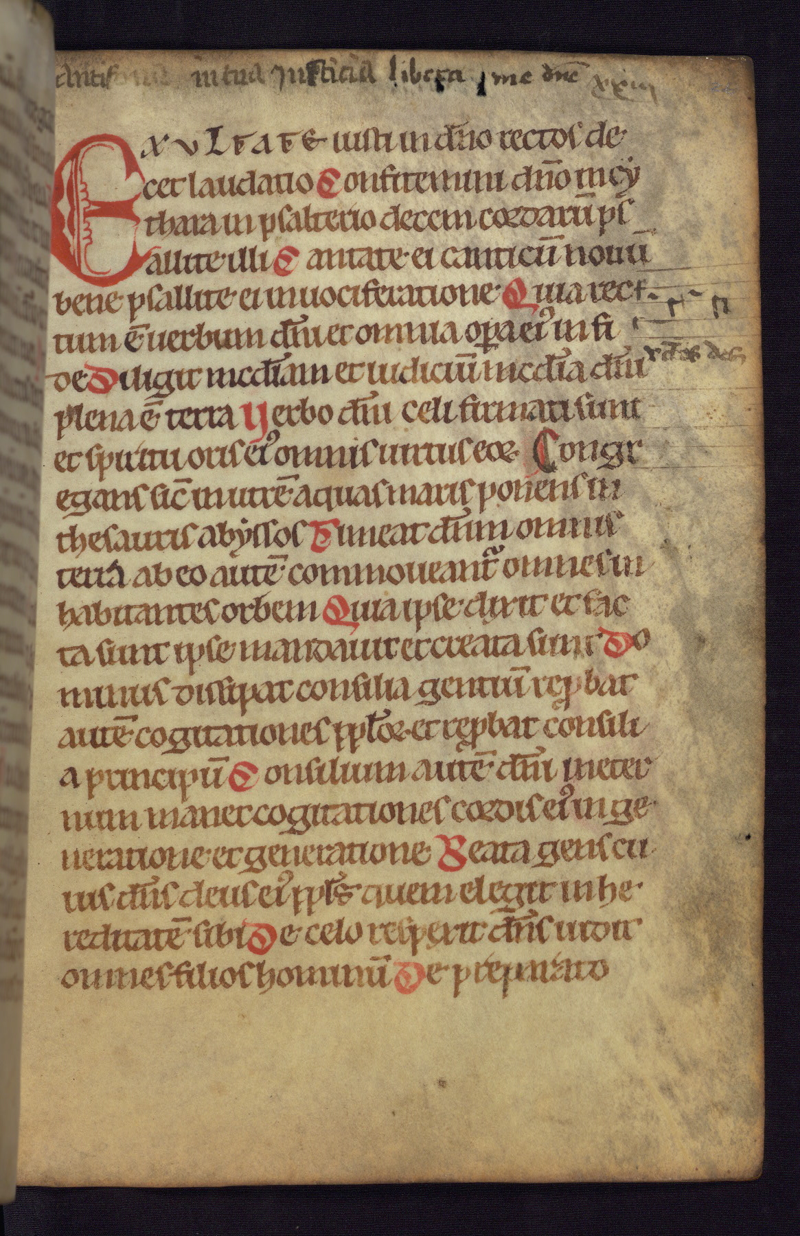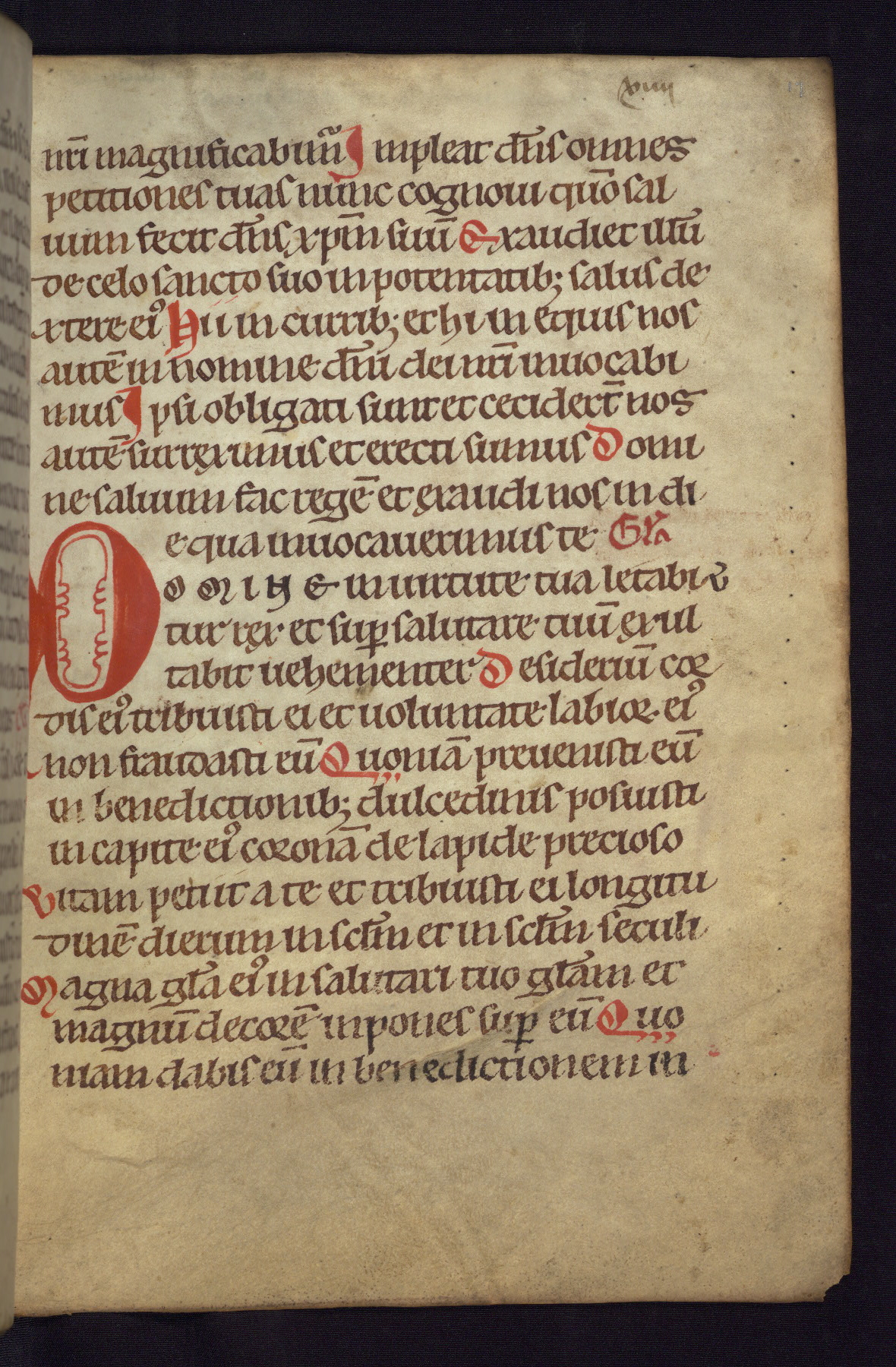 This Latin psalter was made in the second half of the thirteenth century for use in the Diocese of Constance, Germany. By the fourteenth century, it was owned by the Church of St. Mary of Strasbourg, from which it gets its name. The long life and enthusiastic use of the manuscript is attested by a multitude of added inscriptions, prayers, and antiphons with neumes, most dating to the fifteenth or sixteenth century. An early system of bookmarking is also evident; strips of parchment have been cut in some of the margins and folded through a slit in the leaf, creating tabs that would have helped the reader navigate through the text. Illumination also served this function, for while a short cycle of images from the life of Christ introduces the manuscript, the rest of the illuminations--large decorated initials as well as smaller ones in silver and gold--mark the important psalms for the reader. The style of illumination found here is closely related to two other psalters from Constance: Sigmaringen, Royal State Archives Ms. 11 and Hessische Landesbibliothek Fulda Ms. Aa 82.