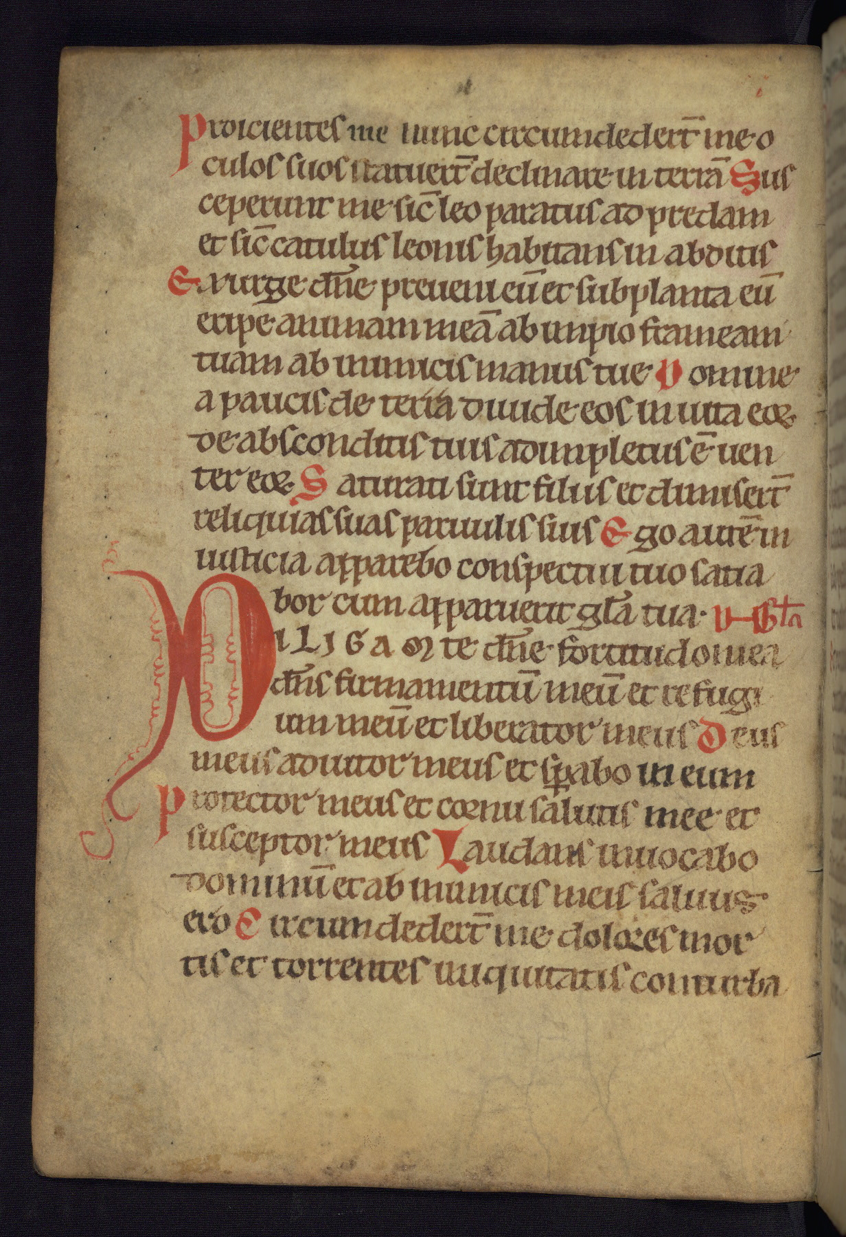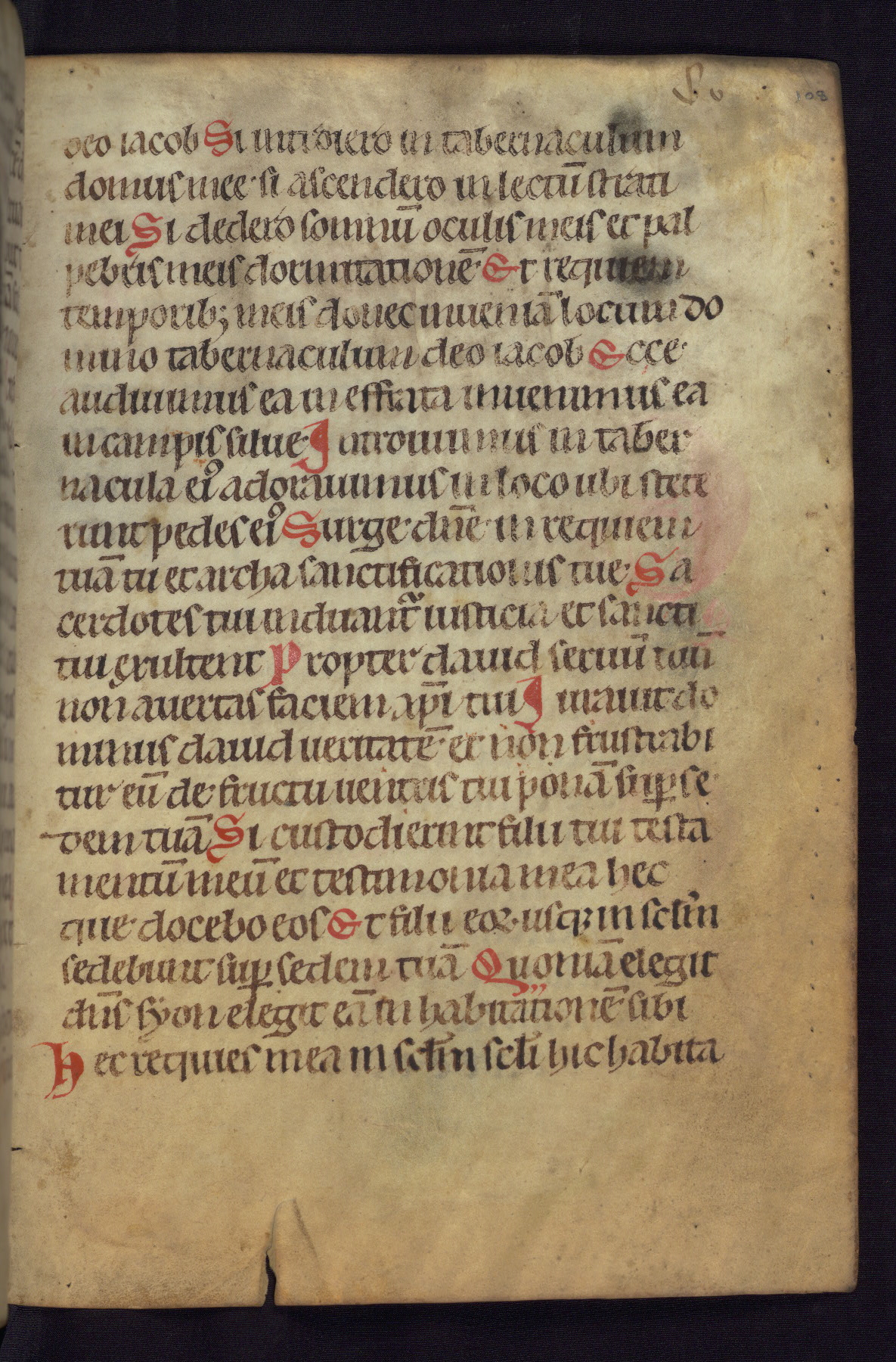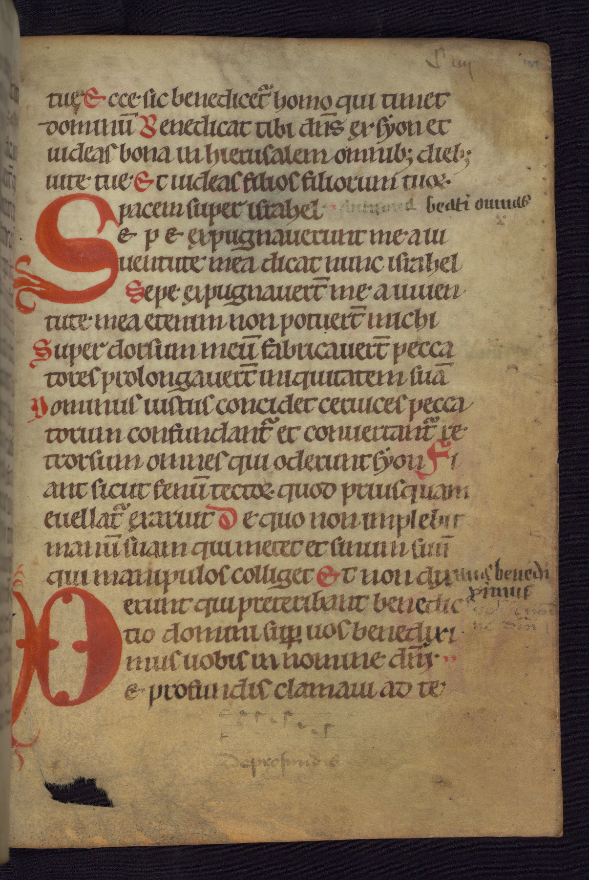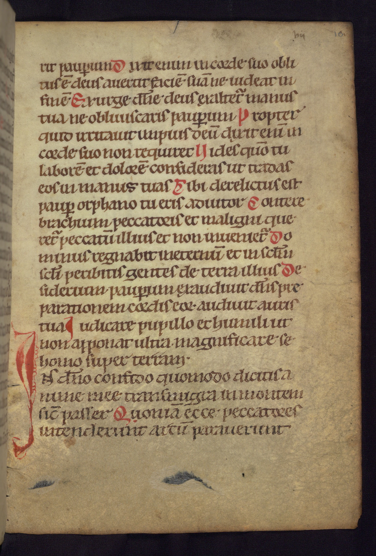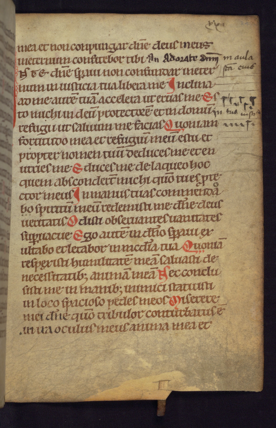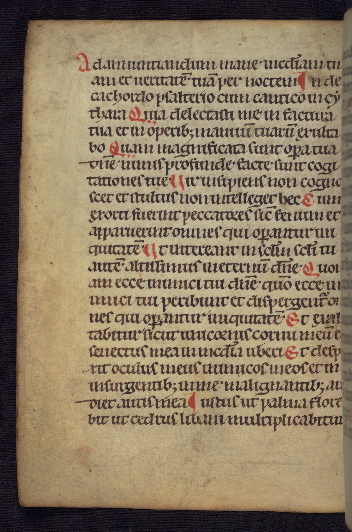 This Latin psalter was made in the second half of the thirteenth century for use in the Diocese of Constance, Germany. By the fourteenth century, it was owned by the Church of St. Mary of Strasbourg, from which it gets its name. The long life and enthusiastic use of the manuscript is attested by a multitude of added inscriptions, prayers, and antiphons with neumes, most dating to the fifteenth or sixteenth century. An early system of bookmarking is also evident; strips of parchment have been cut in some of the margins and folded through a slit in the leaf, creating tabs that would have helped the reader navigate through the text. Illumination also served this function, for while a short cycle of images from the life of Christ introduces the manuscript, the rest of the illuminations--large decorated initials as well as smaller ones in silver and gold--mark the important psalms for the reader. The style of illumination found here is closely related to two other psalters from Constance: Sigmaringen, Royal State Archives Ms. 11 and Hessische Landesbibliothek Fulda Ms. Aa 82.