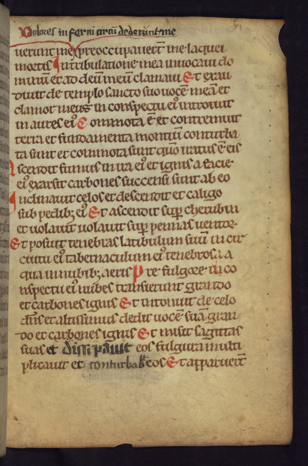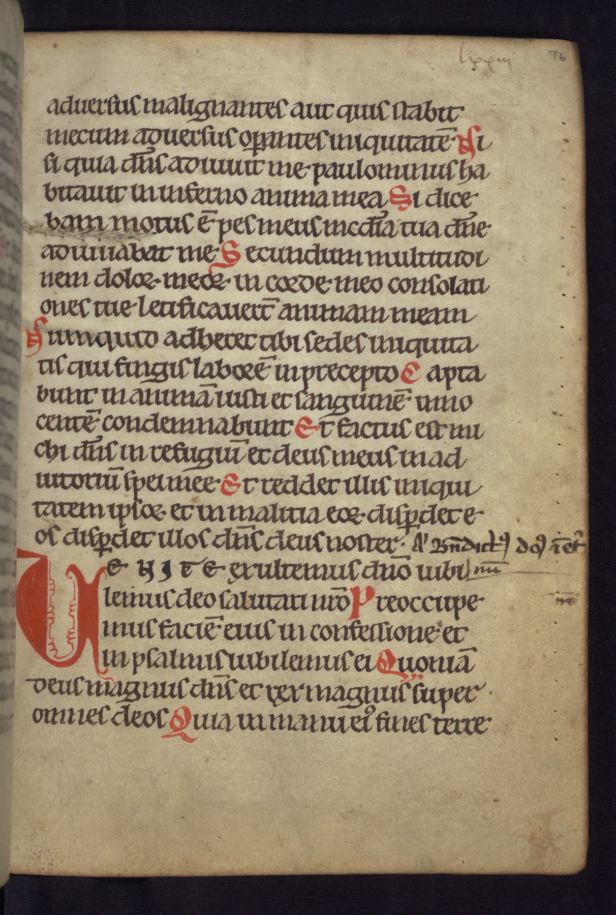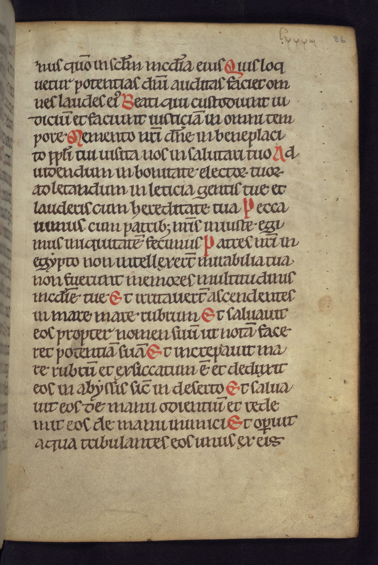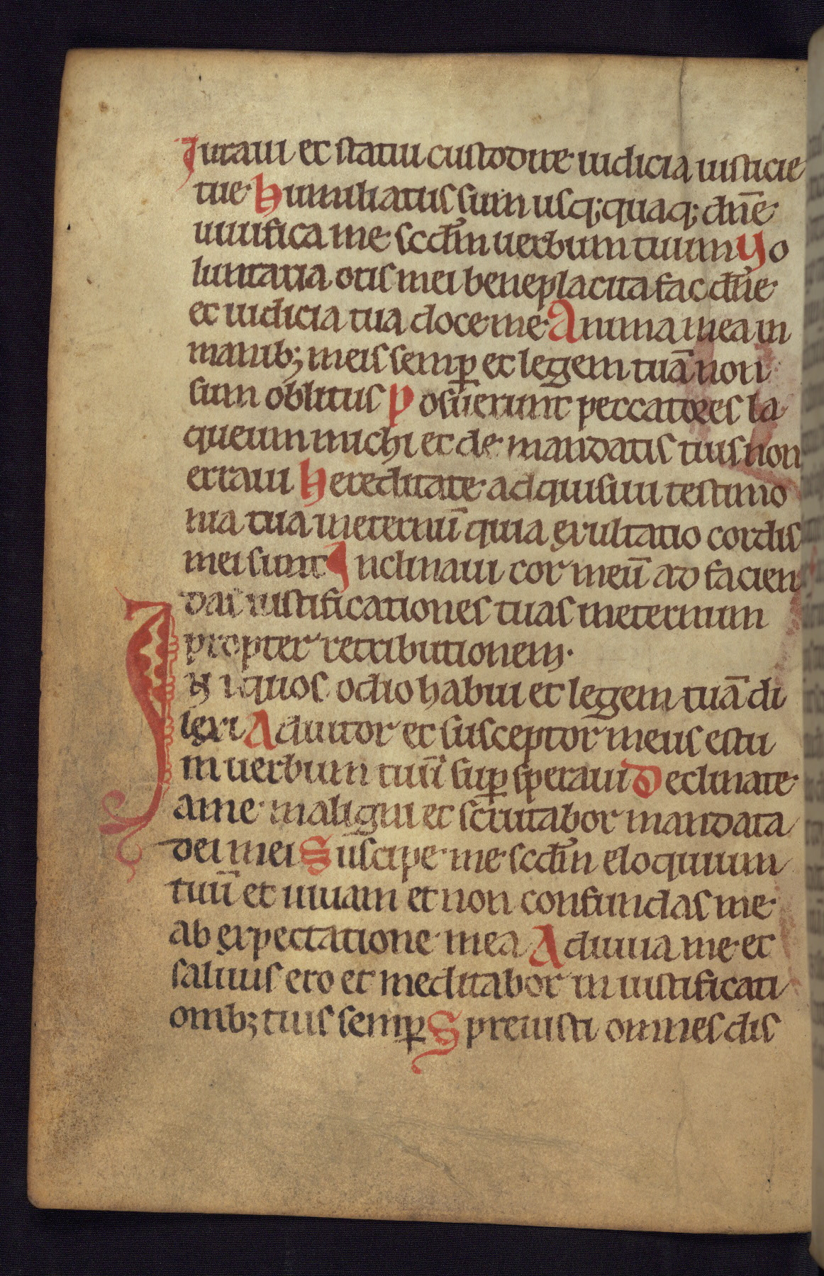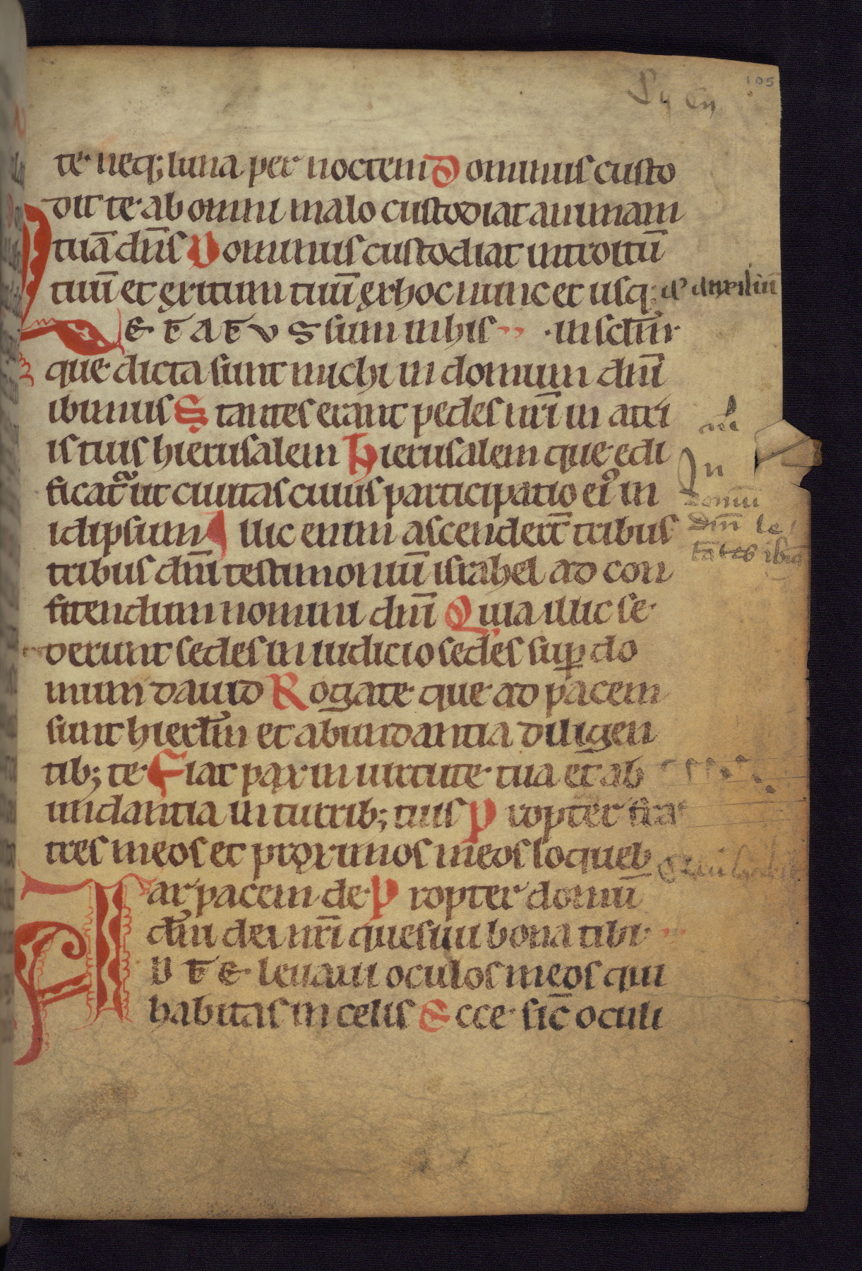 This Latin psalter was made in the second half of the thirteenth century for use in the Diocese of Constance, Germany. By the fourteenth century, it was owned by the Church of St. Mary of Strasbourg, from which it gets its name. The long life and enthusiastic use of the manuscript is attested by a multitude of added inscriptions, prayers, and antiphons with neumes, most dating to the fifteenth or sixteenth century. An early system of bookmarking is also evident; strips of parchment have been cut in some of the margins and folded through a slit in the leaf, creating tabs that would have helped the reader navigate through the text. Illumination also served this function, for while a short cycle of images from the life of Christ introduces the manuscript, the rest of the illuminations--large decorated initials as well as smaller ones in silver and gold--mark the important psalms for the reader. The style of illumination found here is closely related to two other psalters from Constance: Sigmaringen, Royal State Archives Ms. 11 and Hessische Landesbibliothek Fulda Ms. Aa 82.