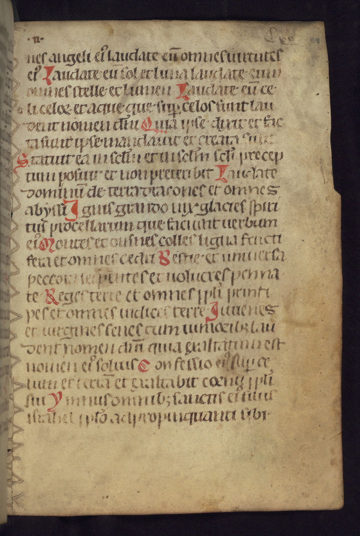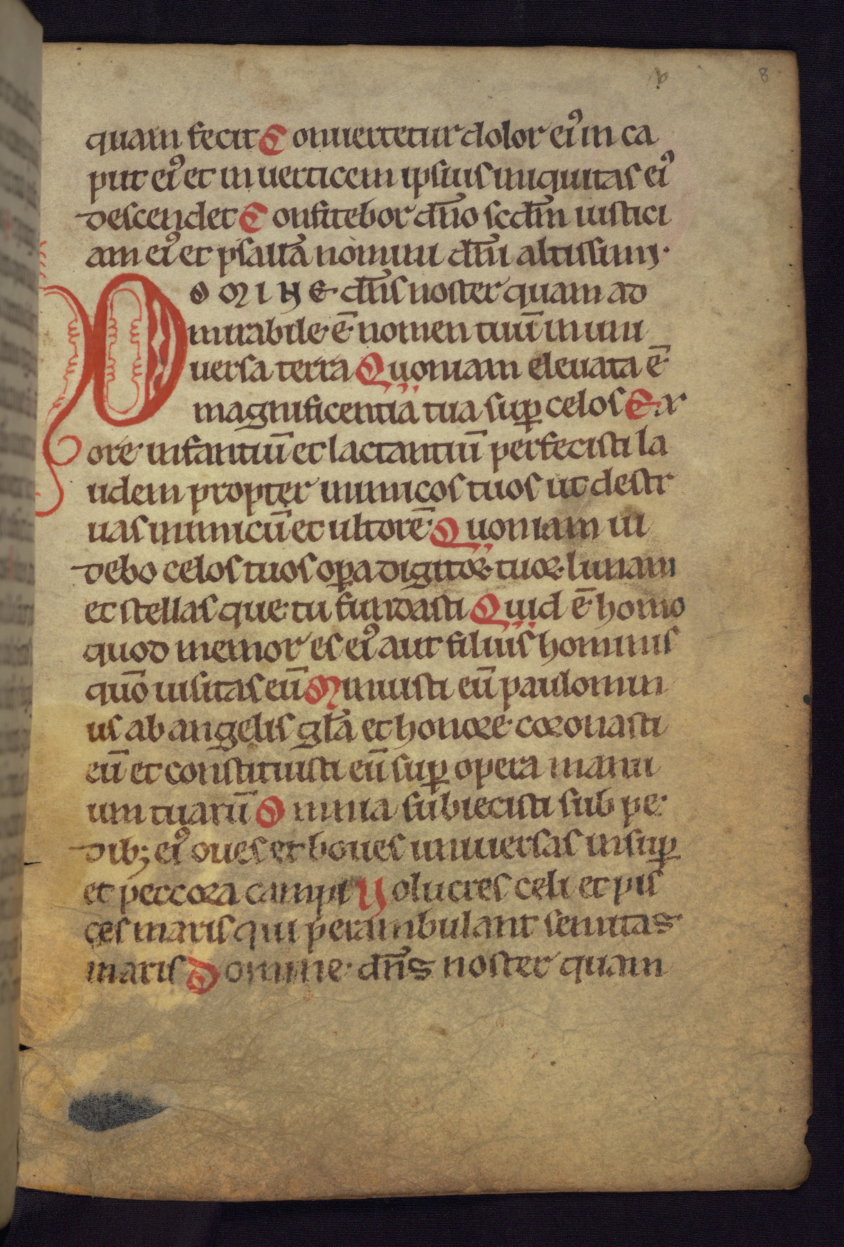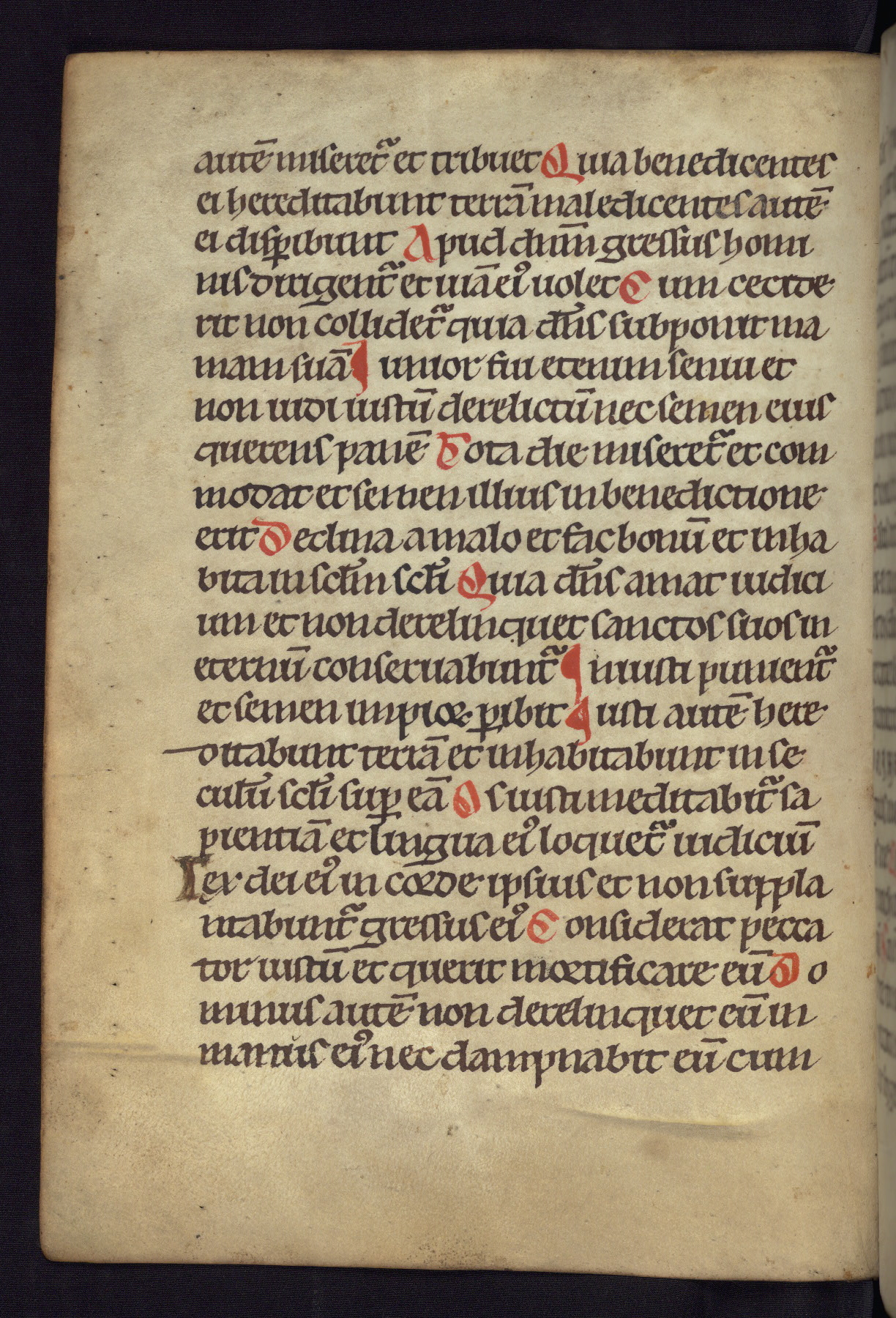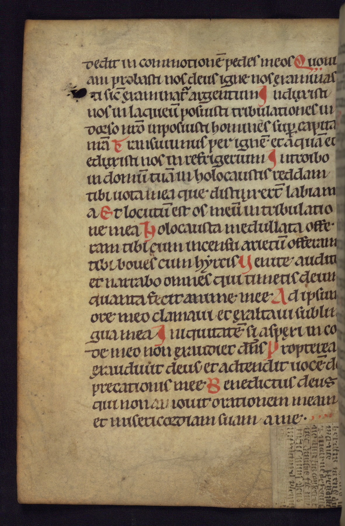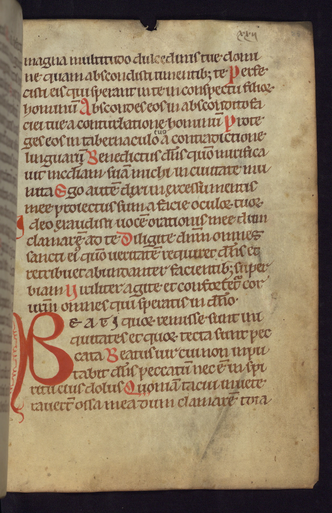 This Latin psalter was made in the second half of the thirteenth century for use in the Diocese of Constance, Germany. By the fourteenth century, it was owned by the Church of St. Mary of Strasbourg, from which it gets its name. The long life and enthusiastic use of the manuscript is attested by a multitude of added inscriptions, prayers, and antiphons with neumes, most dating to the fifteenth or sixteenth century. An early system of bookmarking is also evident; strips of parchment have been cut in some of the margins and folded through a slit in the leaf, creating tabs that would have helped the reader navigate through the text. Illumination also served this function, for while a short cycle of images from the life of Christ introduces the manuscript, the rest of the illuminations--large decorated initials as well as smaller ones in silver and gold--mark the important psalms for the reader. The style of illumination found here is closely related to two other psalters from Constance: Sigmaringen, Royal State Archives Ms. 11 and Hessische Landesbibliothek Fulda Ms. Aa 82.