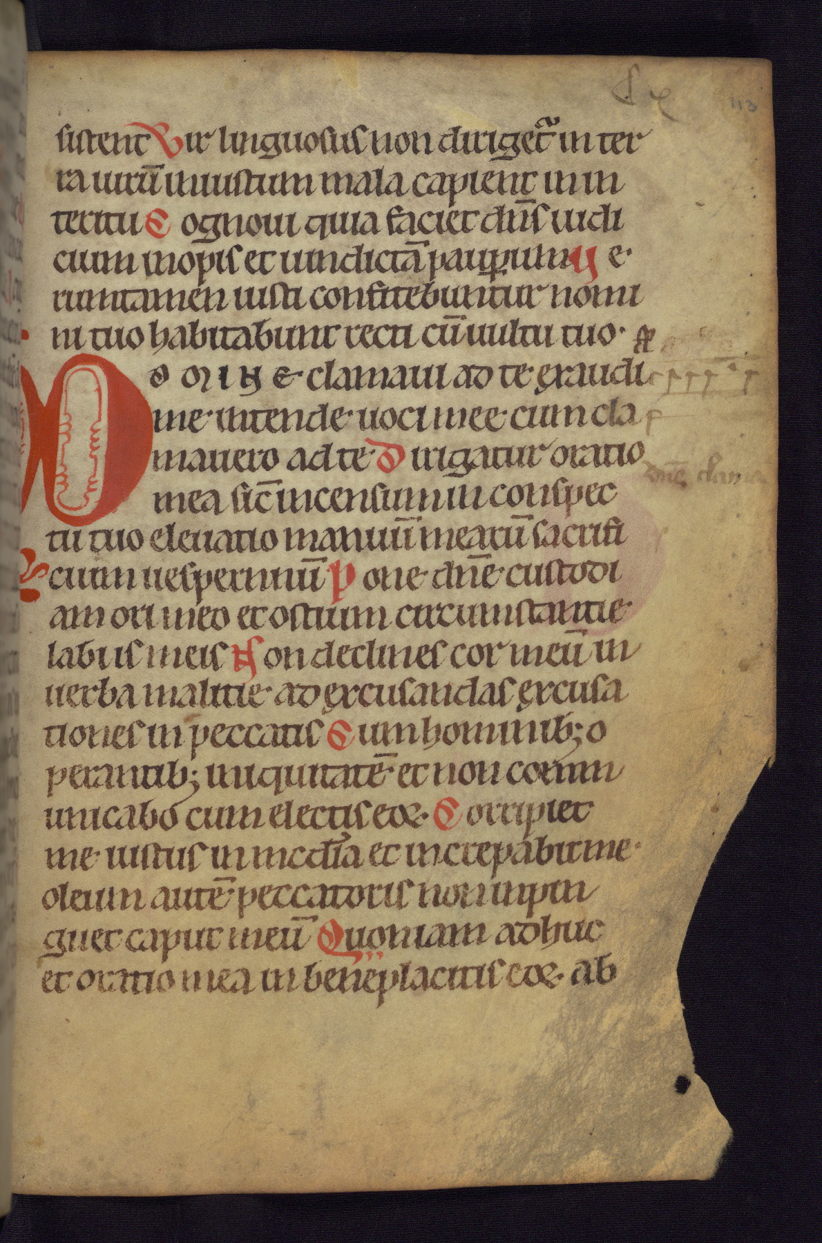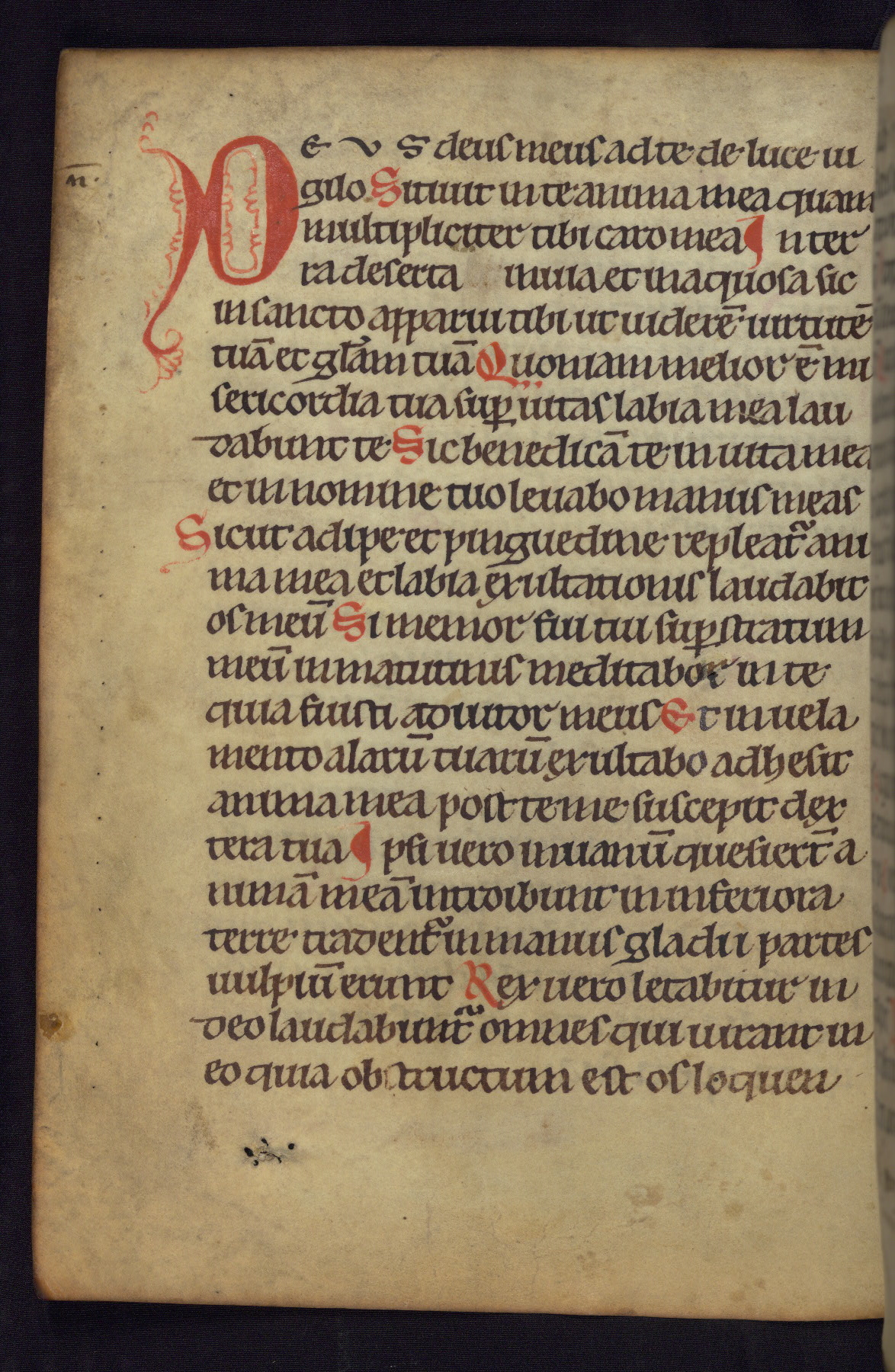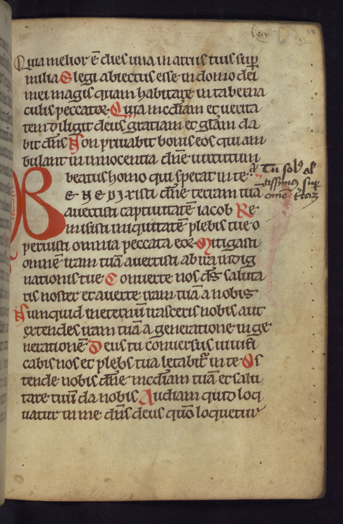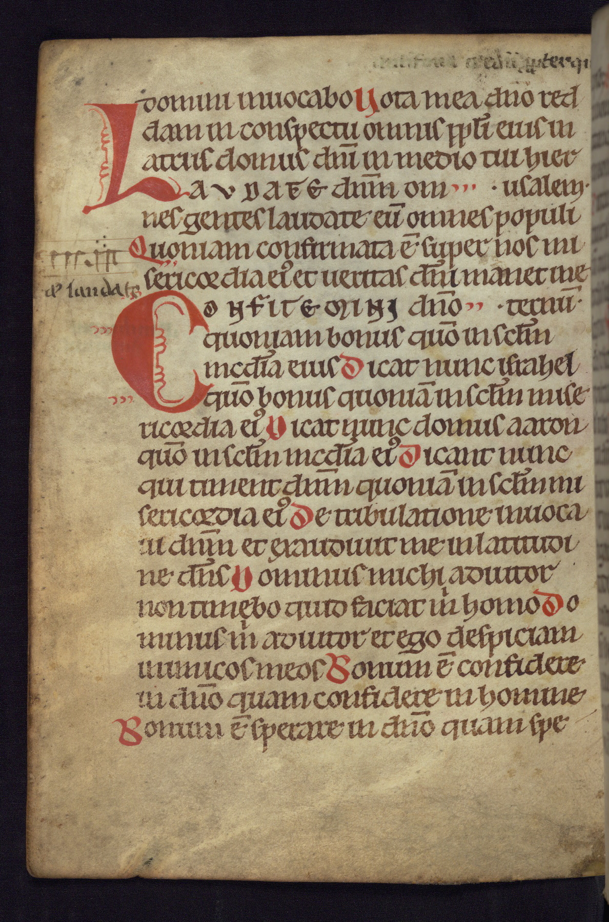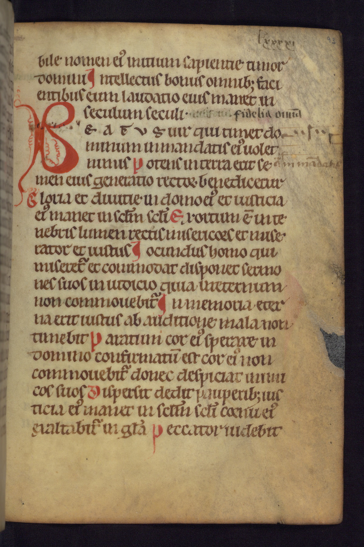 This Latin psalter was made in the second half of the thirteenth century for use in the Diocese of Constance, Germany. By the fourteenth century, it was owned by the Church of St. Mary of Strasbourg, from which it gets its name. The long life and enthusiastic use of the manuscript is attested by a multitude of added inscriptions, prayers, and antiphons with neumes, most dating to the fifteenth or sixteenth century. An early system of bookmarking is also evident; strips of parchment have been cut in some of the margins and folded through a slit in the leaf, creating tabs that would have helped the reader navigate through the text. Illumination also served this function, for while a short cycle of images from the life of Christ introduces the manuscript, the rest of the illuminations--large decorated initials as well as smaller ones in silver and gold--mark the important psalms for the reader. The style of illumination found here is closely related to two other psalters from Constance: Sigmaringen, Royal State Archives Ms. 11 and Hessische Landesbibliothek Fulda Ms. Aa 82.
