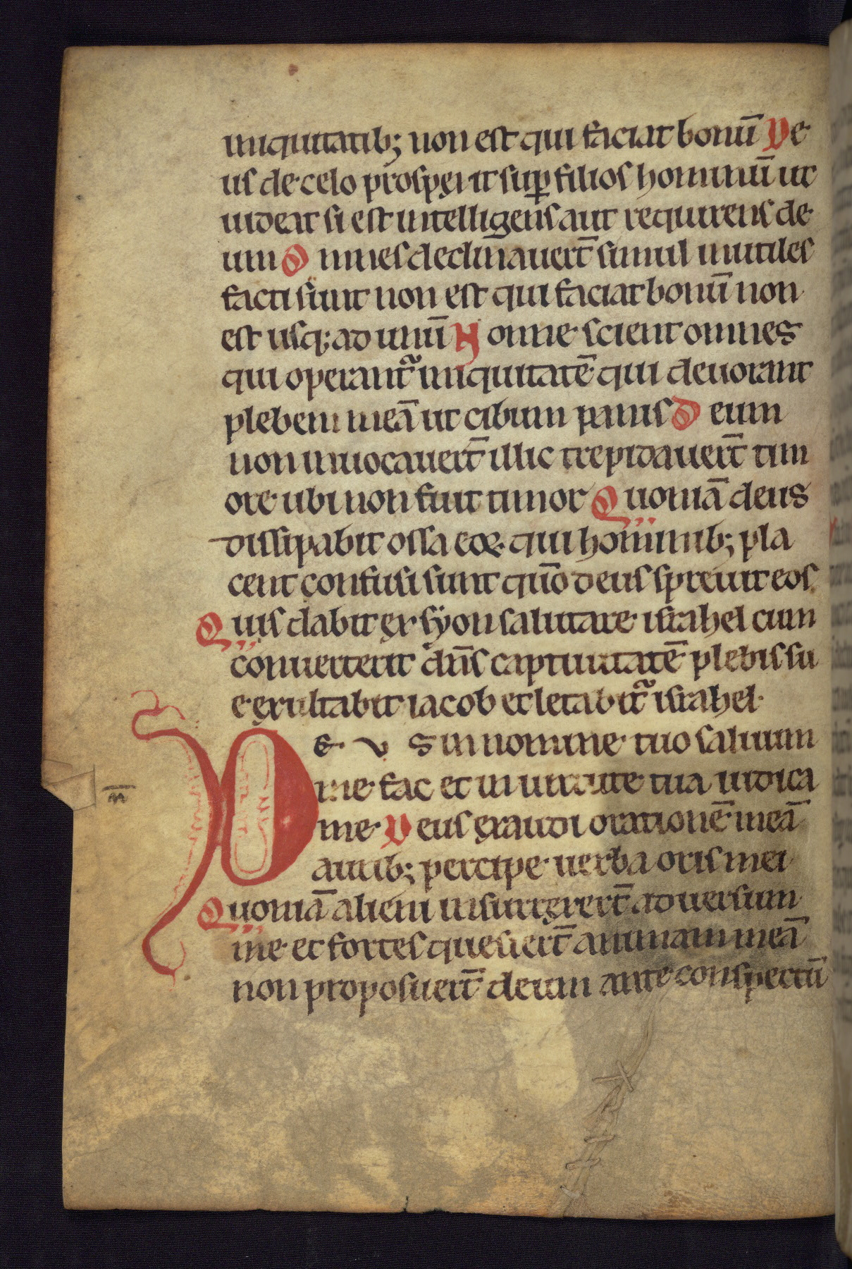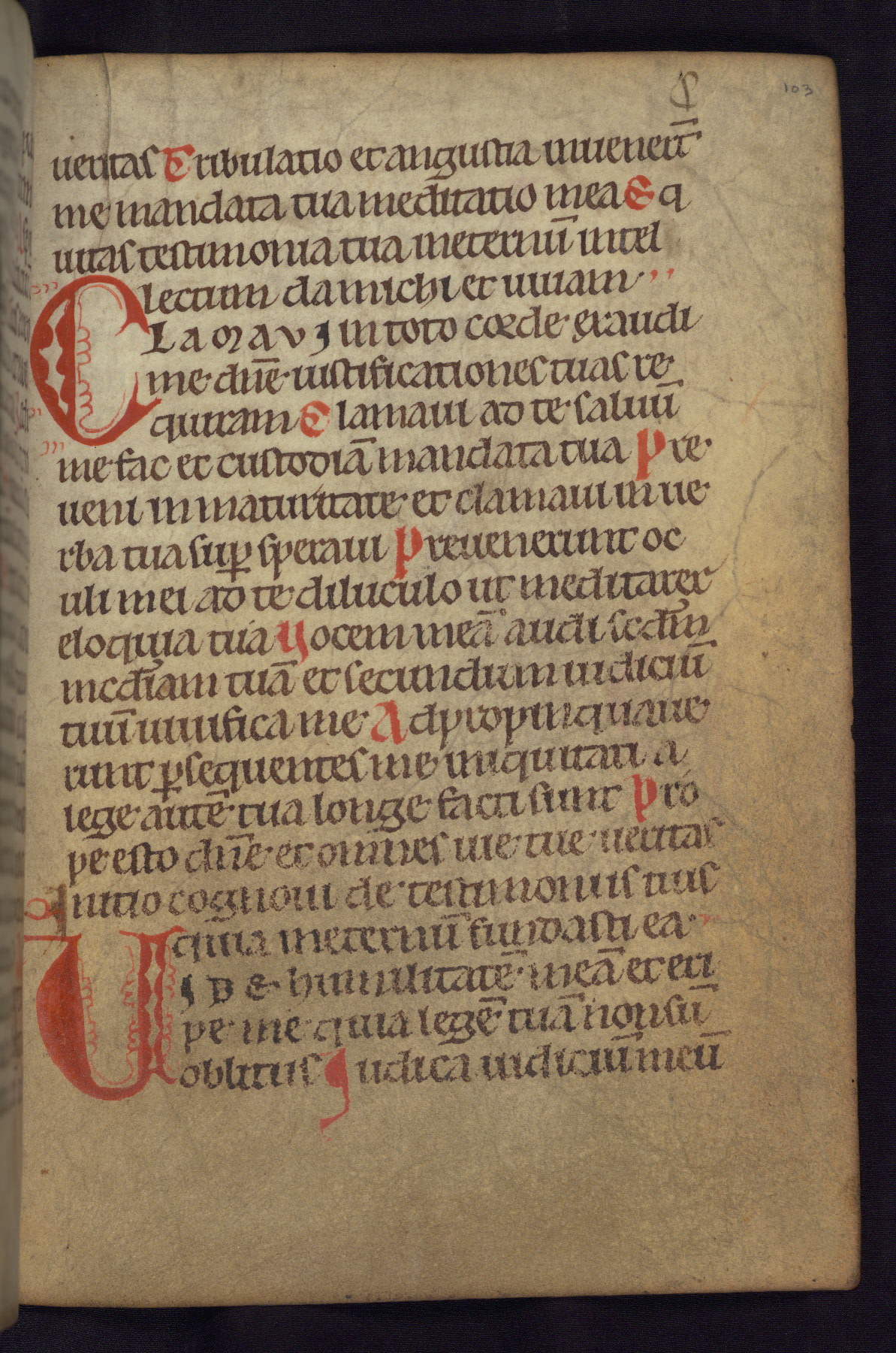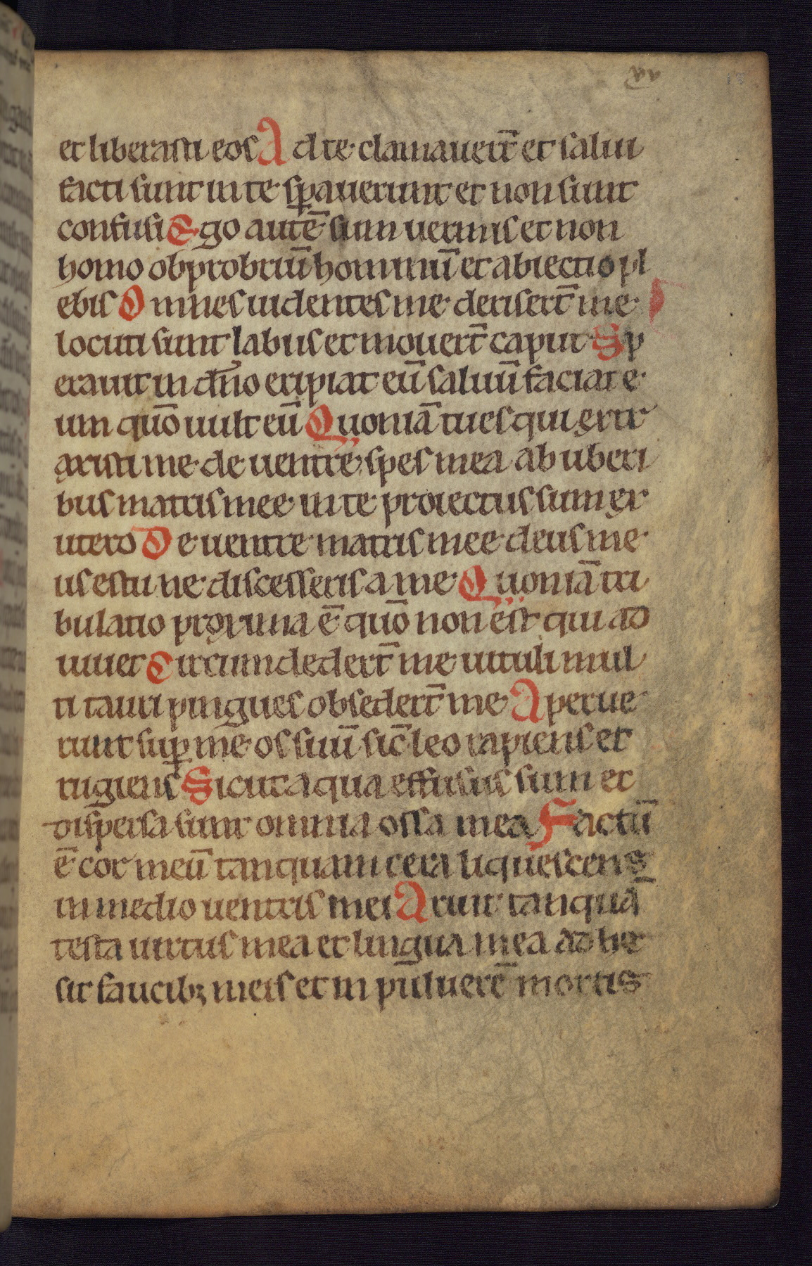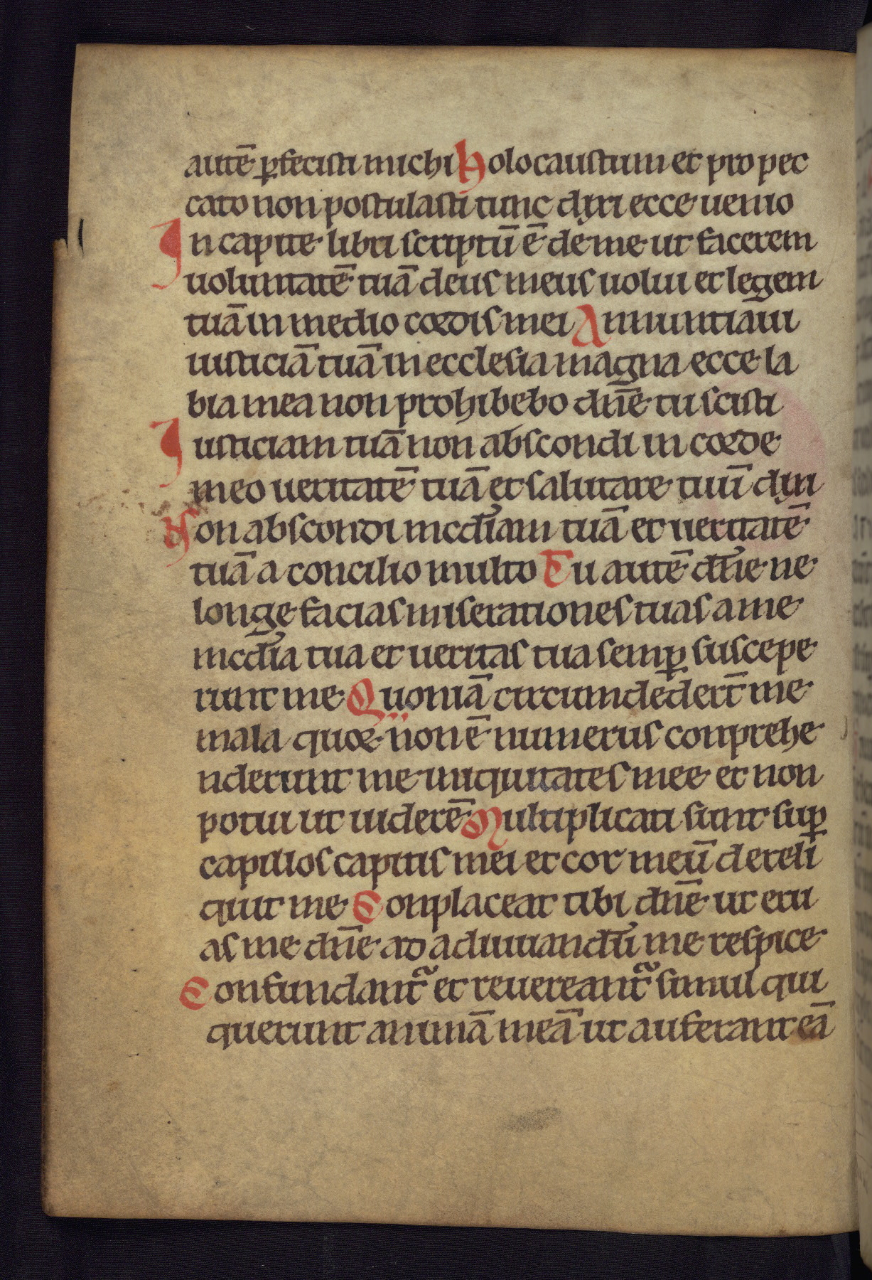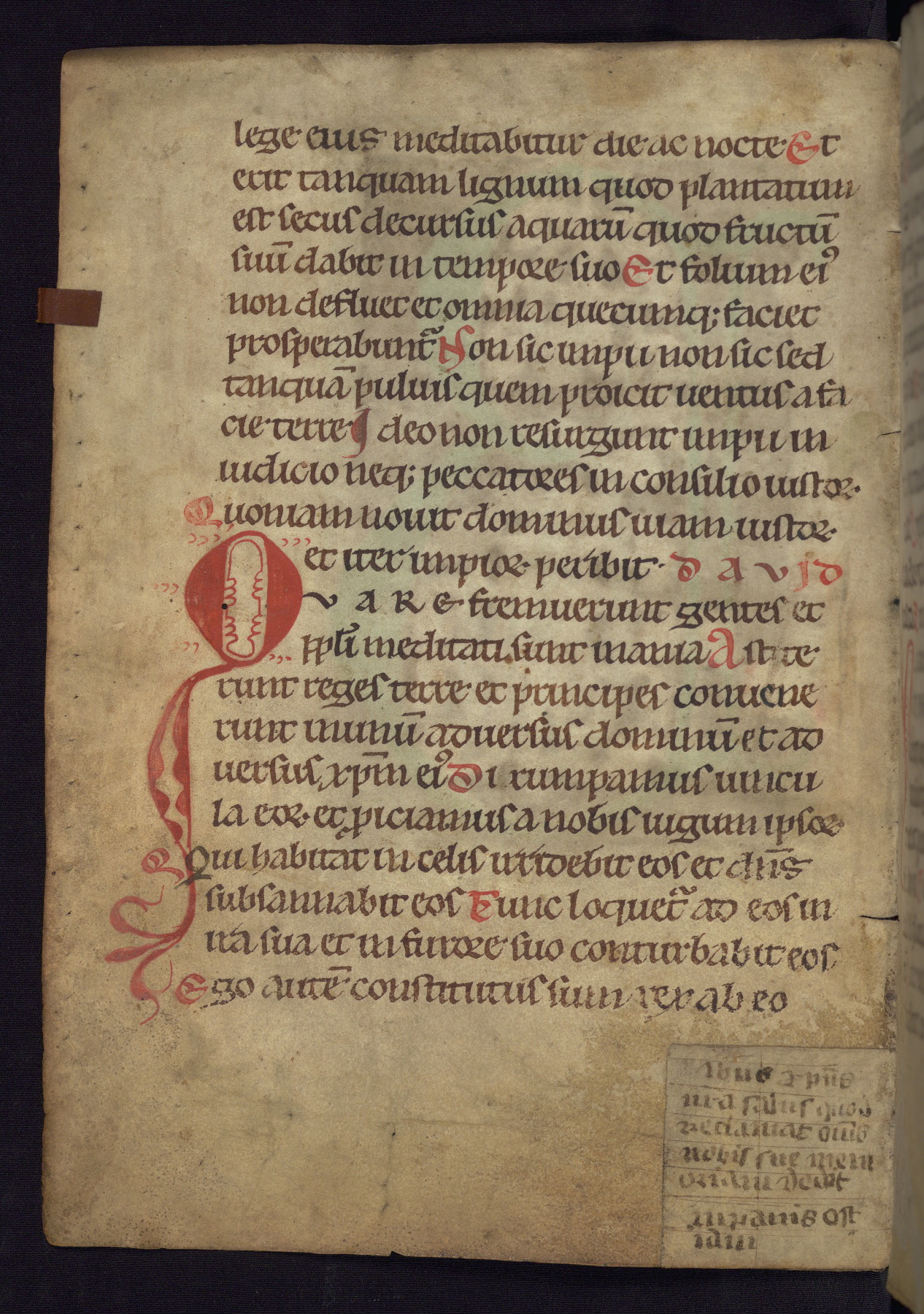 This Latin psalter was made in the second half of the thirteenth century for use in the Diocese of Constance, Germany. By the fourteenth century, it was owned by the Church of St. Mary of Strasbourg, from which it gets its name. The long life and enthusiastic use of the manuscript is attested by a multitude of added inscriptions, prayers, and antiphons with neumes, most dating to the fifteenth or sixteenth century. An early system of bookmarking is also evident; strips of parchment have been cut in some of the margins and folded through a slit in the leaf, creating tabs that would have helped the reader navigate through the text. Illumination also served this function, for while a short cycle of images from the life of Christ introduces the manuscript, the rest of the illuminations--large decorated initials as well as smaller ones in silver and gold--mark the important psalms for the reader. The style of illumination found here is closely related to two other psalters from Constance: Sigmaringen, Royal State Archives Ms. 11 and Hessische Landesbibliothek Fulda Ms. Aa 82.