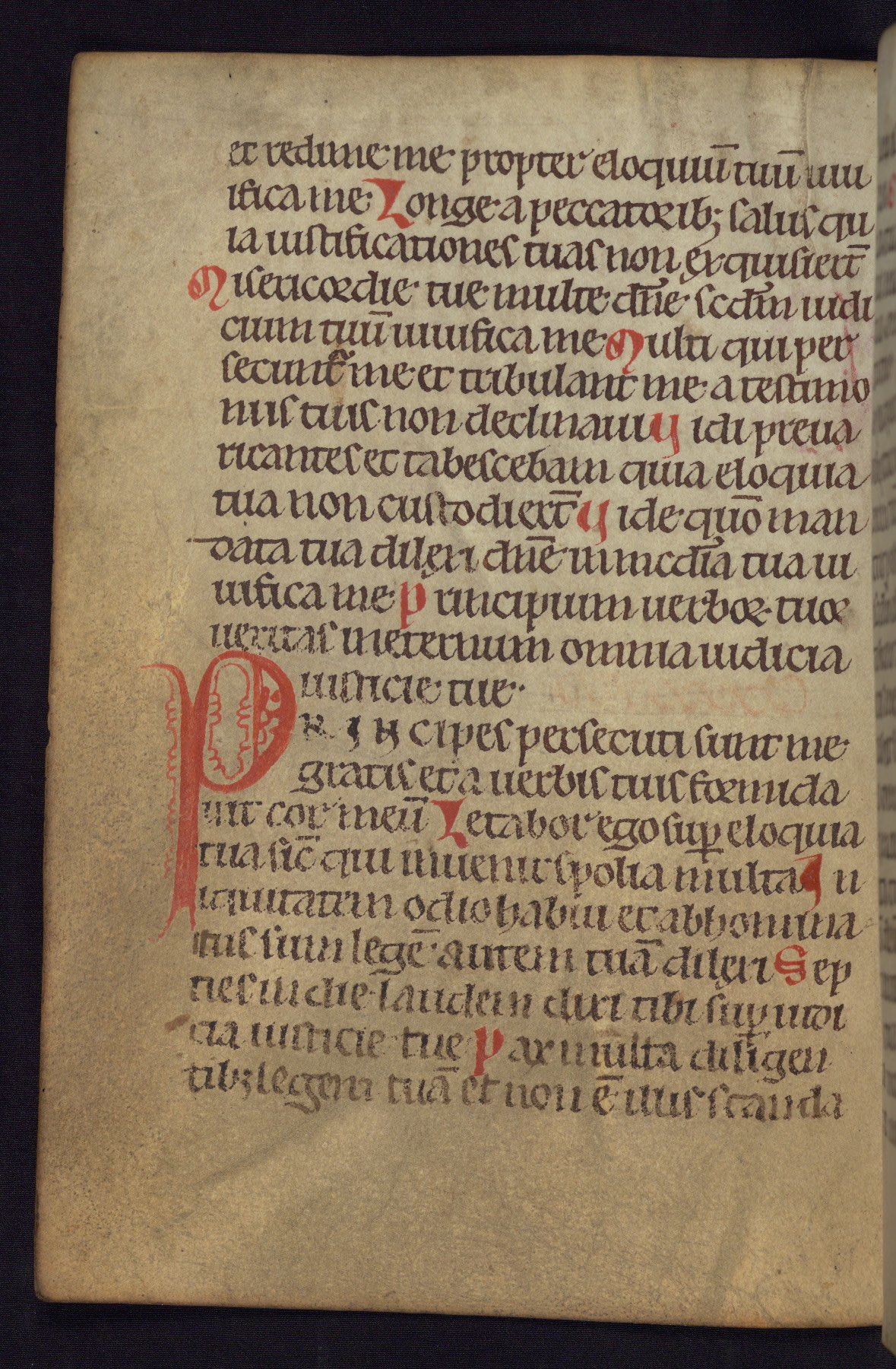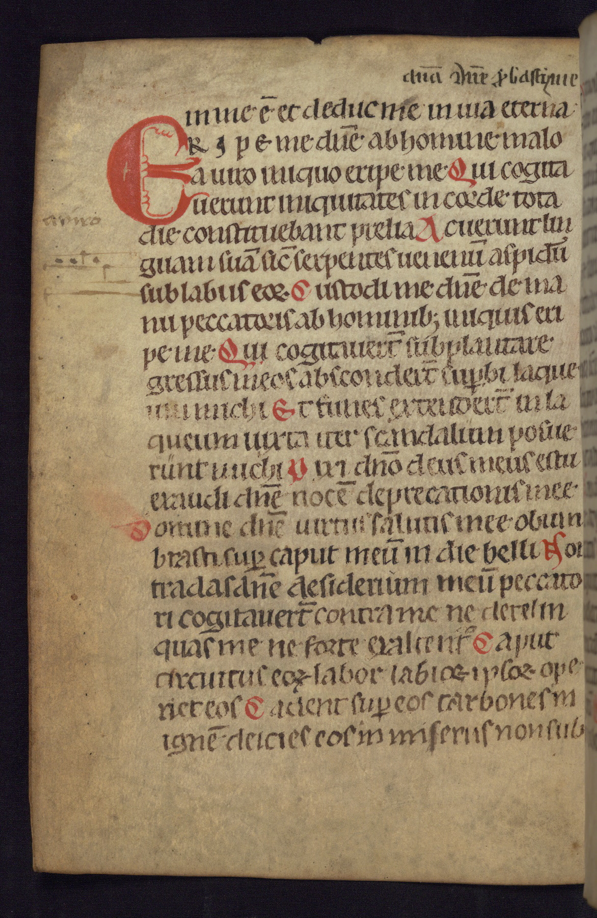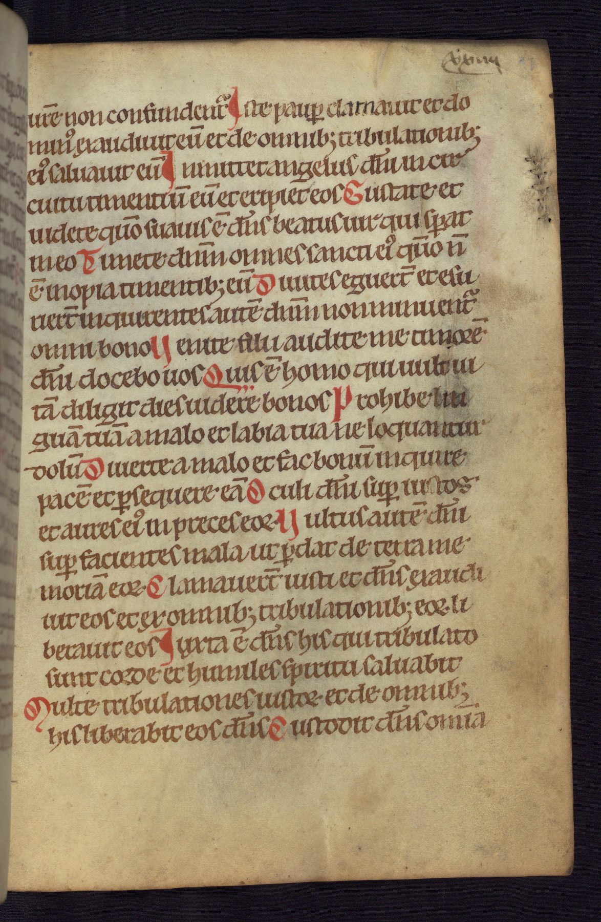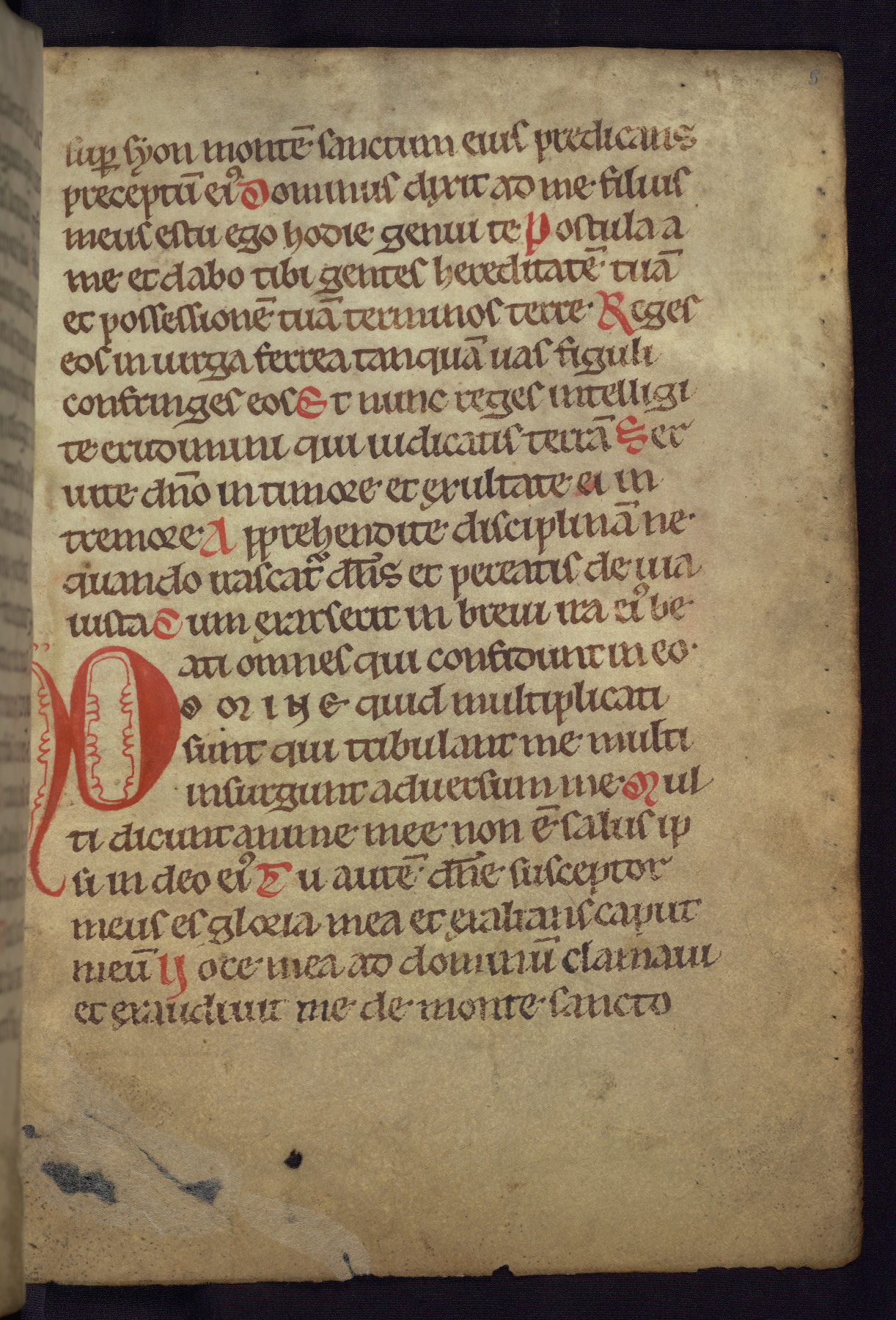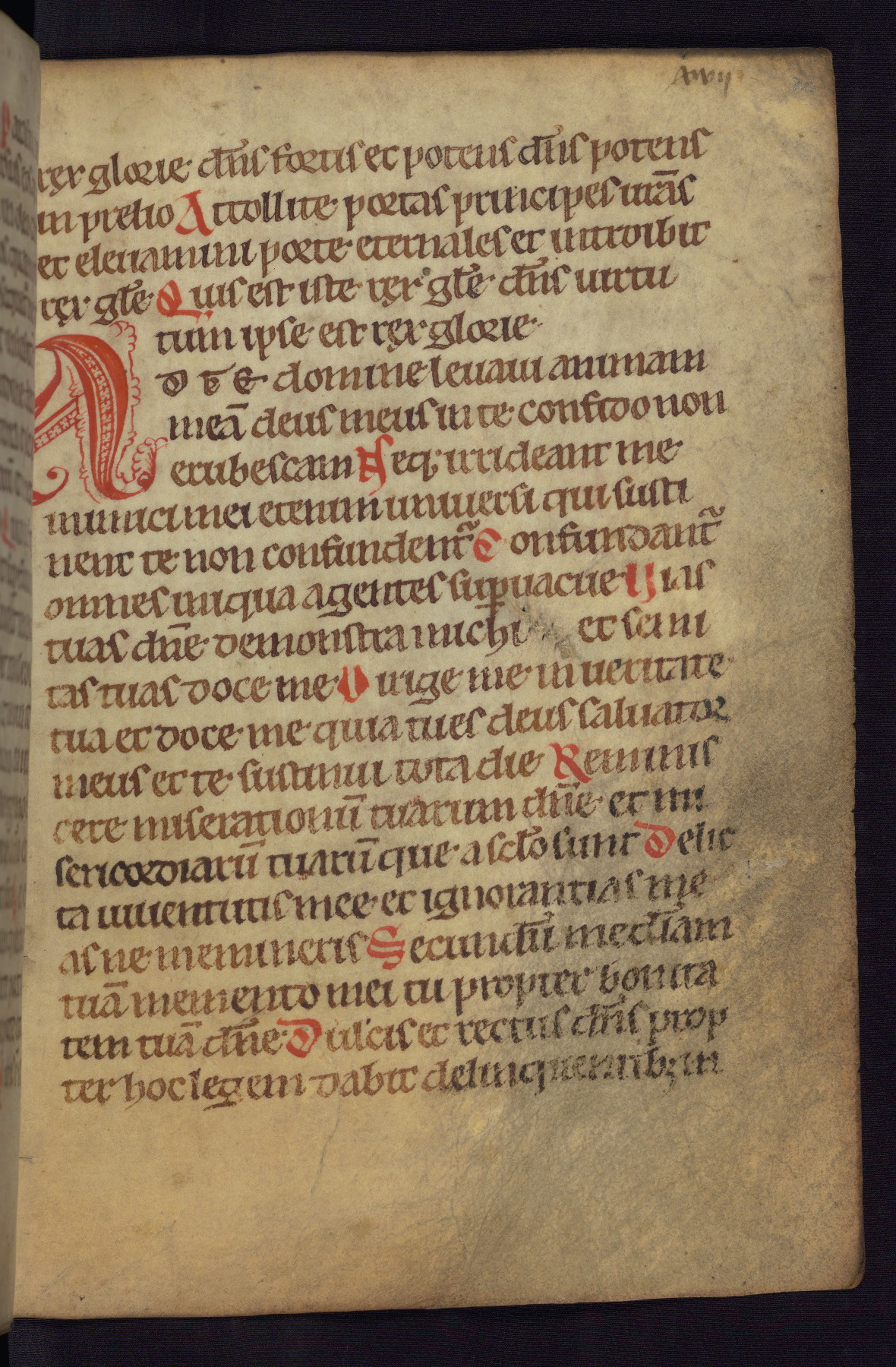 This Latin psalter was made in the second half of the thirteenth century for use in the Diocese of Constance, Germany. By the fourteenth century, it was owned by the Church of St. Mary of Strasbourg, from which it gets its name. The long life and enthusiastic use of the manuscript is attested by a multitude of added inscriptions, prayers, and antiphons with neumes, most dating to the fifteenth or sixteenth century. An early system of bookmarking is also evident; strips of parchment have been cut in some of the margins and folded through a slit in the leaf, creating tabs that would have helped the reader navigate through the text. Illumination also served this function, for while a short cycle of images from the life of Christ introduces the manuscript, the rest of the illuminations--large decorated initials as well as smaller ones in silver and gold--mark the important psalms for the reader. The style of illumination found here is closely related to two other psalters from Constance: Sigmaringen, Royal State Archives Ms. 11 and Hessische Landesbibliothek Fulda Ms. Aa 82.