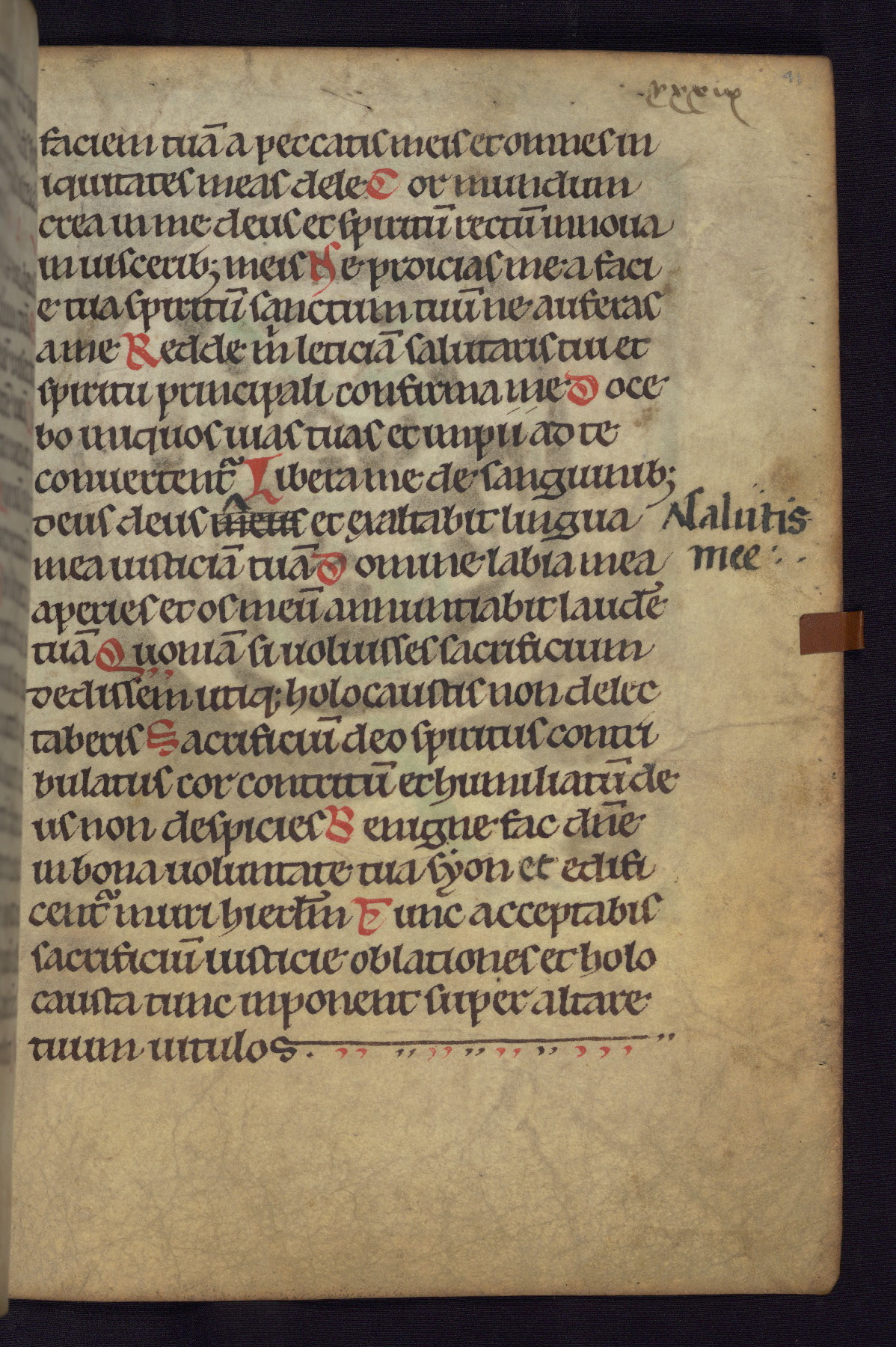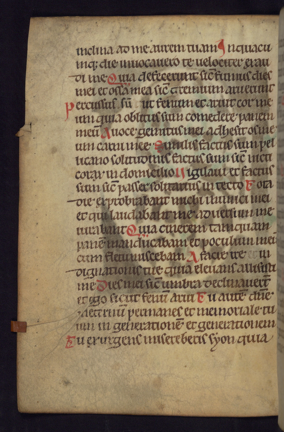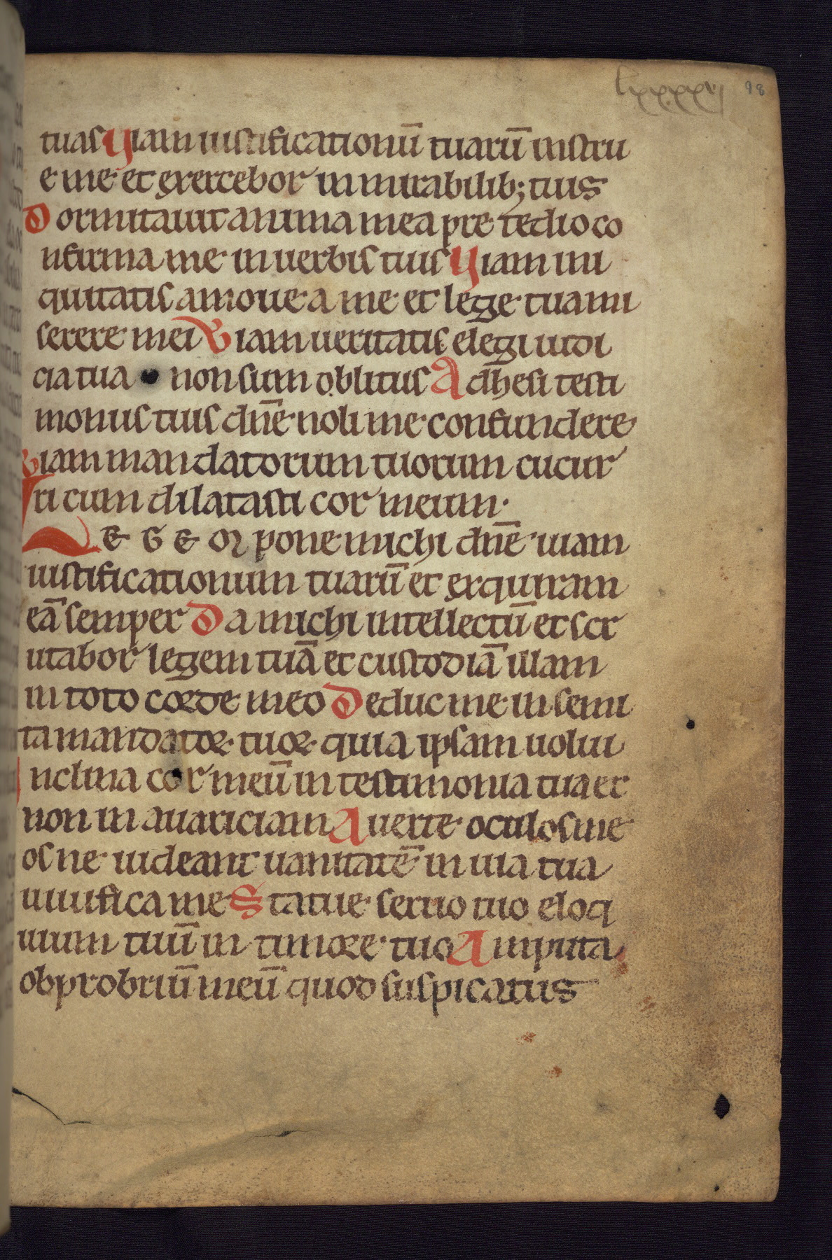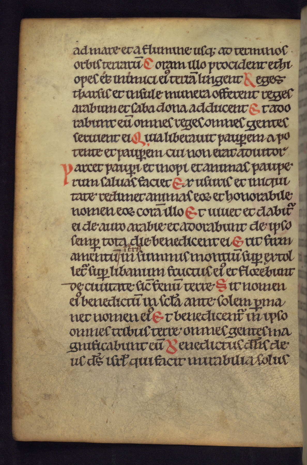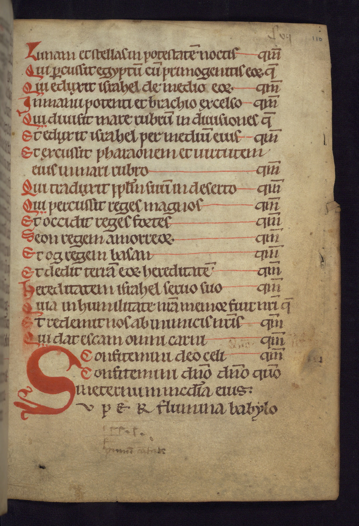 This Latin psalter was made in the second half of the thirteenth century for use in the Diocese of Constance, Germany. By the fourteenth century, it was owned by the Church of St. Mary of Strasbourg, from which it gets its name. The long life and enthusiastic use of the manuscript is attested by a multitude of added inscriptions, prayers, and antiphons with neumes, most dating to the fifteenth or sixteenth century. An early system of bookmarking is also evident; strips of parchment have been cut in some of the margins and folded through a slit in the leaf, creating tabs that would have helped the reader navigate through the text. Illumination also served this function, for while a short cycle of images from the life of Christ introduces the manuscript, the rest of the illuminations--large decorated initials as well as smaller ones in silver and gold--mark the important psalms for the reader. The style of illumination found here is closely related to two other psalters from Constance: Sigmaringen, Royal State Archives Ms. 11 and Hessische Landesbibliothek Fulda Ms. Aa 82.