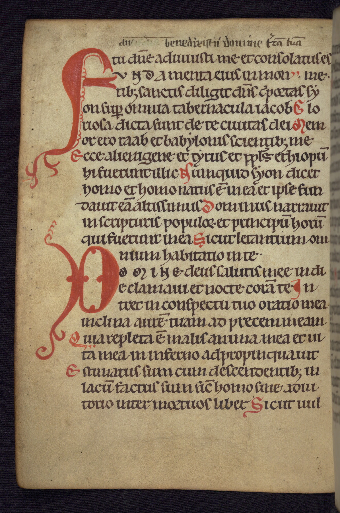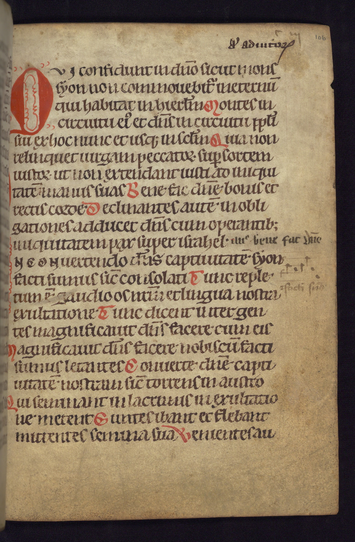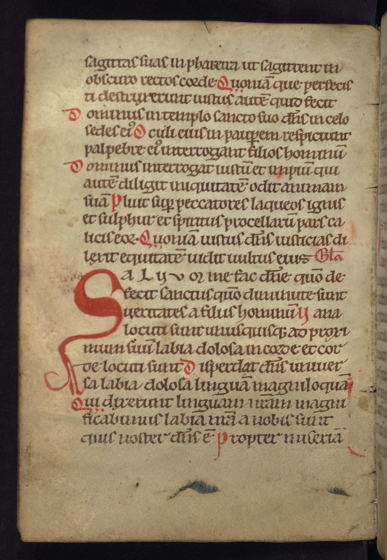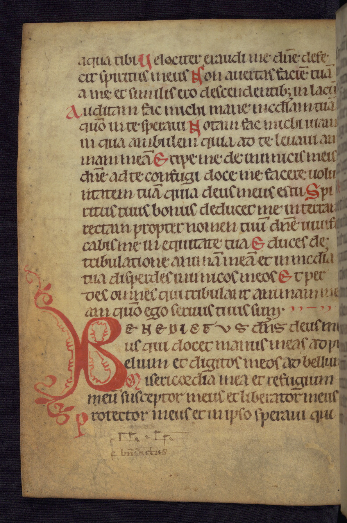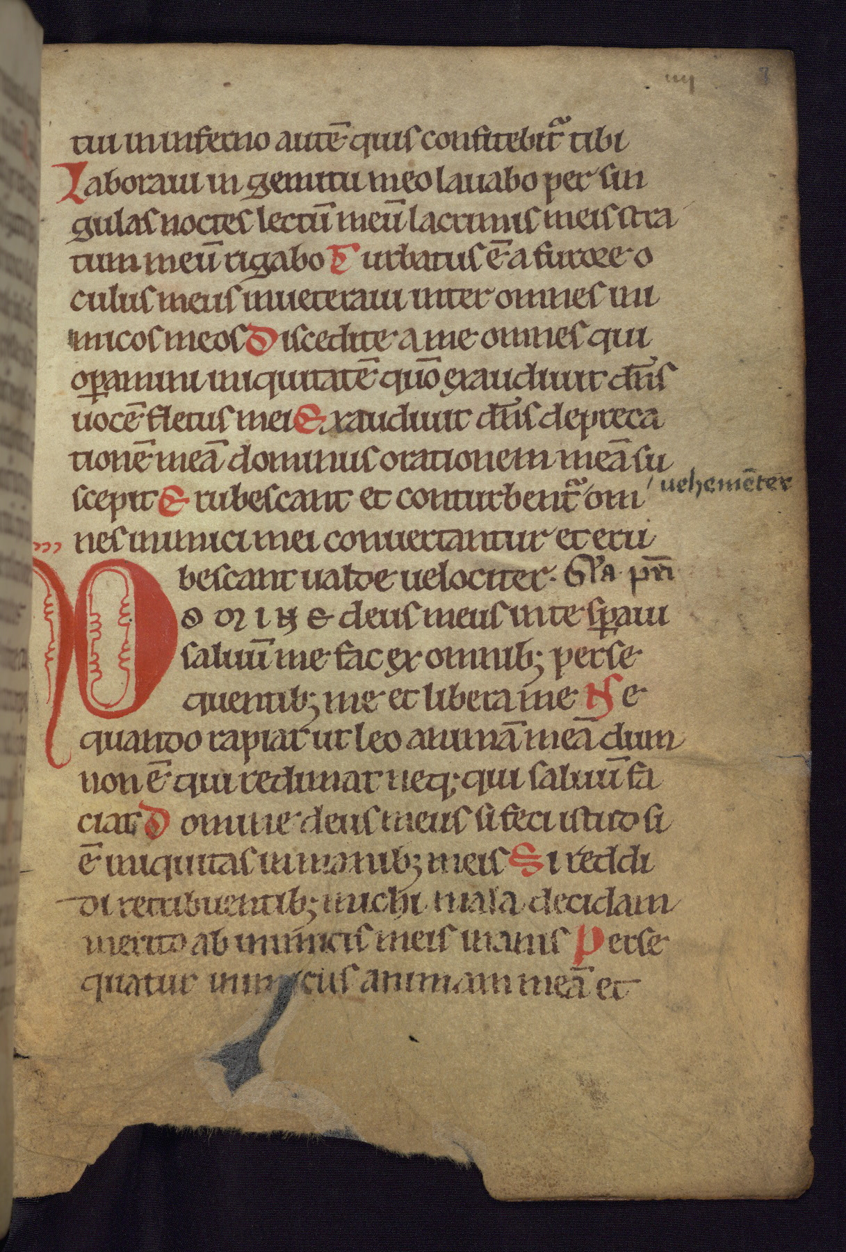 This Latin psalter was made in the second half of the thirteenth century for use in the Diocese of Constance, Germany. By the fourteenth century, it was owned by the Church of St. Mary of Strasbourg, from which it gets its name. The long life and enthusiastic use of the manuscript is attested by a multitude of added inscriptions, prayers, and antiphons with neumes, most dating to the fifteenth or sixteenth century. An early system of bookmarking is also evident; strips of parchment have been cut in some of the margins and folded through a slit in the leaf, creating tabs that would have helped the reader navigate through the text. Illumination also served this function, for while a short cycle of images from the life of Christ introduces the manuscript, the rest of the illuminations--large decorated initials as well as smaller ones in silver and gold--mark the important psalms for the reader. The style of illumination found here is closely related to two other psalters from Constance: Sigmaringen, Royal State Archives Ms. 11 and Hessische Landesbibliothek Fulda Ms. Aa 82.
