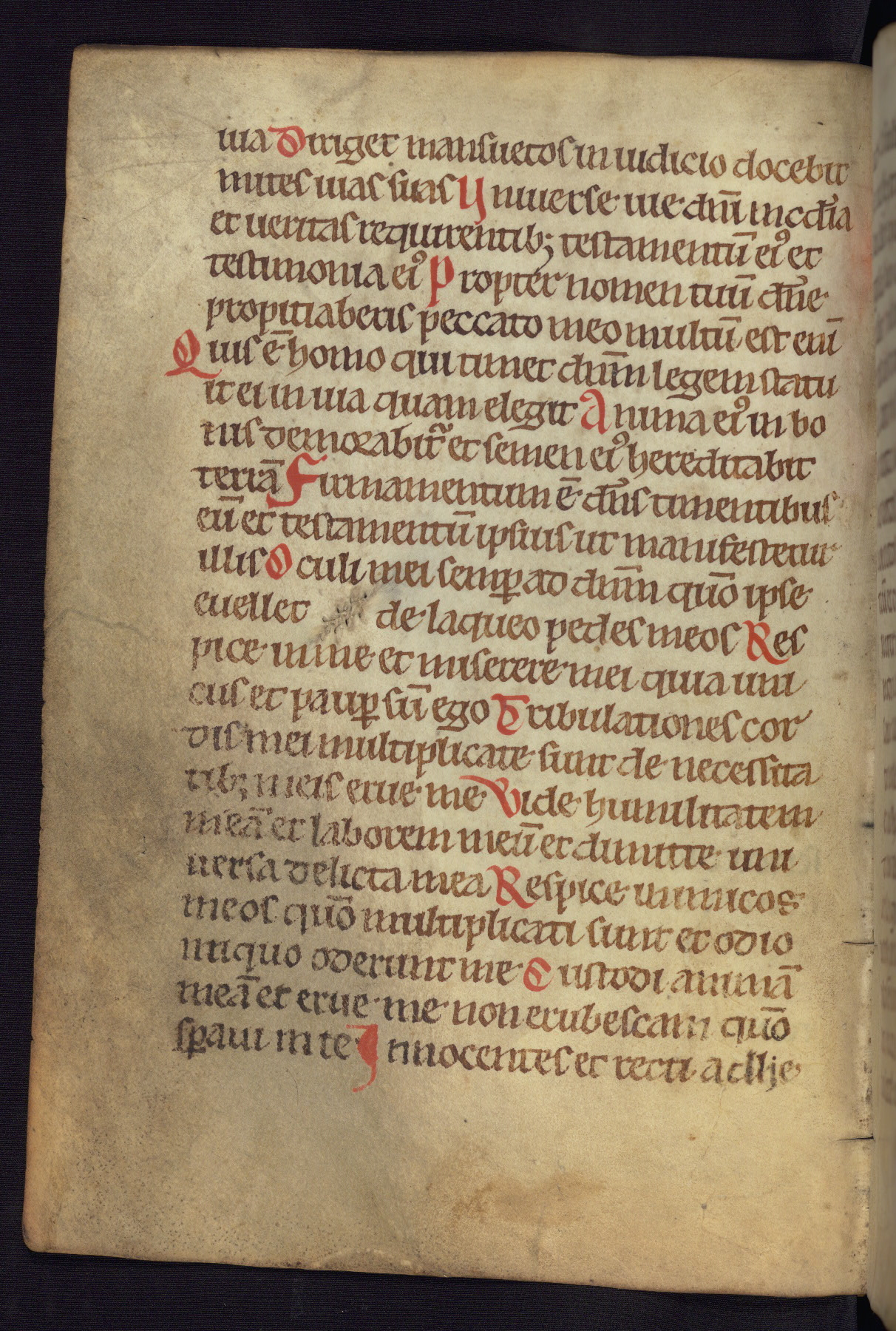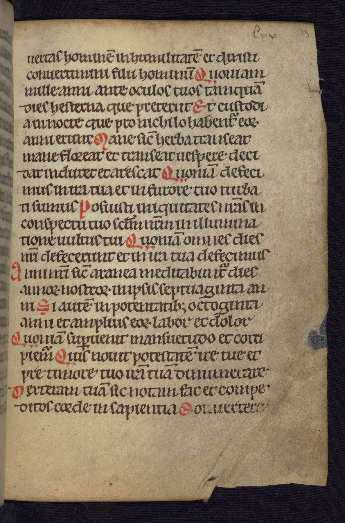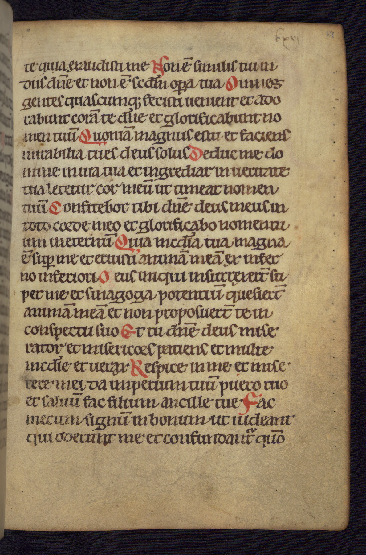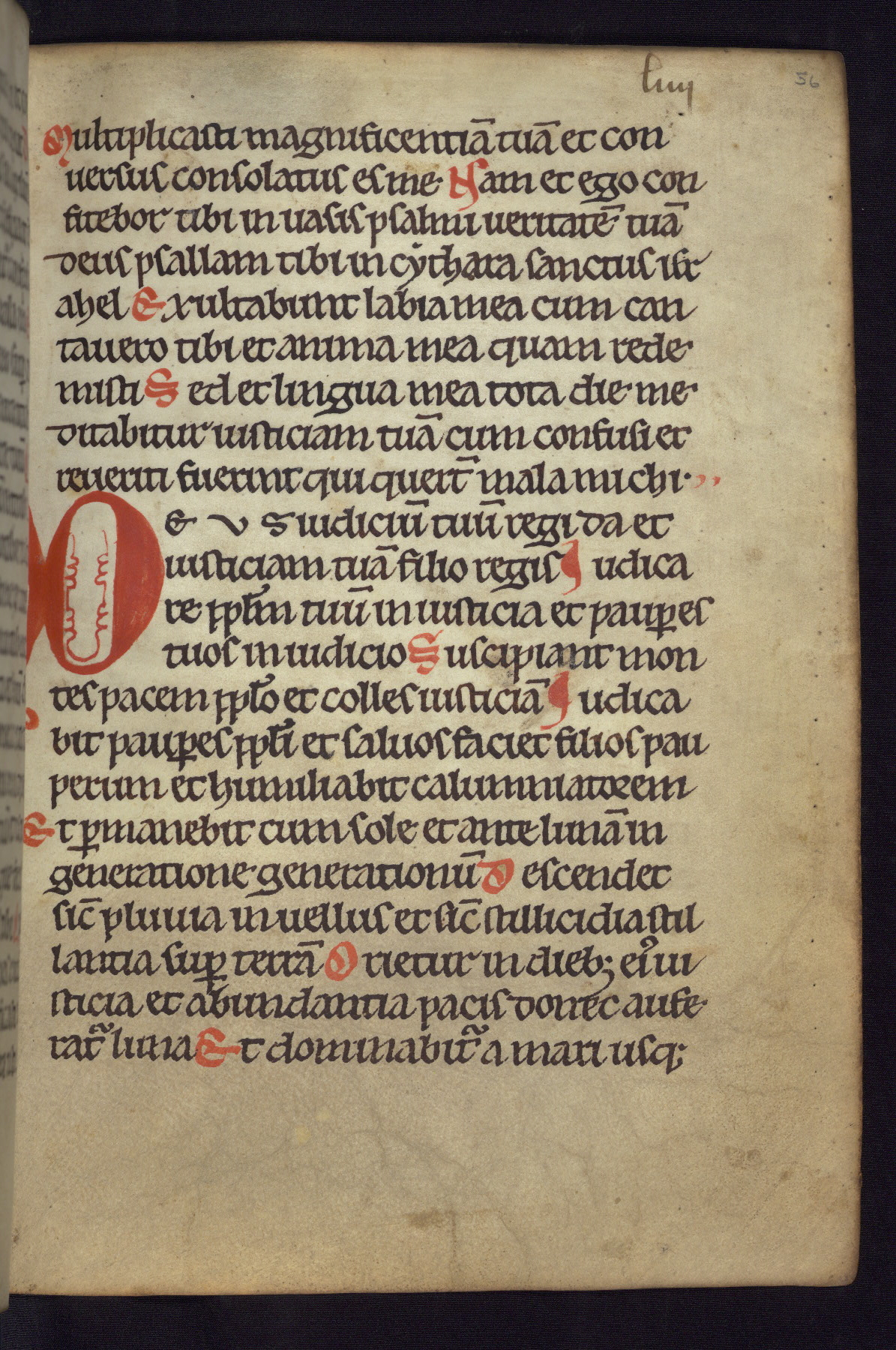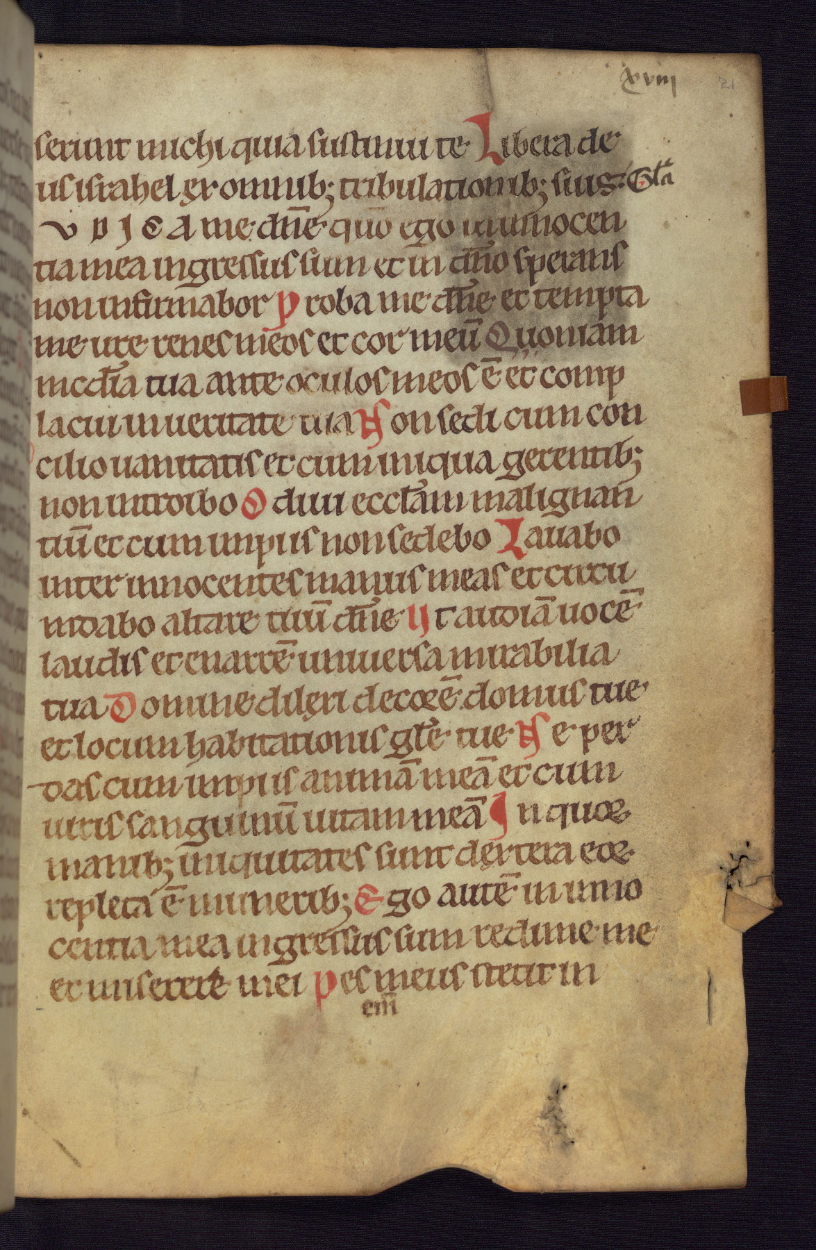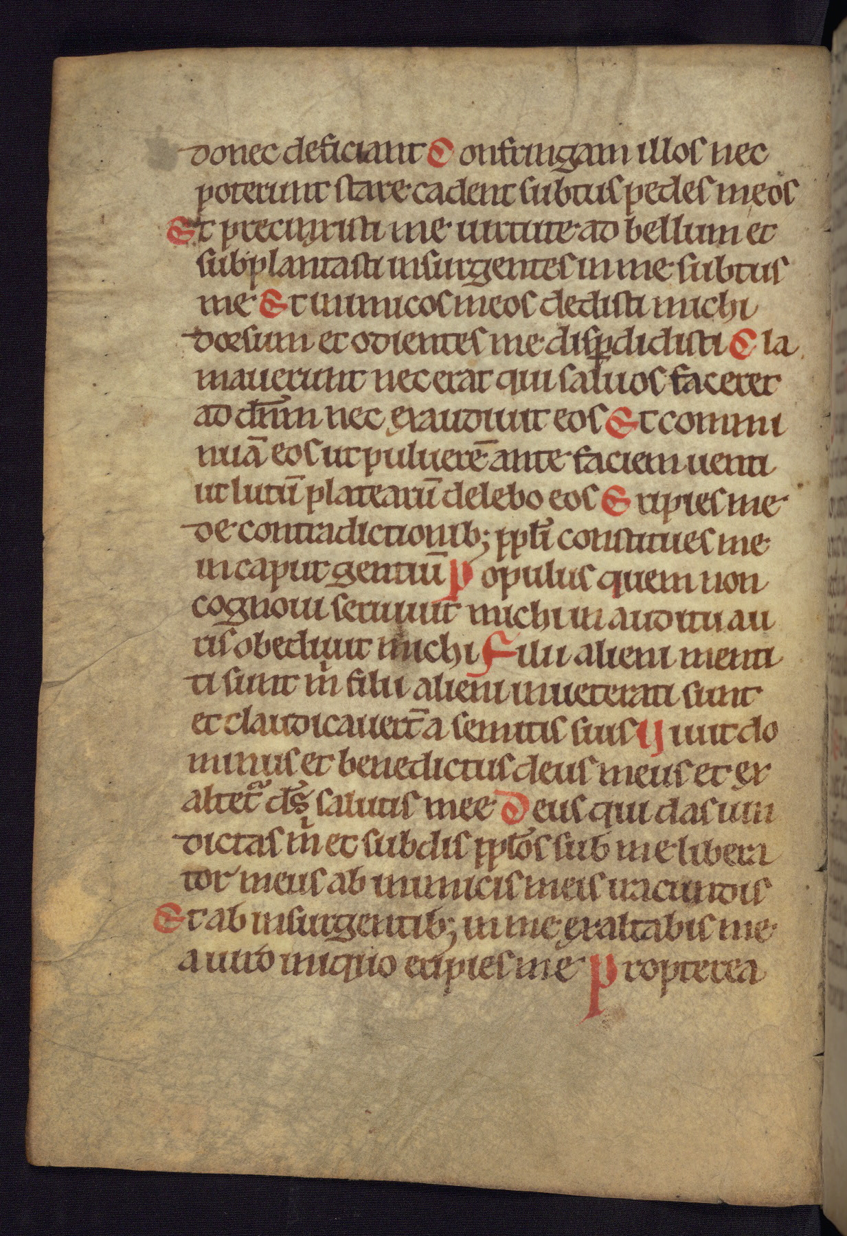This Latin psalter was made in the second half of the thirteenth century for use in the Diocese of Constance, Germany. By the fourteenth century, it was owned by the Church of St. Mary of Strasbourg, from which it gets its name. The long life and enthusiastic use of the manuscript is attested by a multitude of added inscriptions, prayers, and antiphons with neumes, most dating to the fifteenth or sixteenth century. An early system of bookmarking is also evident; strips of parchment have been cut in some of the margins and folded through a slit in the leaf, creating tabs that would have helped the reader navigate through the text. Illumination also served this function, for while a short cycle of images from the life of Christ introduces the manuscript, the rest of the illuminations--large decorated initials as well as smaller ones in silver and gold--mark the important psalms for the reader. The style of illumination found here is closely related to two other psalters from Constance: Sigmaringen, Royal State Archives Ms. 11 and Hessische Landesbibliothek Fulda Ms. Aa 82.