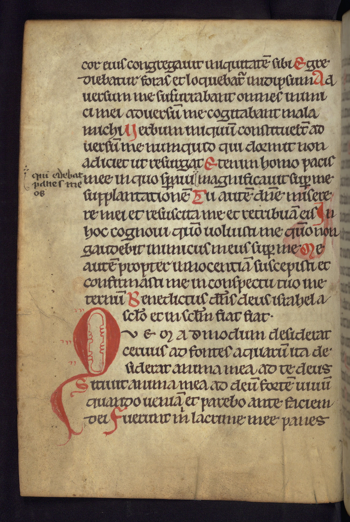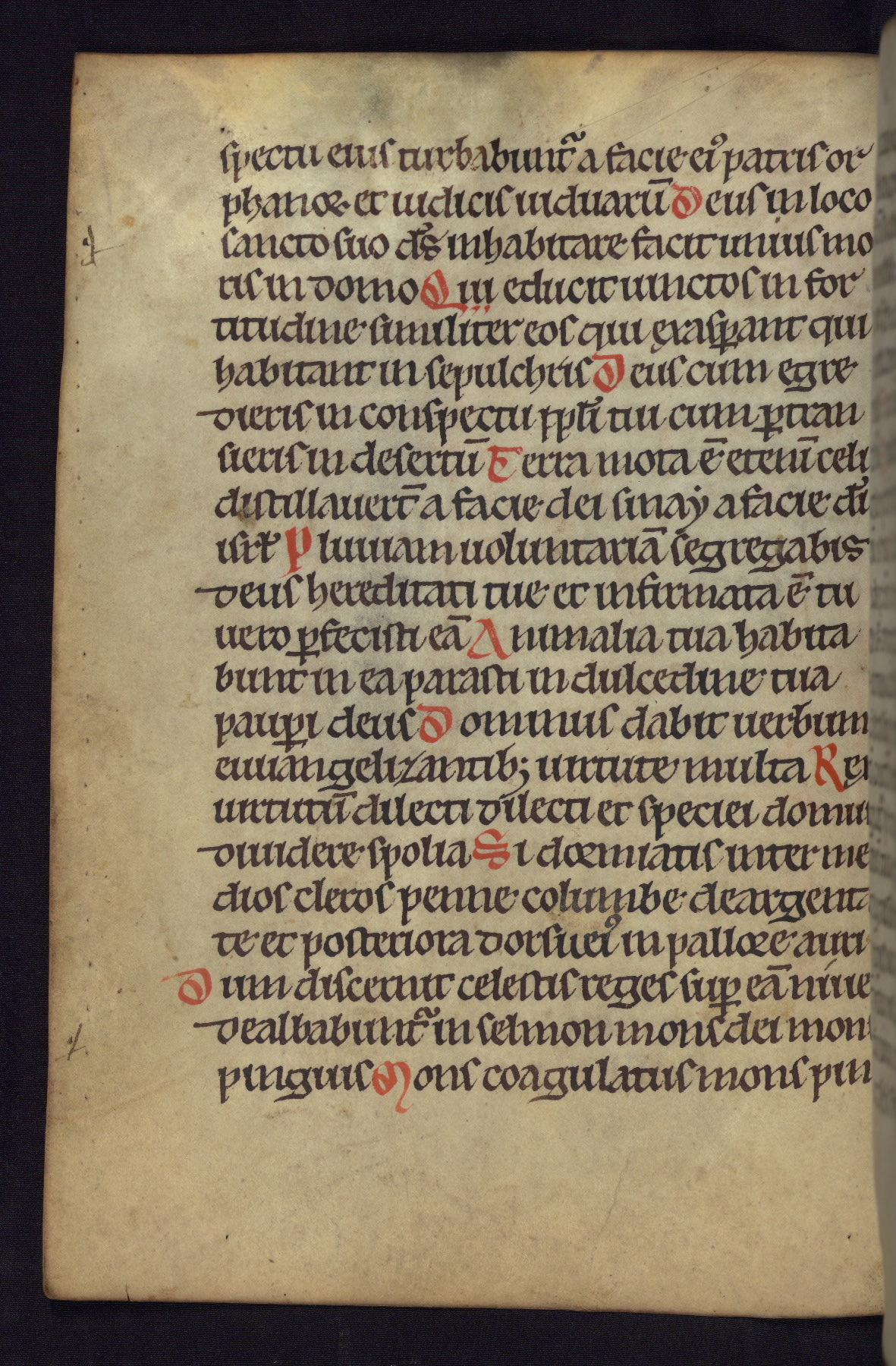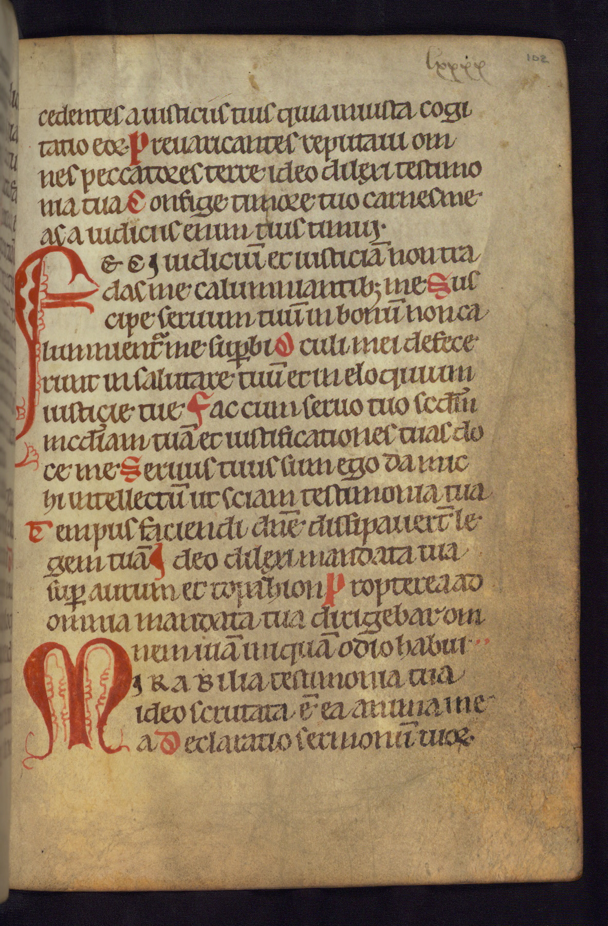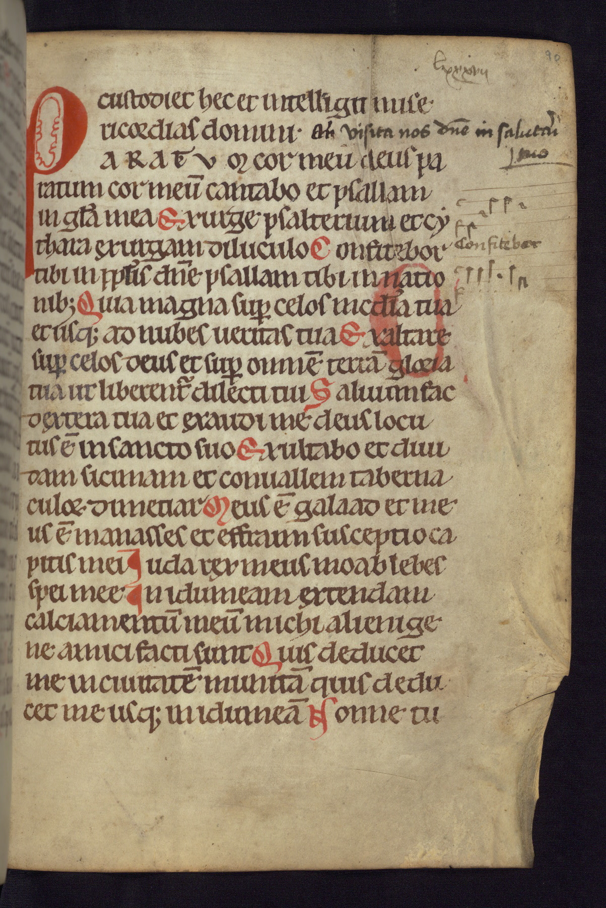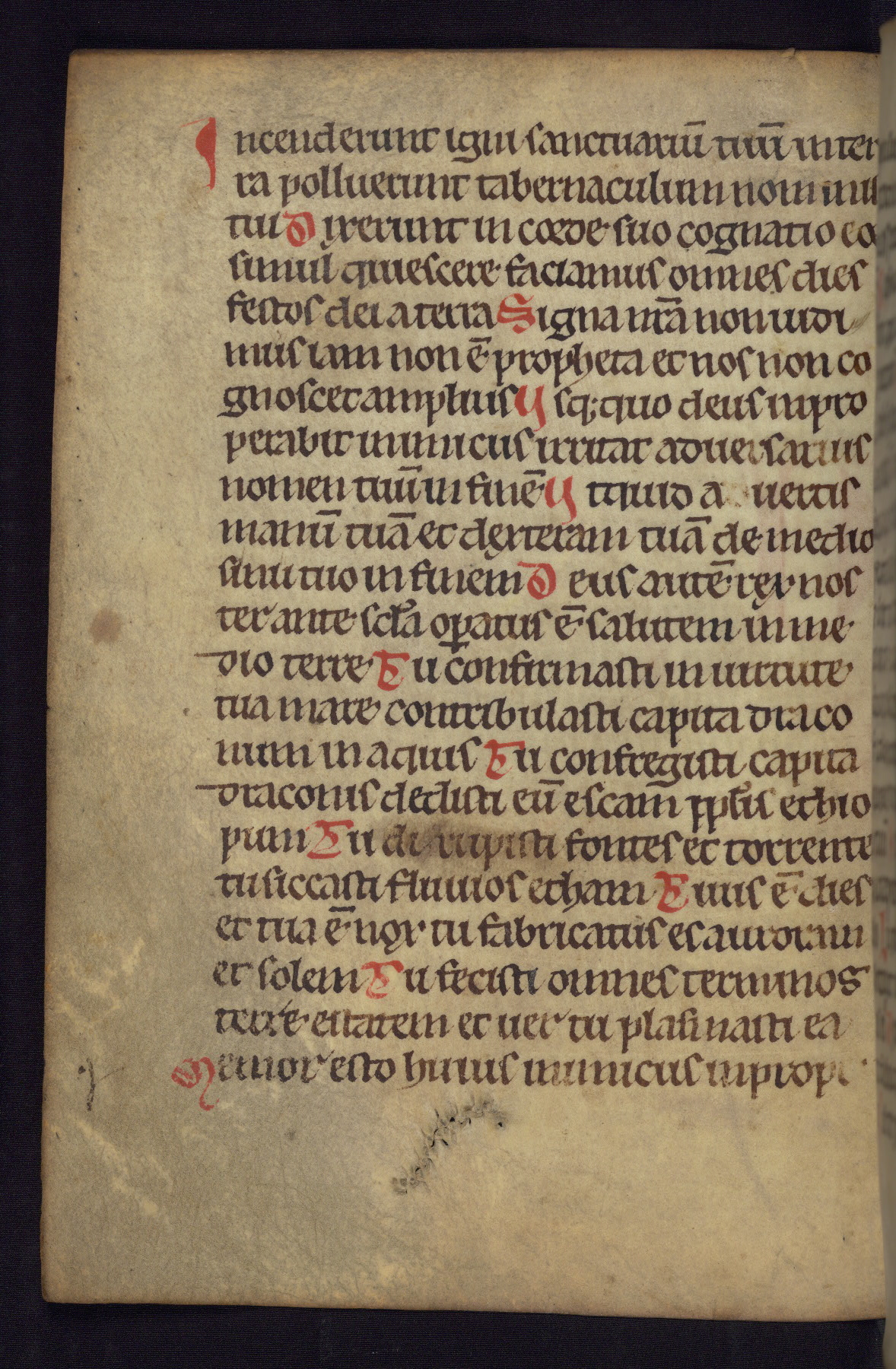 This Latin psalter was made in the second half of the thirteenth century for use in the Diocese of Constance, Germany. By the fourteenth century, it was owned by the Church of St. Mary of Strasbourg, from which it gets its name. The long life and enthusiastic use of the manuscript is attested by a multitude of added inscriptions, prayers, and antiphons with neumes, most dating to the fifteenth or sixteenth century. An early system of bookmarking is also evident; strips of parchment have been cut in some of the margins and folded through a slit in the leaf, creating tabs that would have helped the reader navigate through the text. Illumination also served this function, for while a short cycle of images from the life of Christ introduces the manuscript, the rest of the illuminations--large decorated initials as well as smaller ones in silver and gold--mark the important psalms for the reader. The style of illumination found here is closely related to two other psalters from Constance: Sigmaringen, Royal State Archives Ms. 11 and Hessische Landesbibliothek Fulda Ms. Aa 82.