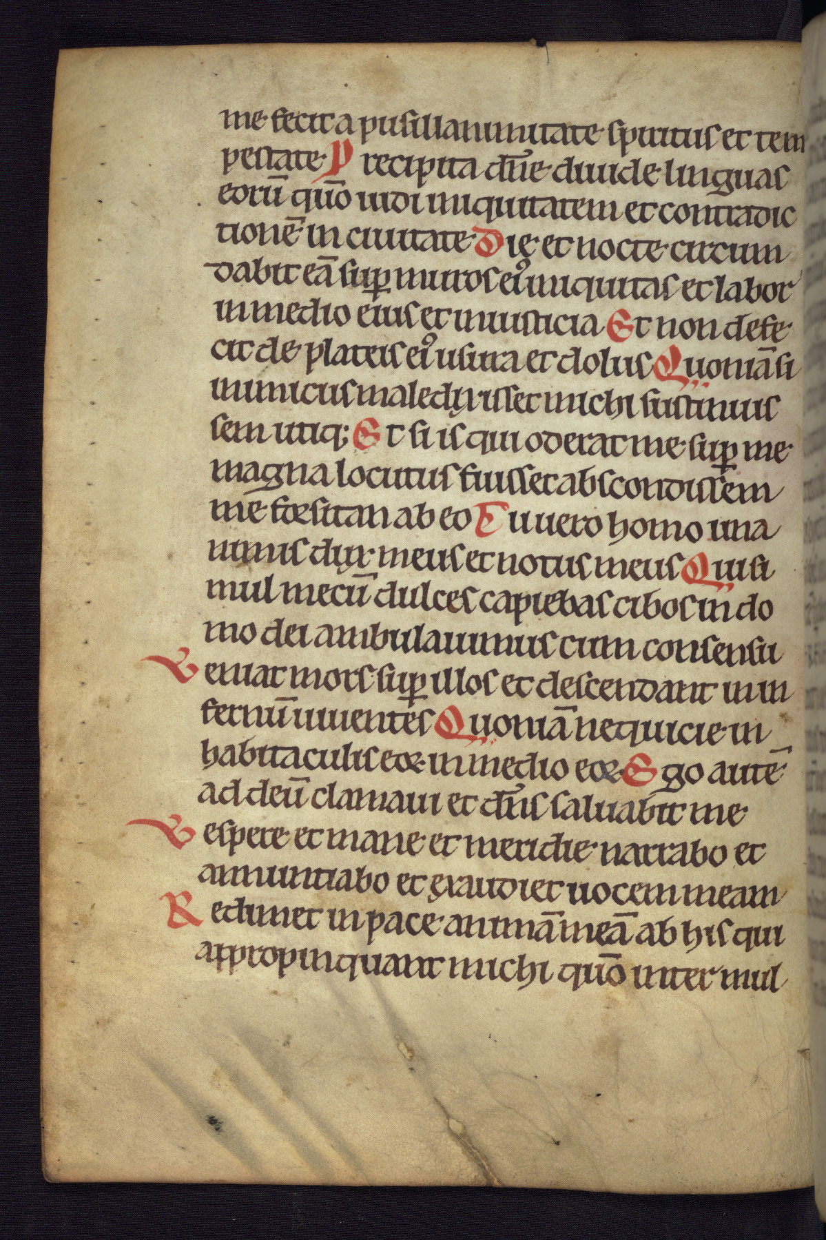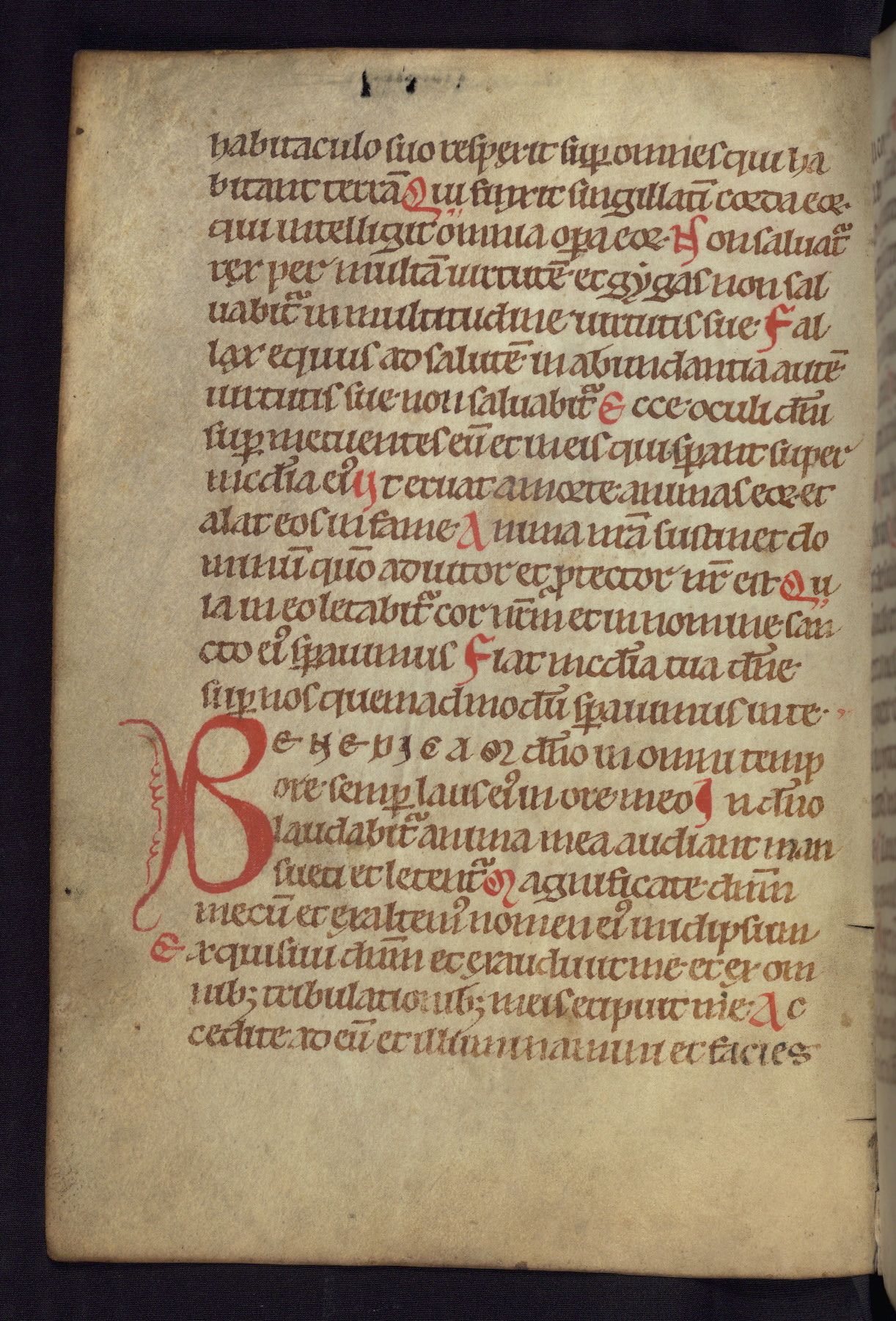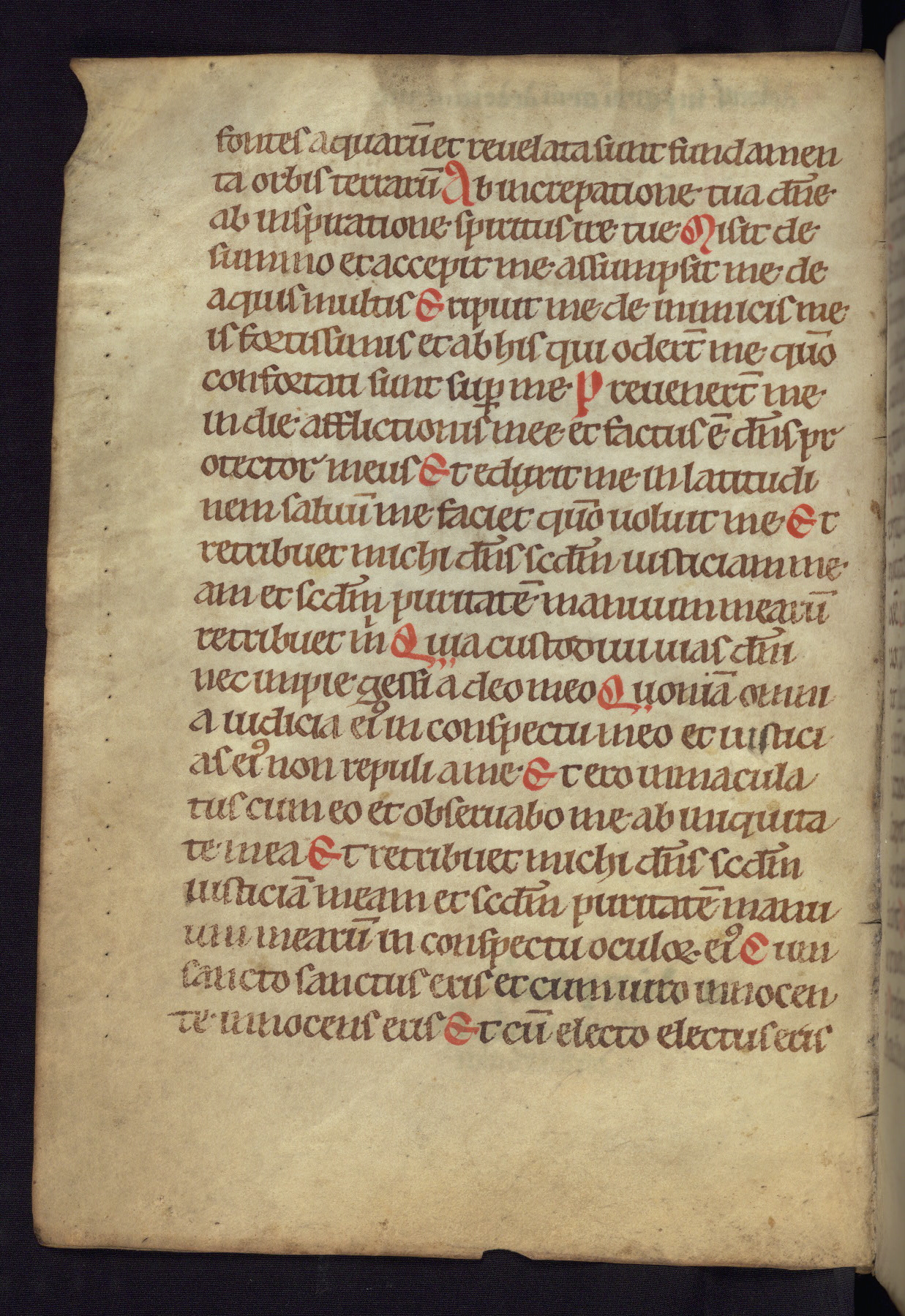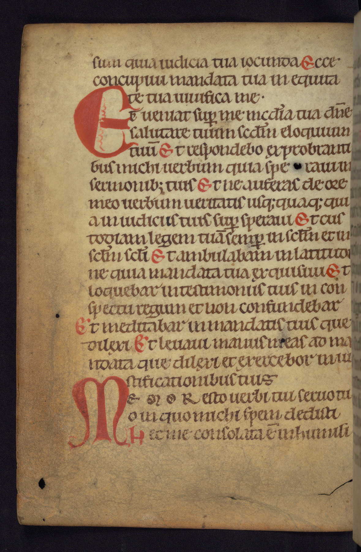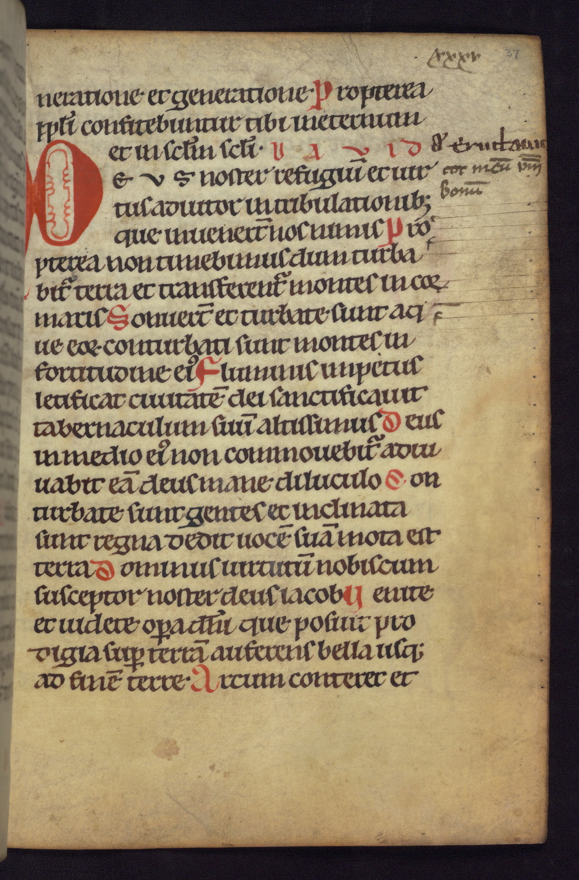 This Latin psalter was made in the second half of the thirteenth century for use in the Diocese of Constance, Germany. By the fourteenth century, it was owned by the Church of St. Mary of Strasbourg, from which it gets its name. The long life and enthusiastic use of the manuscript is attested by a multitude of added inscriptions, prayers, and antiphons with neumes, most dating to the fifteenth or sixteenth century. An early system of bookmarking is also evident; strips of parchment have been cut in some of the margins and folded through a slit in the leaf, creating tabs that would have helped the reader navigate through the text. Illumination also served this function, for while a short cycle of images from the life of Christ introduces the manuscript, the rest of the illuminations--large decorated initials as well as smaller ones in silver and gold--mark the important psalms for the reader. The style of illumination found here is closely related to two other psalters from Constance: Sigmaringen, Royal State Archives Ms. 11 and Hessische Landesbibliothek Fulda Ms. Aa 82.