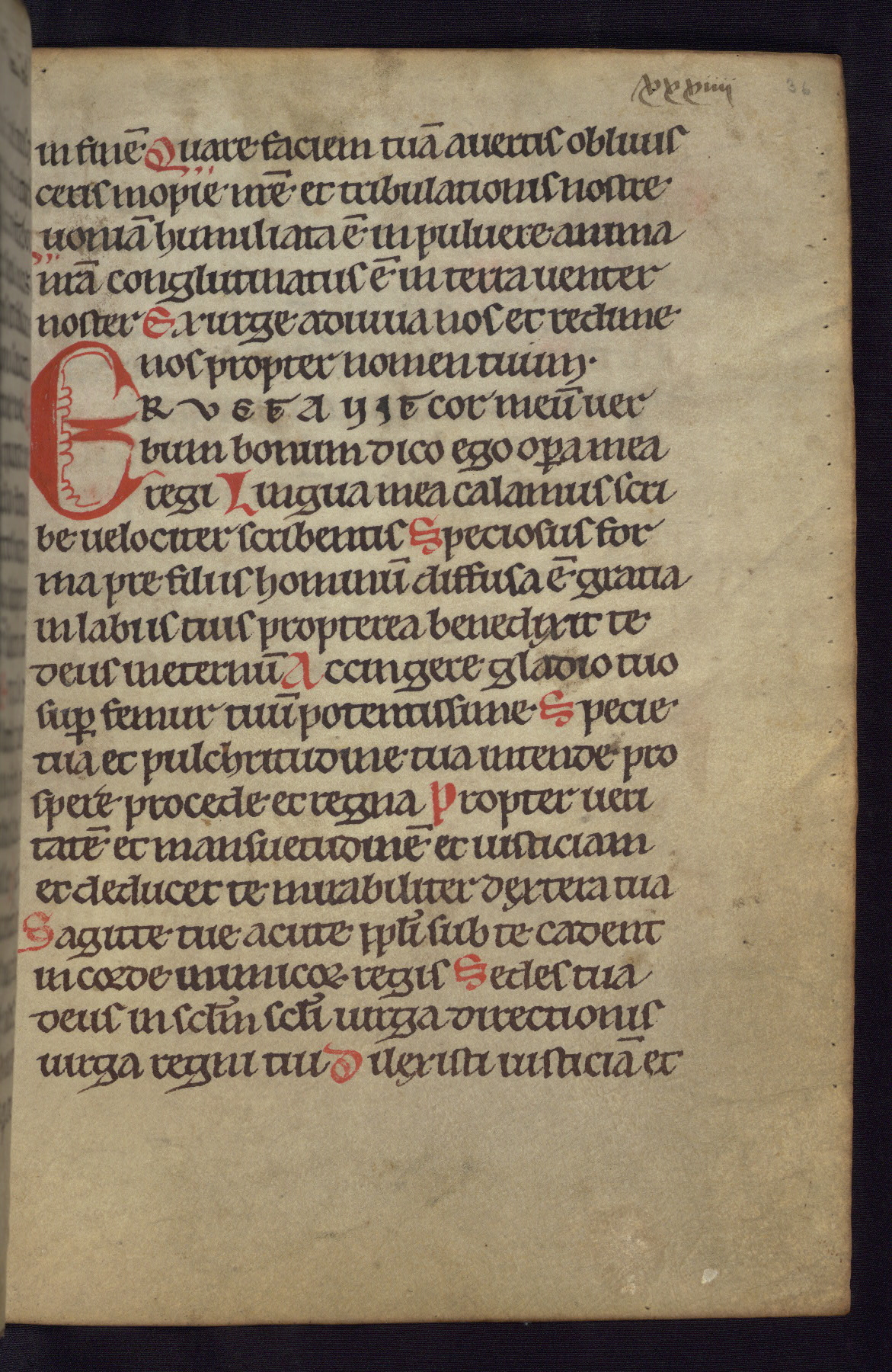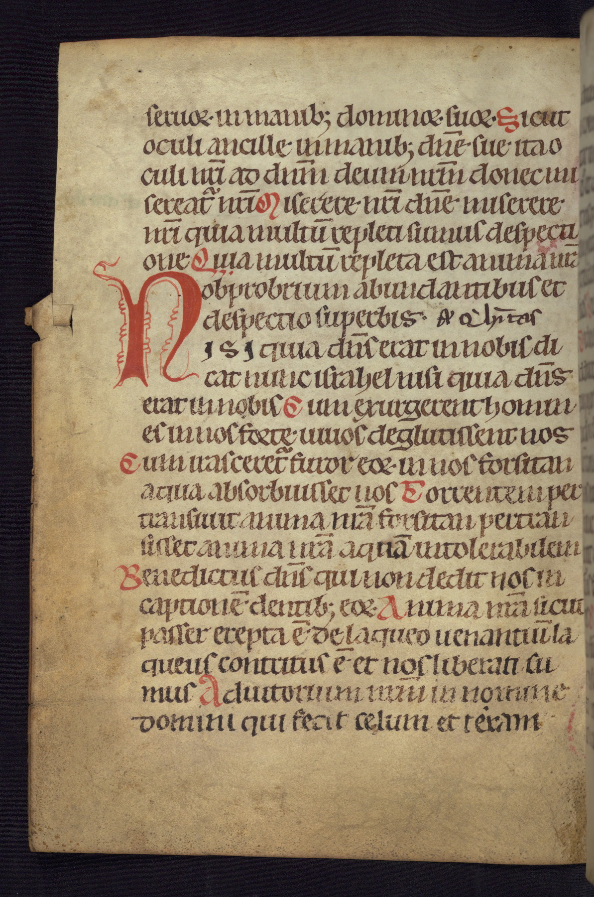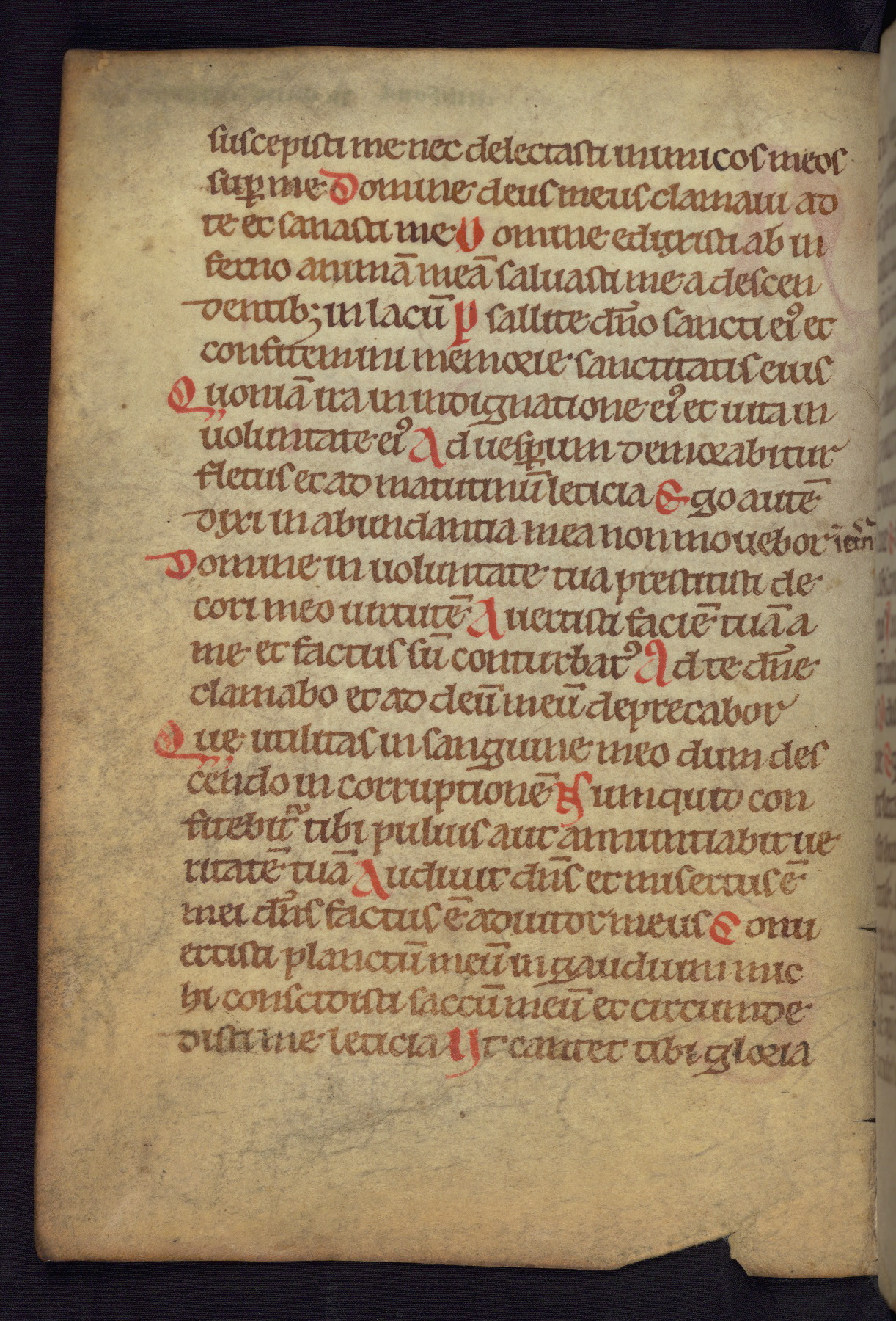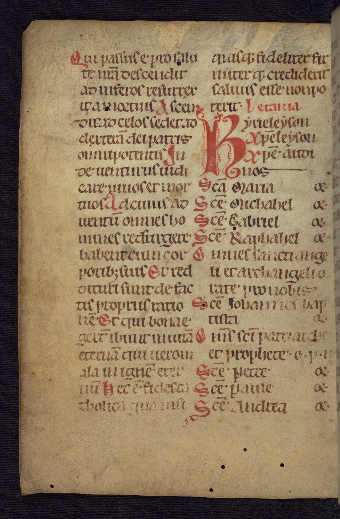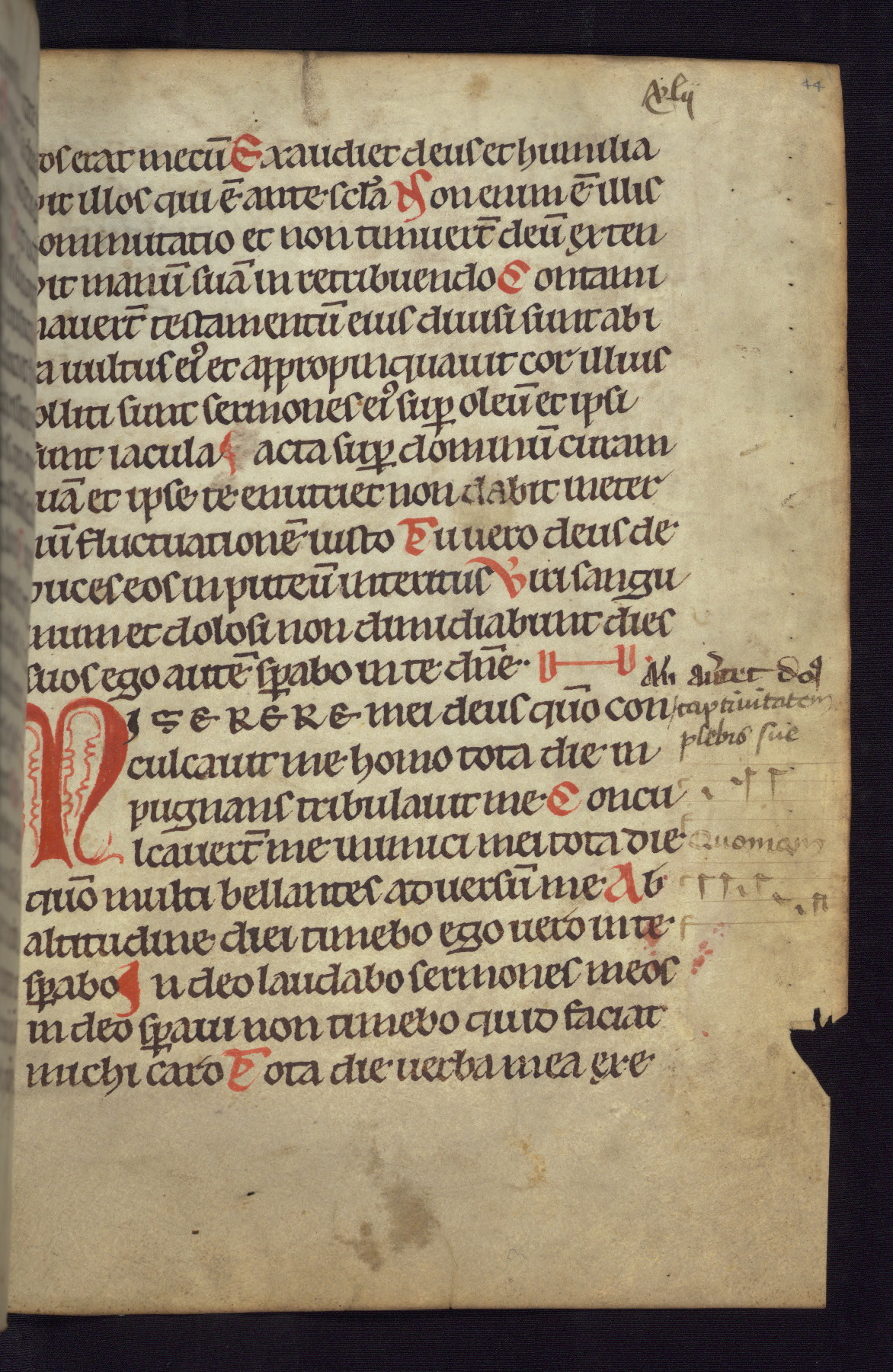 This Latin psalter was made in the second half of the thirteenth century for use in the Diocese of Constance, Germany. By the fourteenth century, it was owned by the Church of St. Mary of Strasbourg, from which it gets its name. The long life and enthusiastic use of the manuscript is attested by a multitude of added inscriptions, prayers, and antiphons with neumes, most dating to the fifteenth or sixteenth century. An early system of bookmarking is also evident; strips of parchment have been cut in some of the margins and folded through a slit in the leaf, creating tabs that would have helped the reader navigate through the text. Illumination also served this function, for while a short cycle of images from the life of Christ introduces the manuscript, the rest of the illuminations--large decorated initials as well as smaller ones in silver and gold--mark the important psalms for the reader. The style of illumination found here is closely related to two other psalters from Constance: Sigmaringen, Royal State Archives Ms. 11 and Hessische Landesbibliothek Fulda Ms. Aa 82.