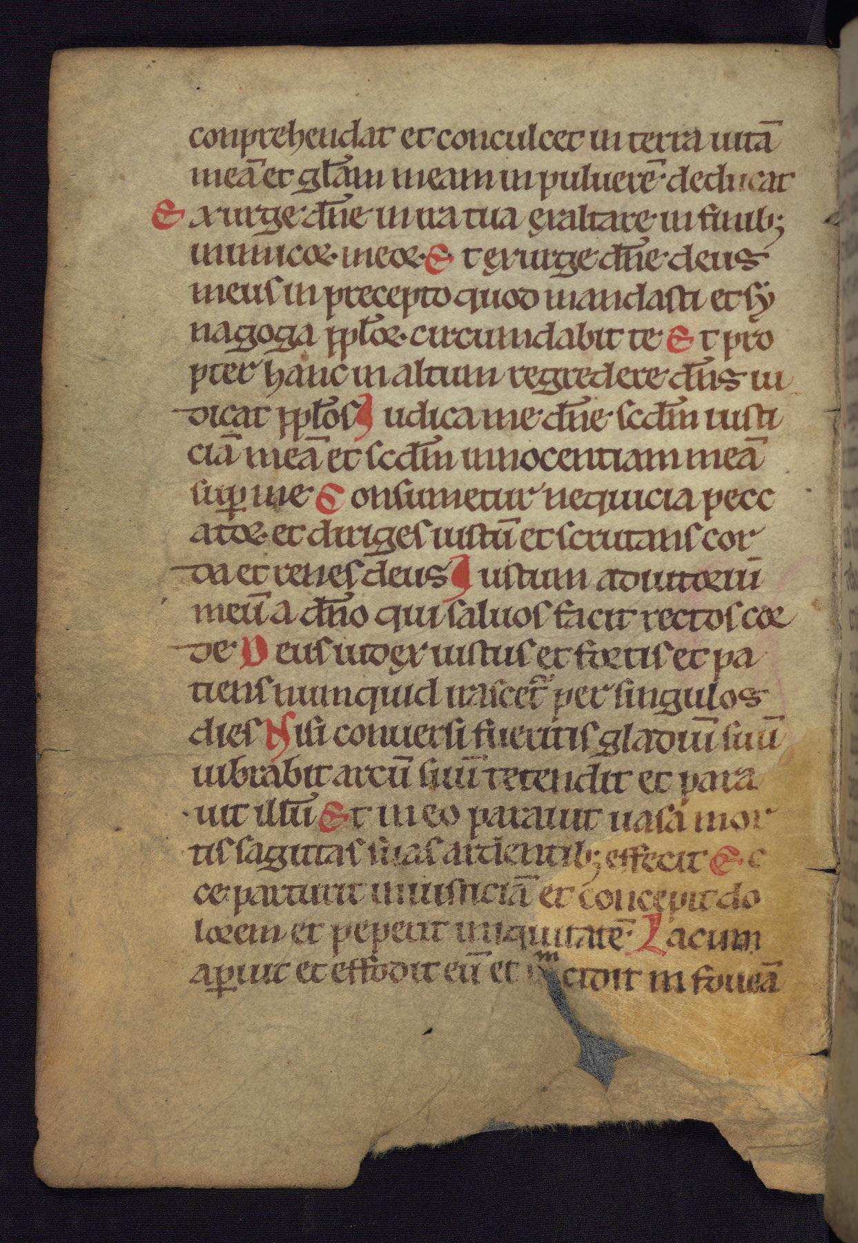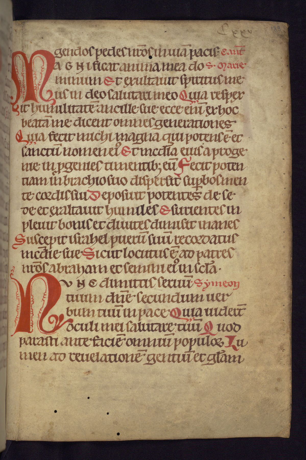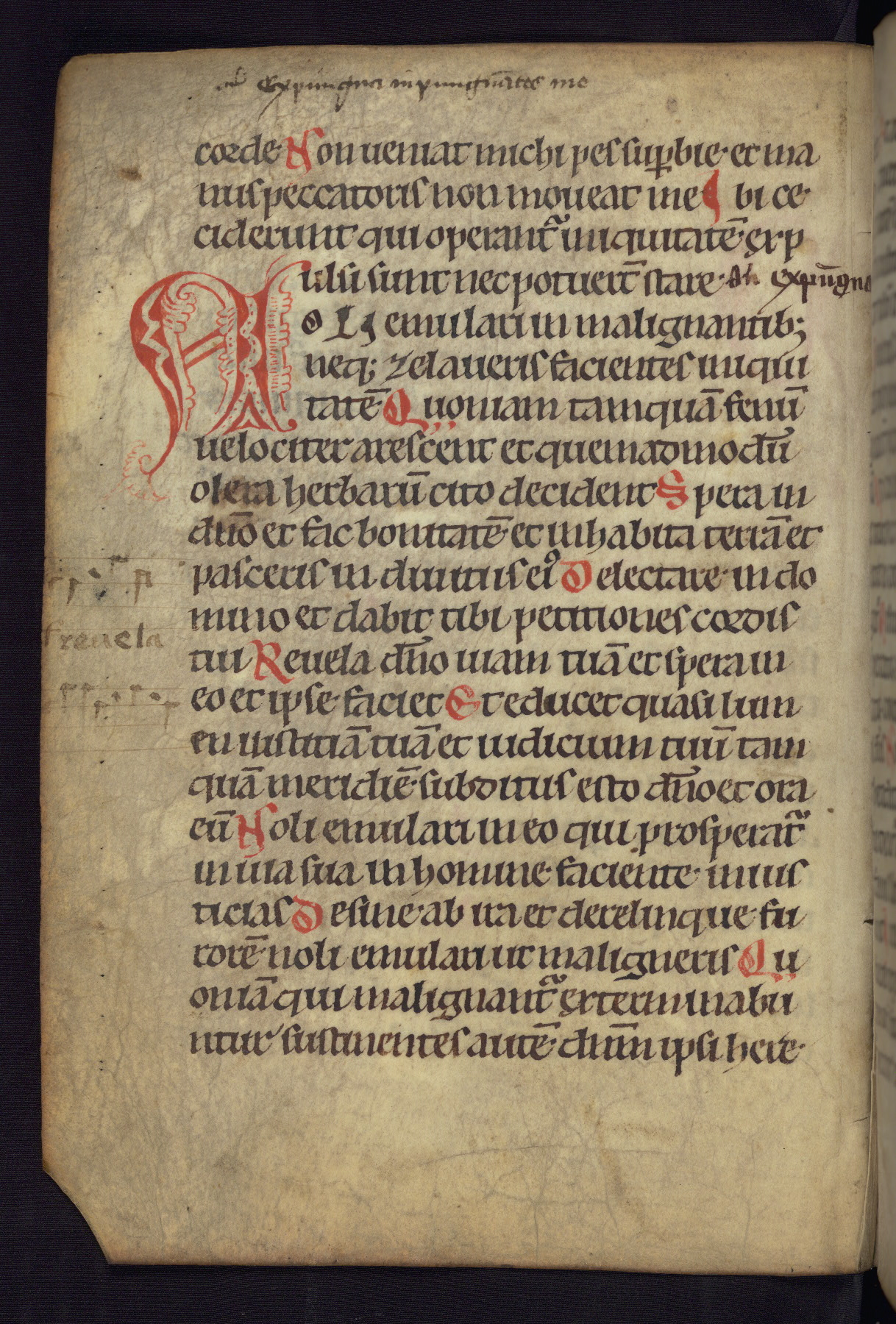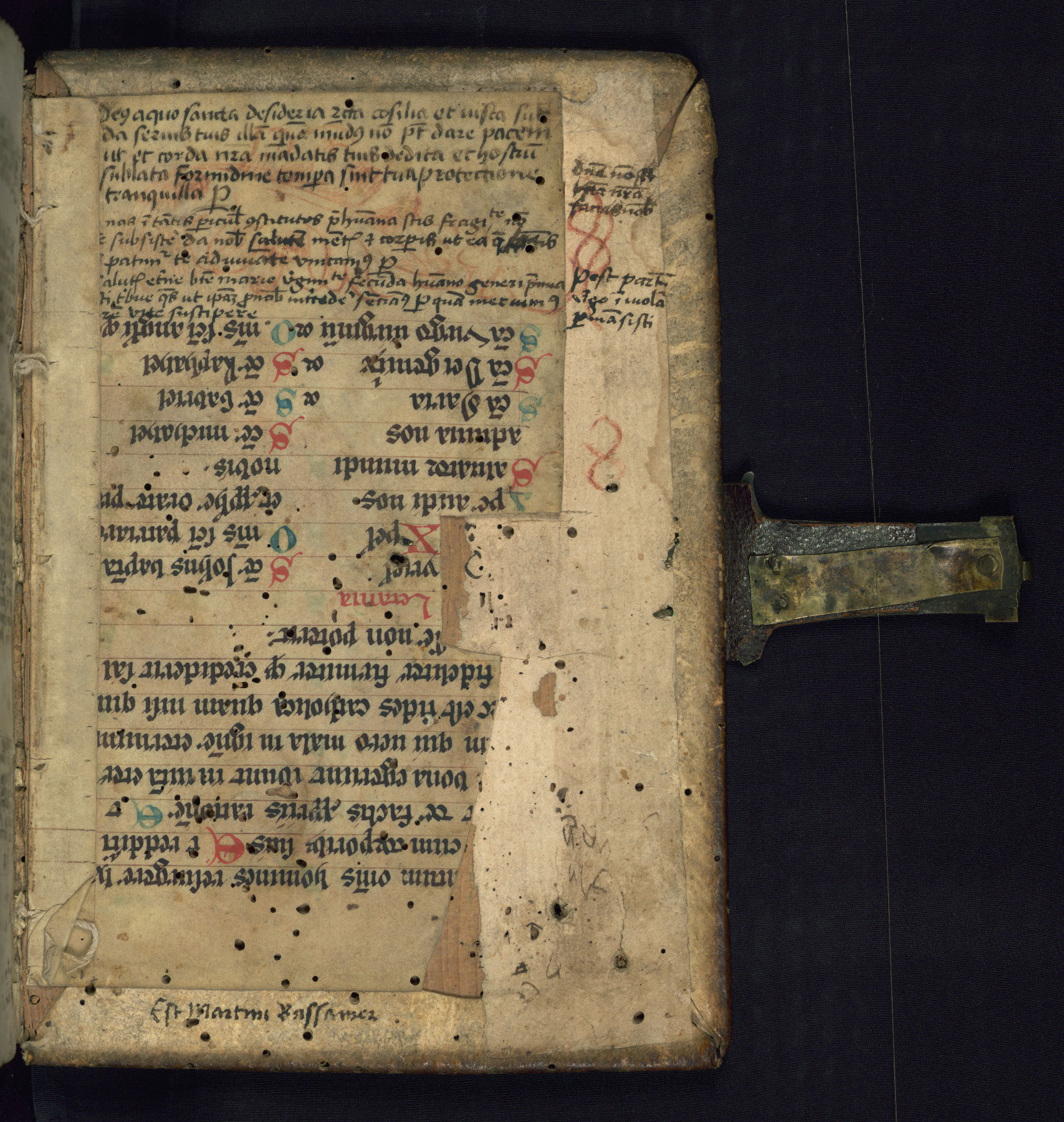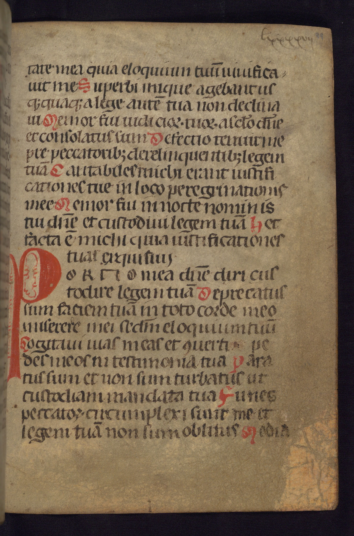This Latin psalter was made in the second half of the thirteenth century for use in the Diocese of Constance, Germany. By the fourteenth century, it was owned by the Church of St. Mary of Strasbourg, from which it gets its name. The long life and enthusiastic use of the manuscript is attested by a multitude of added inscriptions, prayers, and antiphons with neumes, most dating to the fifteenth or sixteenth century. An early system of bookmarking is also evident; strips of parchment have been cut in some of the margins and folded through a slit in the leaf, creating tabs that would have helped the reader navigate through the text. Illumination also served this function, for while a short cycle of images from the life of Christ introduces the manuscript, the rest of the illuminations--large decorated initials as well as smaller ones in silver and gold--mark the important psalms for the reader. The style of illumination found here is closely related to two other psalters from Constance: Sigmaringen, Royal State Archives Ms. 11 and Hessische Landesbibliothek Fulda Ms. Aa 82.