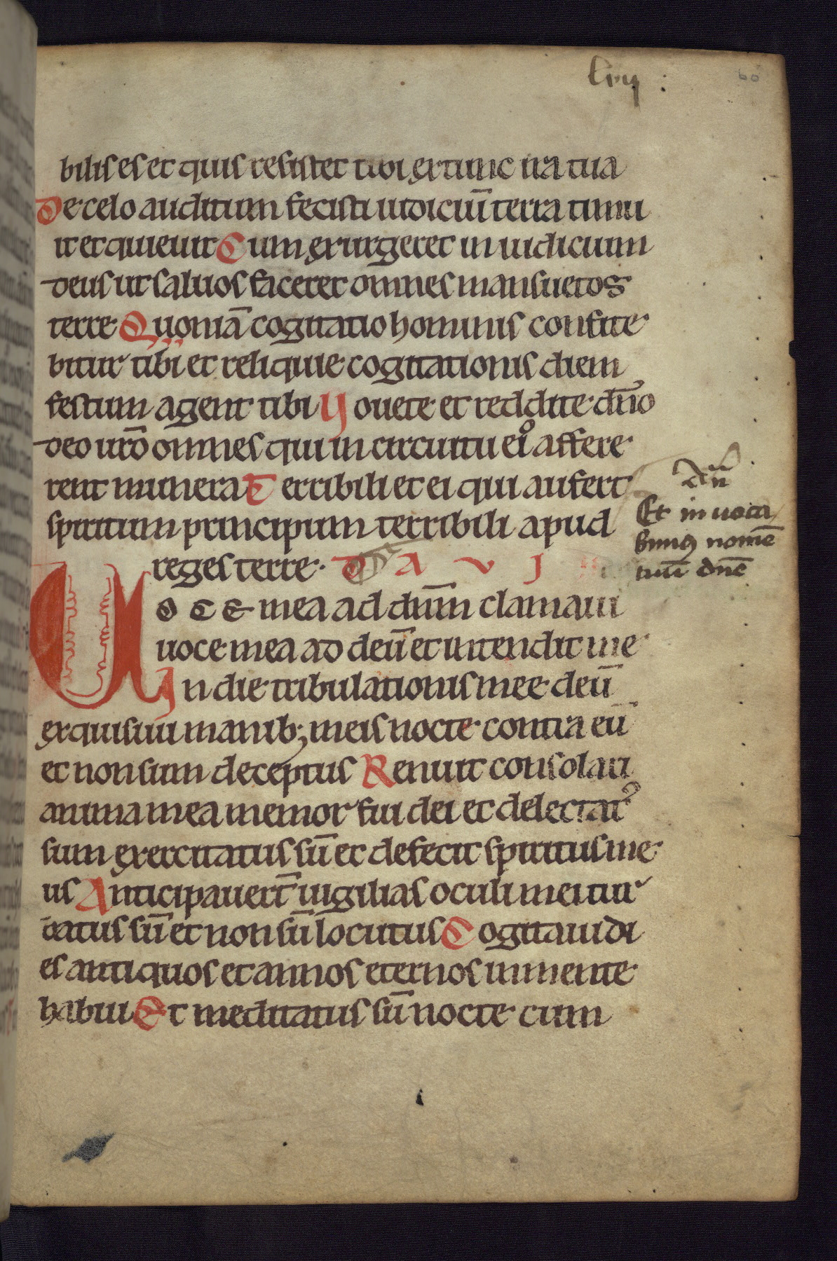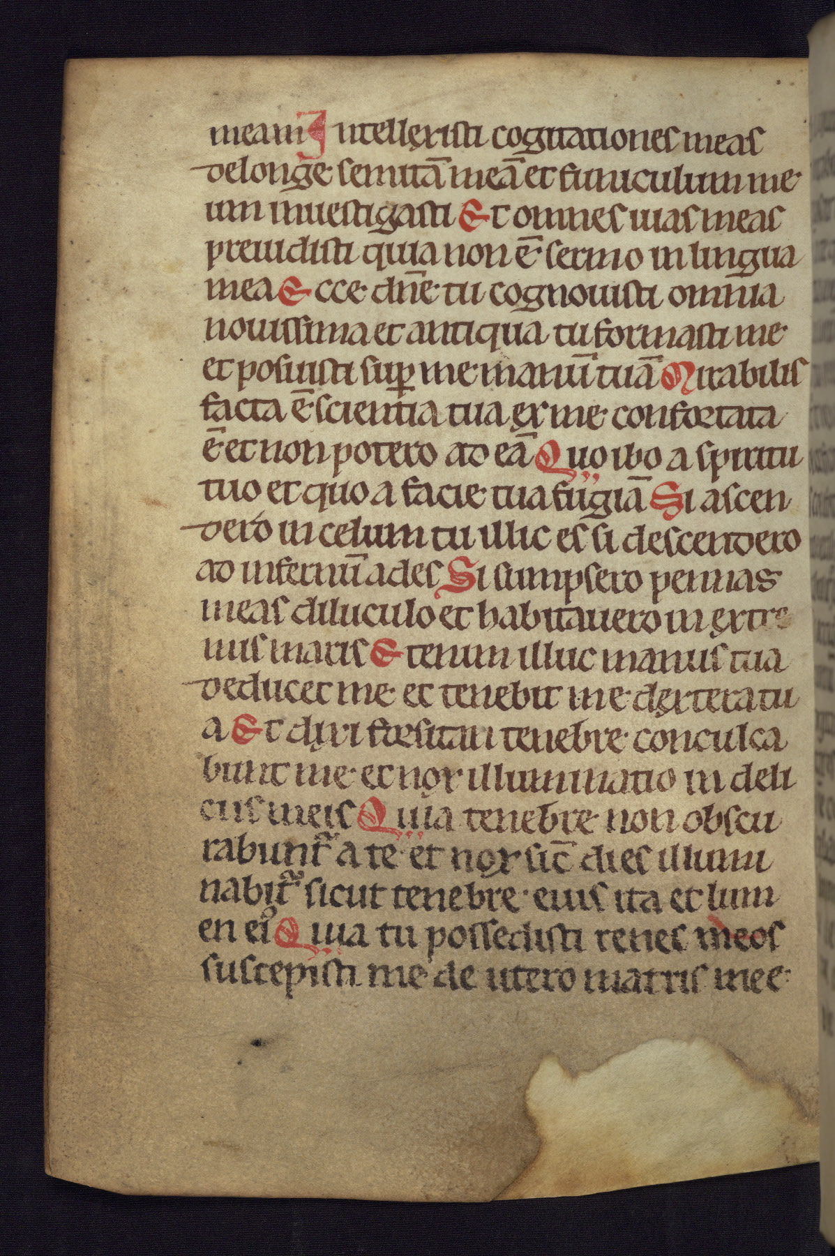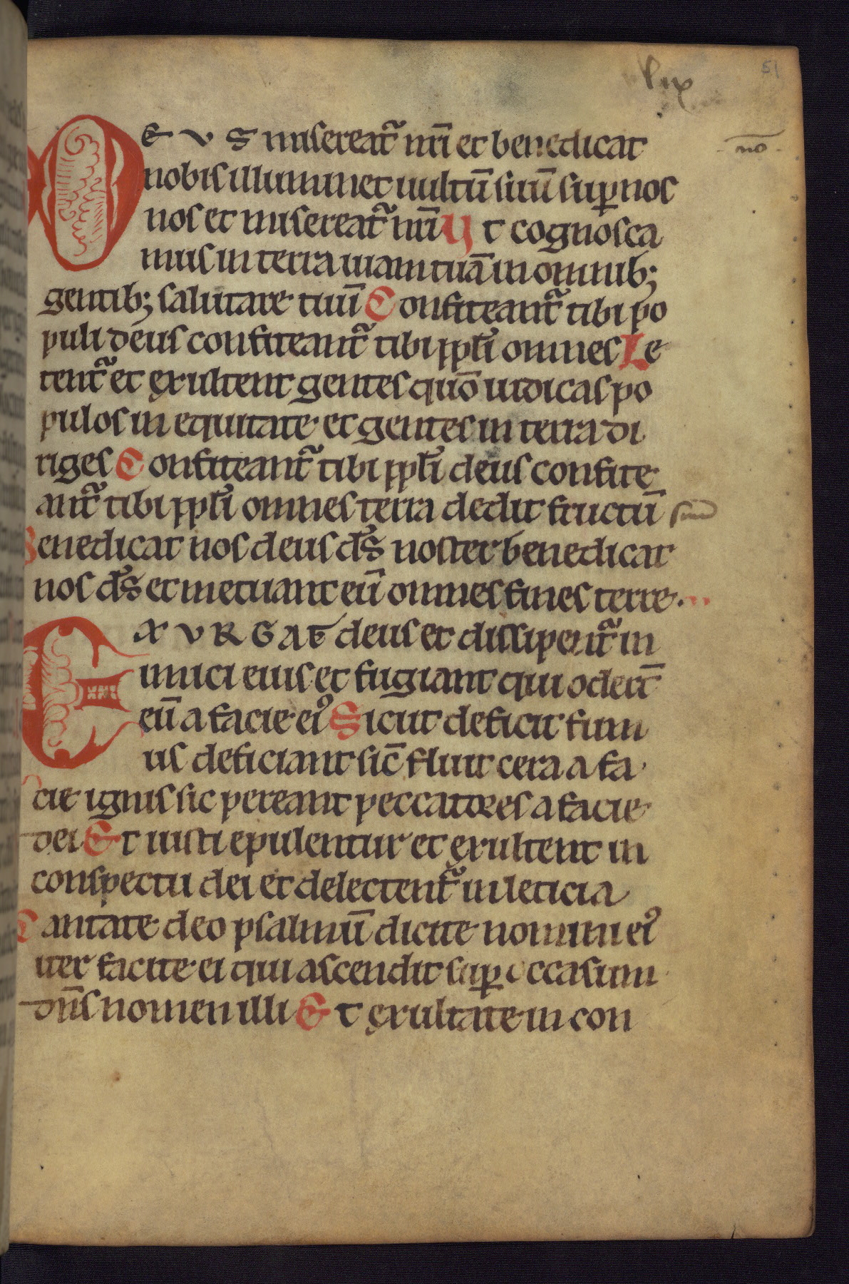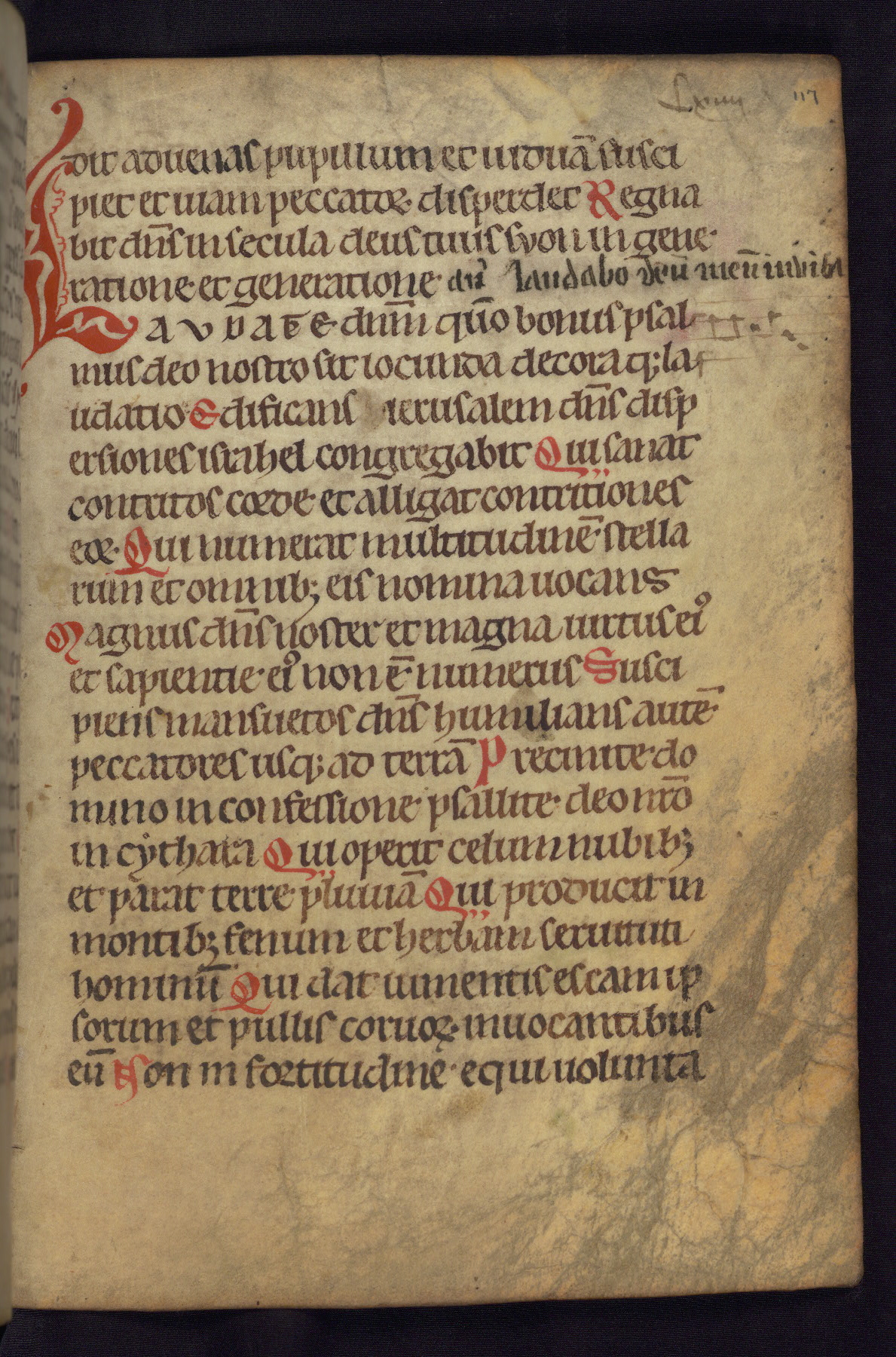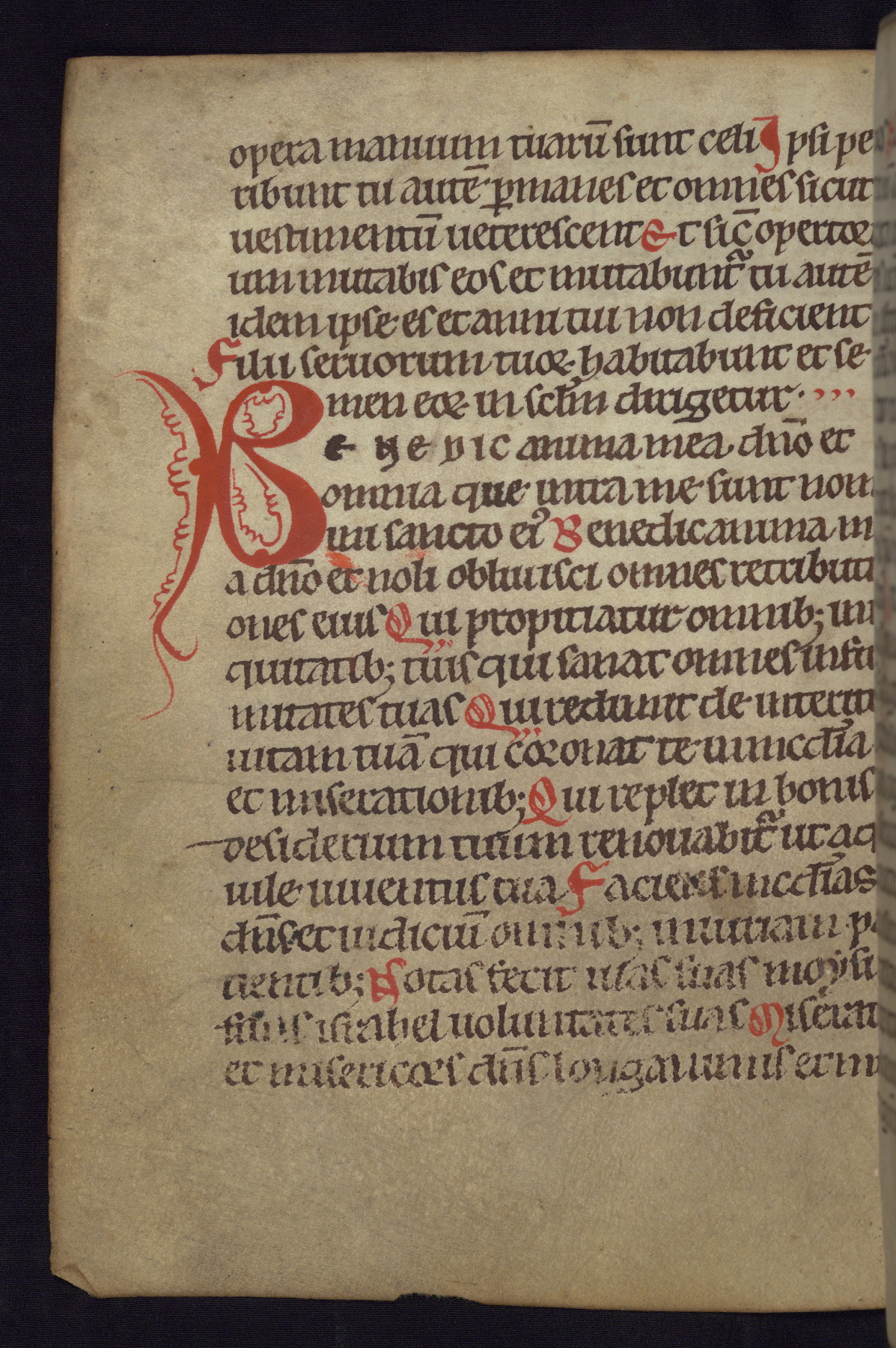 This Latin psalter was made in the second half of the thirteenth century for use in the Diocese of Constance, Germany. By the fourteenth century, it was owned by the Church of St. Mary of Strasbourg, from which it gets its name. The long life and enthusiastic use of the manuscript is attested by a multitude of added inscriptions, prayers, and antiphons with neumes, most dating to the fifteenth or sixteenth century. An early system of bookmarking is also evident; strips of parchment have been cut in some of the margins and folded through a slit in the leaf, creating tabs that would have helped the reader navigate through the text. Illumination also served this function, for while a short cycle of images from the life of Christ introduces the manuscript, the rest of the illuminations--large decorated initials as well as smaller ones in silver and gold--mark the important psalms for the reader. The style of illumination found here is closely related to two other psalters from Constance: Sigmaringen, Royal State Archives Ms. 11 and Hessische Landesbibliothek Fulda Ms. Aa 82.