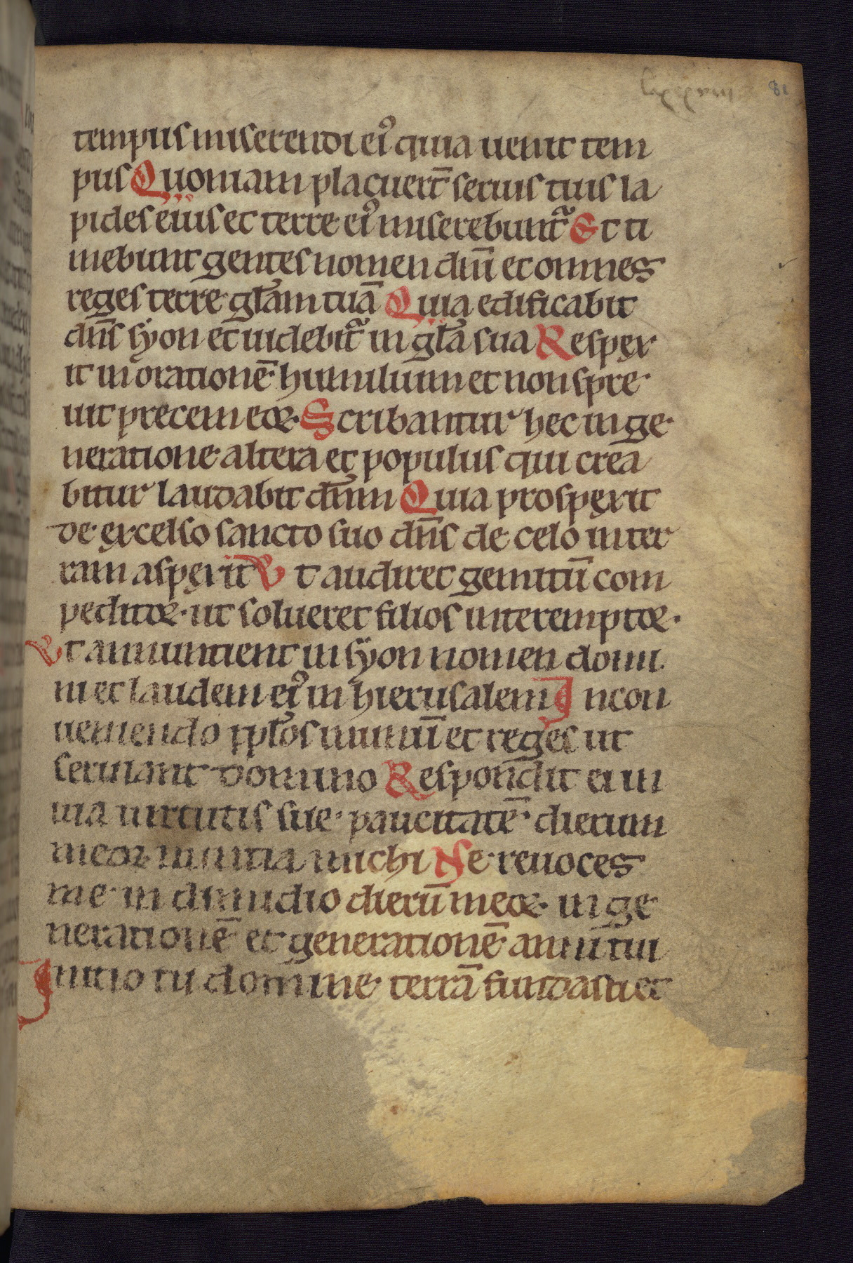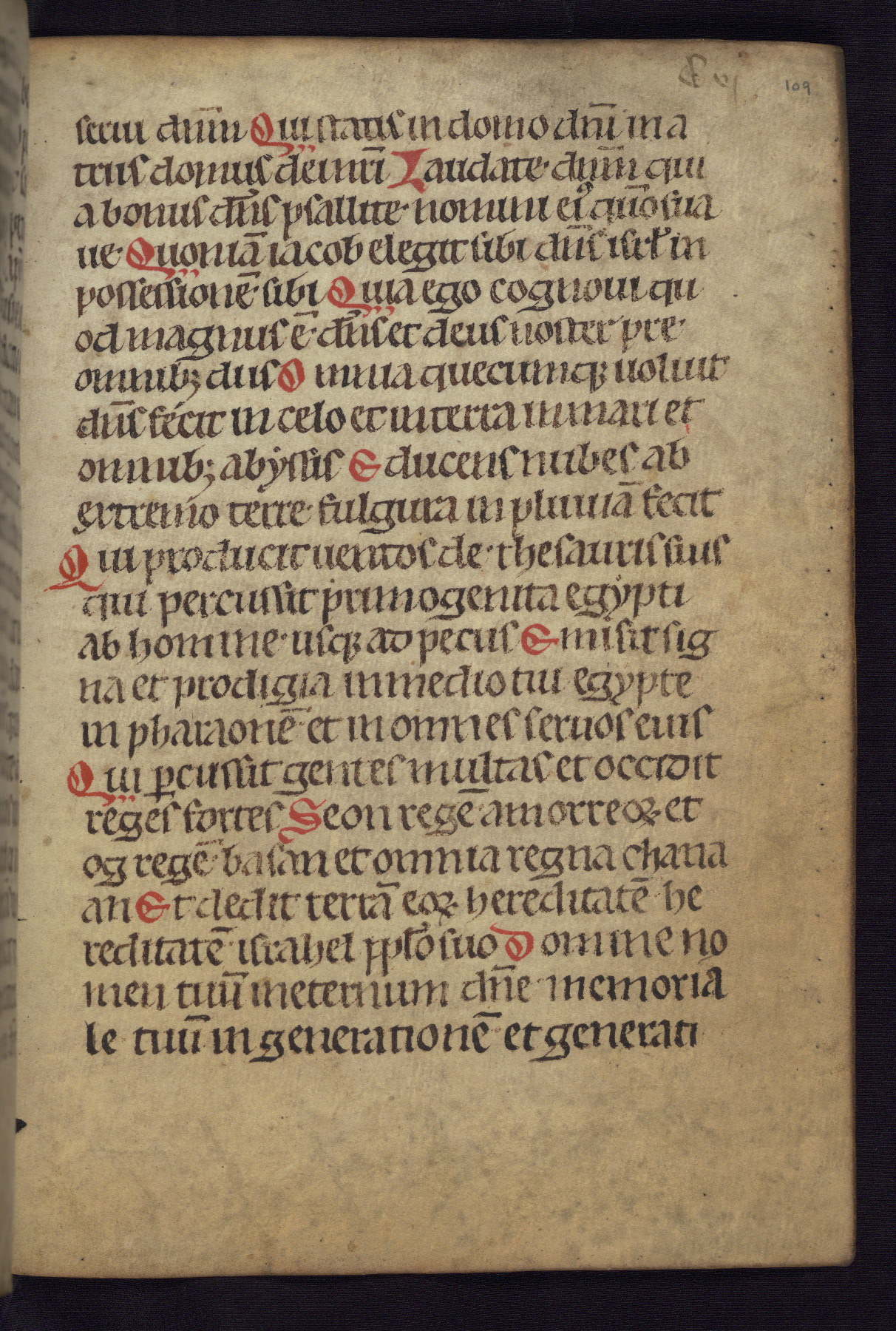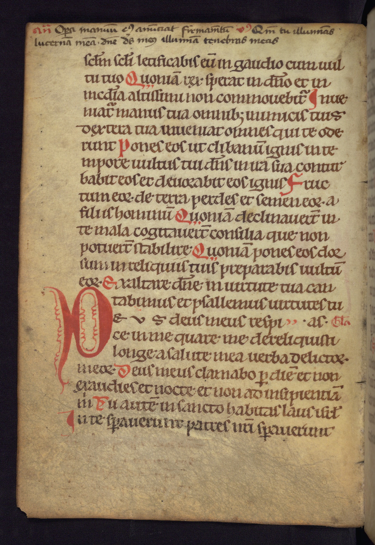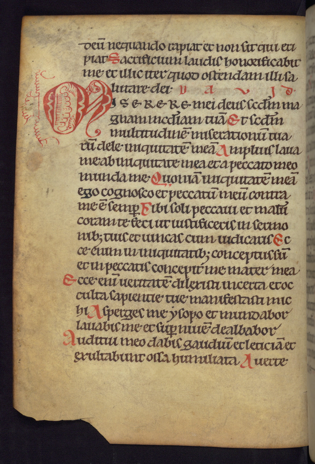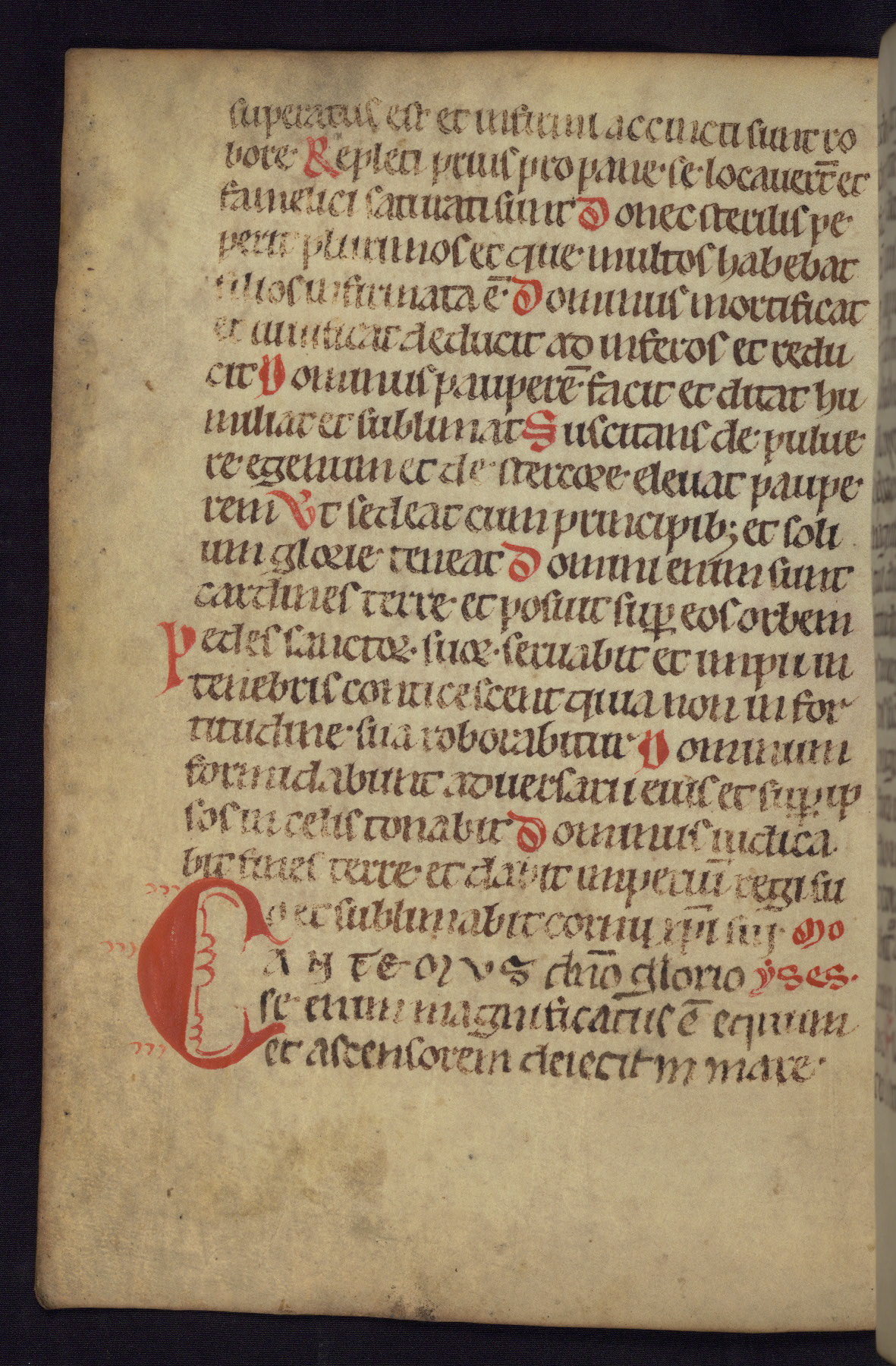 This Latin psalter was made in the second half of the thirteenth century for use in the Diocese of Constance, Germany. By the fourteenth century, it was owned by the Church of St. Mary of Strasbourg, from which it gets its name. The long life and enthusiastic use of the manuscript is attested by a multitude of added inscriptions, prayers, and antiphons with neumes, most dating to the fifteenth or sixteenth century. An early system of bookmarking is also evident; strips of parchment have been cut in some of the margins and folded through a slit in the leaf, creating tabs that would have helped the reader navigate through the text. Illumination also served this function, for while a short cycle of images from the life of Christ introduces the manuscript, the rest of the illuminations--large decorated initials as well as smaller ones in silver and gold--mark the important psalms for the reader. The style of illumination found here is closely related to two other psalters from Constance: Sigmaringen, Royal State Archives Ms. 11 and Hessische Landesbibliothek Fulda Ms. Aa 82.