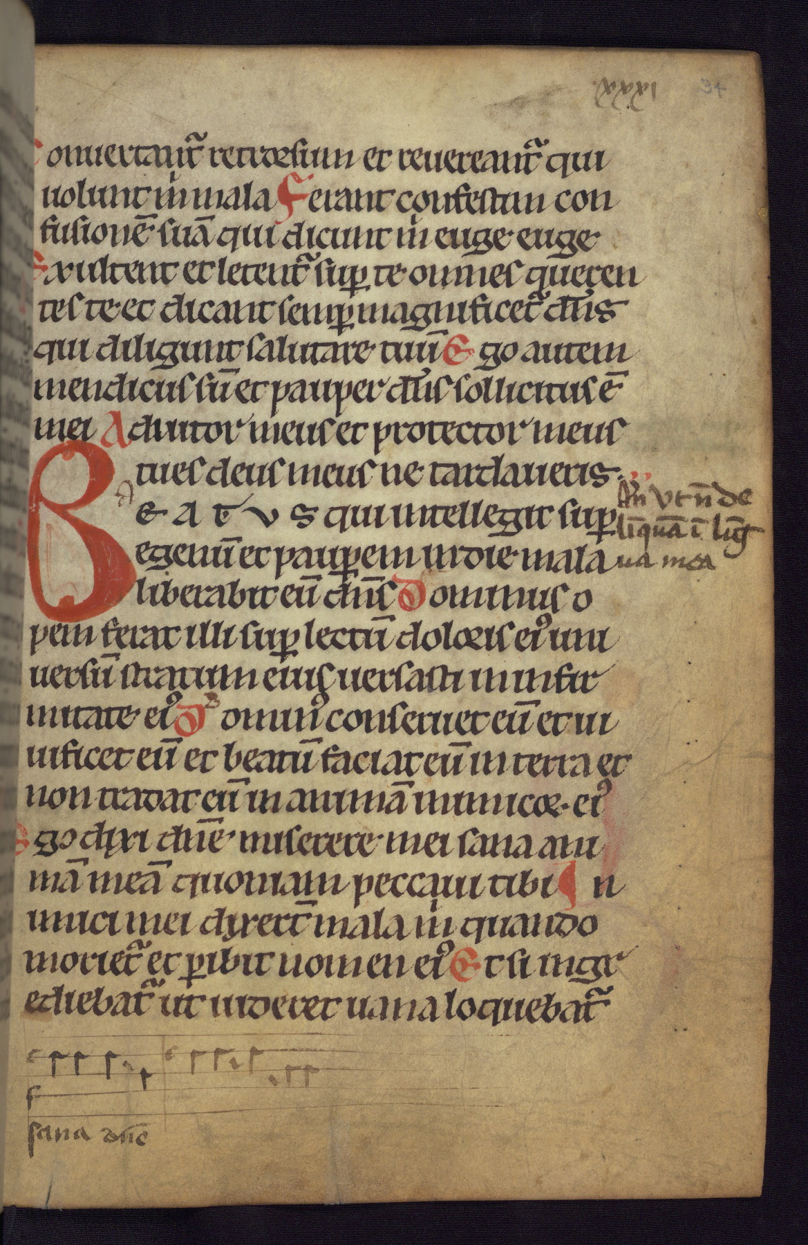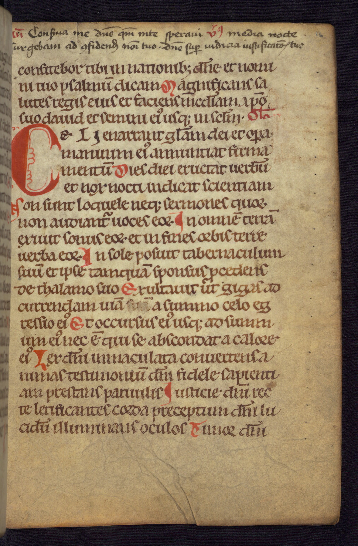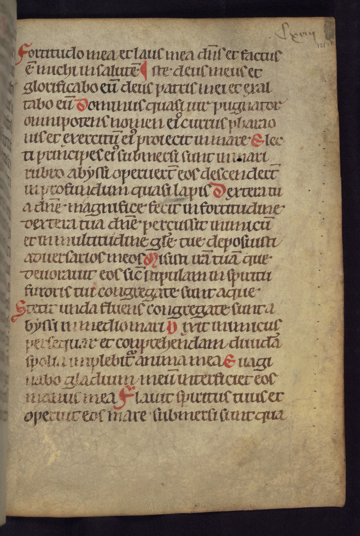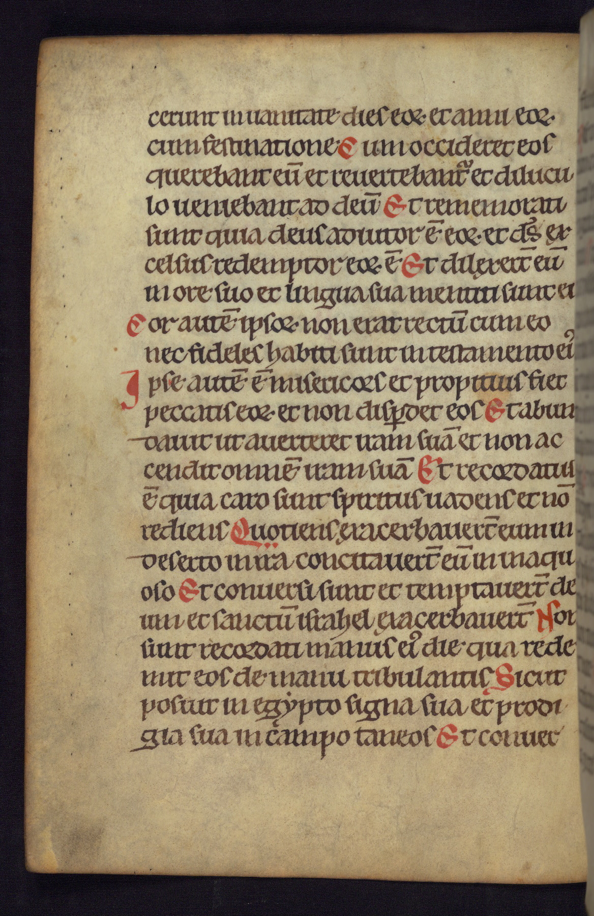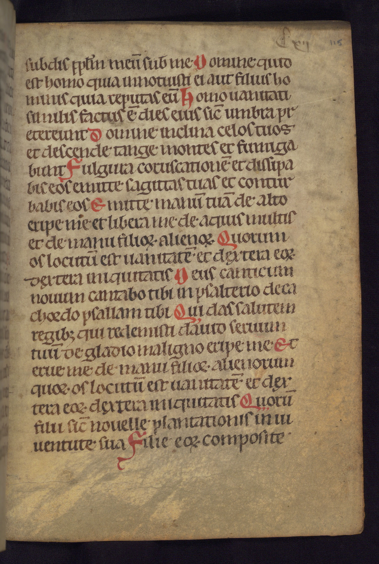 This Latin psalter was made in the second half of the thirteenth century for use in the Diocese of Constance, Germany. By the fourteenth century, it was owned by the Church of St. Mary of Strasbourg, from which it gets its name. The long life and enthusiastic use of the manuscript is attested by a multitude of added inscriptions, prayers, and antiphons with neumes, most dating to the fifteenth or sixteenth century. An early system of bookmarking is also evident; strips of parchment have been cut in some of the margins and folded through a slit in the leaf, creating tabs that would have helped the reader navigate through the text. Illumination also served this function, for while a short cycle of images from the life of Christ introduces the manuscript, the rest of the illuminations--large decorated initials as well as smaller ones in silver and gold--mark the important psalms for the reader. The style of illumination found here is closely related to two other psalters from Constance: Sigmaringen, Royal State Archives Ms. 11 and Hessische Landesbibliothek Fulda Ms. Aa 82.