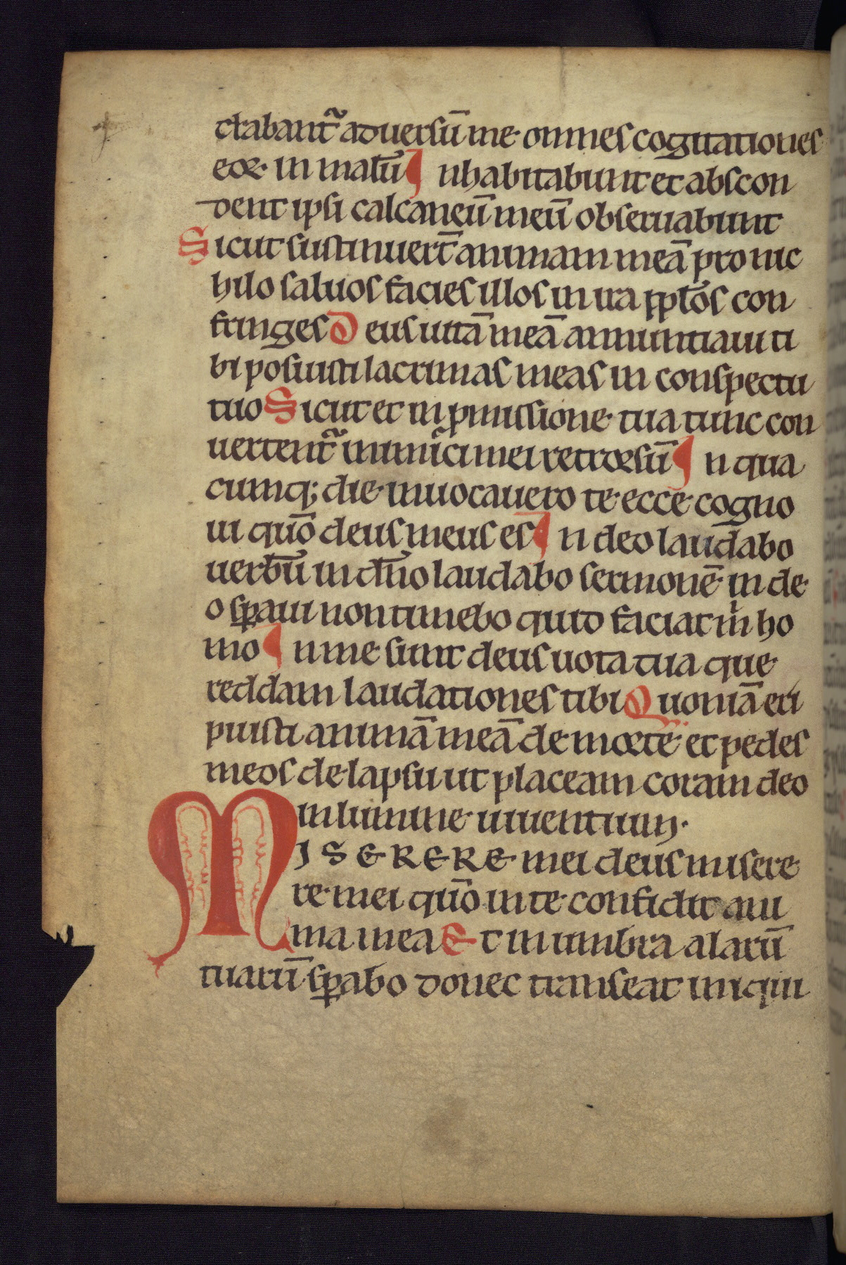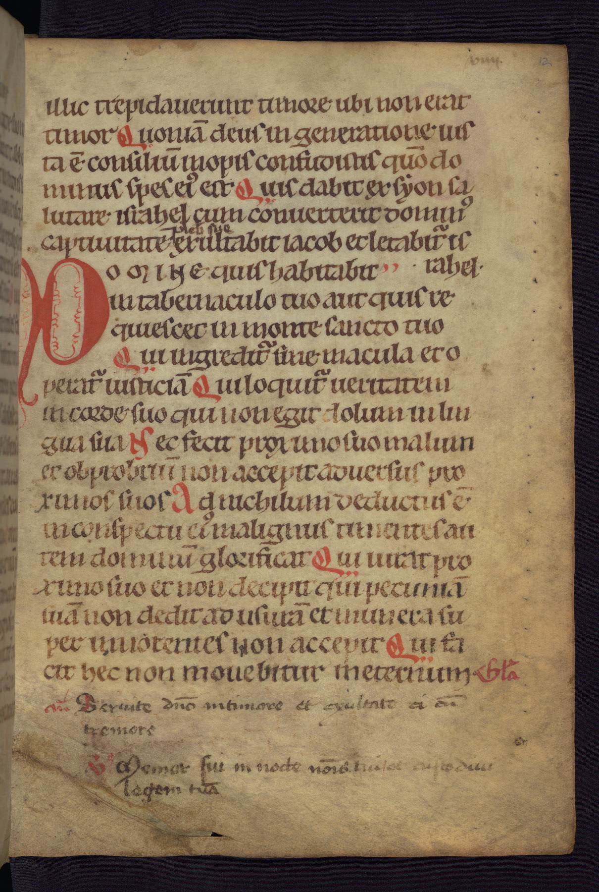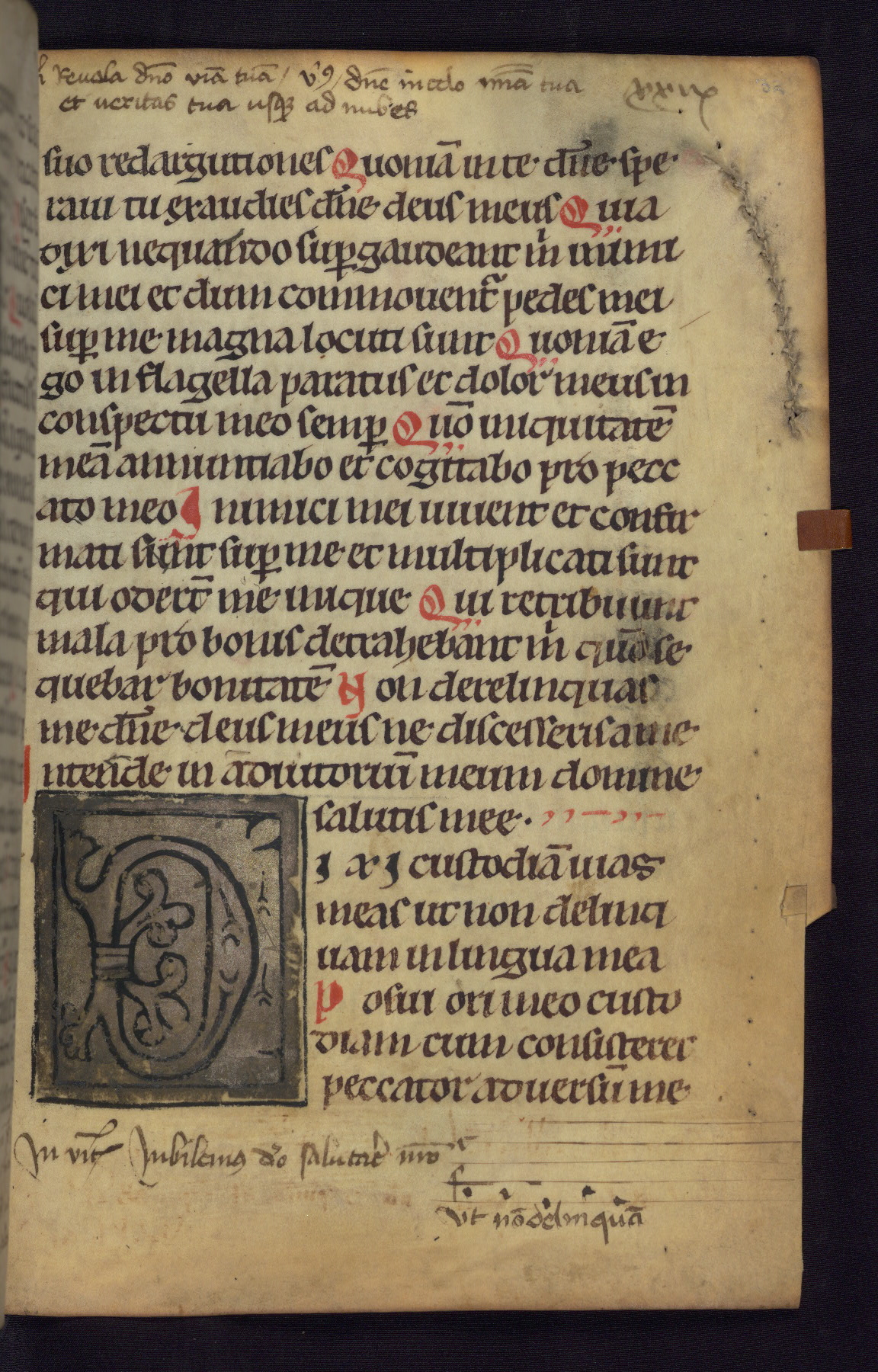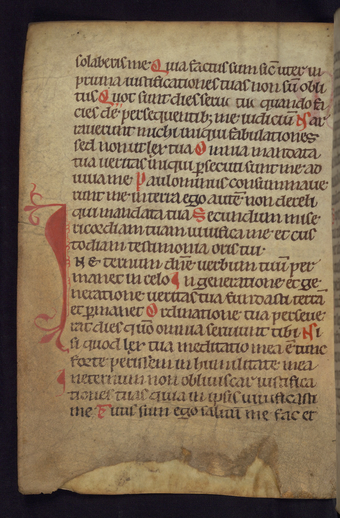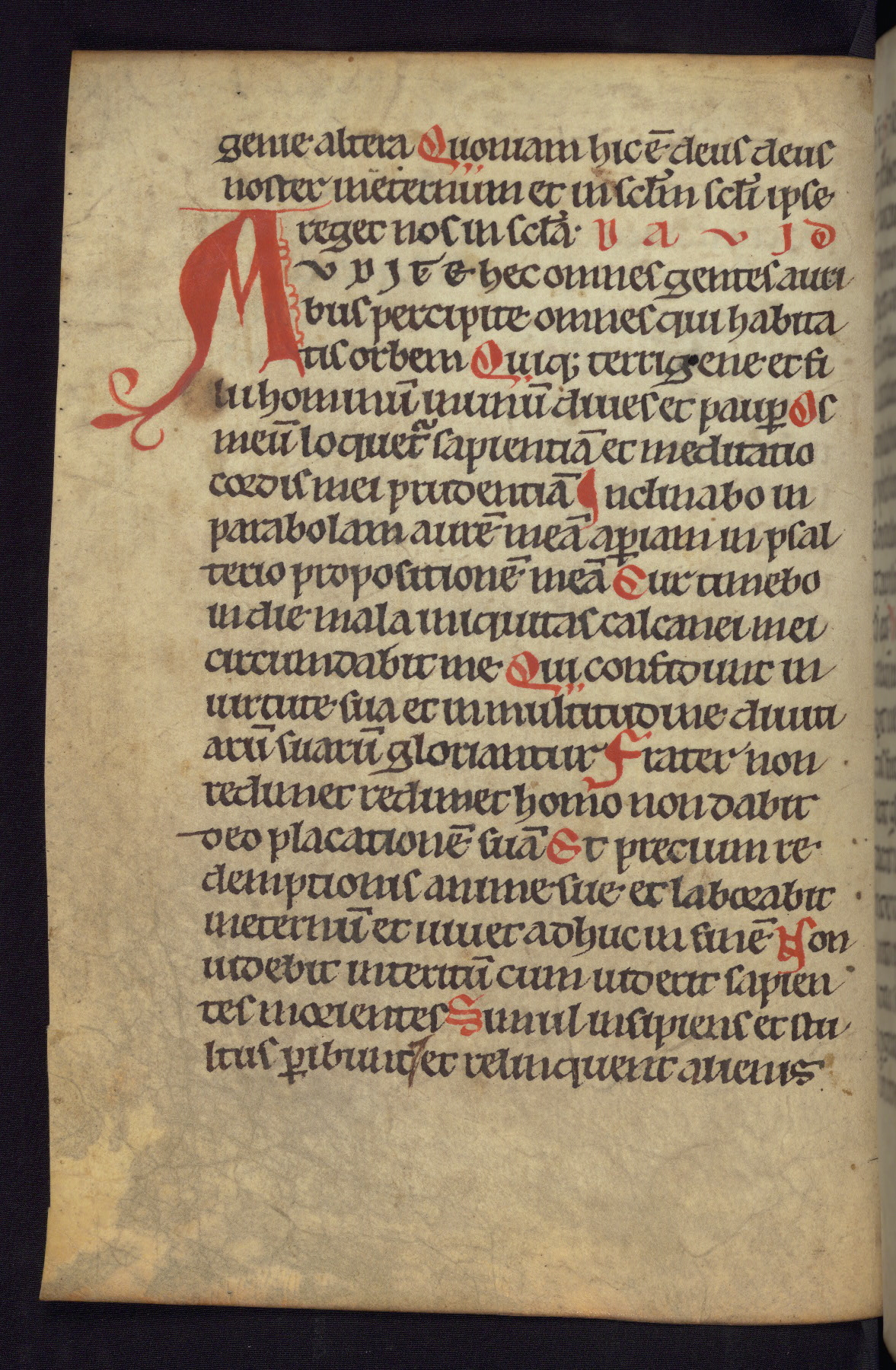 This Latin psalter was made in the second half of the thirteenth century for use in the Diocese of Constance, Germany. By the fourteenth century, it was owned by the Church of St. Mary of Strasbourg, from which it gets its name. The long life and enthusiastic use of the manuscript is attested by a multitude of added inscriptions, prayers, and antiphons with neumes, most dating to the fifteenth or sixteenth century. An early system of bookmarking is also evident; strips of parchment have been cut in some of the margins and folded through a slit in the leaf, creating tabs that would have helped the reader navigate through the text. Illumination also served this function, for while a short cycle of images from the life of Christ introduces the manuscript, the rest of the illuminations--large decorated initials as well as smaller ones in silver and gold--mark the important psalms for the reader. The style of illumination found here is closely related to two other psalters from Constance: Sigmaringen, Royal State Archives Ms. 11 and Hessische Landesbibliothek Fulda Ms. Aa 82.
