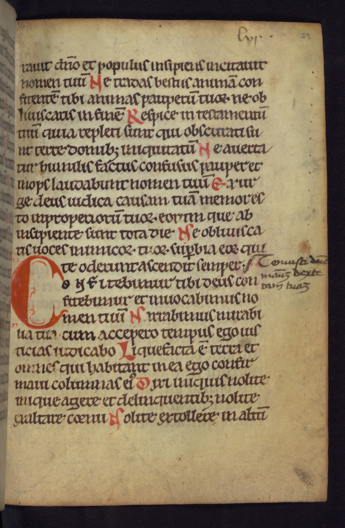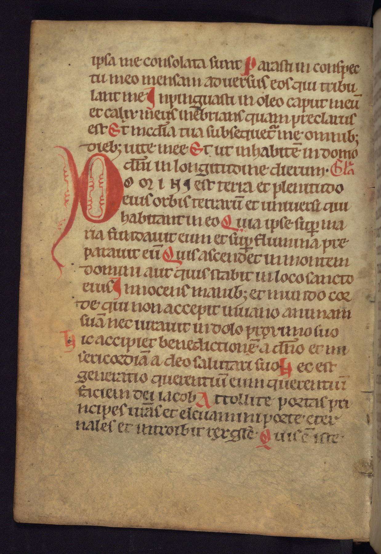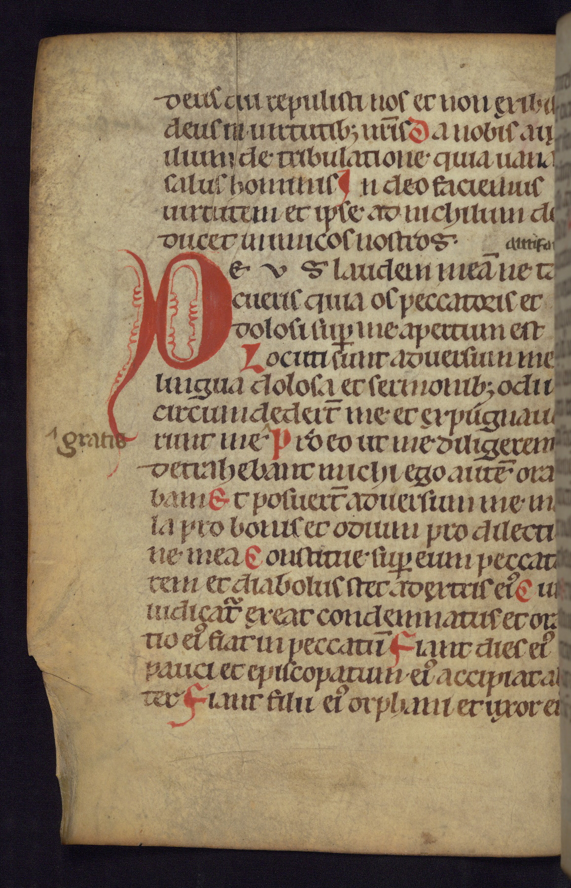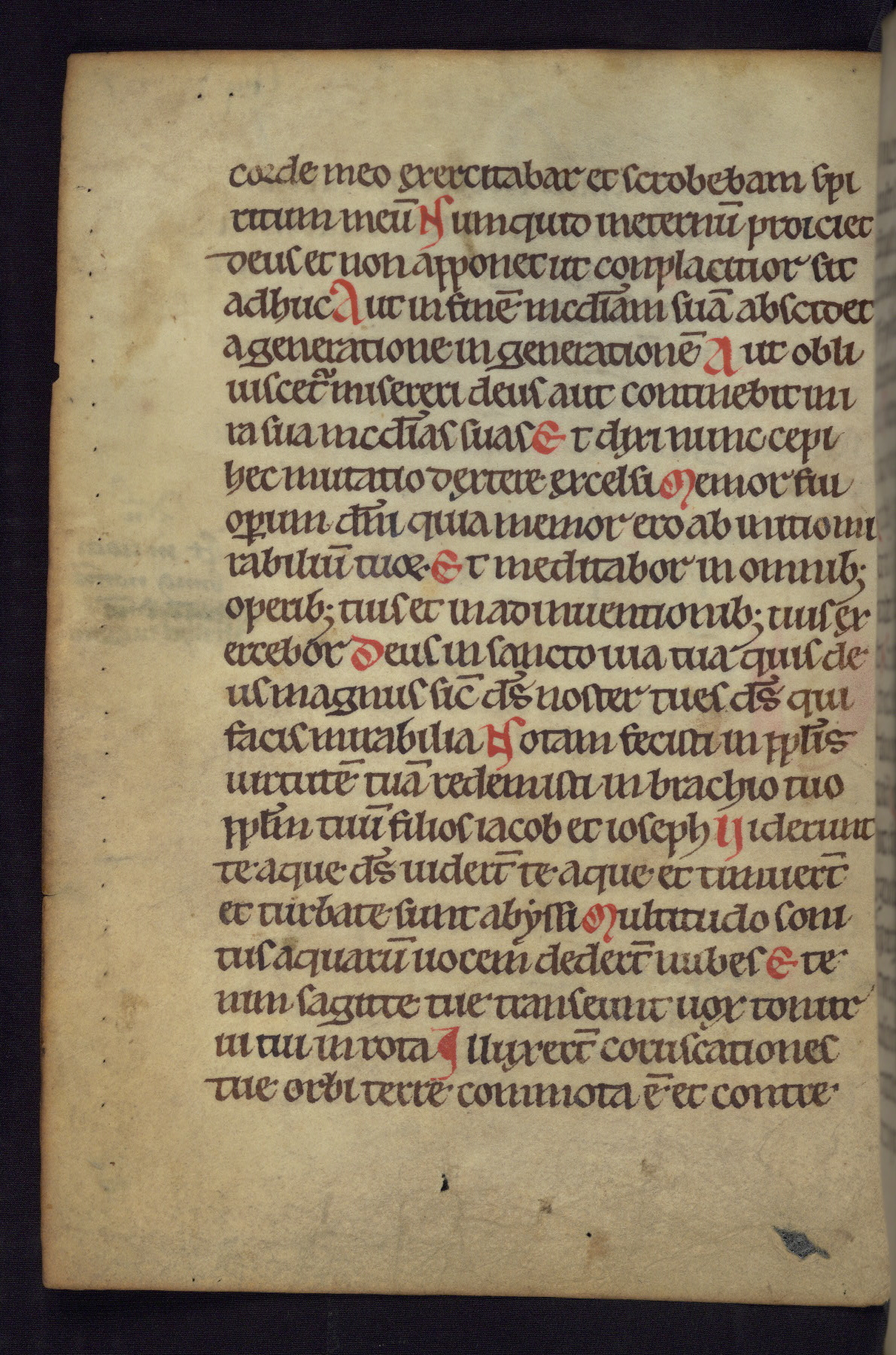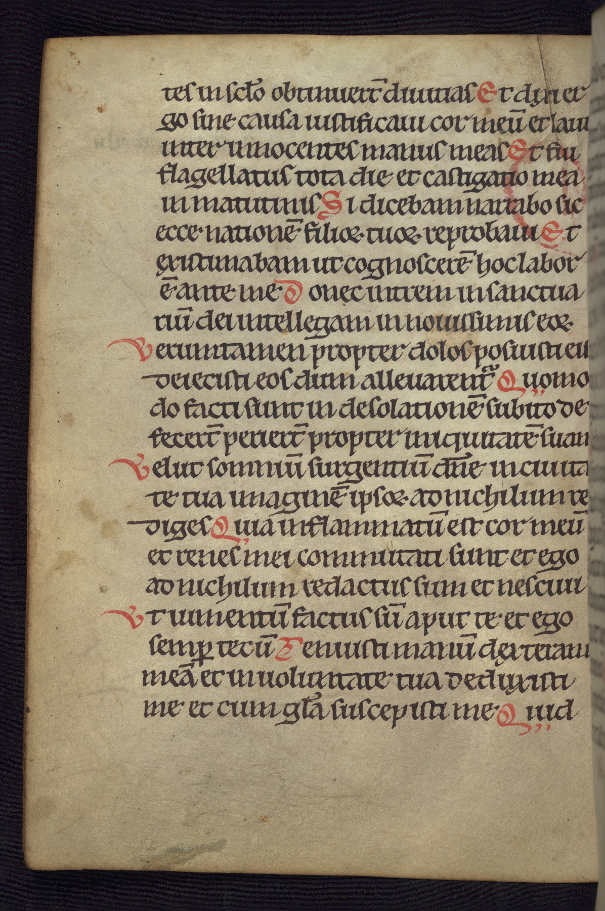 This Latin psalter was made in the second half of the thirteenth century for use in the Diocese of Constance, Germany. By the fourteenth century, it was owned by the Church of St. Mary of Strasbourg, from which it gets its name. The long life and enthusiastic use of the manuscript is attested by a multitude of added inscriptions, prayers, and antiphons with neumes, most dating to the fifteenth or sixteenth century. An early system of bookmarking is also evident; strips of parchment have been cut in some of the margins and folded through a slit in the leaf, creating tabs that would have helped the reader navigate through the text. Illumination also served this function, for while a short cycle of images from the life of Christ introduces the manuscript, the rest of the illuminations--large decorated initials as well as smaller ones in silver and gold--mark the important psalms for the reader. The style of illumination found here is closely related to two other psalters from Constance: Sigmaringen, Royal State Archives Ms. 11 and Hessische Landesbibliothek Fulda Ms. Aa 82.