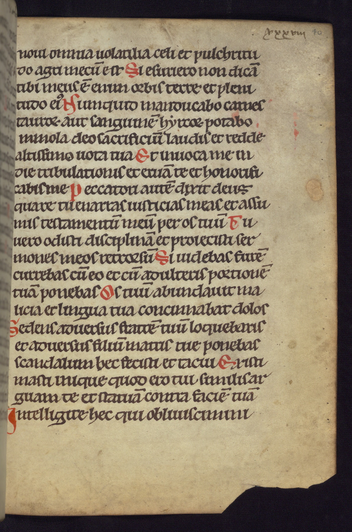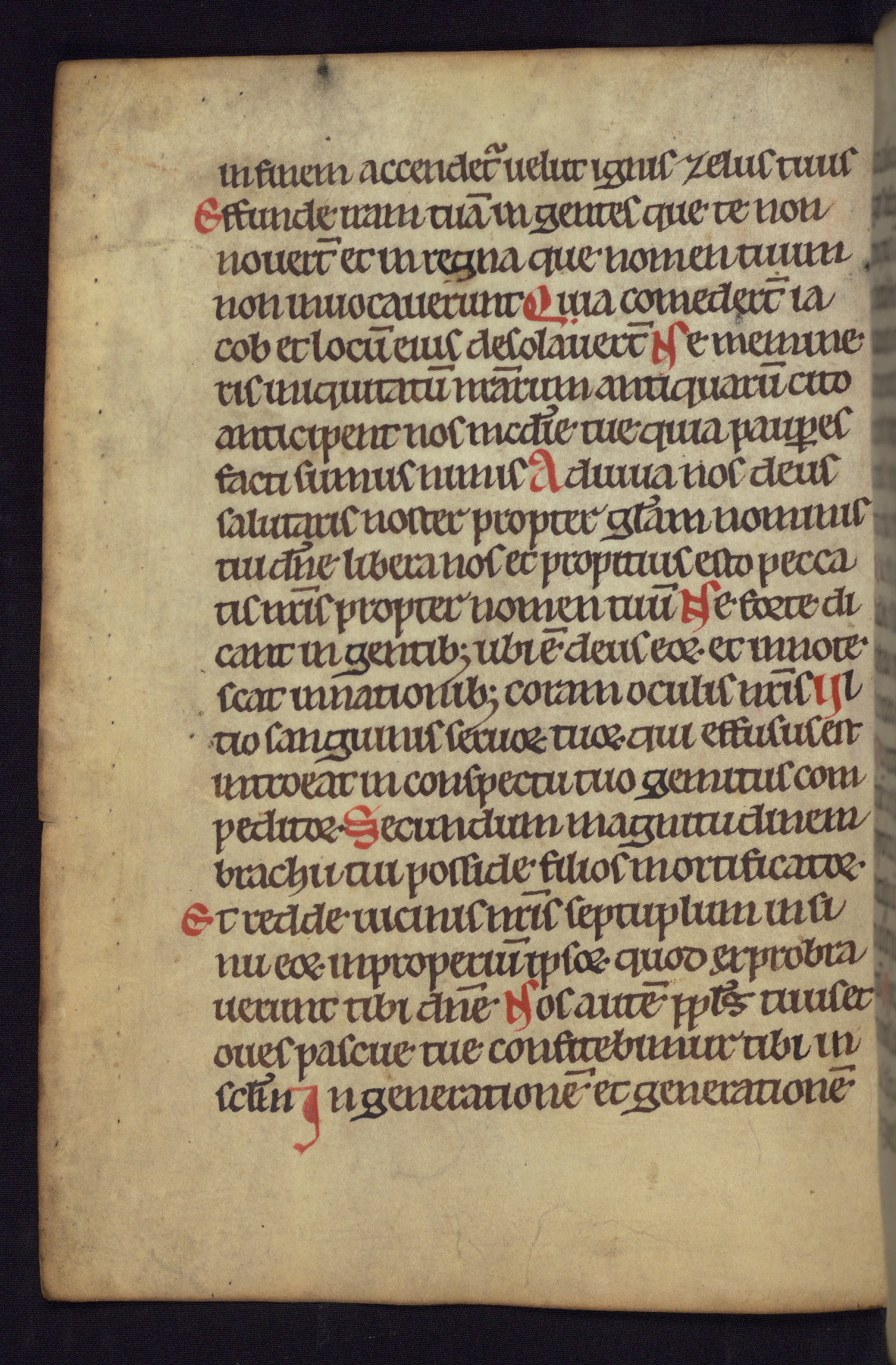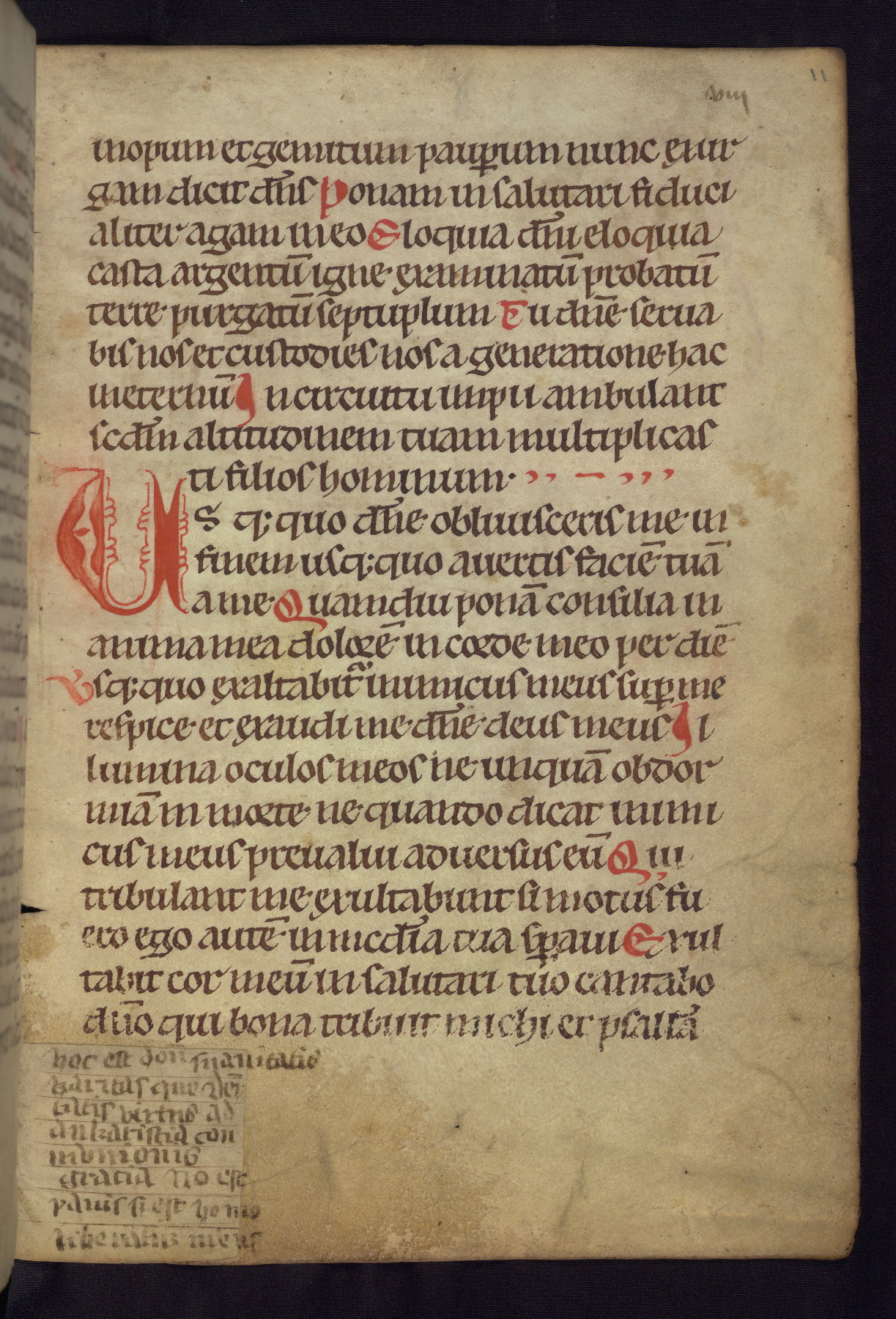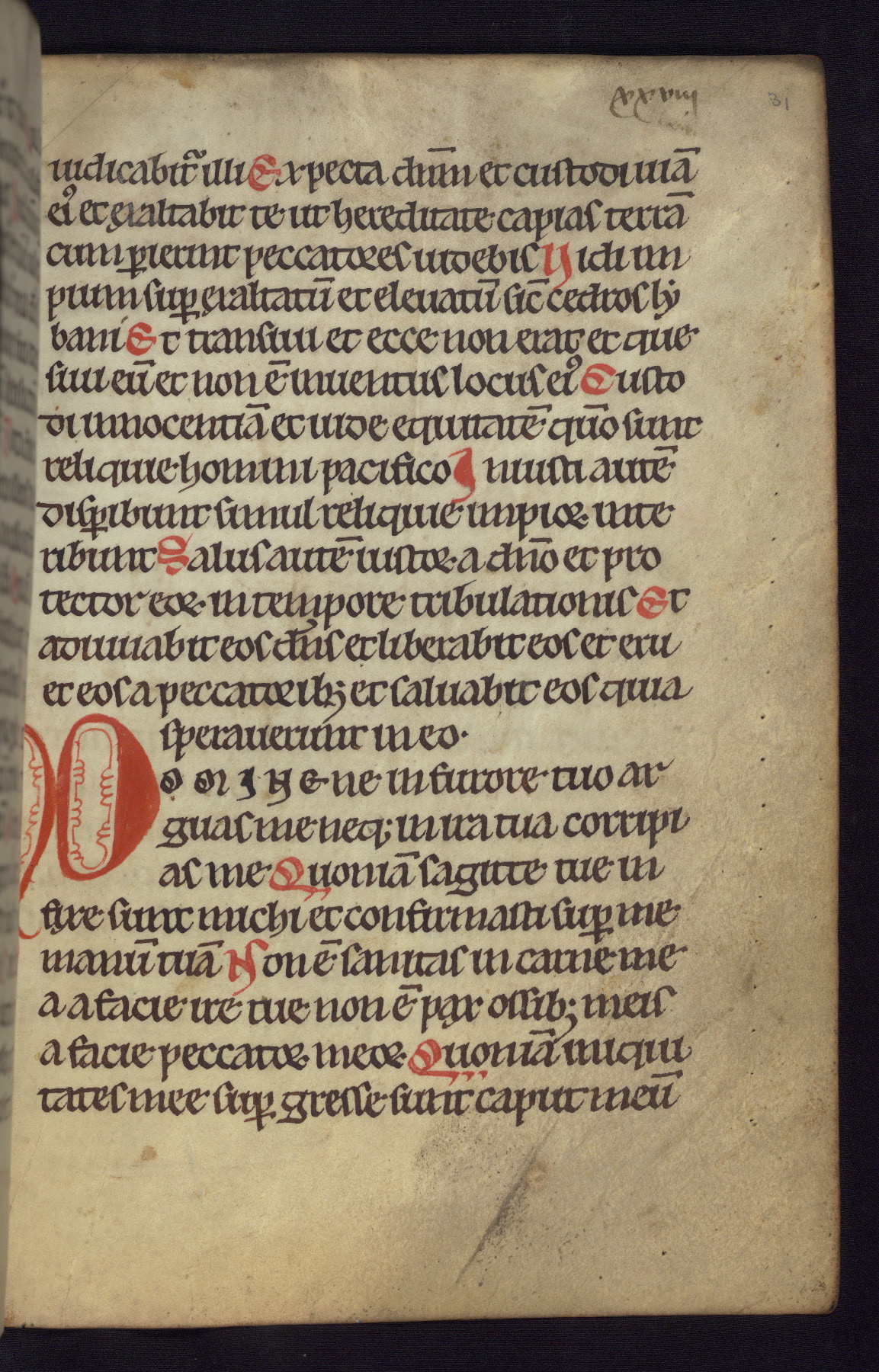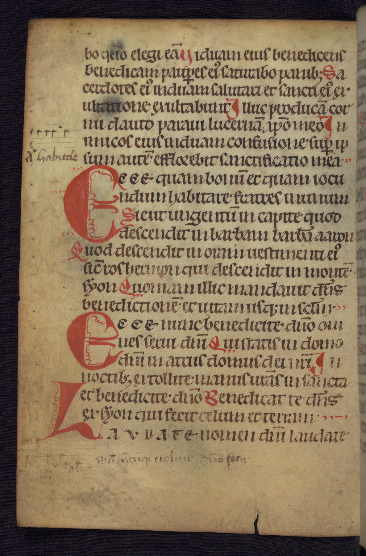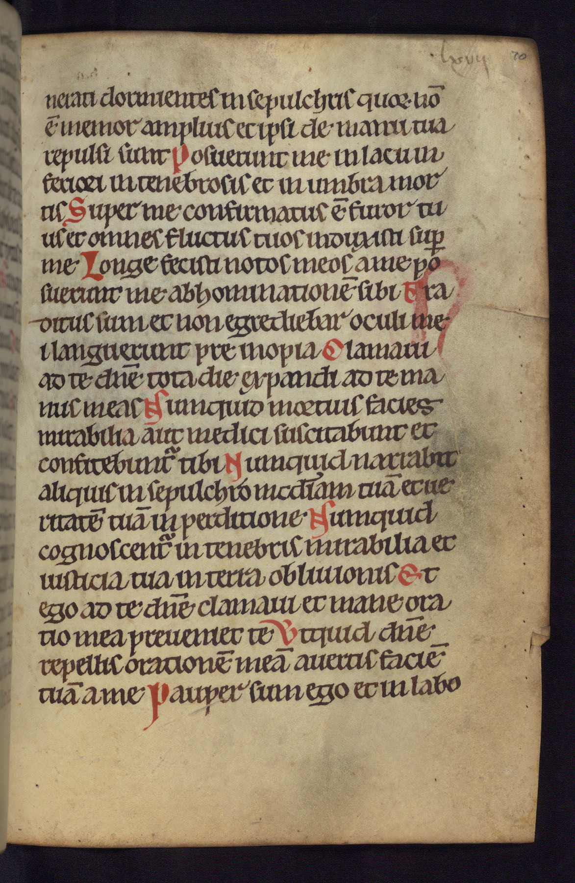 This Latin psalter was made in the second half of the thirteenth century for use in the Diocese of Constance, Germany. By the fourteenth century, it was owned by the Church of St. Mary of Strasbourg, from which it gets its name. The long life and enthusiastic use of the manuscript is attested by a multitude of added inscriptions, prayers, and antiphons with neumes, most dating to the fifteenth or sixteenth century. An early system of bookmarking is also evident; strips of parchment have been cut in some of the margins and folded through a slit in the leaf, creating tabs that would have helped the reader navigate through the text. Illumination also served this function, for while a short cycle of images from the life of Christ introduces the manuscript, the rest of the illuminations--large decorated initials as well as smaller ones in silver and gold--mark the important psalms for the reader. The style of illumination found here is closely related to two other psalters from Constance: Sigmaringen, Royal State Archives Ms. 11 and Hessische Landesbibliothek Fulda Ms. Aa 82.