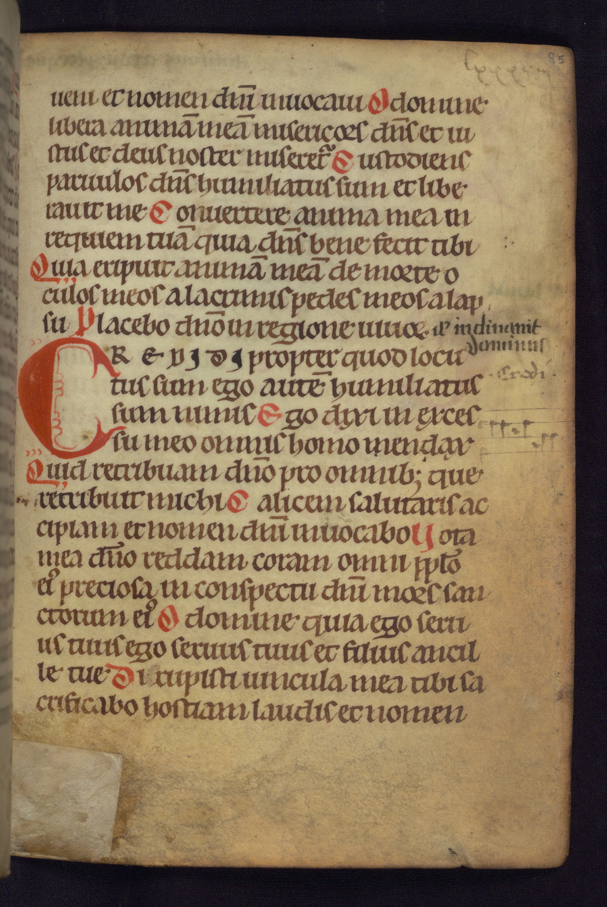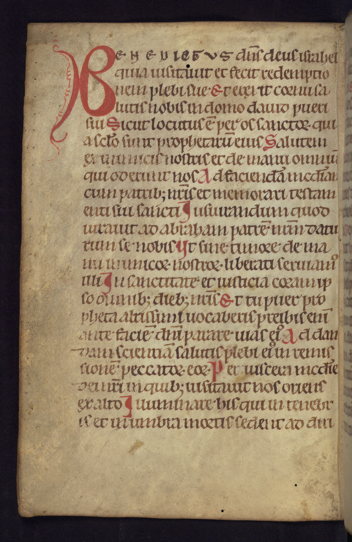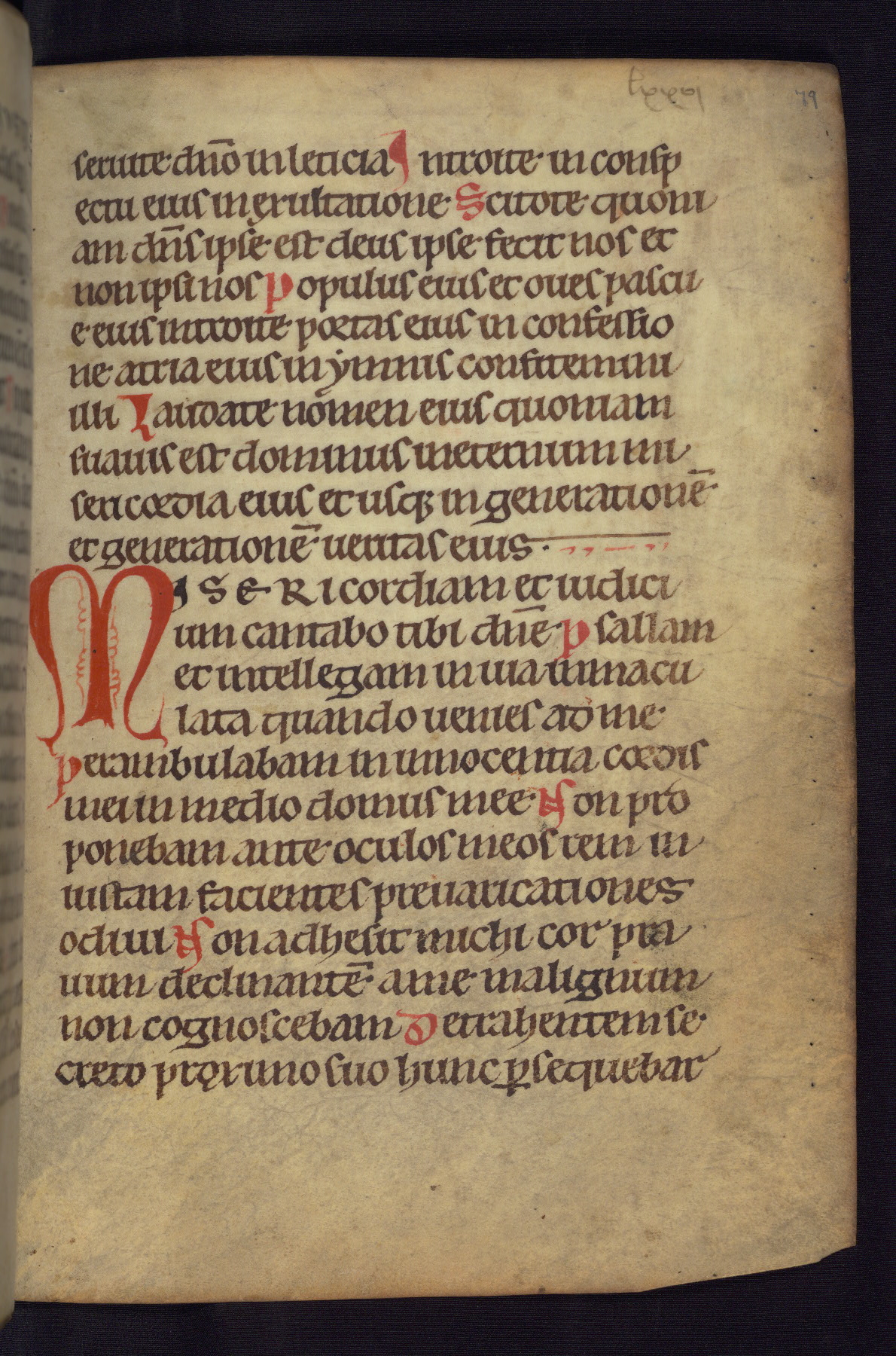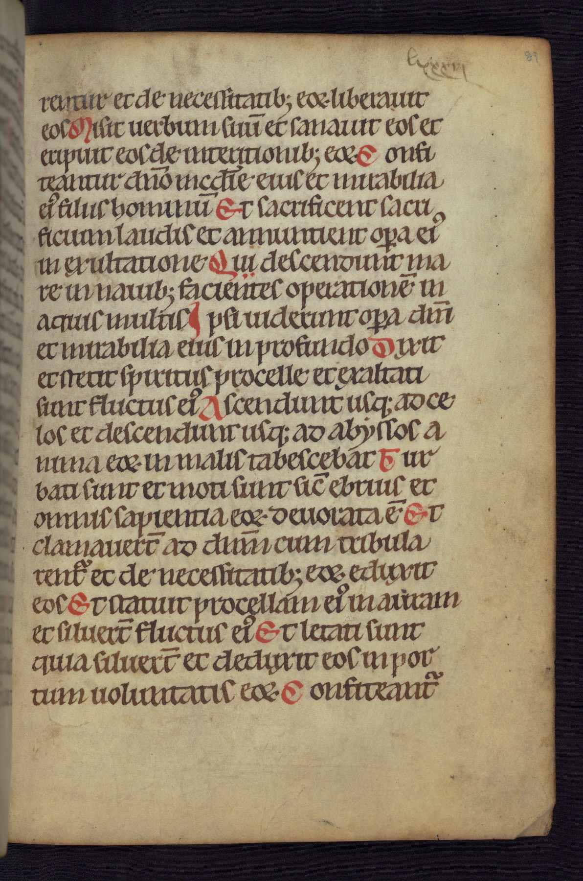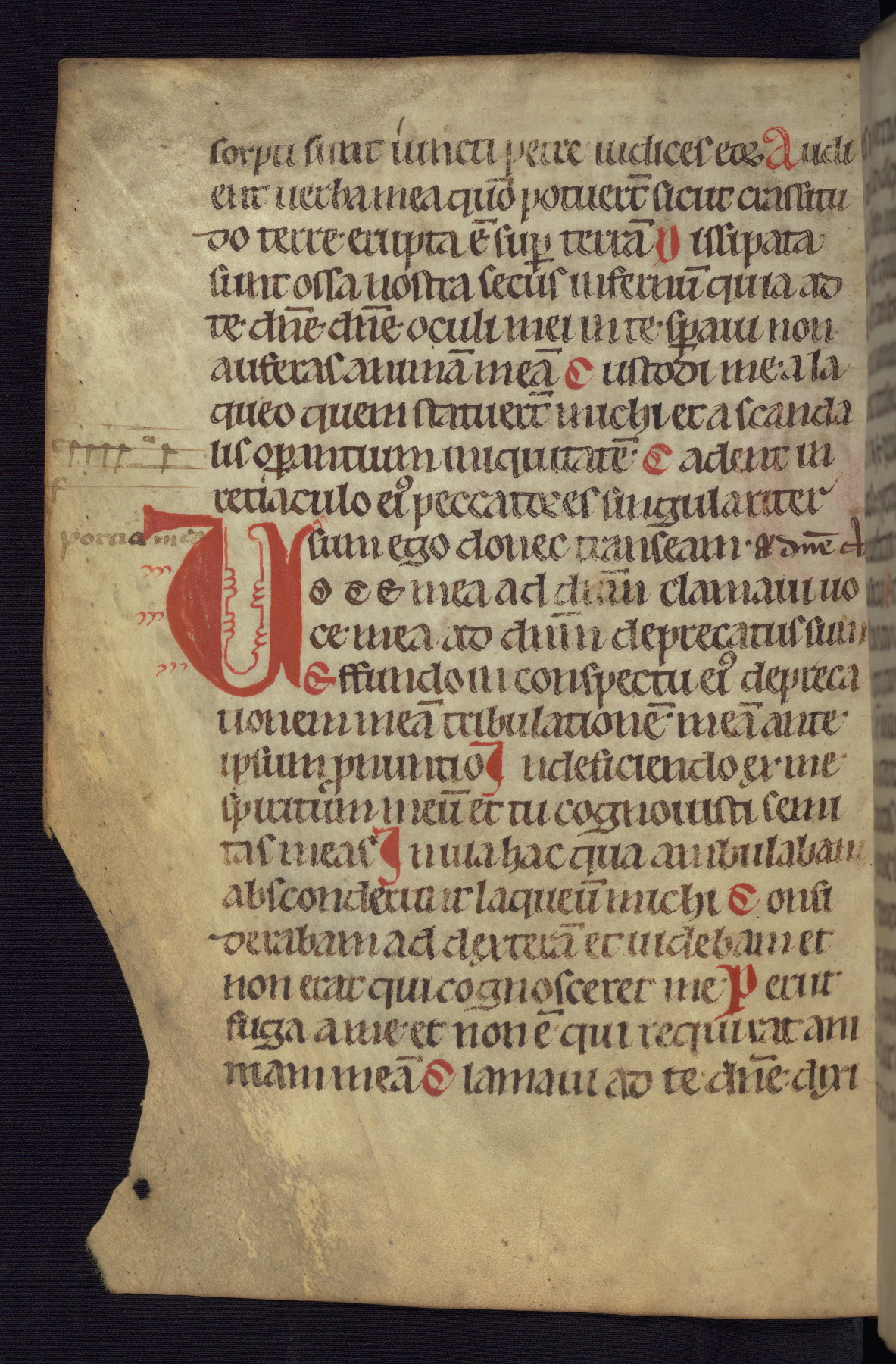 This Latin psalter was made in the second half of the thirteenth century for use in the Diocese of Constance, Germany. By the fourteenth century, it was owned by the Church of St. Mary of Strasbourg, from which it gets its name. The long life and enthusiastic use of the manuscript is attested by a multitude of added inscriptions, prayers, and antiphons with neumes, most dating to the fifteenth or sixteenth century. An early system of bookmarking is also evident; strips of parchment have been cut in some of the margins and folded through a slit in the leaf, creating tabs that would have helped the reader navigate through the text. Illumination also served this function, for while a short cycle of images from the life of Christ introduces the manuscript, the rest of the illuminations--large decorated initials as well as smaller ones in silver and gold--mark the important psalms for the reader. The style of illumination found here is closely related to two other psalters from Constance: Sigmaringen, Royal State Archives Ms. 11 and Hessische Landesbibliothek Fulda Ms. Aa 82.
