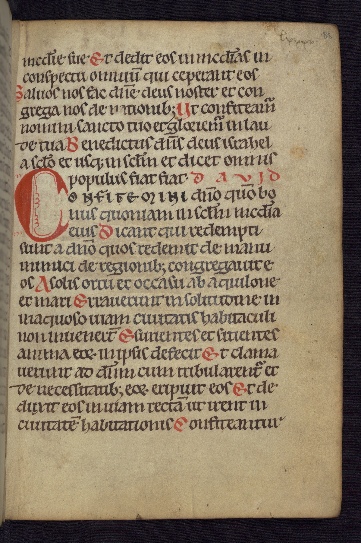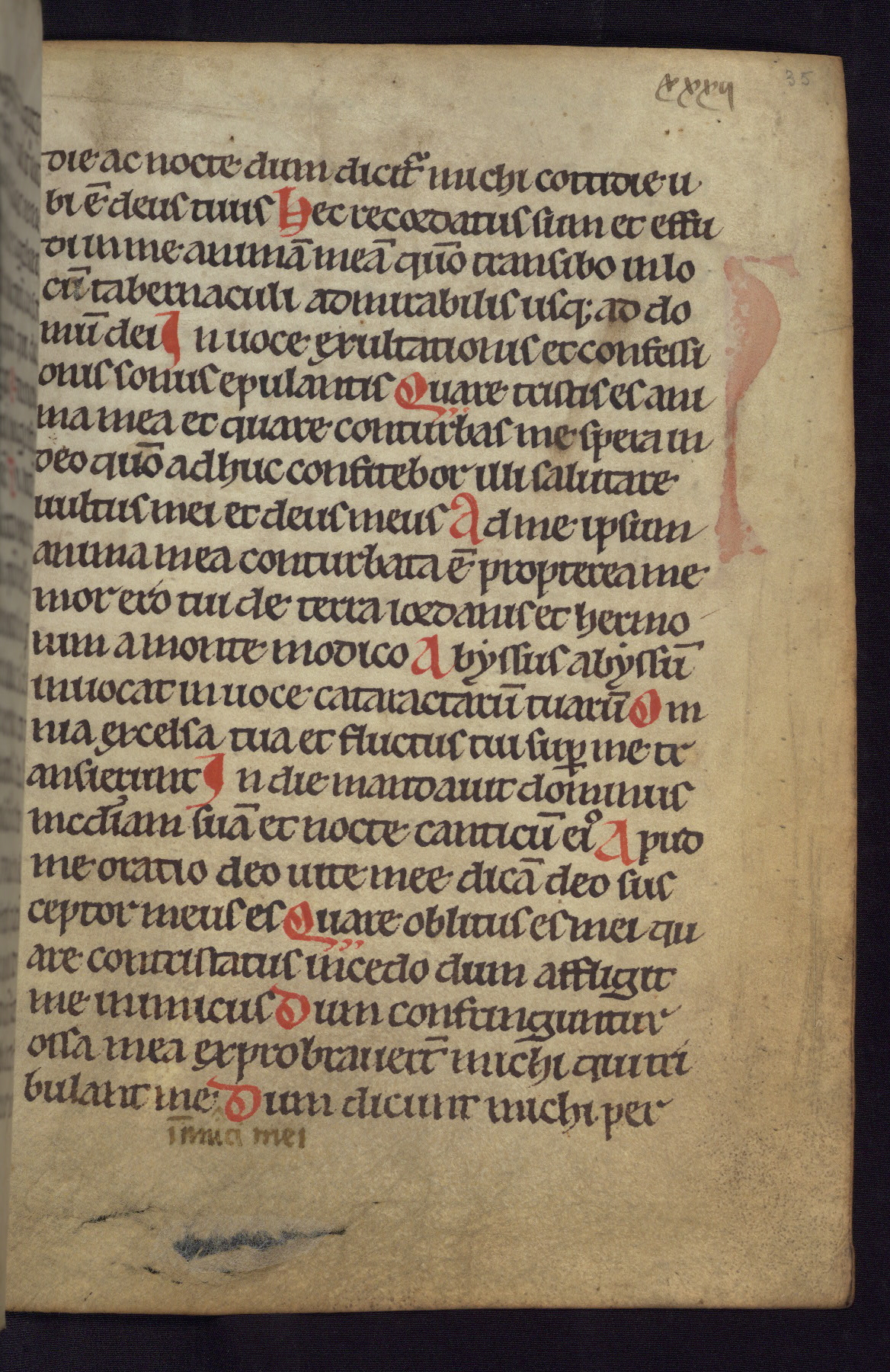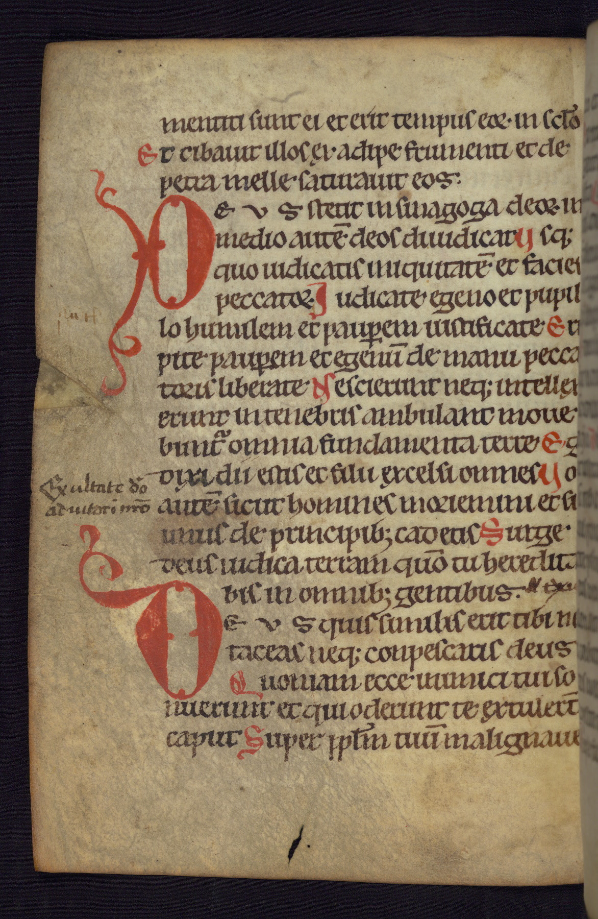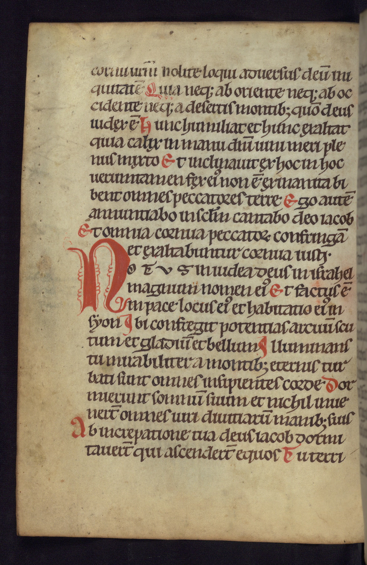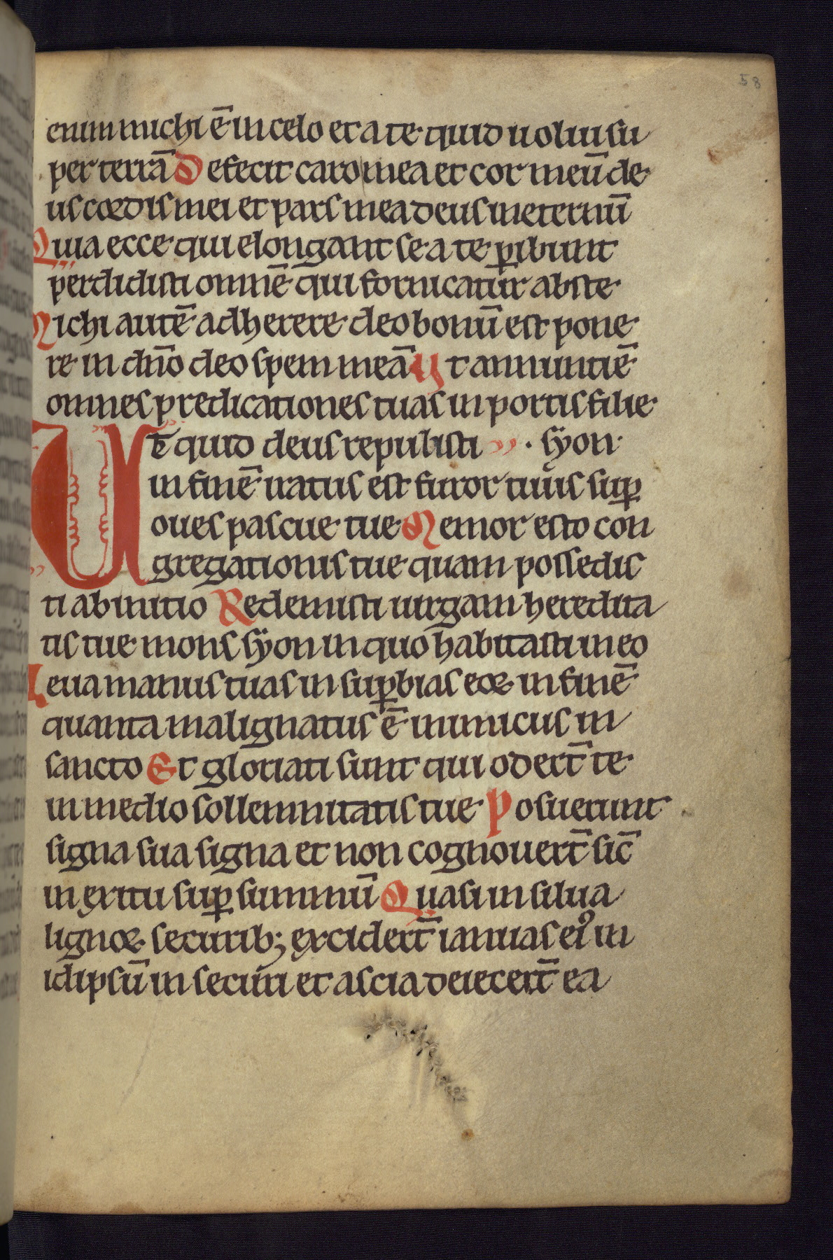This Latin psalter was made in the second half of the thirteenth century for use in the Diocese of Constance, Germany. By the fourteenth century, it was owned by the Church of St. Mary of Strasbourg, from which it gets its name. The long life and enthusiastic use of the manuscript is attested by a multitude of added inscriptions, prayers, and antiphons with neumes, most dating to the fifteenth or sixteenth century. An early system of bookmarking is also evident; strips of parchment have been cut in some of the margins and folded through a slit in the leaf, creating tabs that would have helped the reader navigate through the text. Illumination also served this function, for while a short cycle of images from the life of Christ introduces the manuscript, the rest of the illuminations--large decorated initials as well as smaller ones in silver and gold--mark the important psalms for the reader. The style of illumination found here is closely related to two other psalters from Constance: Sigmaringen, Royal State Archives Ms. 11 and Hessische Landesbibliothek Fulda Ms. Aa 82.