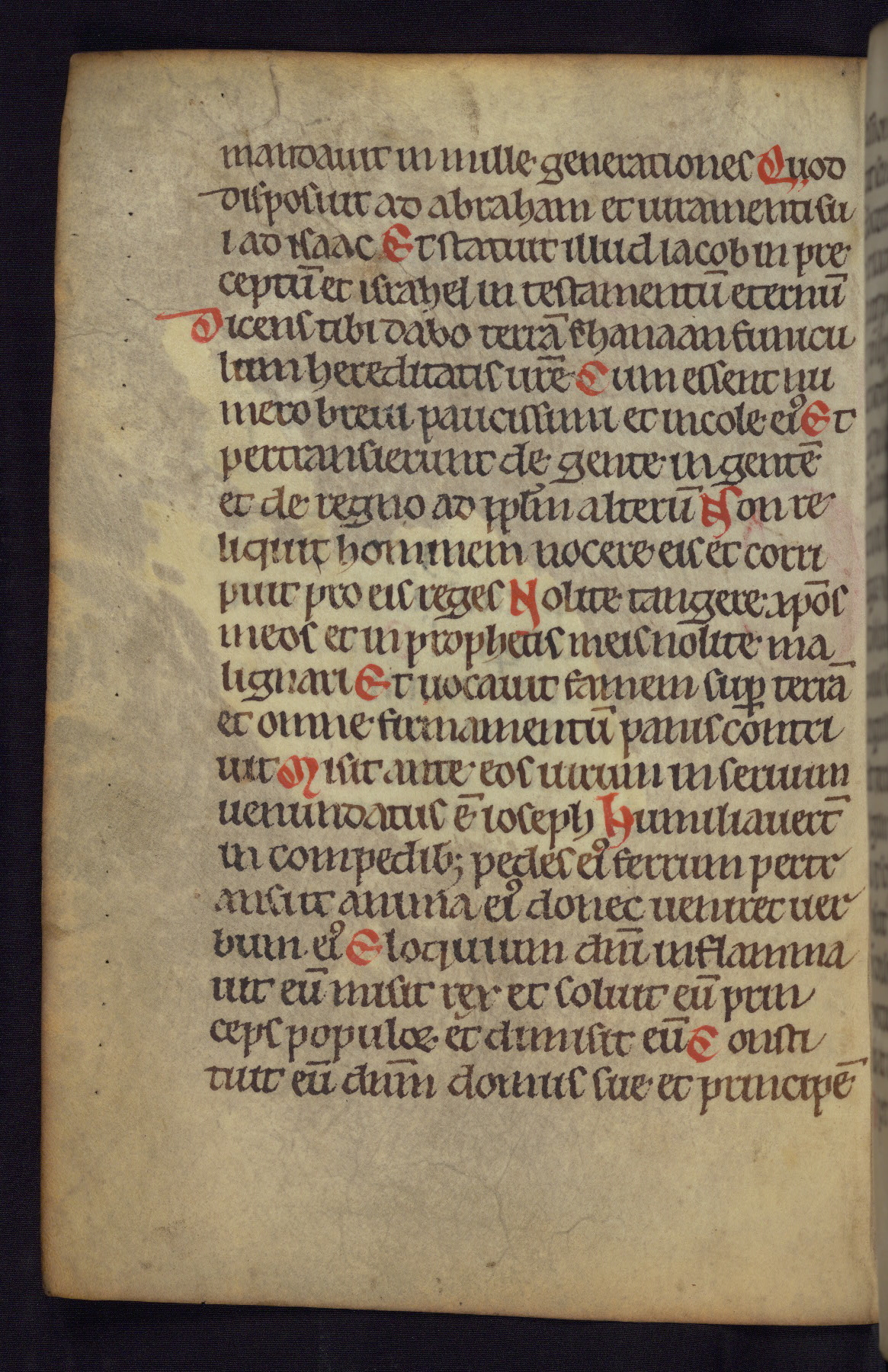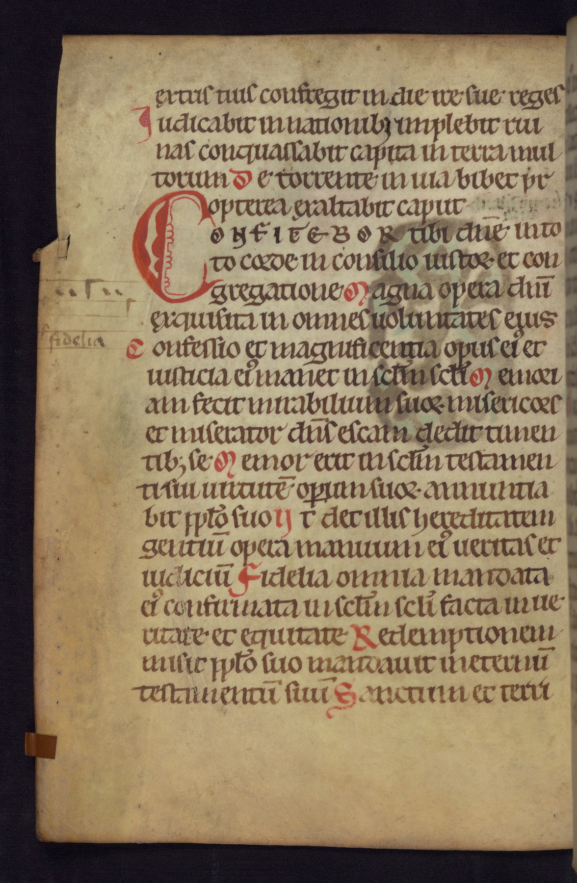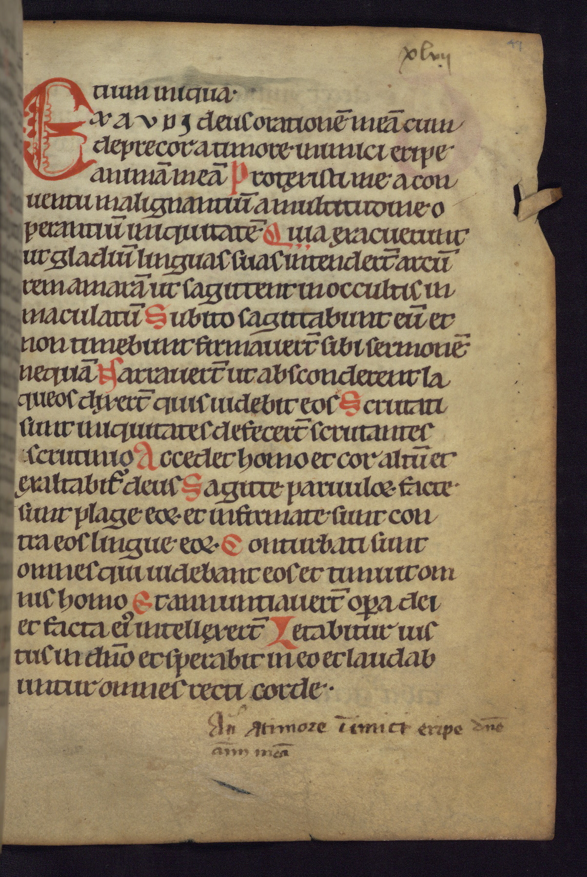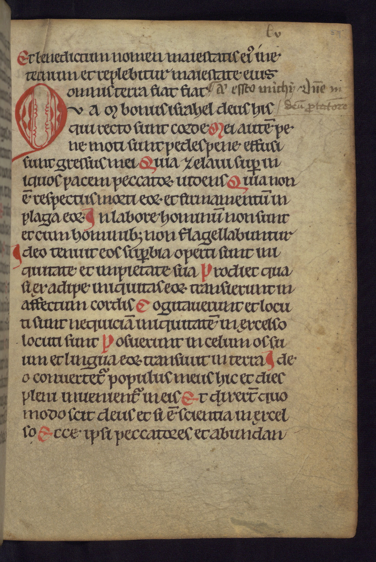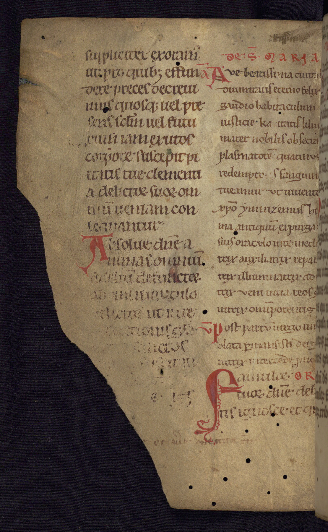 This Latin psalter was made in the second half of the thirteenth century for use in the Diocese of Constance, Germany. By the fourteenth century, it was owned by the Church of St. Mary of Strasbourg, from which it gets its name. The long life and enthusiastic use of the manuscript is attested by a multitude of added inscriptions, prayers, and antiphons with neumes, most dating to the fifteenth or sixteenth century. An early system of bookmarking is also evident; strips of parchment have been cut in some of the margins and folded through a slit in the leaf, creating tabs that would have helped the reader navigate through the text. Illumination also served this function, for while a short cycle of images from the life of Christ introduces the manuscript, the rest of the illuminations--large decorated initials as well as smaller ones in silver and gold--mark the important psalms for the reader. The style of illumination found here is closely related to two other psalters from Constance: Sigmaringen, Royal State Archives Ms. 11 and Hessische Landesbibliothek Fulda Ms. Aa 82.
