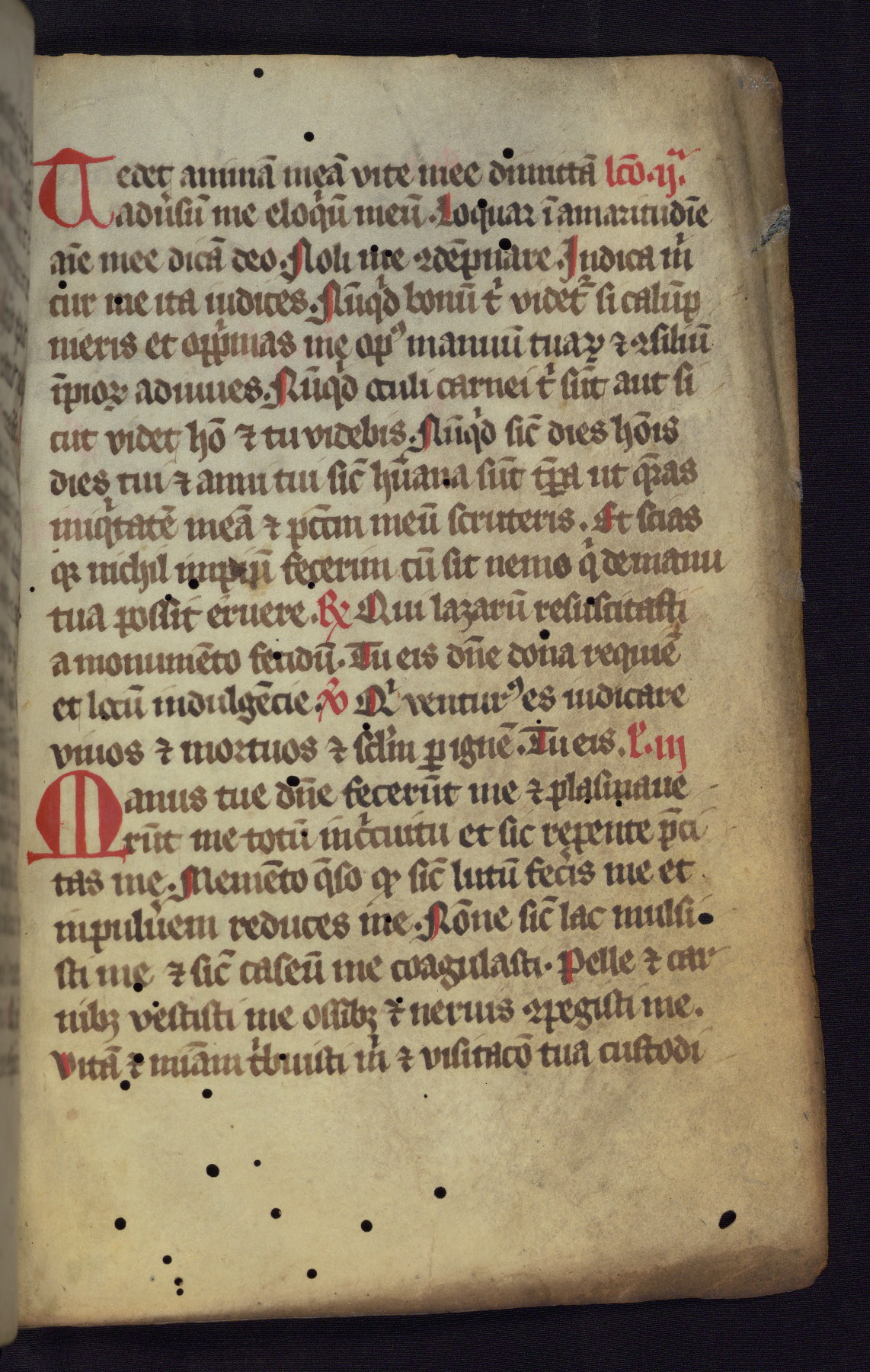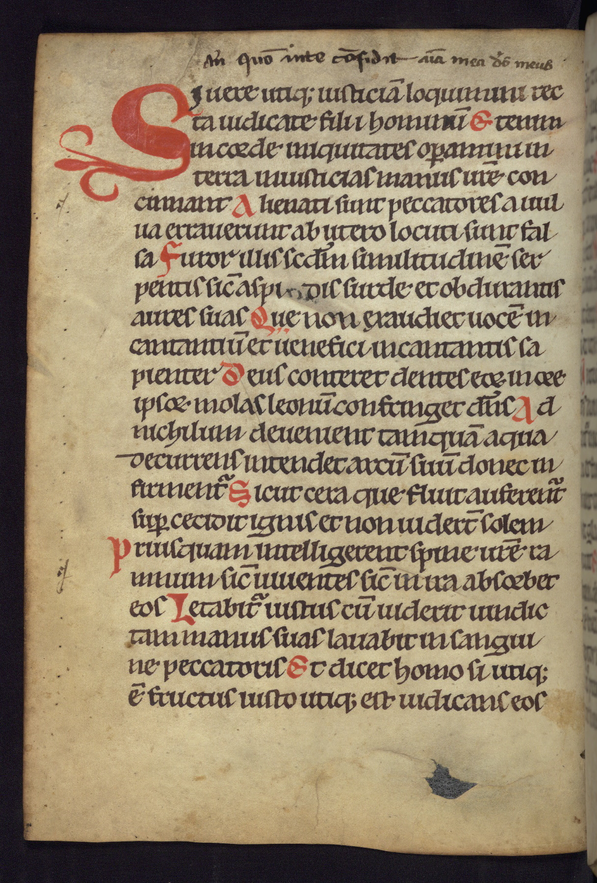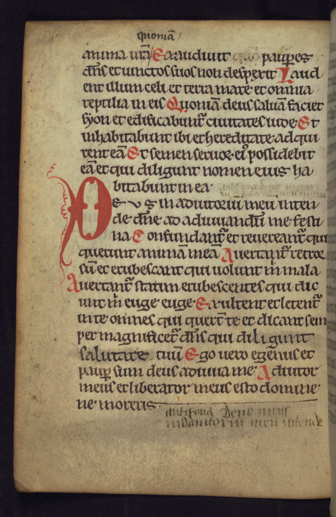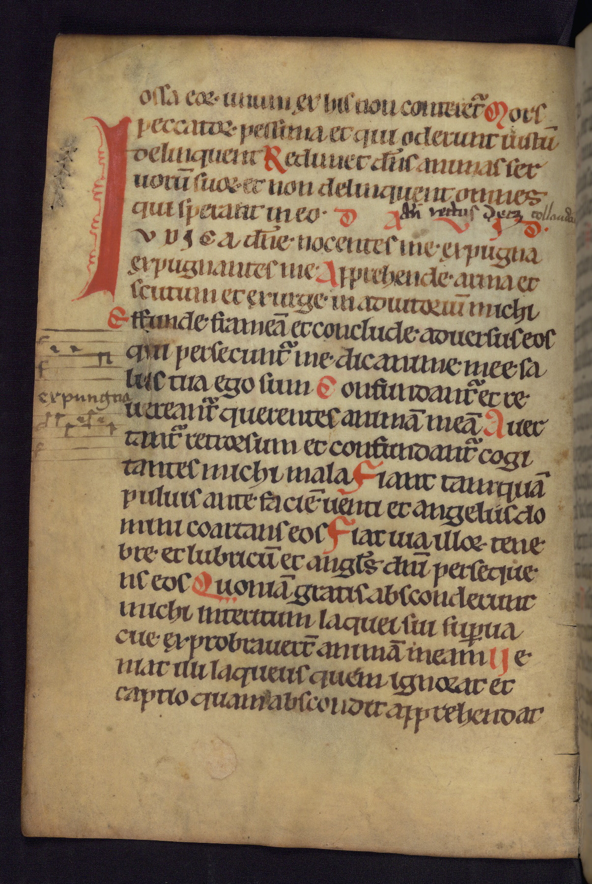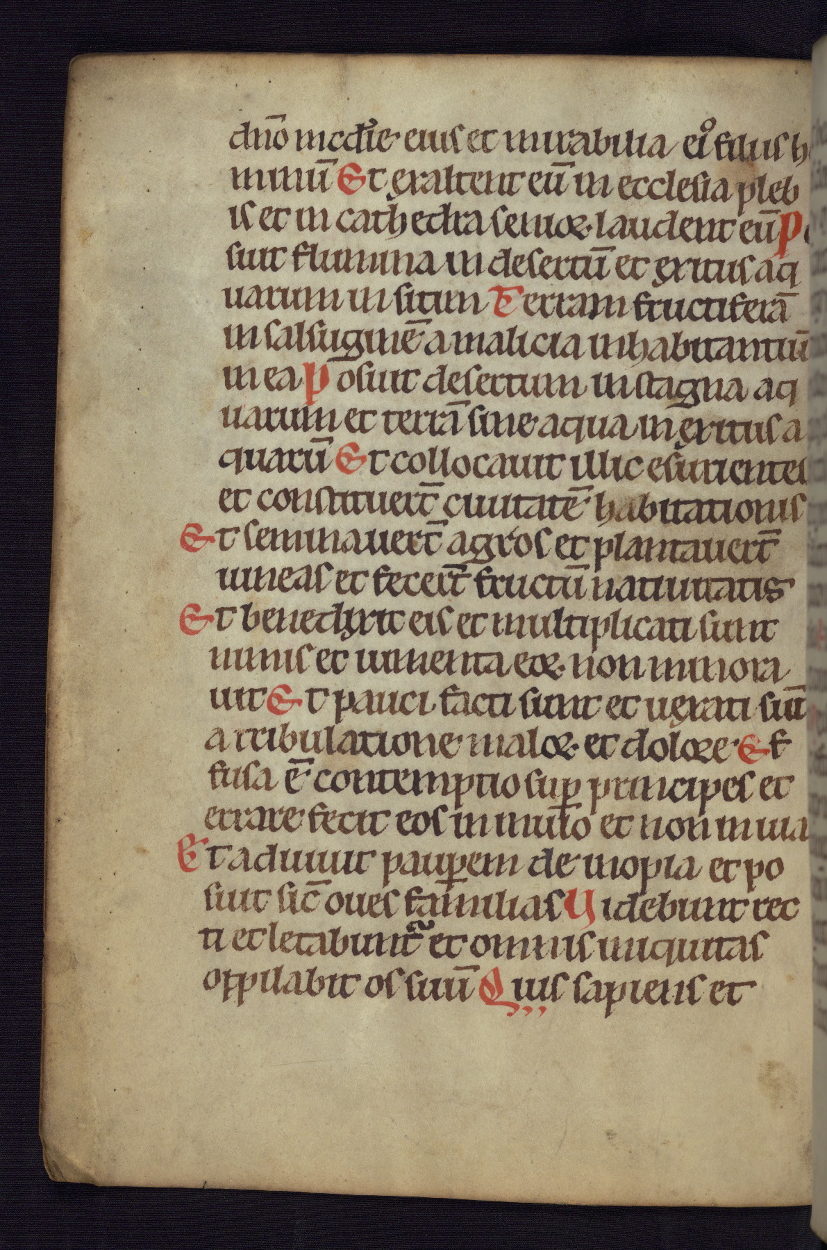 This Latin psalter was made in the second half of the thirteenth century for use in the Diocese of Constance, Germany. By the fourteenth century, it was owned by the Church of St. Mary of Strasbourg, from which it gets its name. The long life and enthusiastic use of the manuscript is attested by a multitude of added inscriptions, prayers, and antiphons with neumes, most dating to the fifteenth or sixteenth century. An early system of bookmarking is also evident; strips of parchment have been cut in some of the margins and folded through a slit in the leaf, creating tabs that would have helped the reader navigate through the text. Illumination also served this function, for while a short cycle of images from the life of Christ introduces the manuscript, the rest of the illuminations--large decorated initials as well as smaller ones in silver and gold--mark the important psalms for the reader. The style of illumination found here is closely related to two other psalters from Constance: Sigmaringen, Royal State Archives Ms. 11 and Hessische Landesbibliothek Fulda Ms. Aa 82.