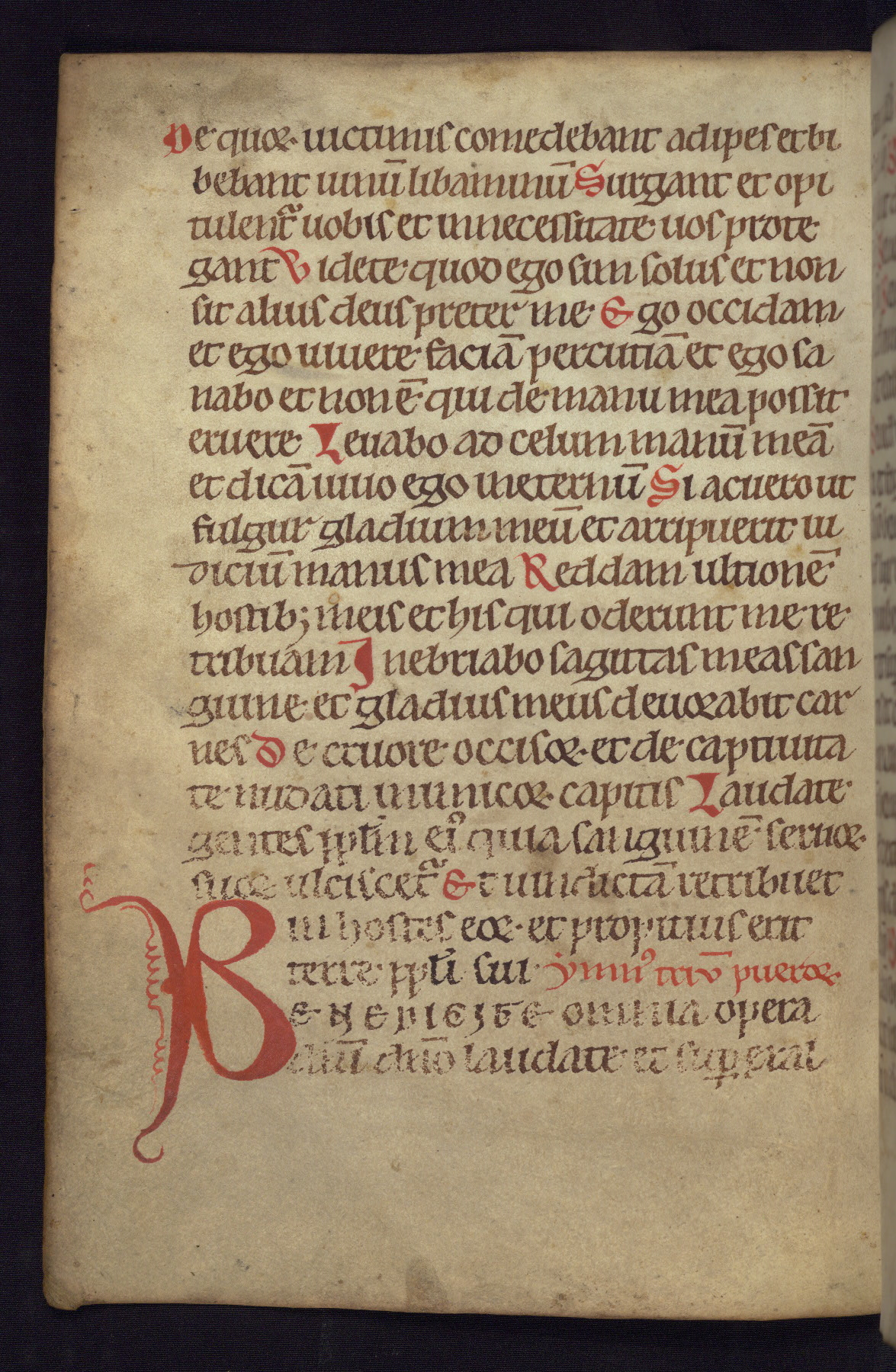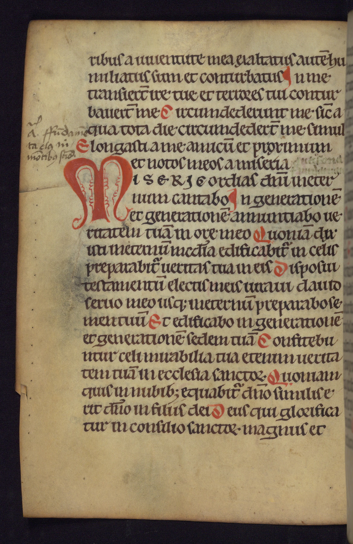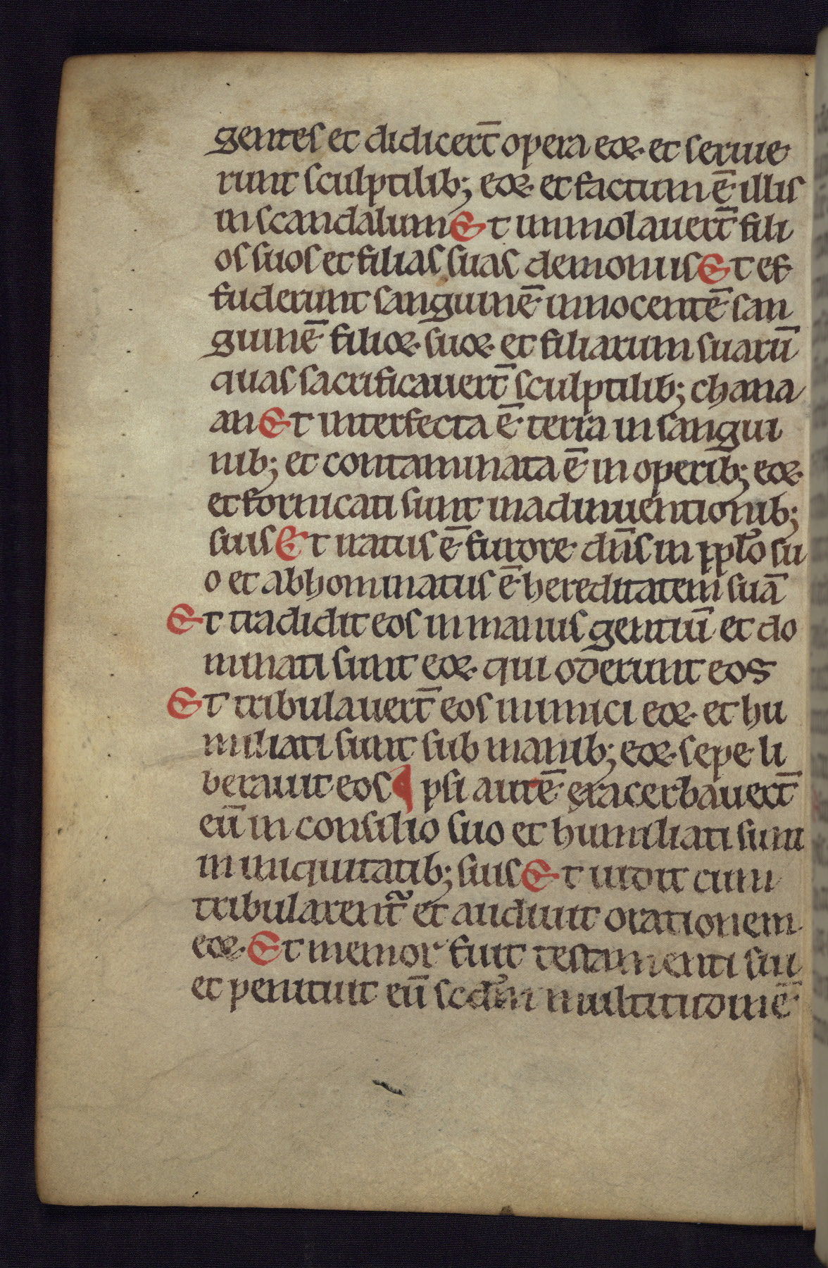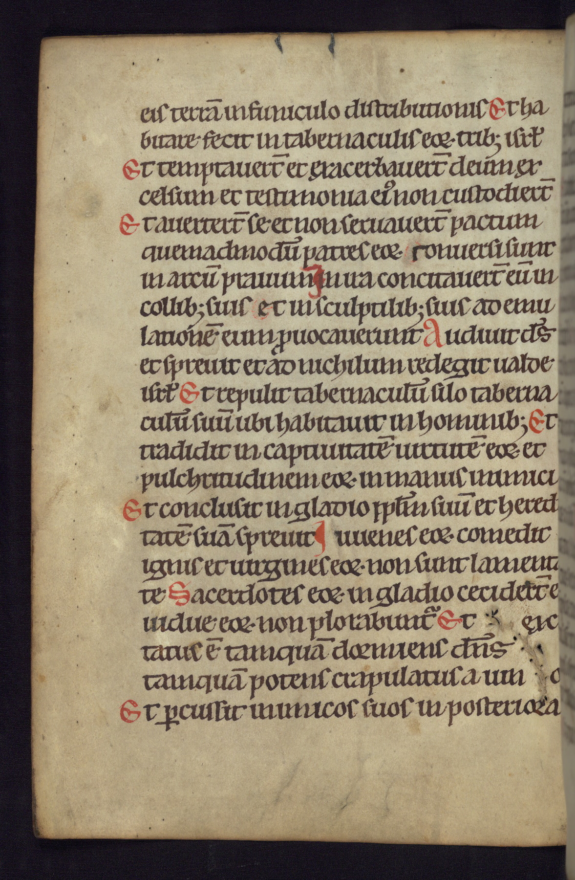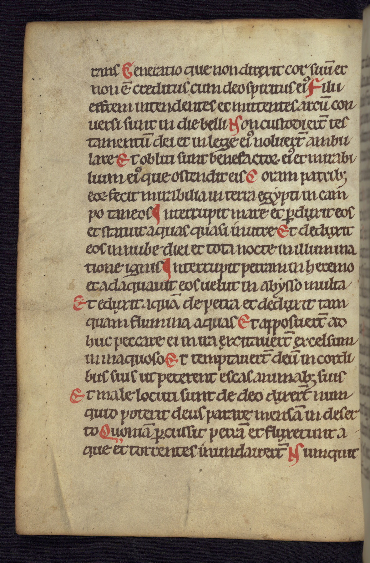 This Latin psalter was made in the second half of the thirteenth century for use in the Diocese of Constance, Germany. By the fourteenth century, it was owned by the Church of St. Mary of Strasbourg, from which it gets its name. The long life and enthusiastic use of the manuscript is attested by a multitude of added inscriptions, prayers, and antiphons with neumes, most dating to the fifteenth or sixteenth century. An early system of bookmarking is also evident; strips of parchment have been cut in some of the margins and folded through a slit in the leaf, creating tabs that would have helped the reader navigate through the text. Illumination also served this function, for while a short cycle of images from the life of Christ introduces the manuscript, the rest of the illuminations--large decorated initials as well as smaller ones in silver and gold--mark the important psalms for the reader. The style of illumination found here is closely related to two other psalters from Constance: Sigmaringen, Royal State Archives Ms. 11 and Hessische Landesbibliothek Fulda Ms. Aa 82.