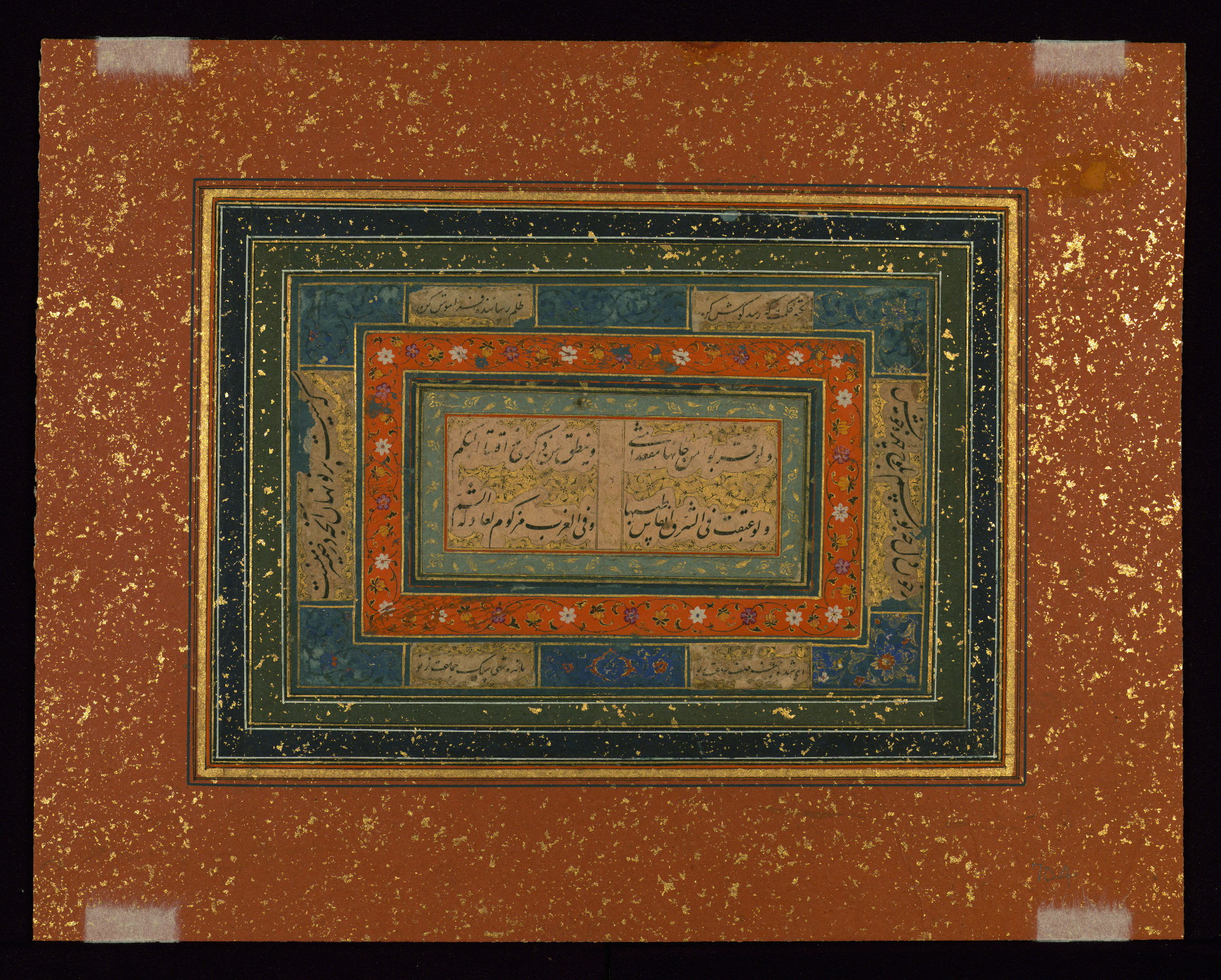 - Decoration note: Illuminated frames and a border of pink-tinted, gold-sprinkled paper