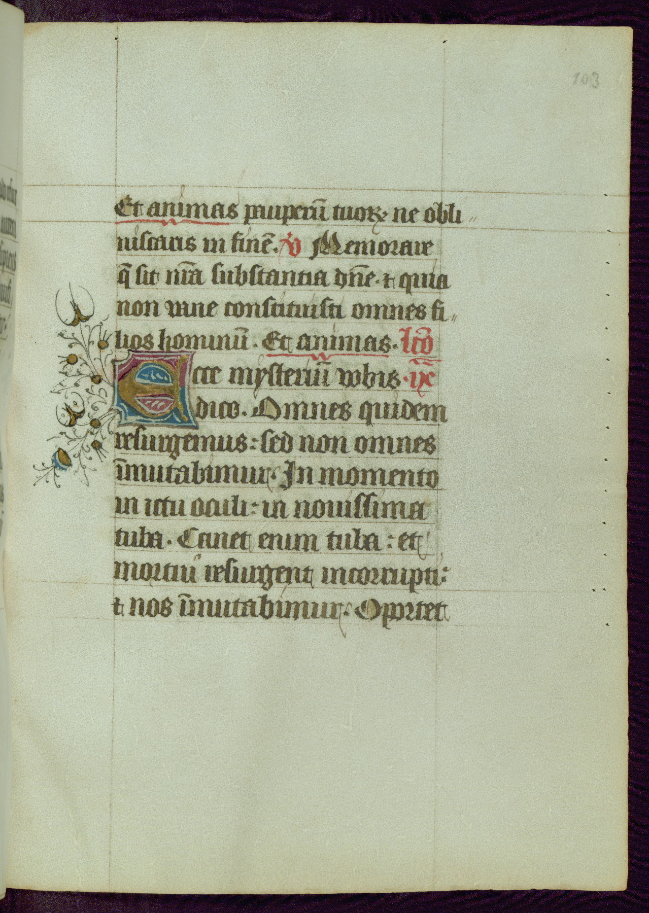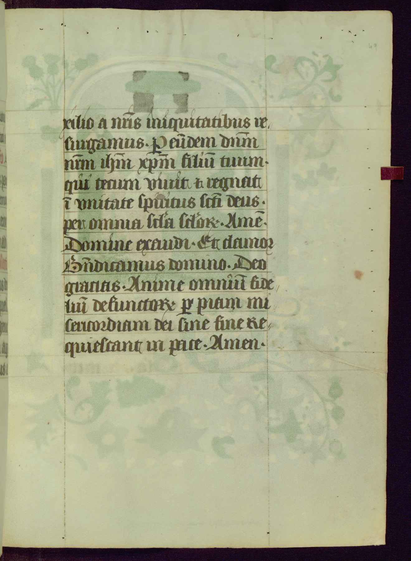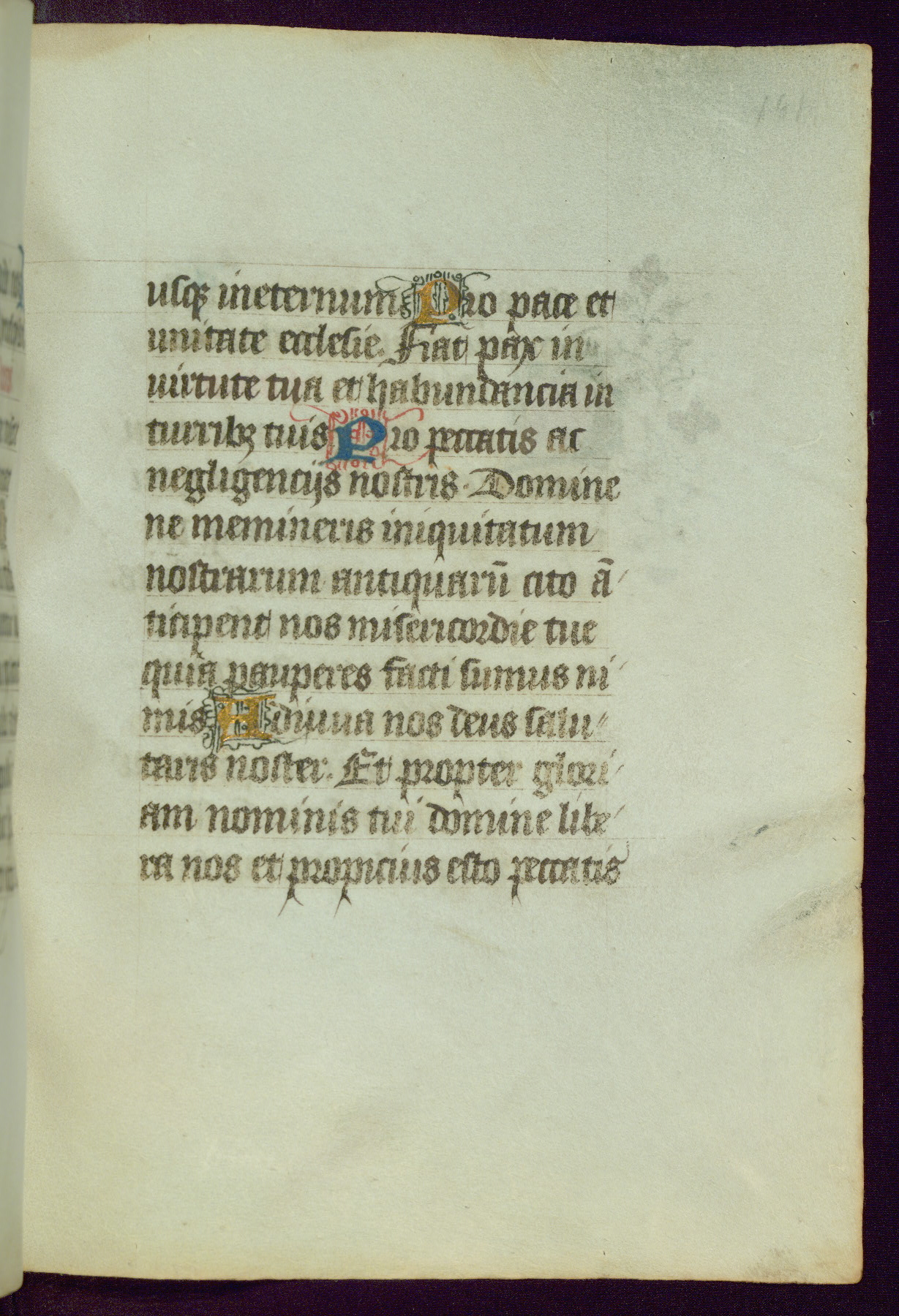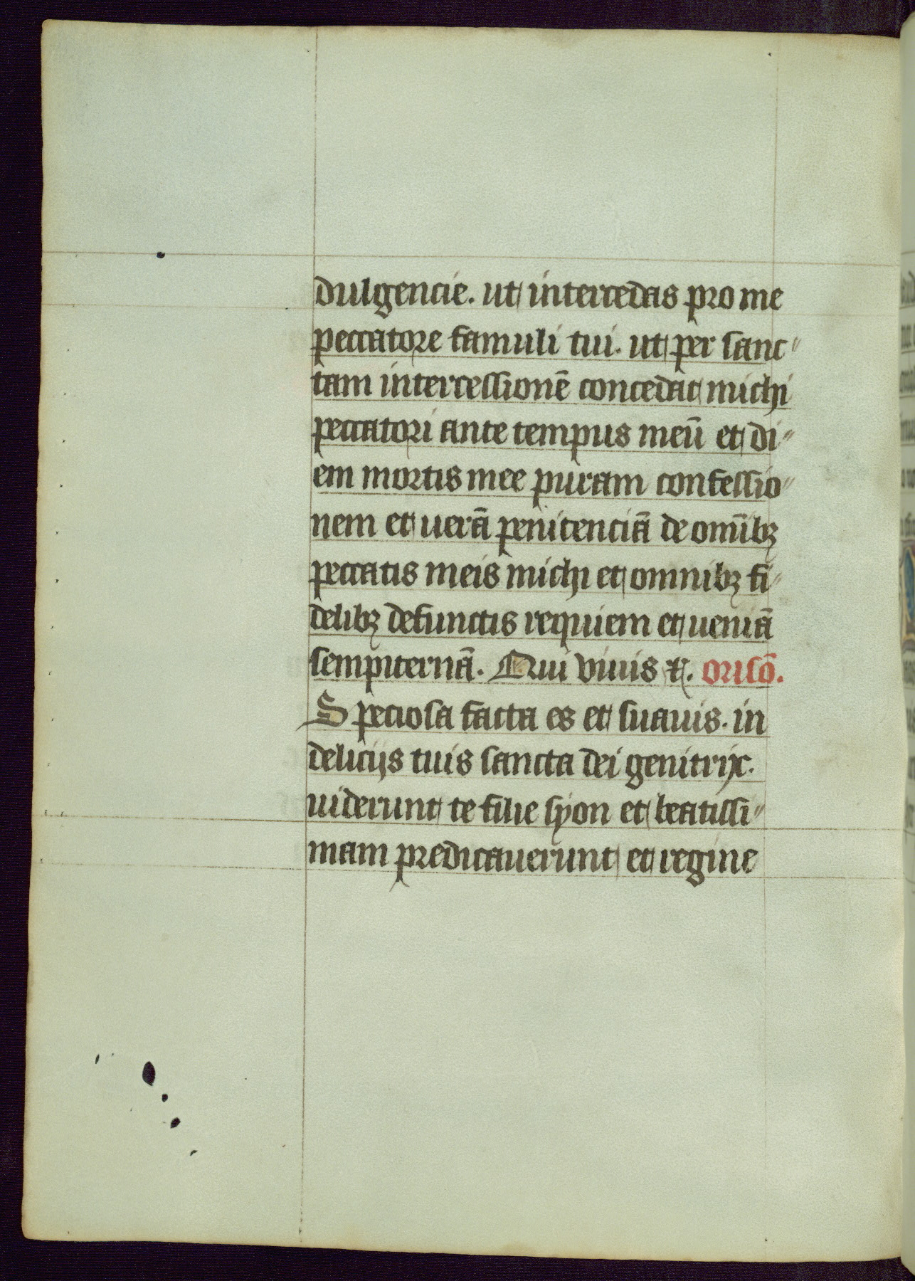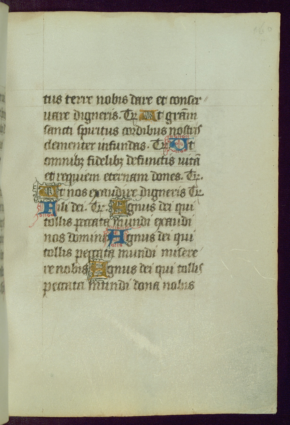 This Book of Hours was completed ca. 1450, illuminated by the Master of Ghent Privileges and associates. The first owner is depicted in the border of fol. 13v as well as arms of the Egmont family of Guelders, found in the margins nearby. On front flyleaf iir, a note indicates that the manuscript was given by Francois de Bonge to an unidentified recipient in memory of a close friend. While many prayers are in Latin, there is a strong presence of French found in rubrics, headings, and several narratives (tales of a canon's dream sequence, the salvation of a nun, and directives for prayers that would result in a vision of the Virgin three days before the supplicant's death) paired with prayers and devotions in Latin.
