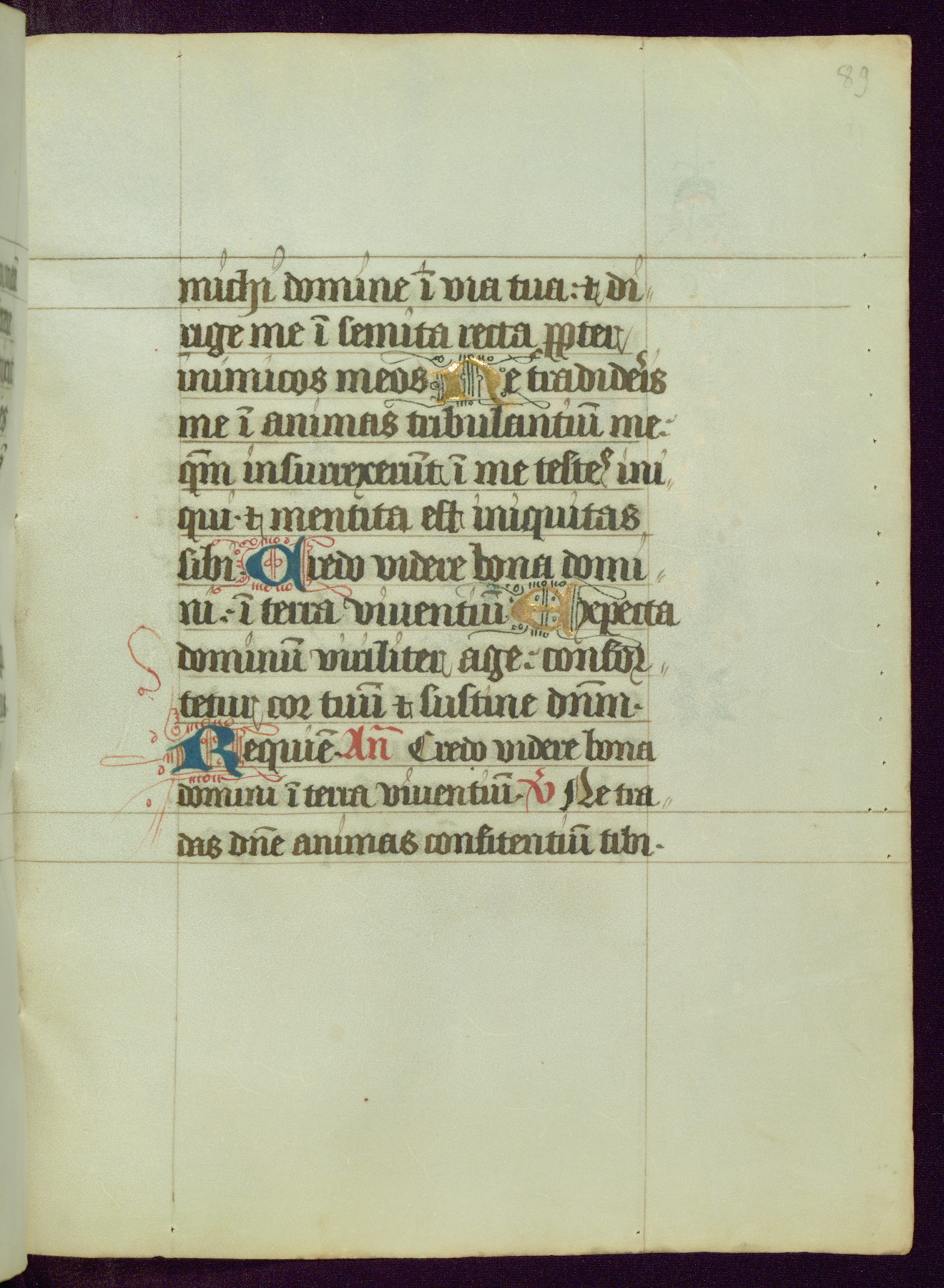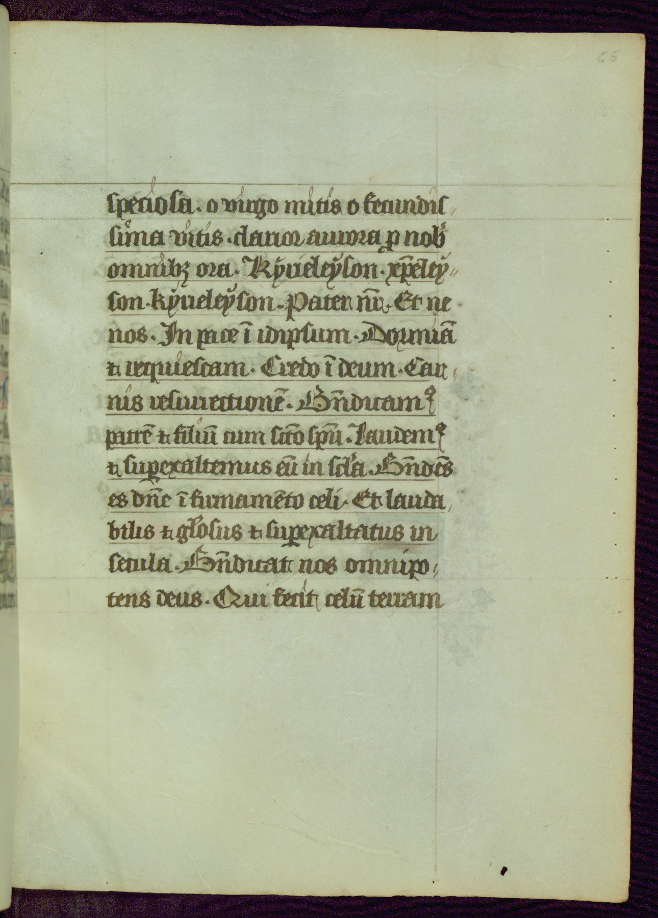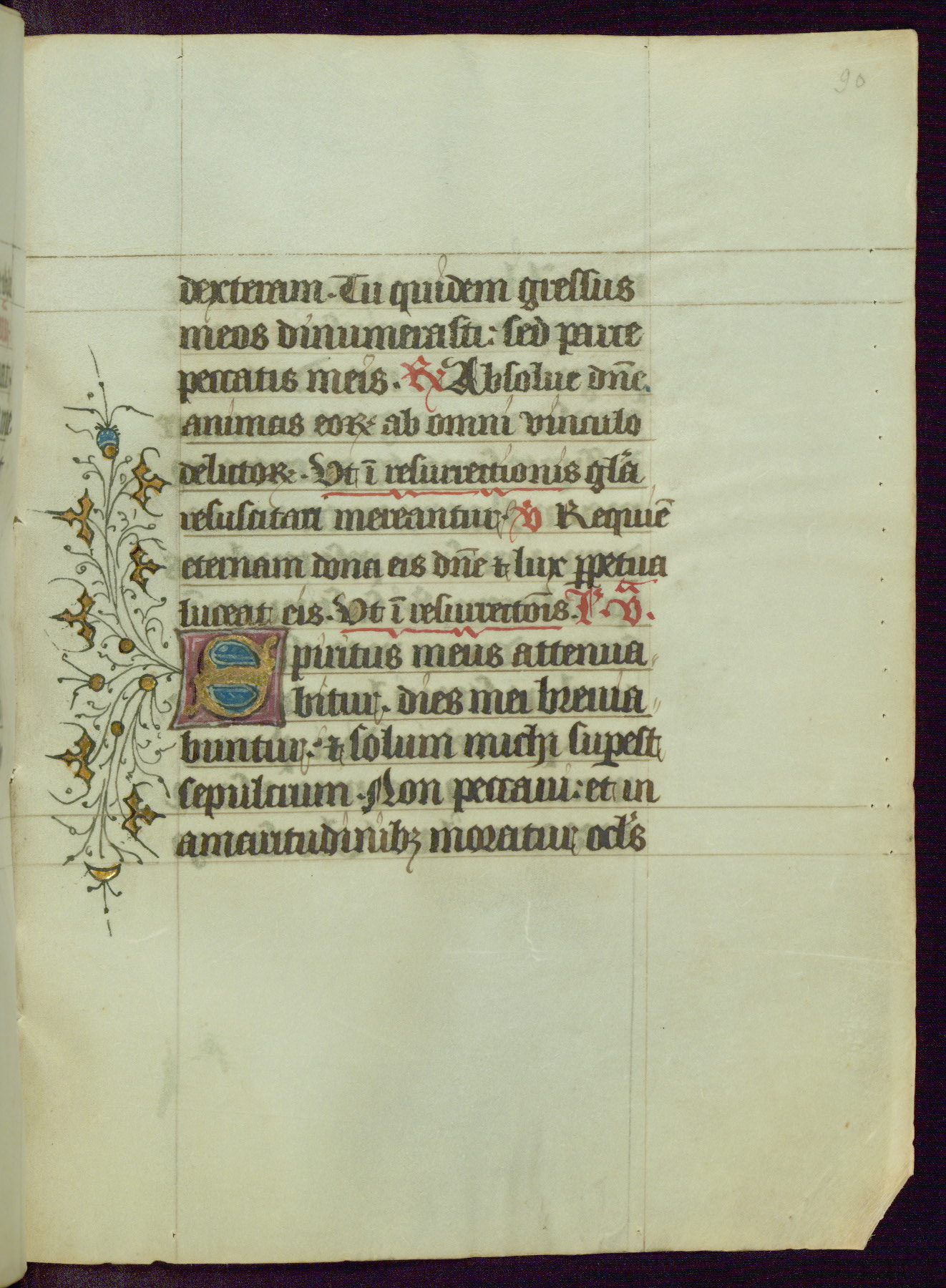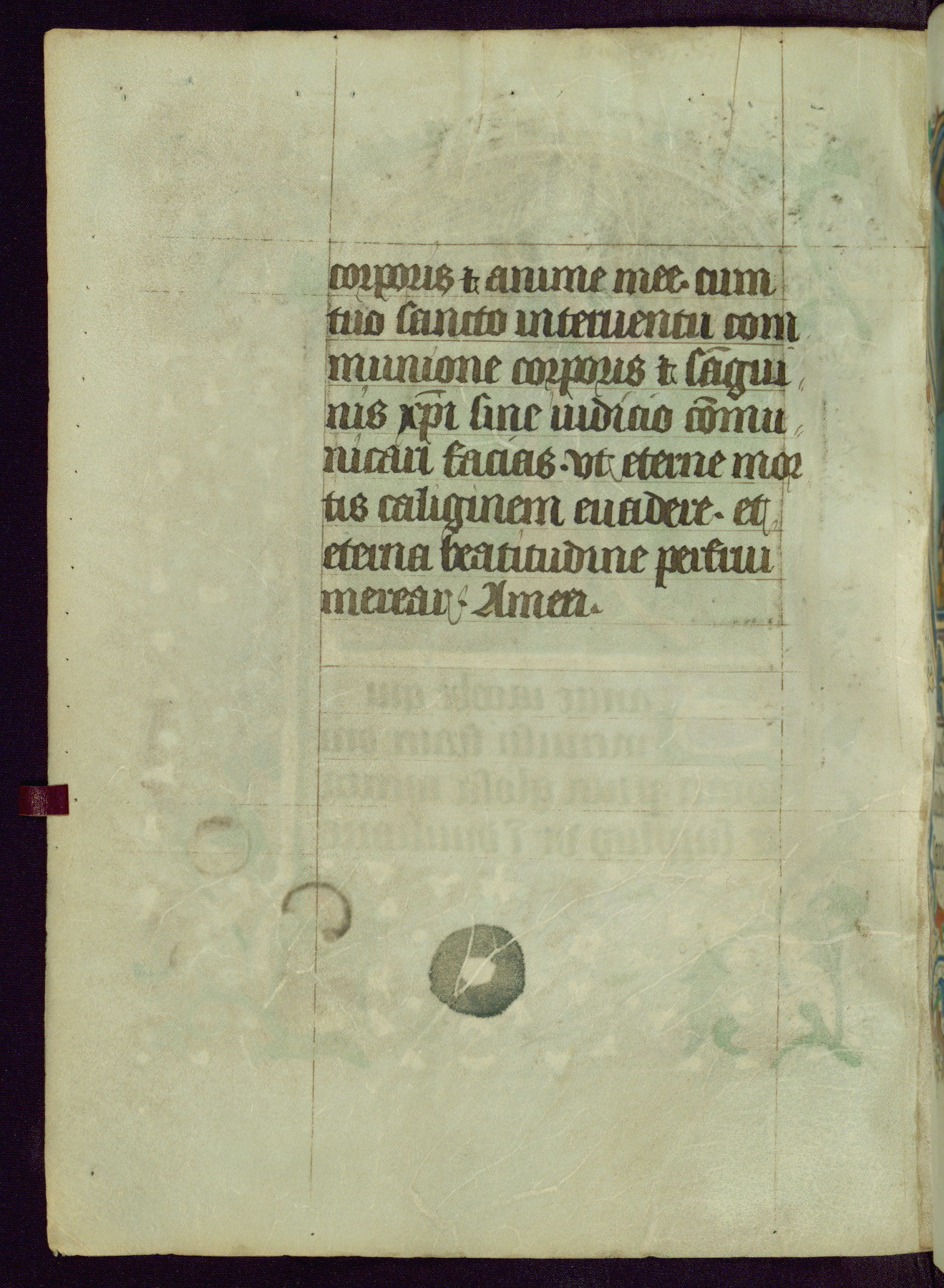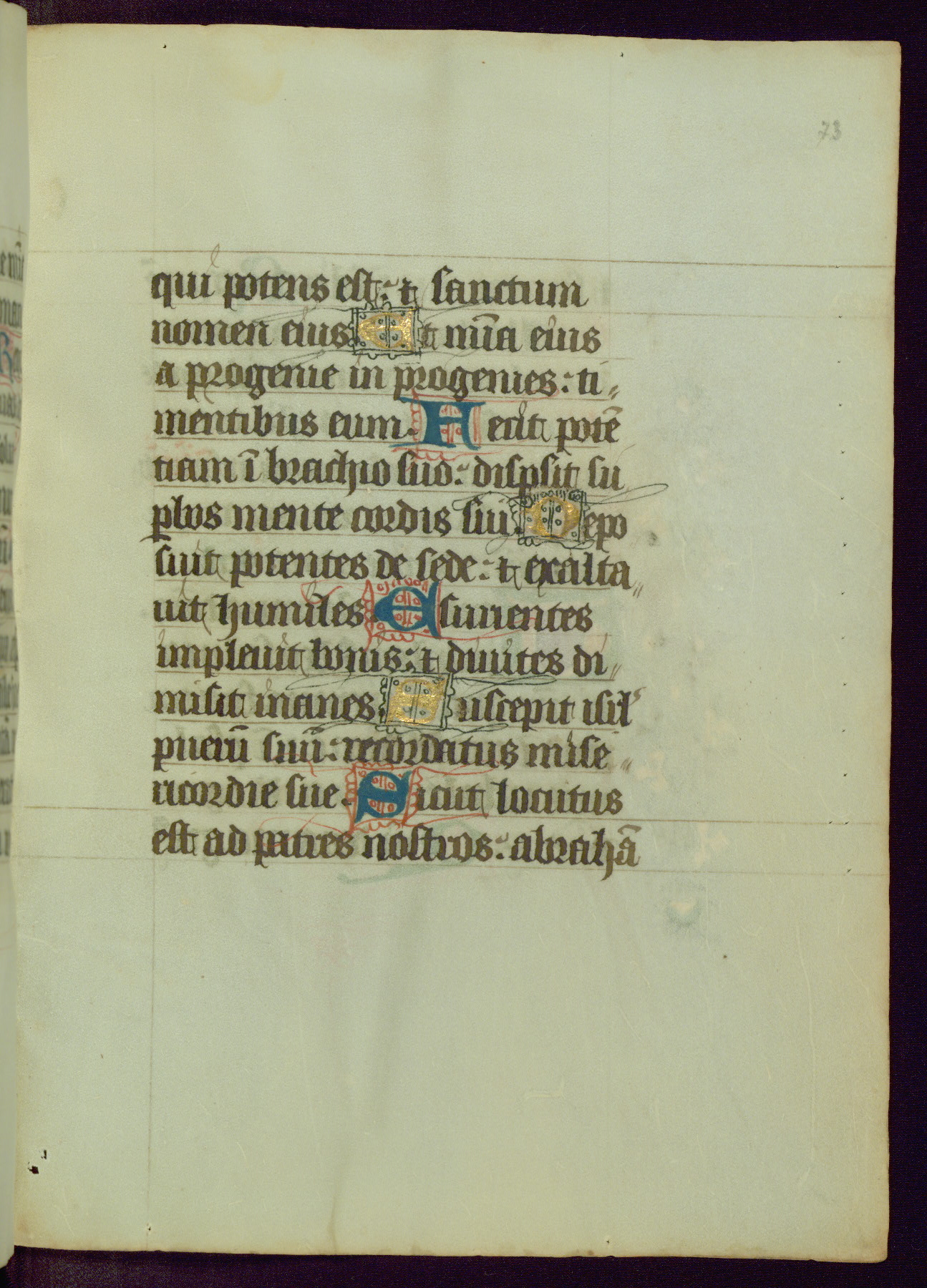 This Book of Hours was completed ca. 1450, illuminated by the Master of Ghent Privileges and associates. The first owner is depicted in the border of fol. 13v as well as arms of the Egmont family of Guelders, found in the margins nearby. On front flyleaf iir, a note indicates that the manuscript was given by Francois de Bonge to an unidentified recipient in memory of a close friend. While many prayers are in Latin, there is a strong presence of French found in rubrics, headings, and several narratives (tales of a canon's dream sequence, the salvation of a nun, and directives for prayers that would result in a vision of the Virgin three days before the supplicant's death) paired with prayers and devotions in Latin.