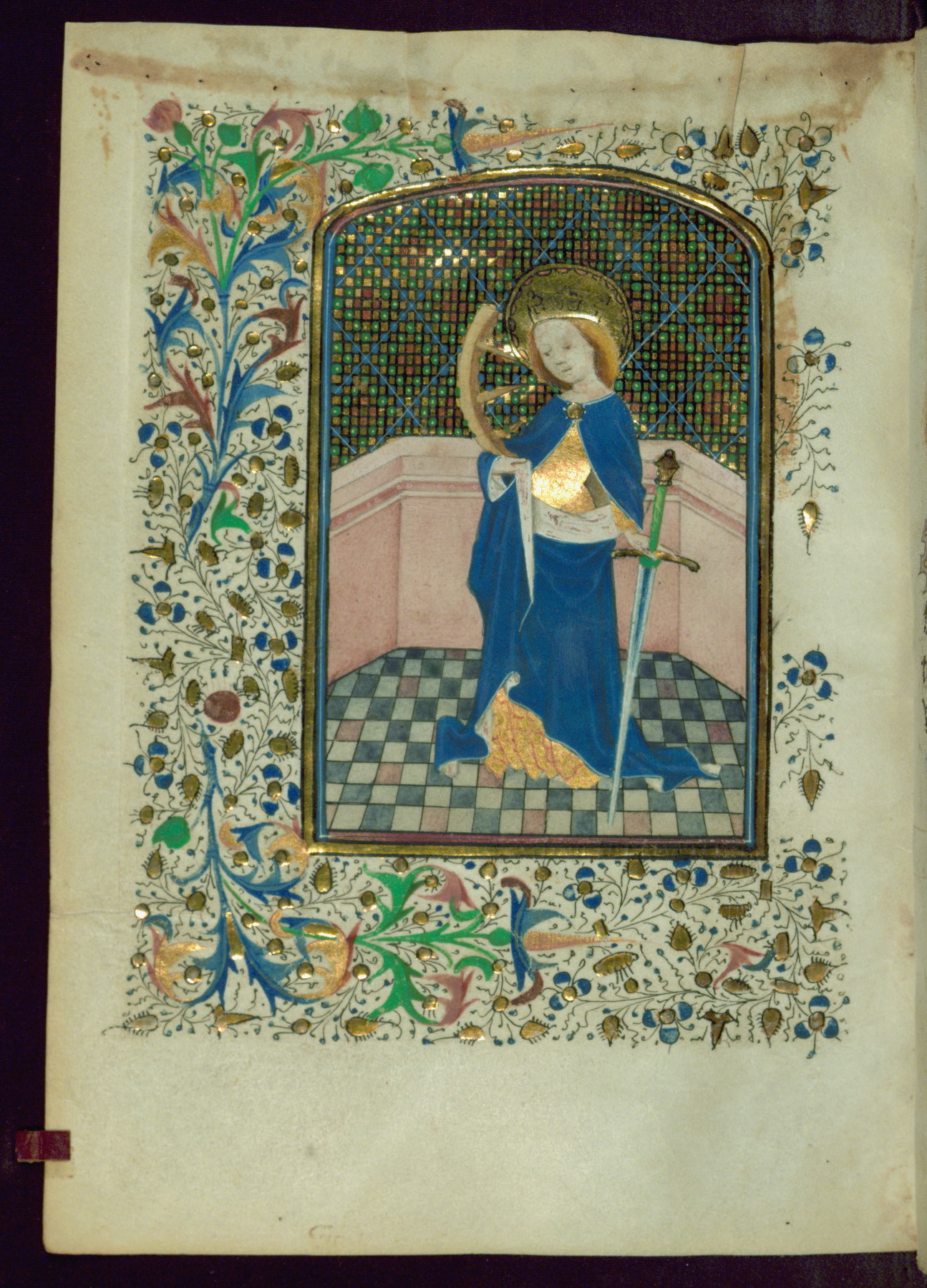 - Contents: Fols. 183r-184r: Gospel extract from John 1:1-14; fols. 185r-186r and fols. 187r-193r: contemporary additions of two suffrages to female saints Catherine and Barbara respectively; fol. 186v: blank, ruled; fols. 189r-193r: Athanasian creed with French heading; fol. 182bisr: blank