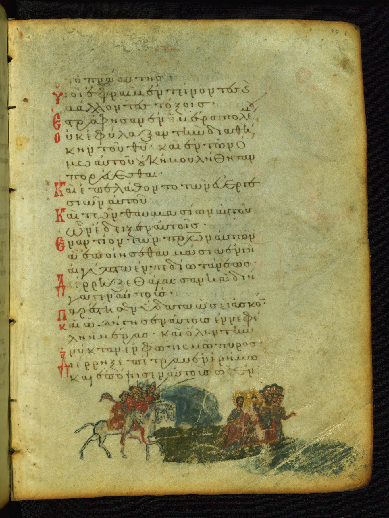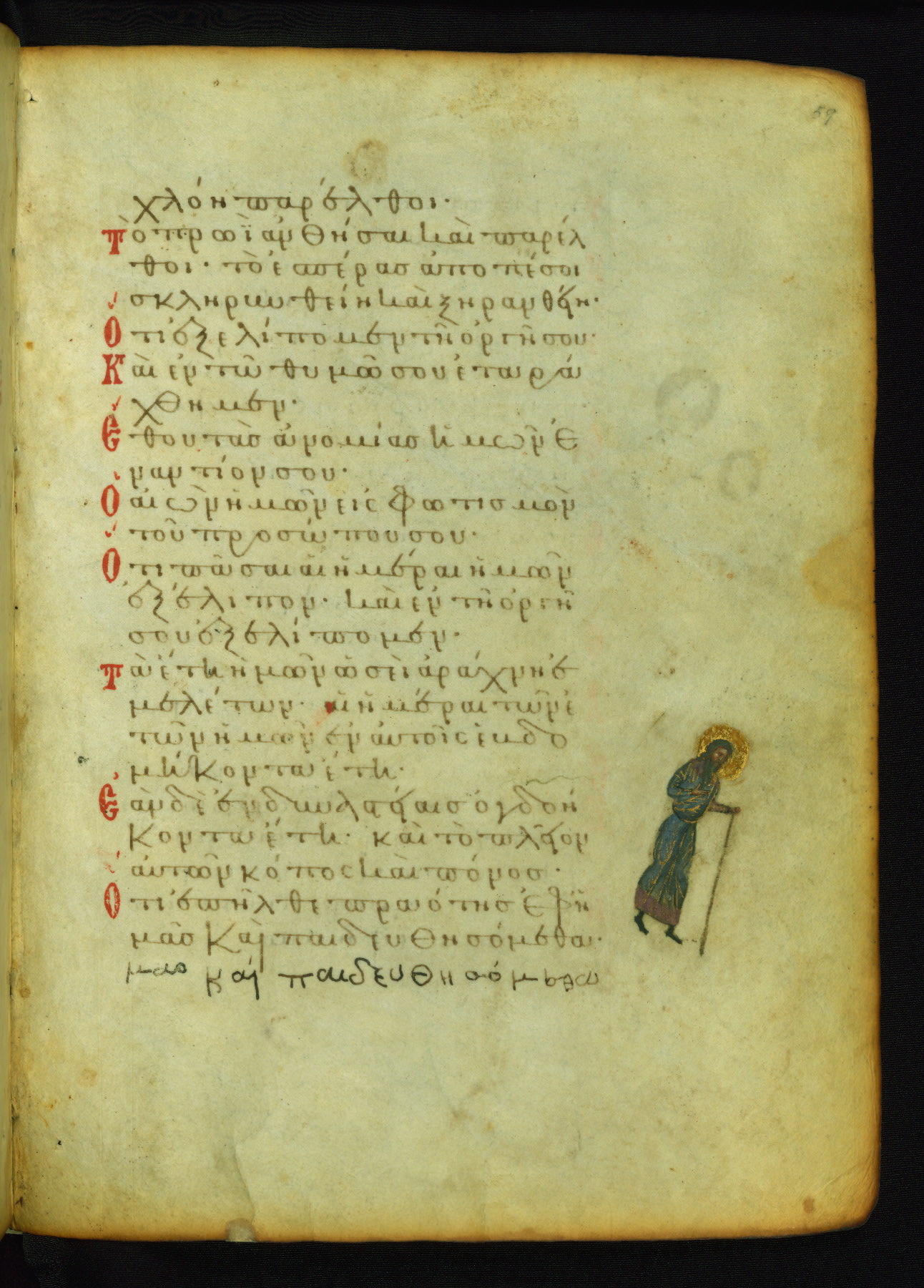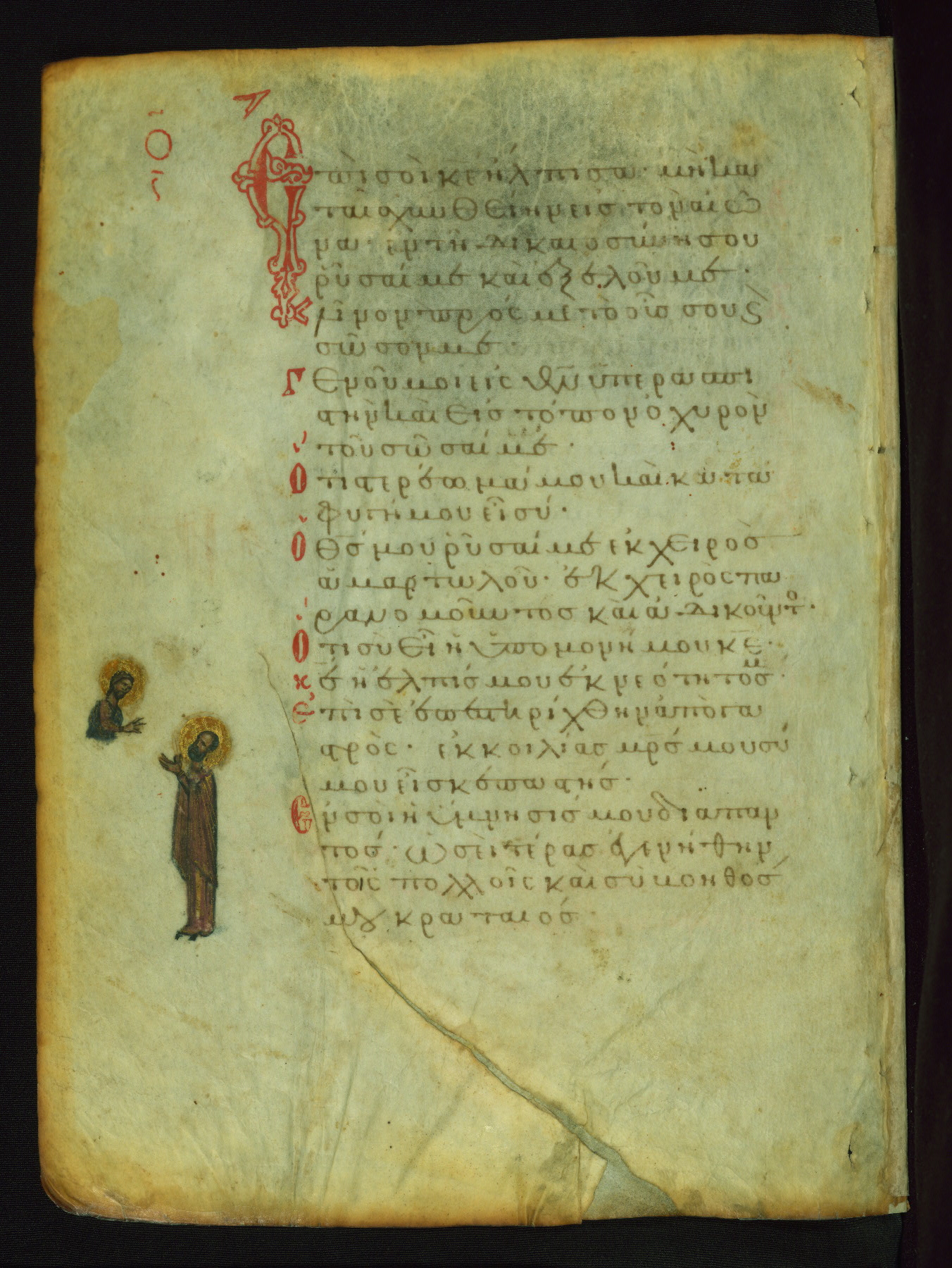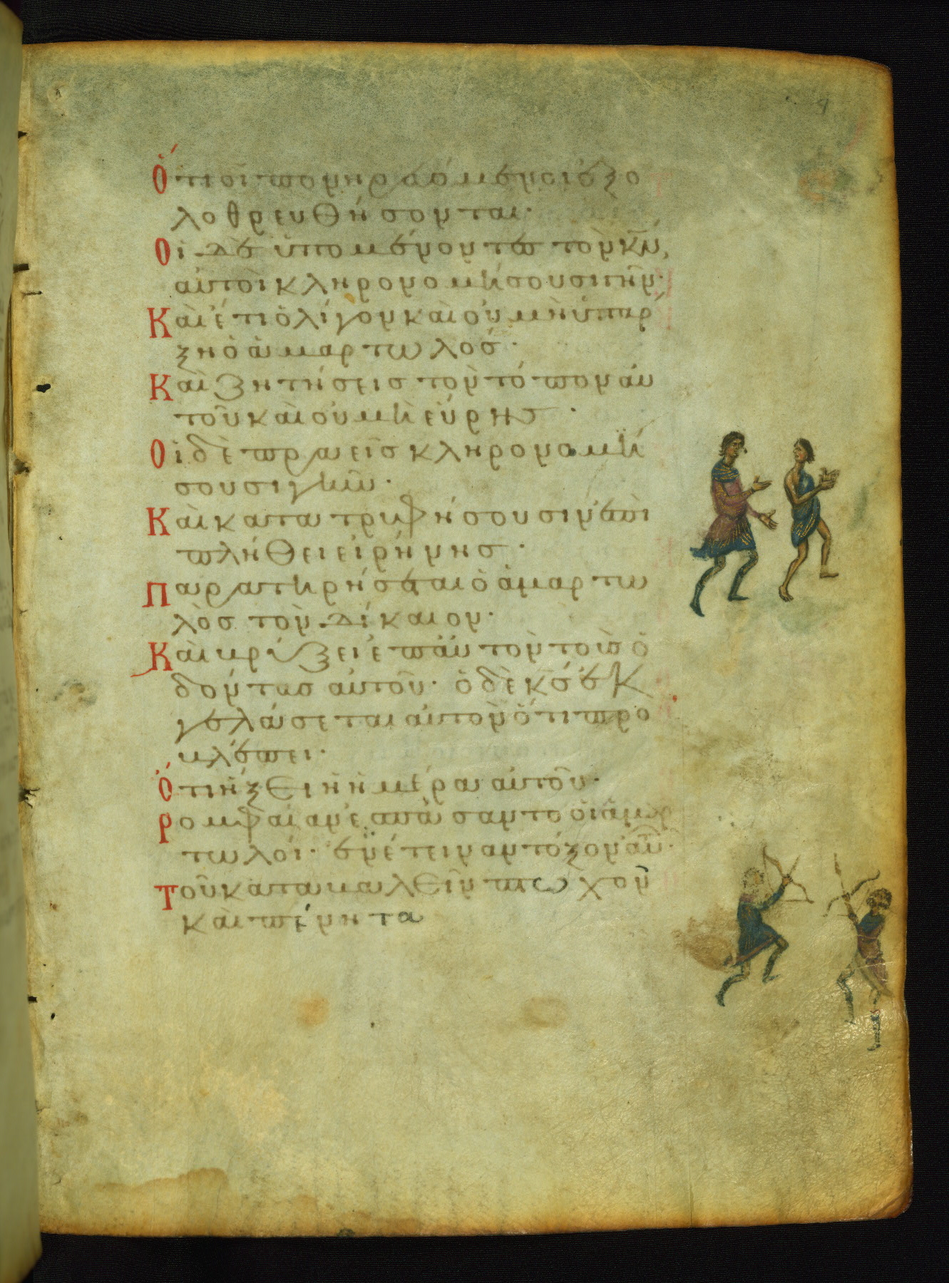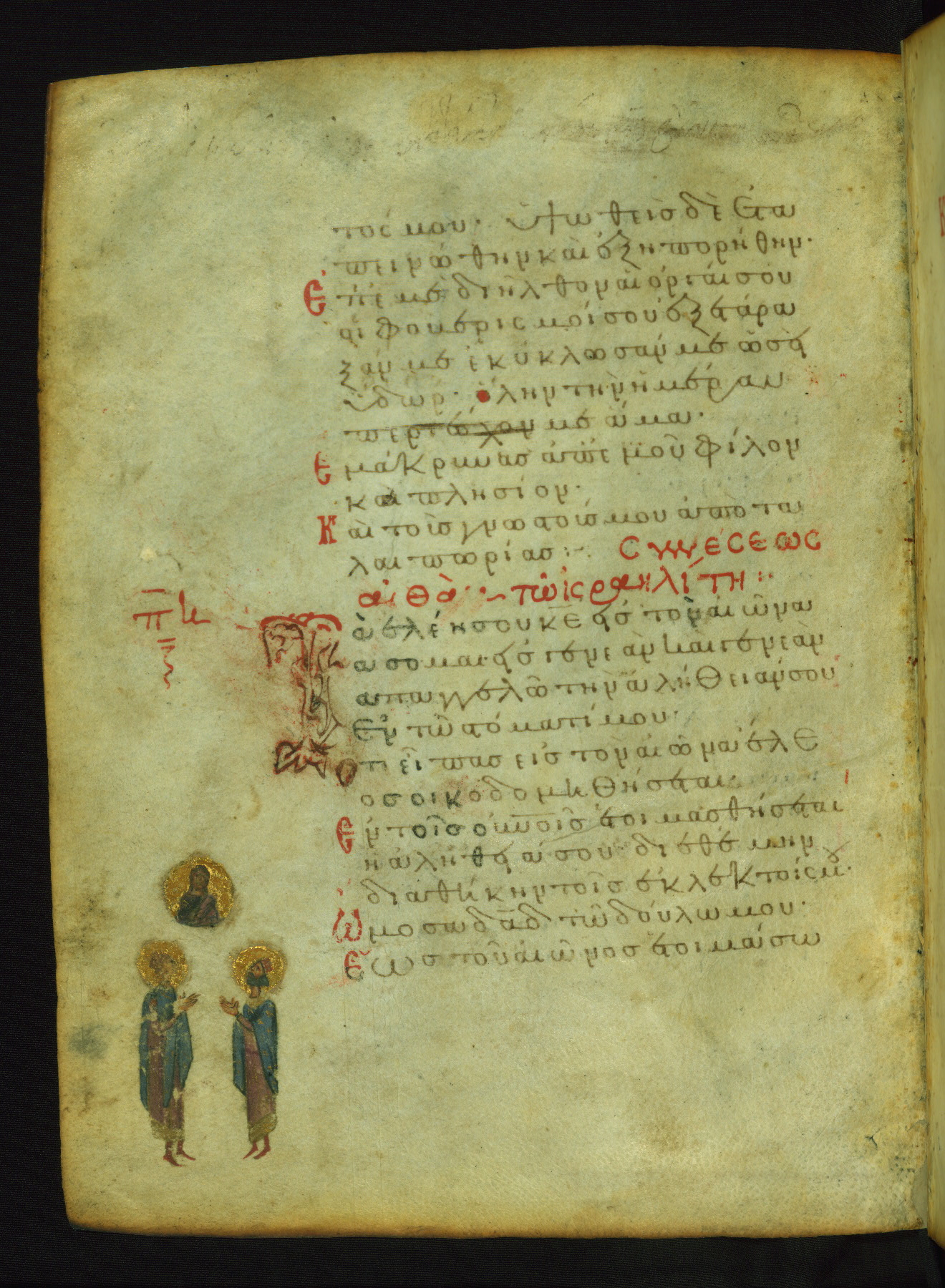 The three men in this miniature hold crosses that identify them as martyrs. These are probably the righteous mentioned in the first verse on this page: "Rejoice in the Lord, O you righteous..." (NETS).