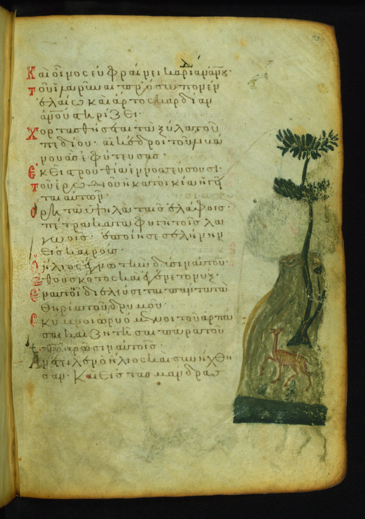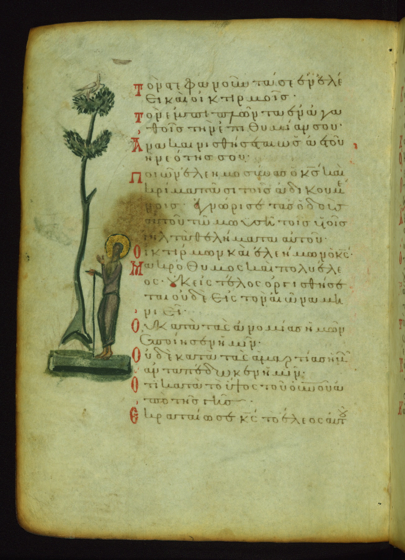 This image probably illustrates a verse found on the facing page: "I saw an impious one being highly lifted up and being raised up like the cedars of Lebanon" (NETS).