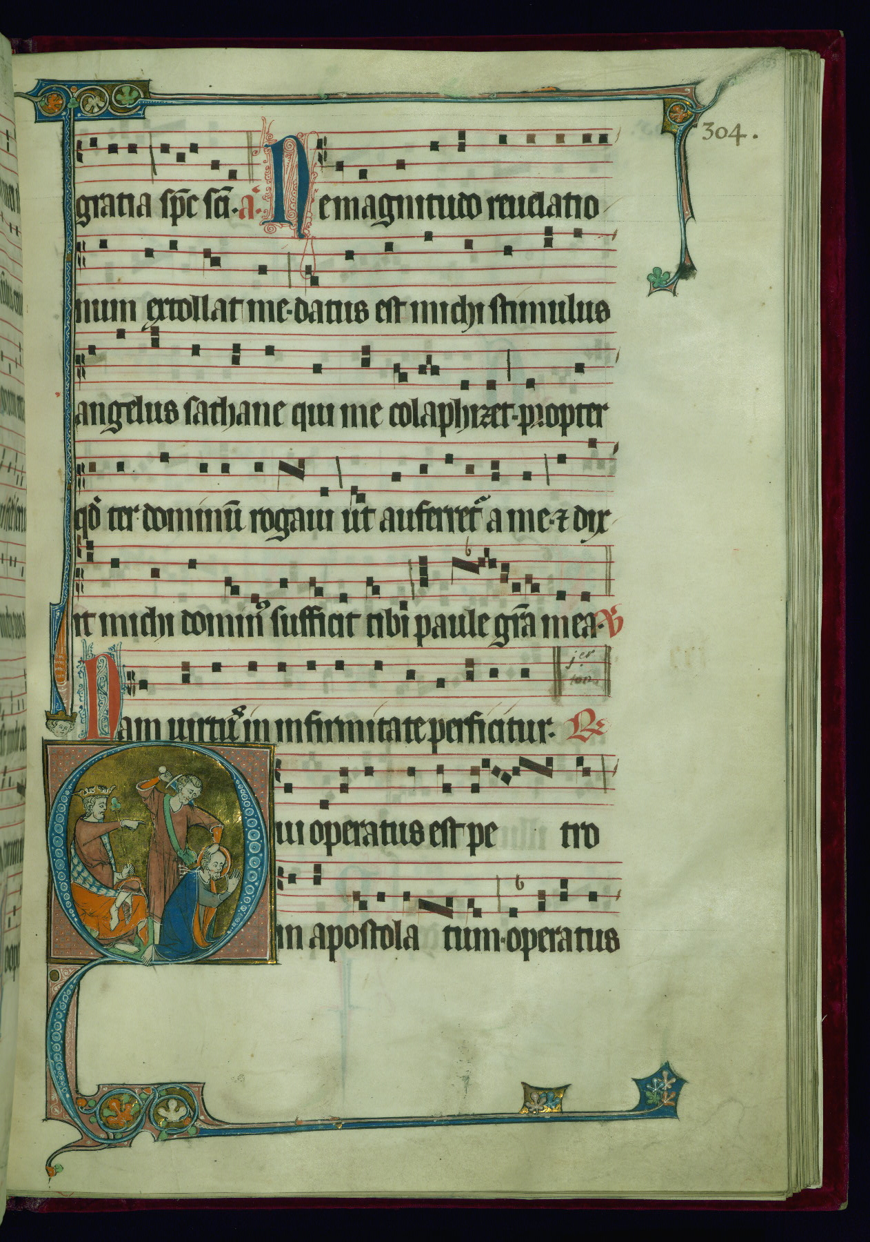- Form: Historiated initial "P," 3 lines of plainsong notation + 3 lines of text