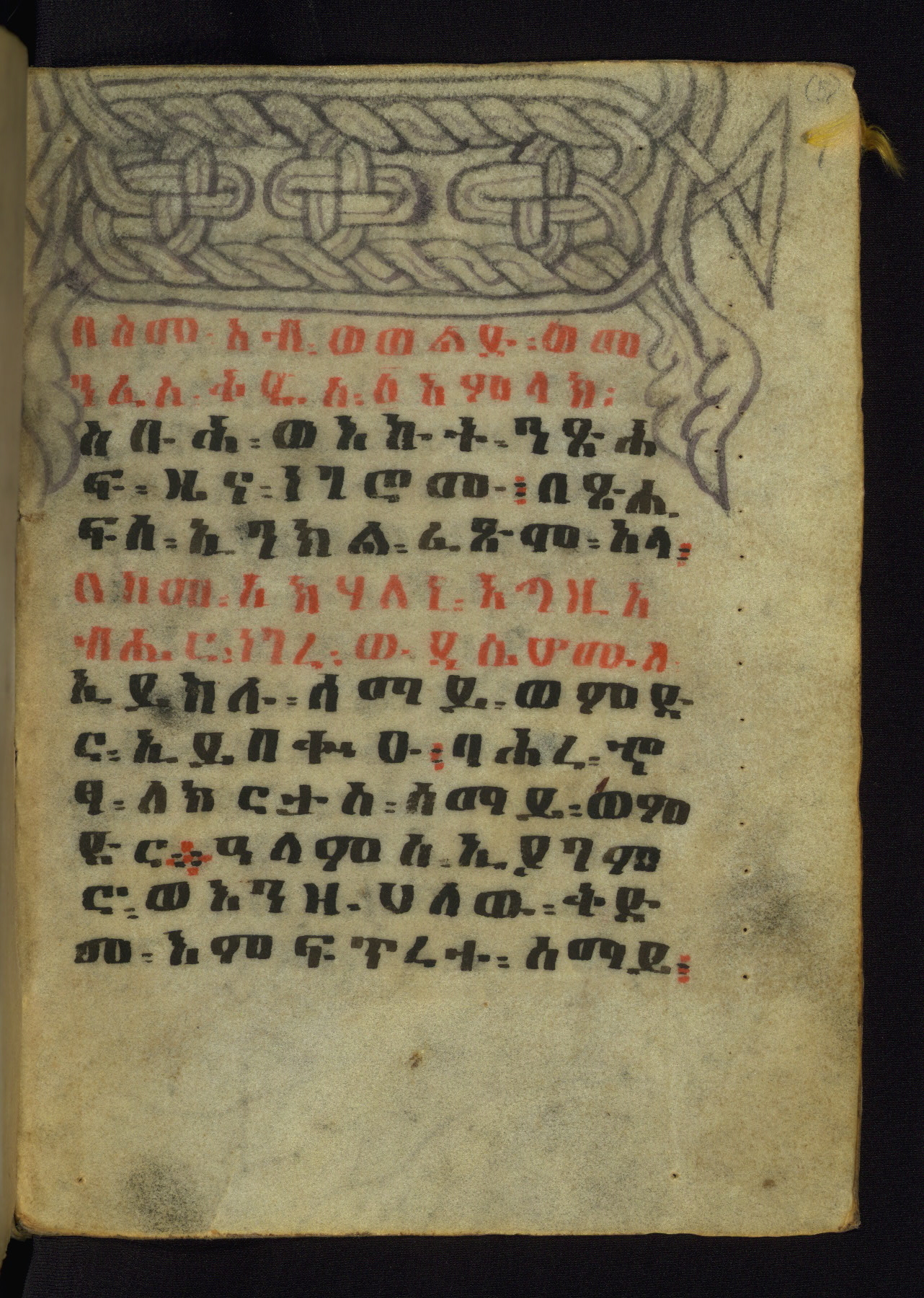 - Incipit: በስመ፡ አብ፡ . . . ዓይን፡ (Sic) ልሳን፡ ወዓይ፡ ከናፍር፡ ዘይክል፡ ነቢበ፡ ግብሩ፡ ለሥላሴ፡